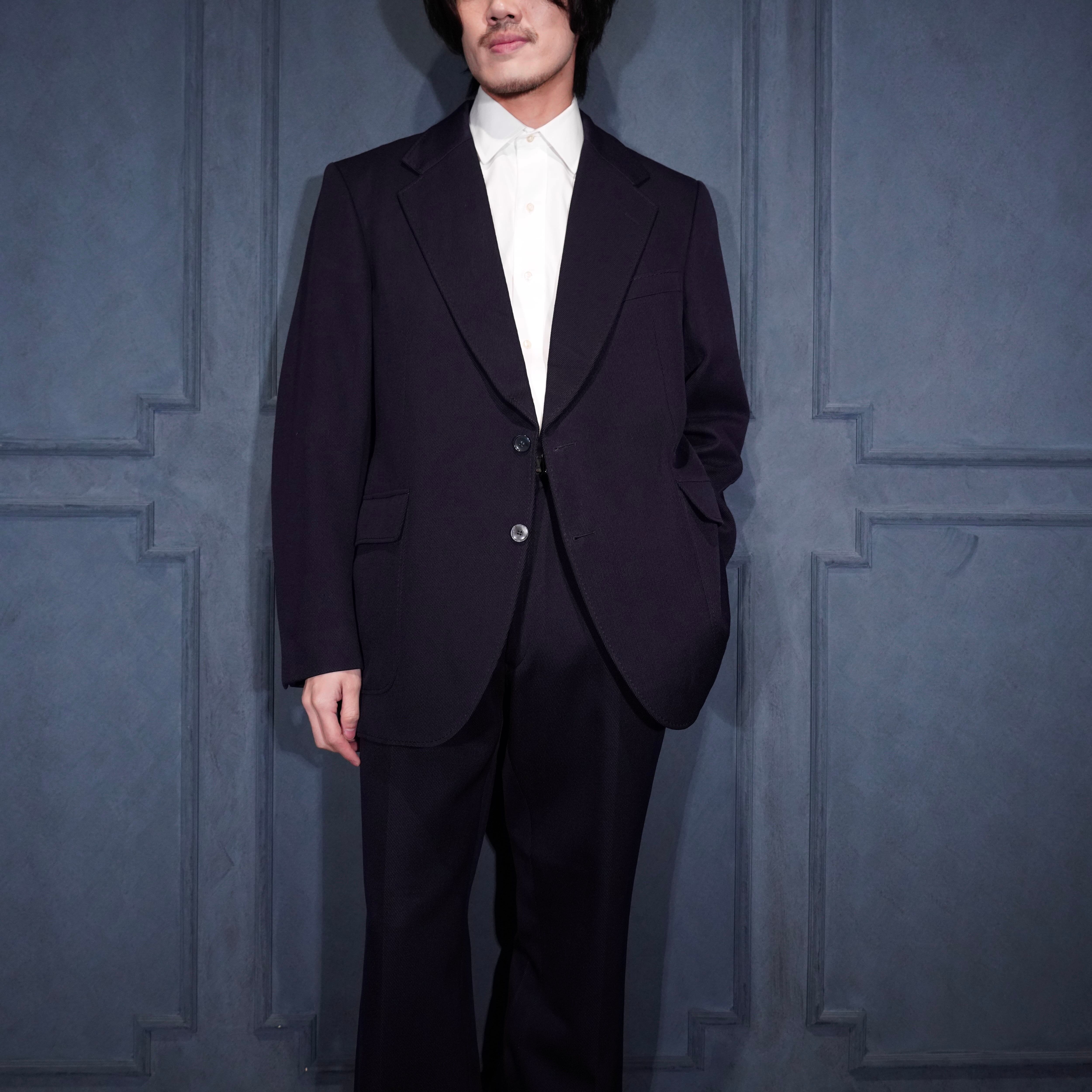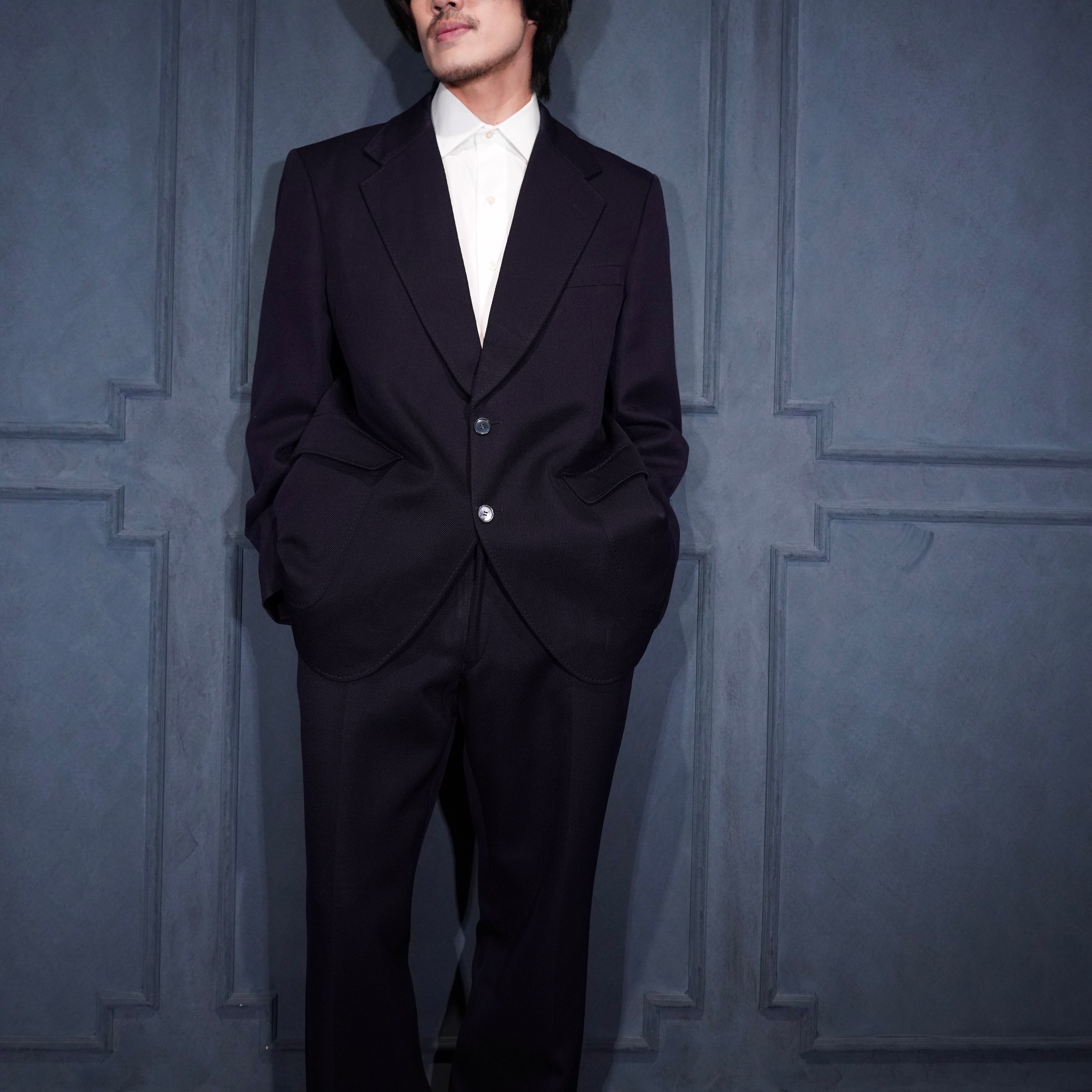 EU VINTAGE splendid NAVY COLOR DESIGN WOOL SET UP SUIT/ヨーロッパ古着ネイビーカラーデザインウールセットアップスーツ