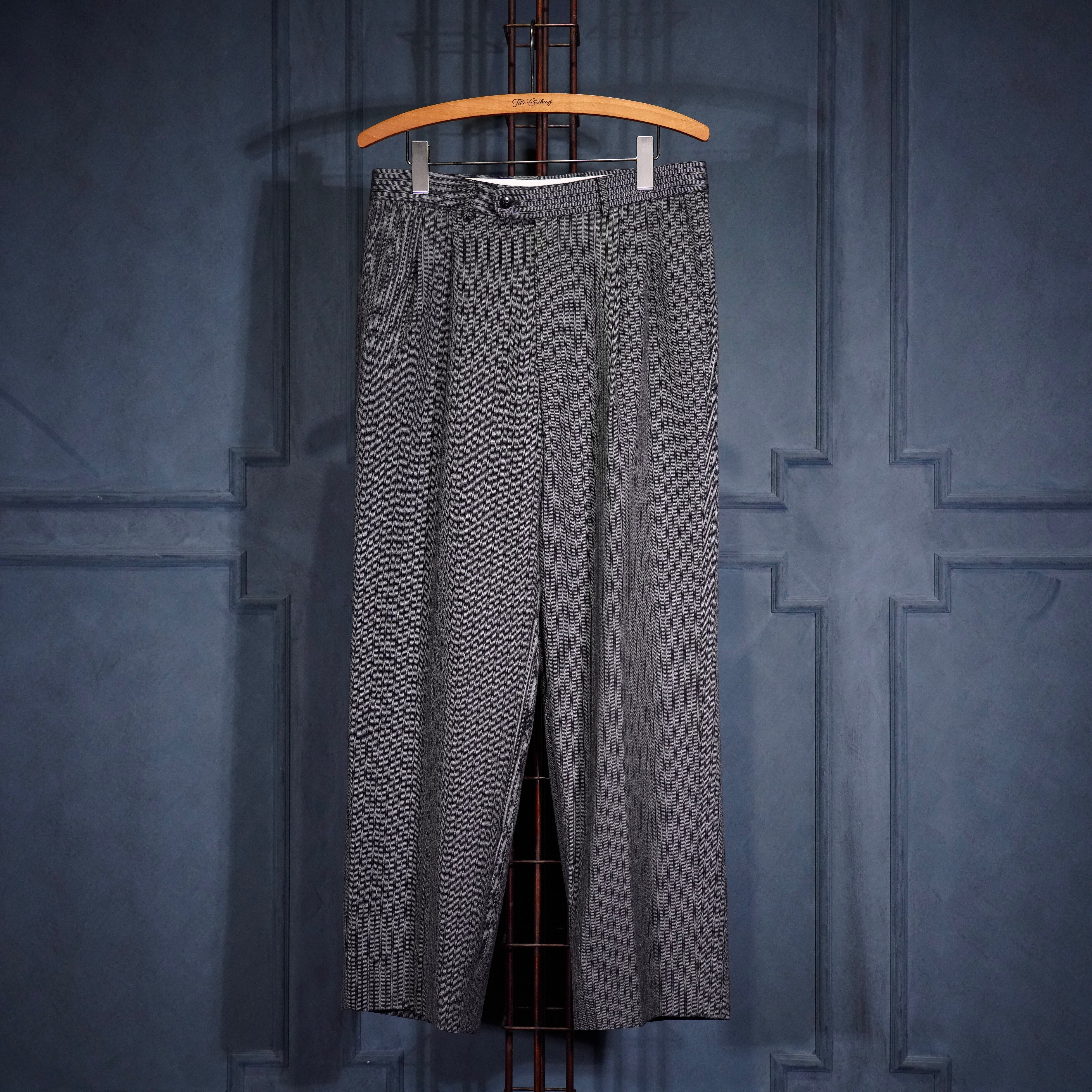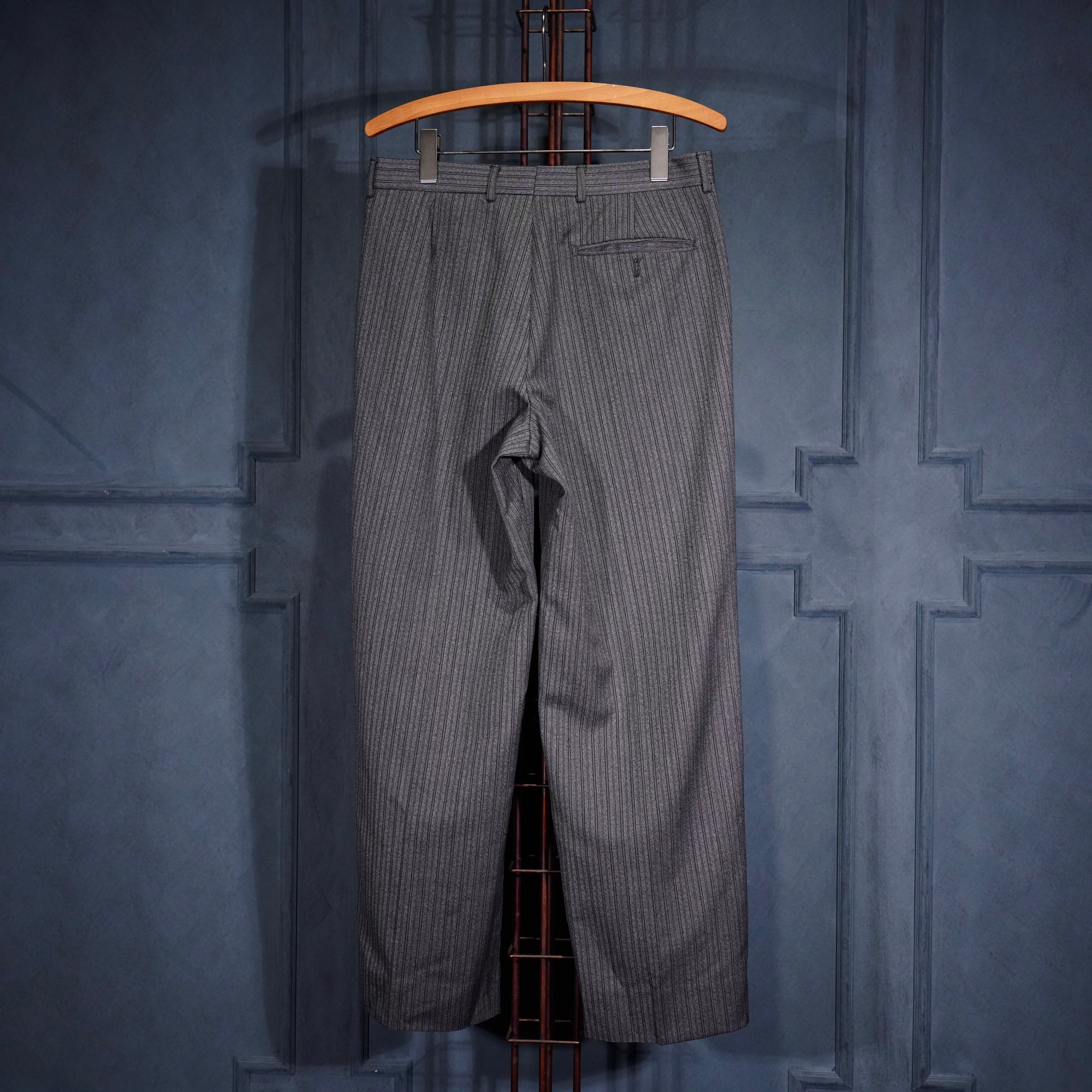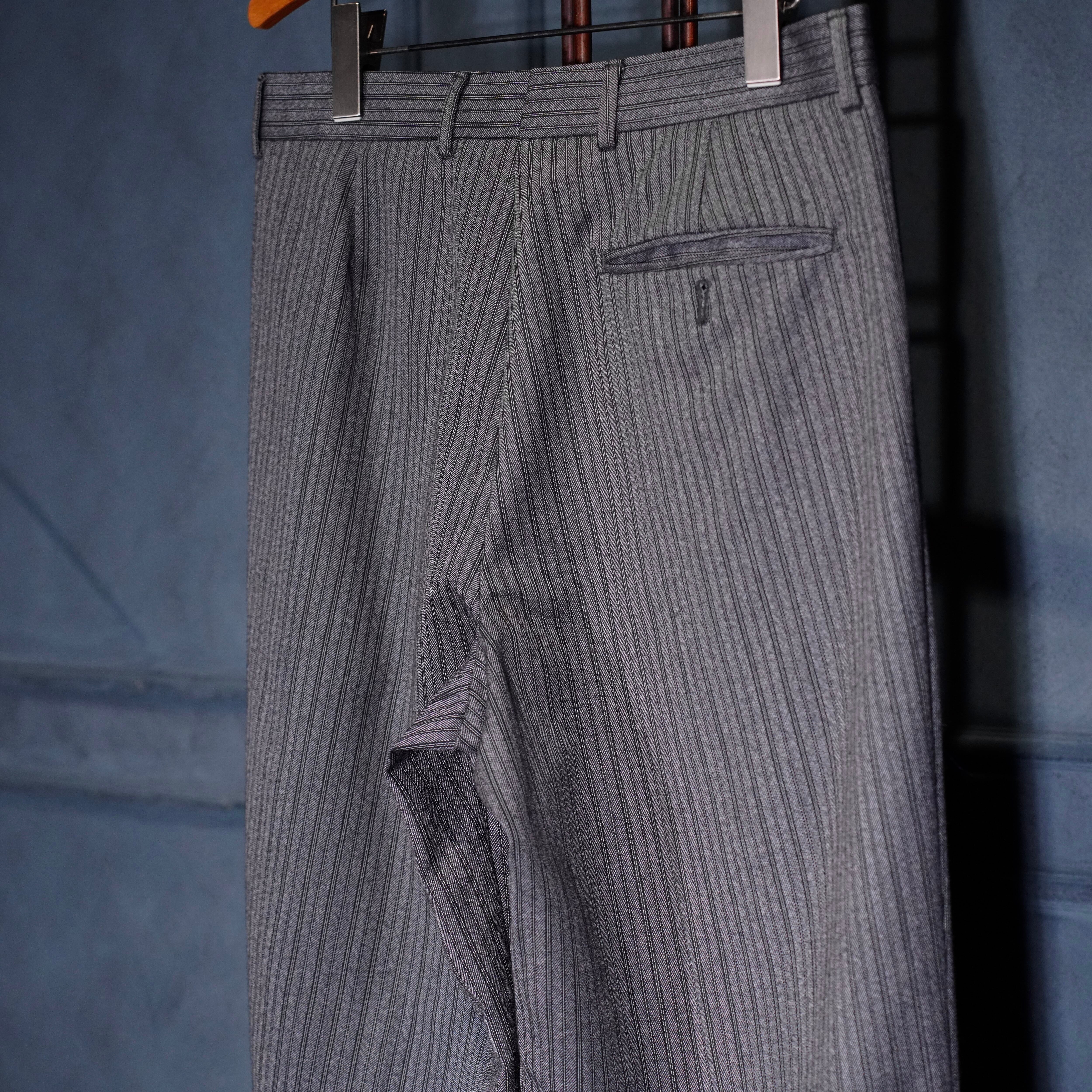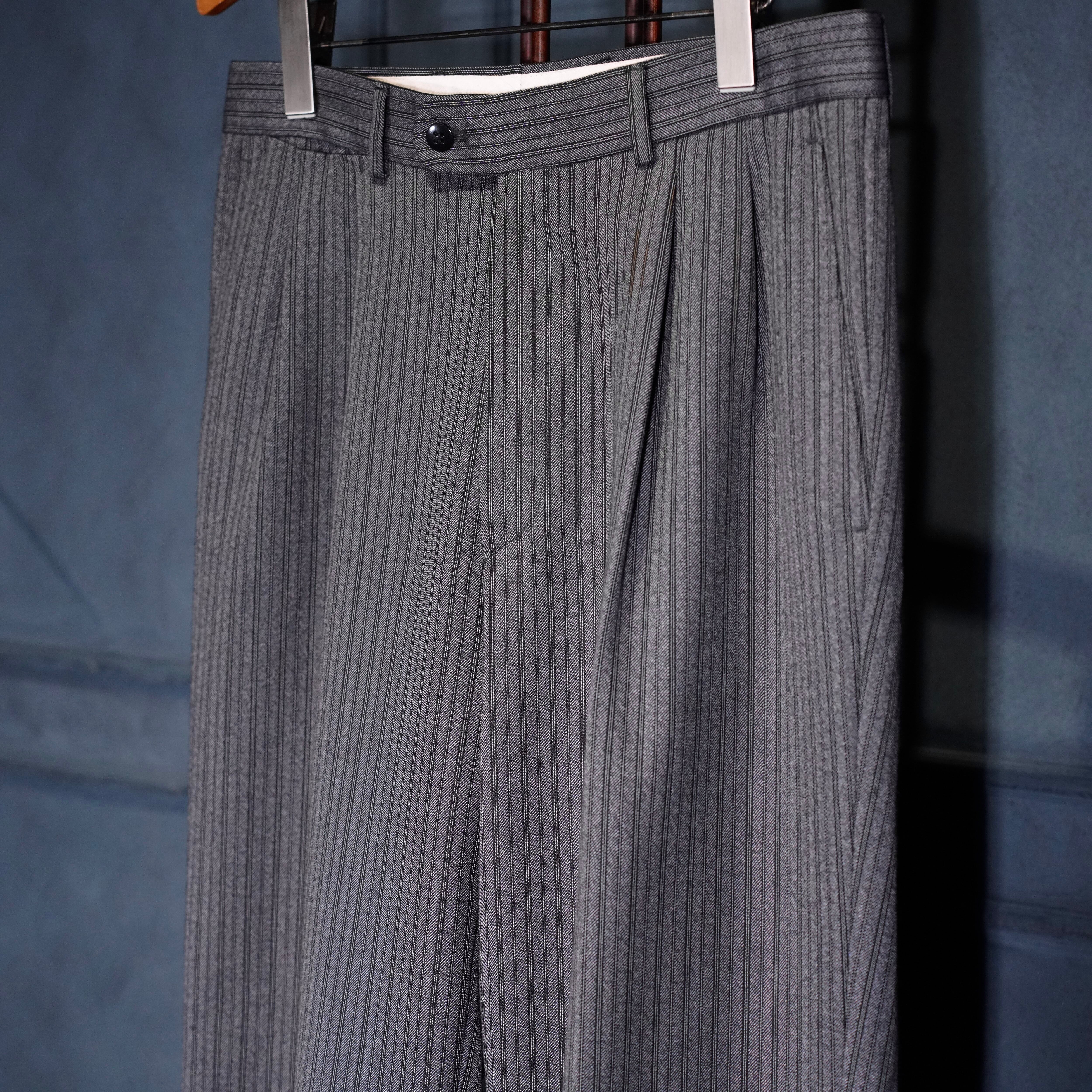 EU VINTAGE coelho STRIPE PATTERNED TUCK DESIGN WOOL SLACKS PANTS/ヨーロッパ古着ストライプ柄タックデザインウールスラックスパンツ