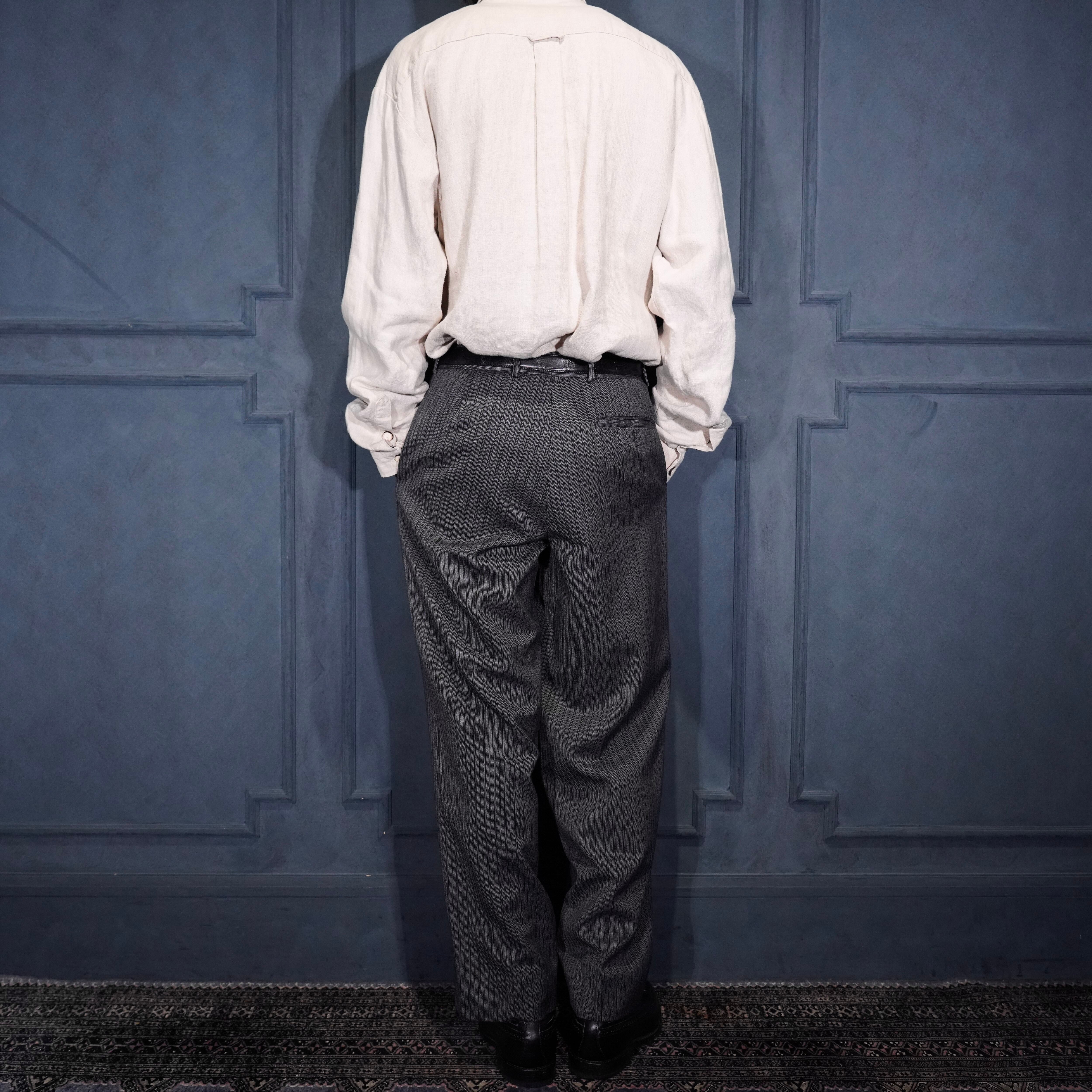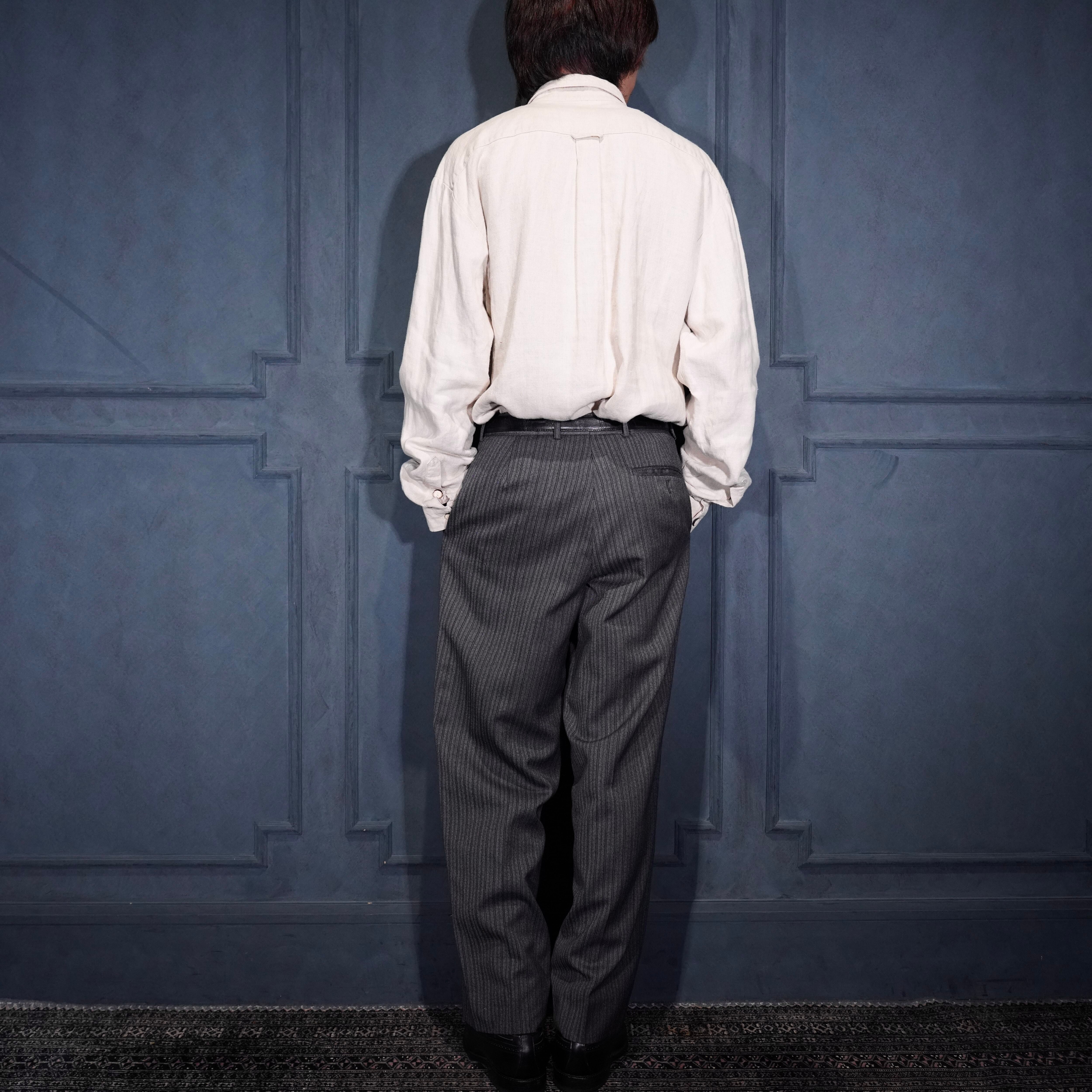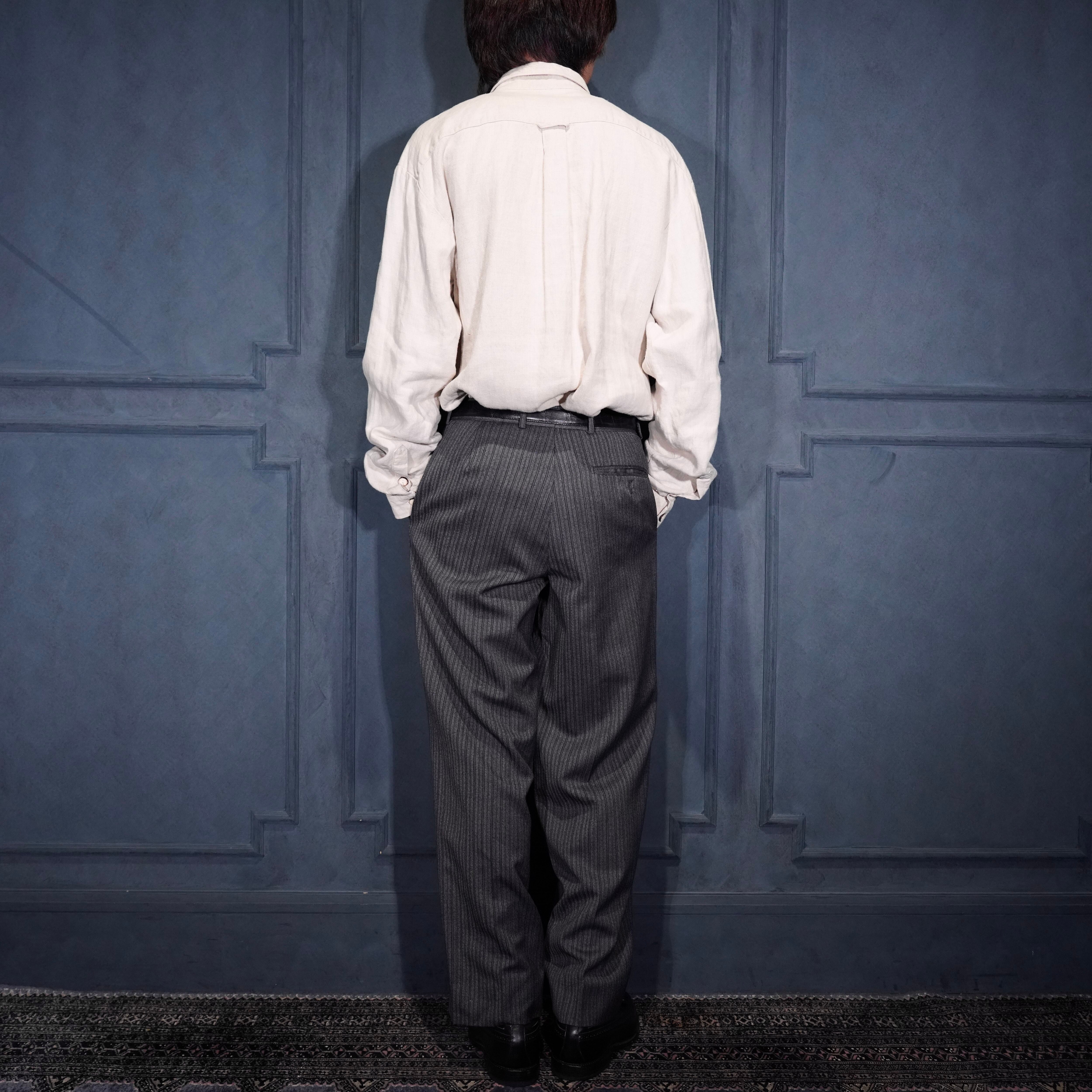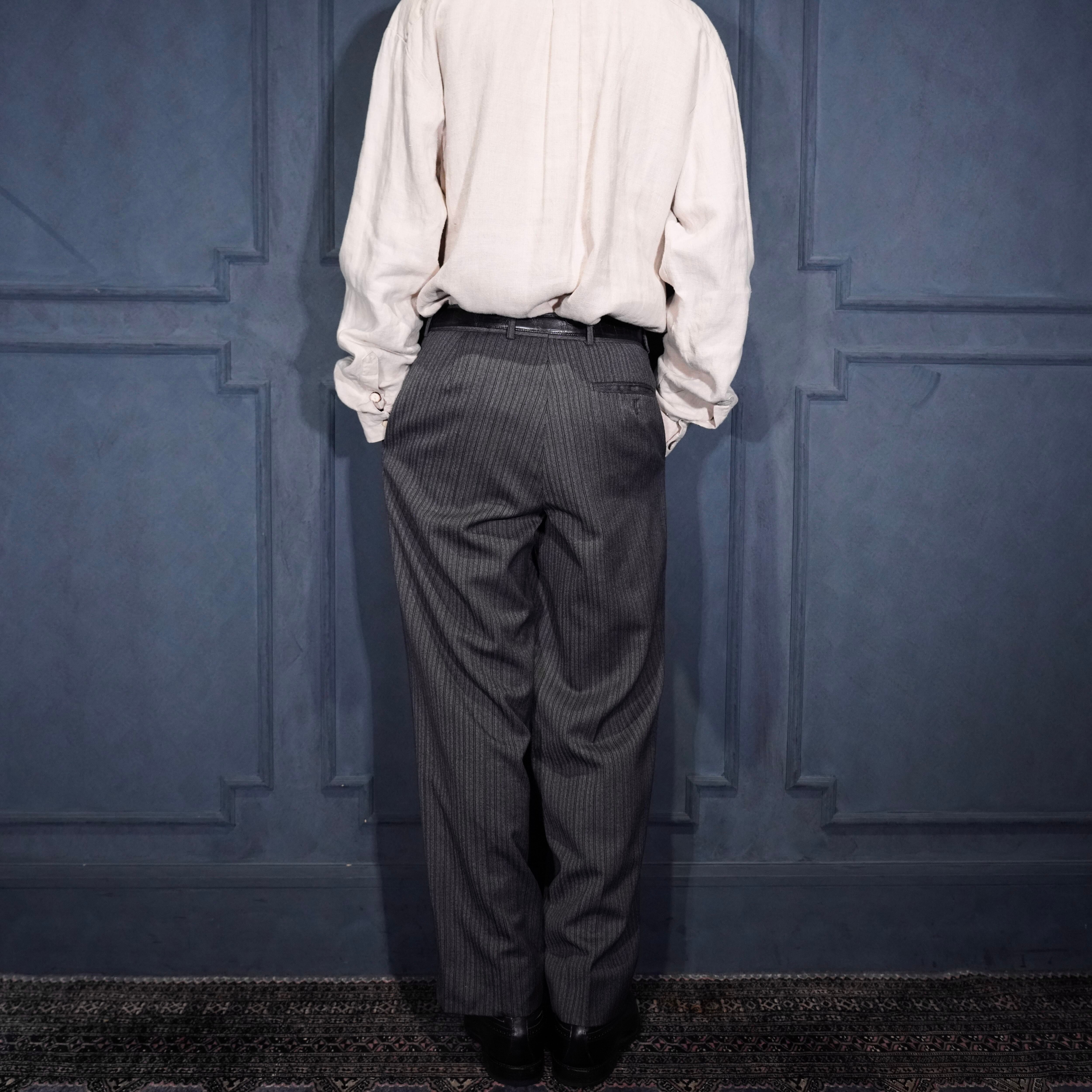 EU VINTAGE coelho STRIPE PATTERNED TUCK DESIGN WOOL SLACKS PANTS/ヨーロッパ古着ストライプ柄タックデザインウールスラックスパンツ