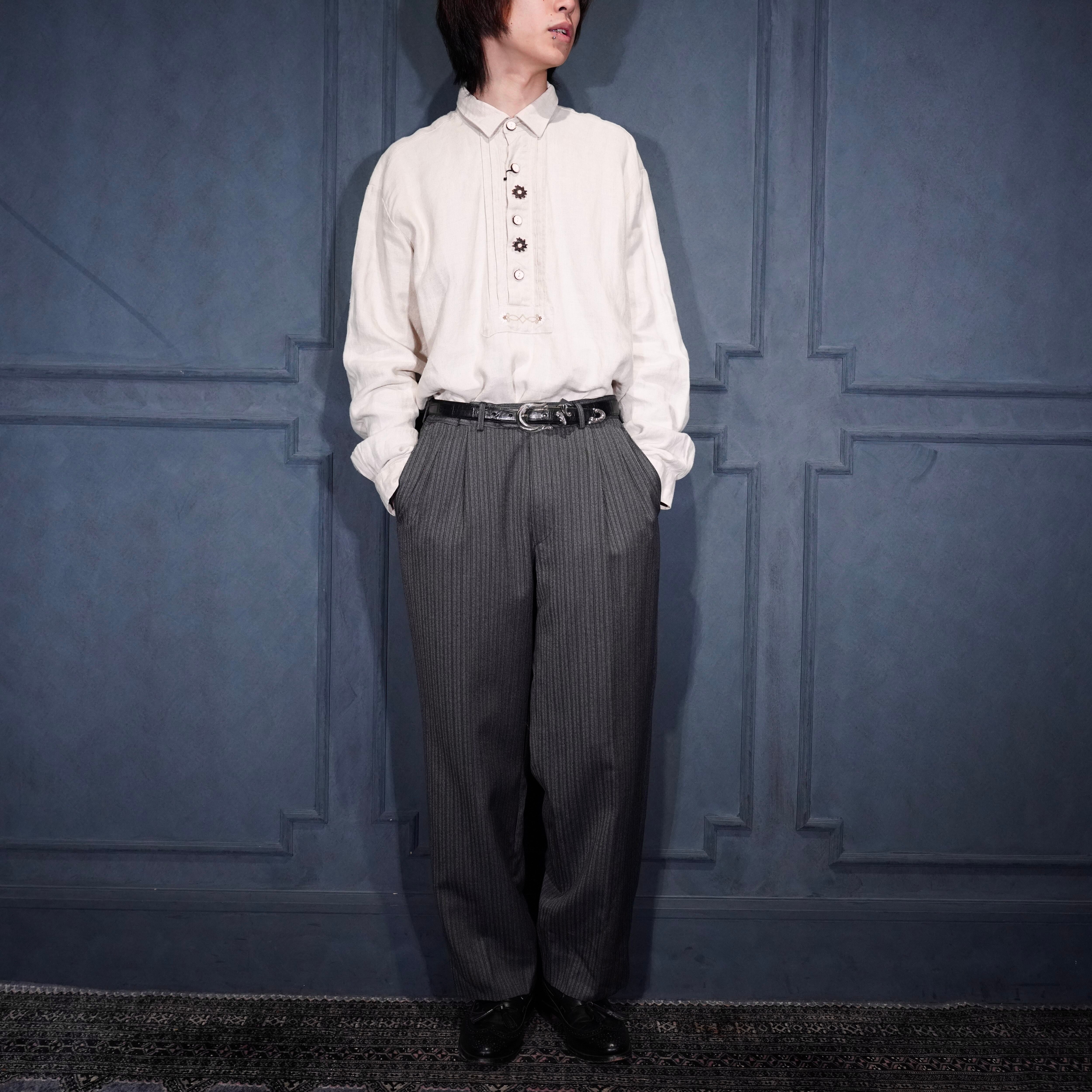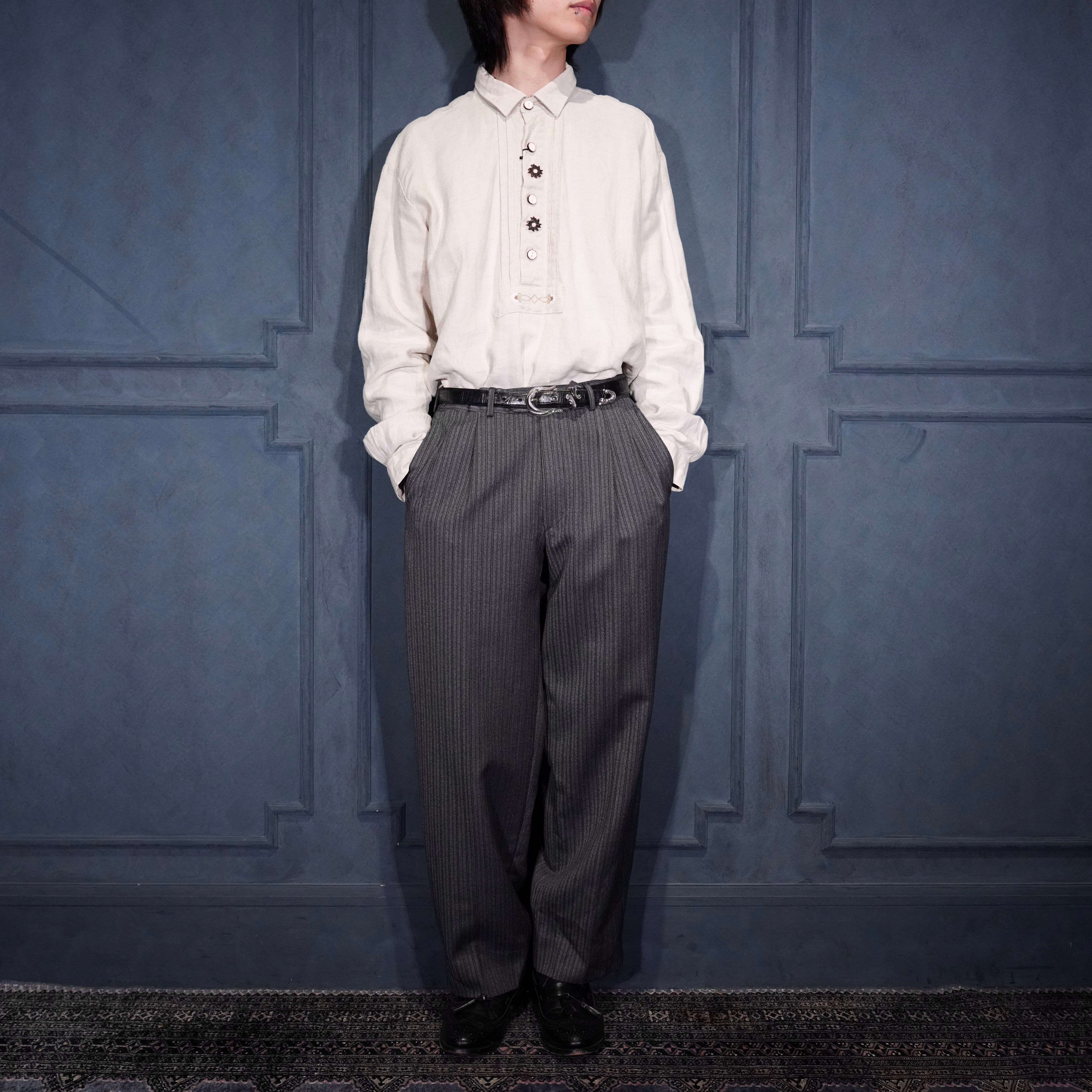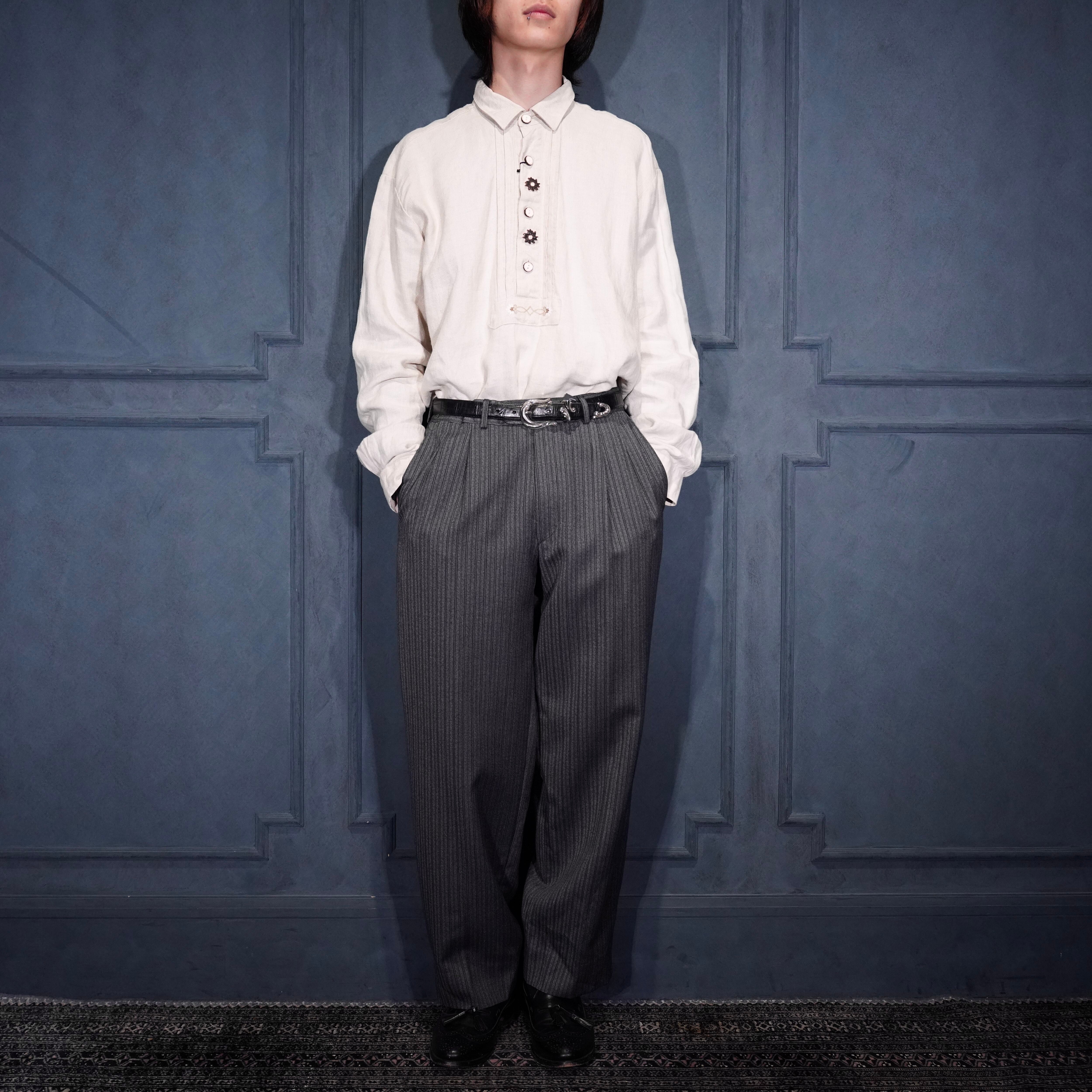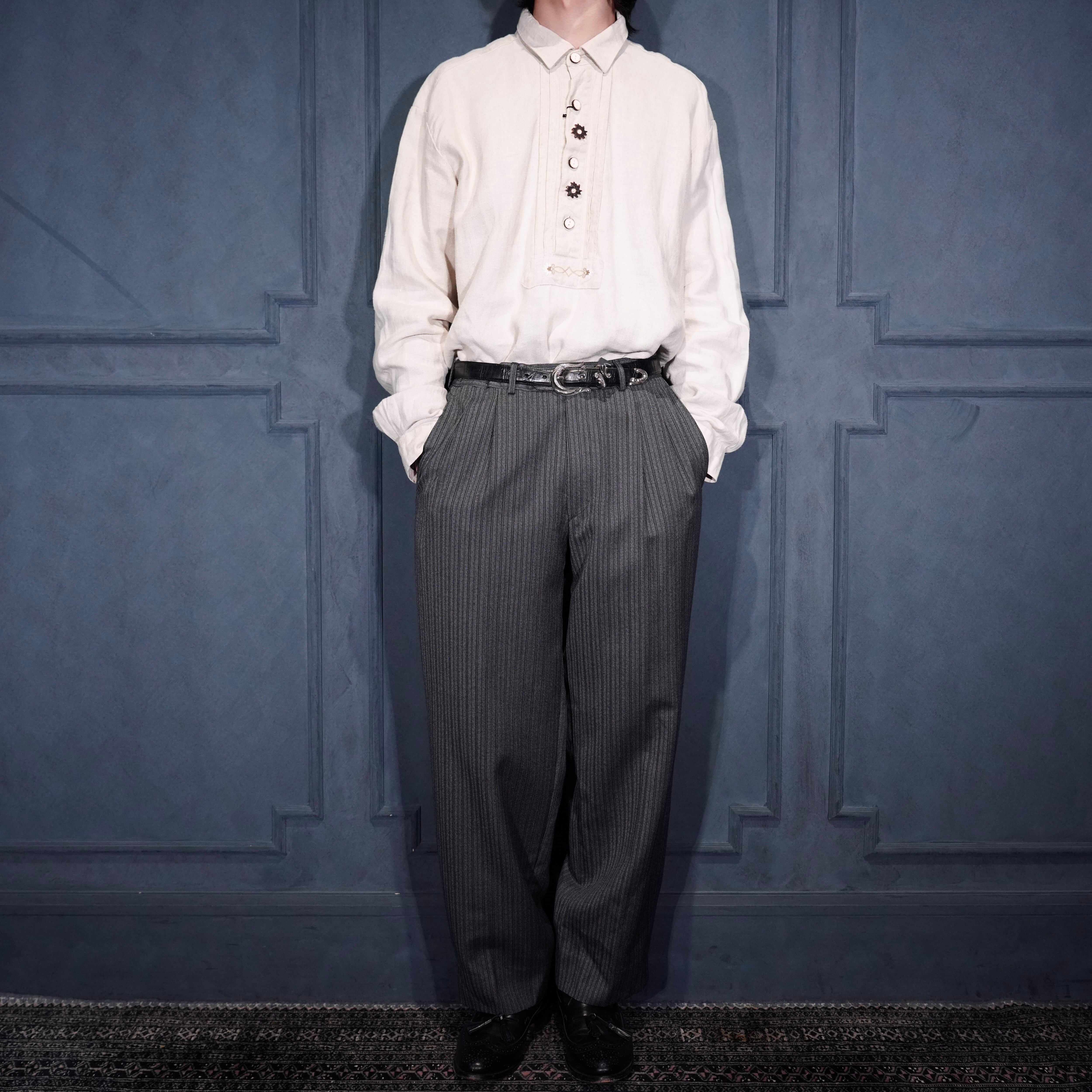 EU VINTAGE coelho STRIPE PATTERNED TUCK DESIGN WOOL SLACKS PANTS/ヨーロッパ古着ストライプ柄タックデザインウールスラックスパンツ