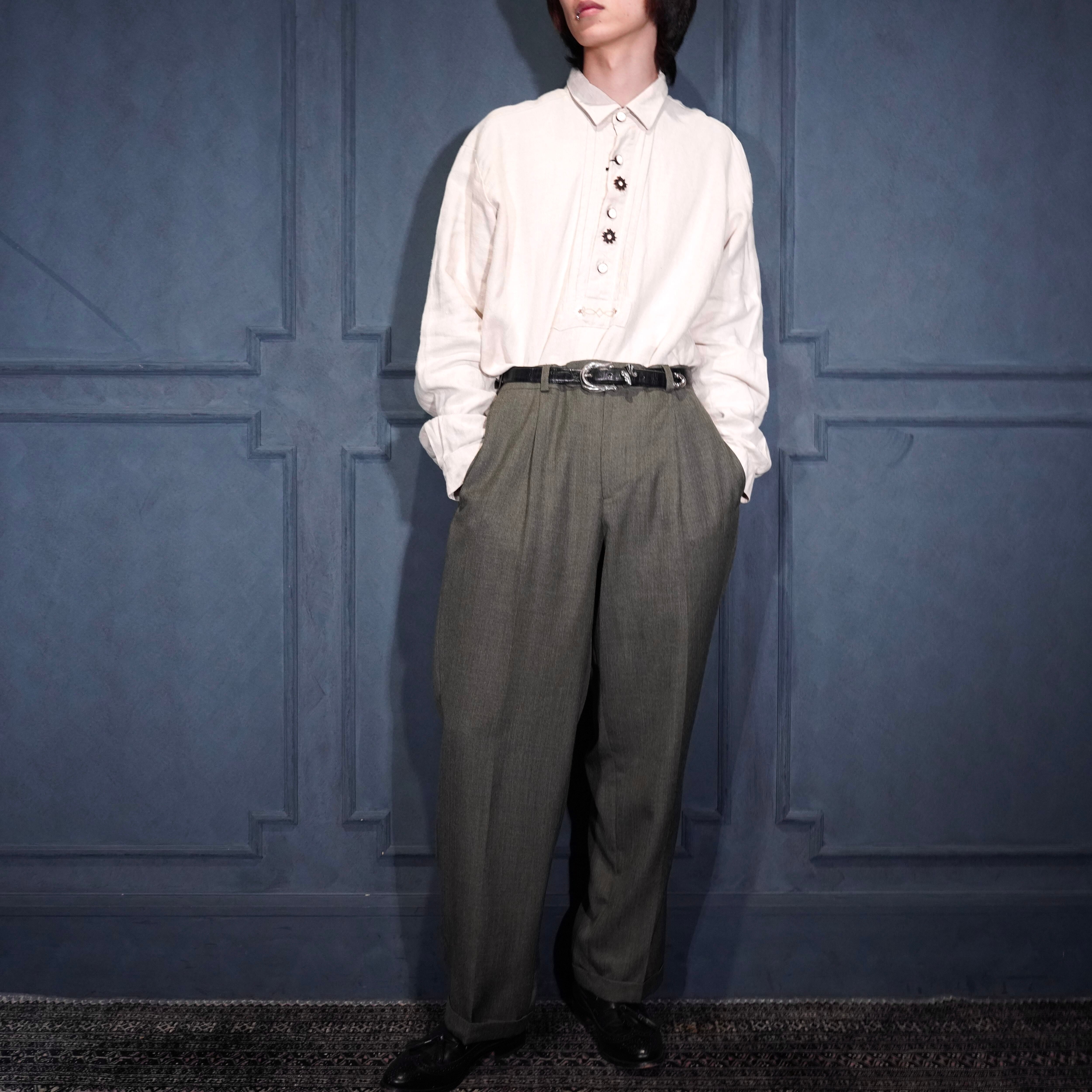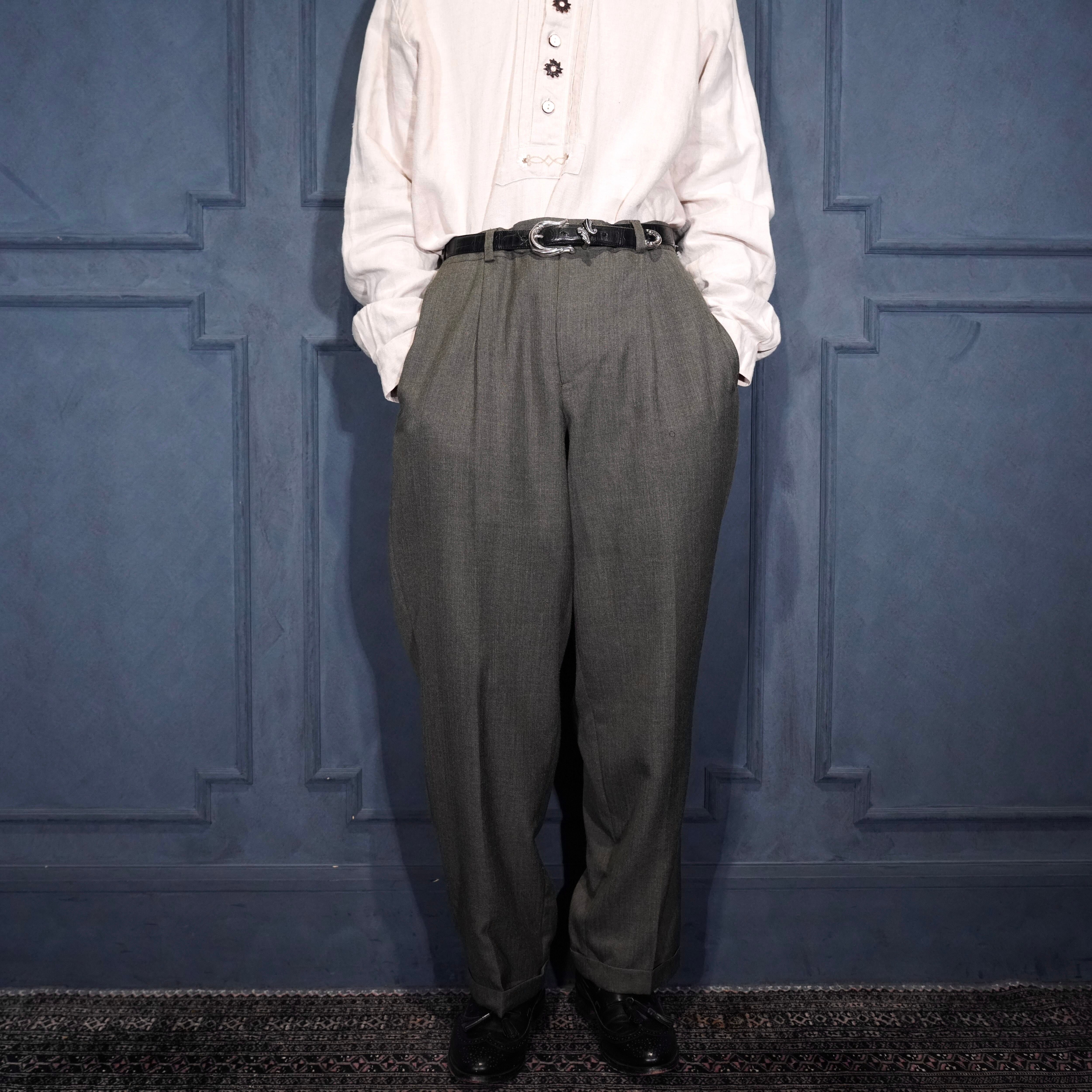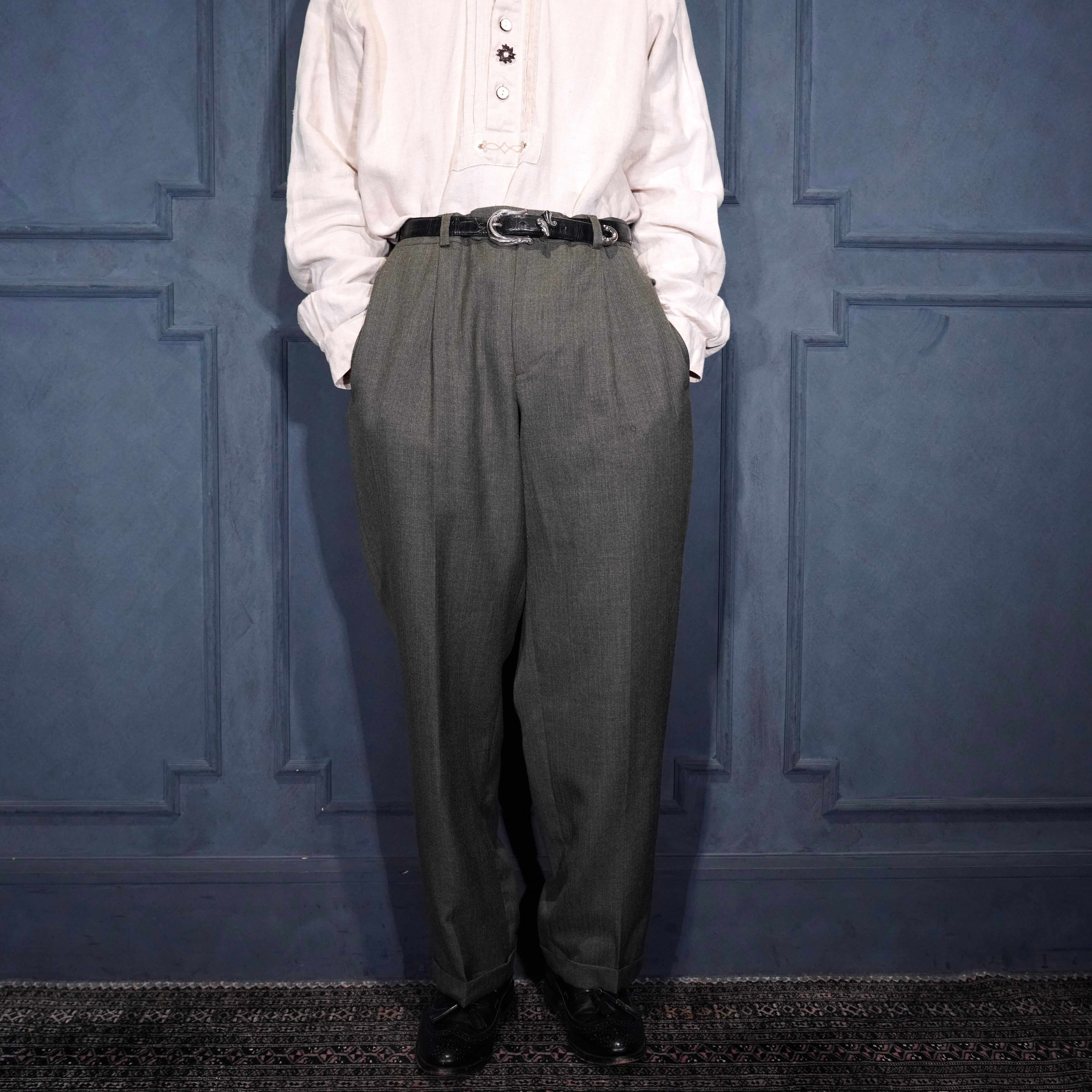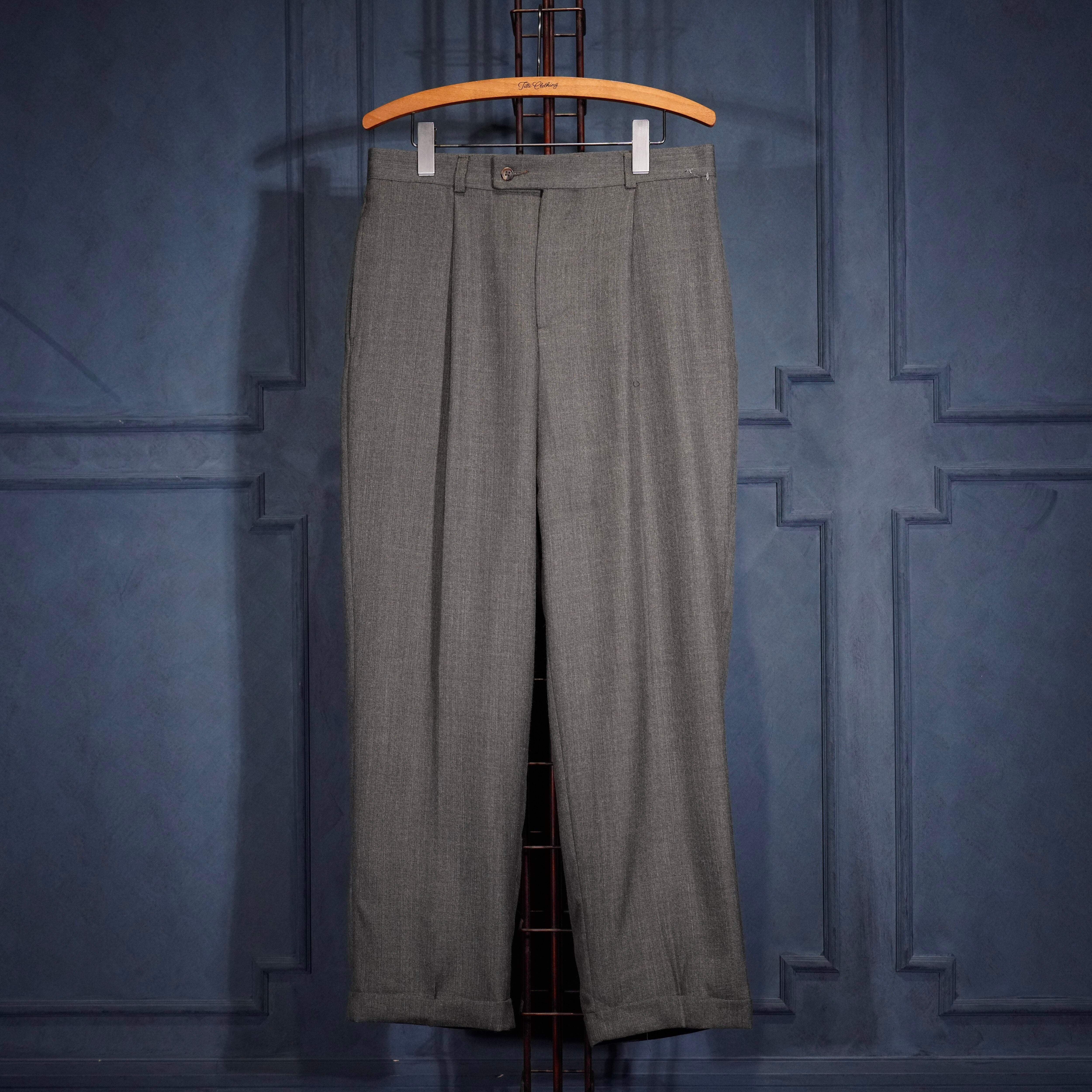 USA VINTAGE PERRY ELLIS TUCK DESIGN WOOL SLACKS PANTS/アメリカ古着ペリーエリスタックデザインウールスラックスパンツ