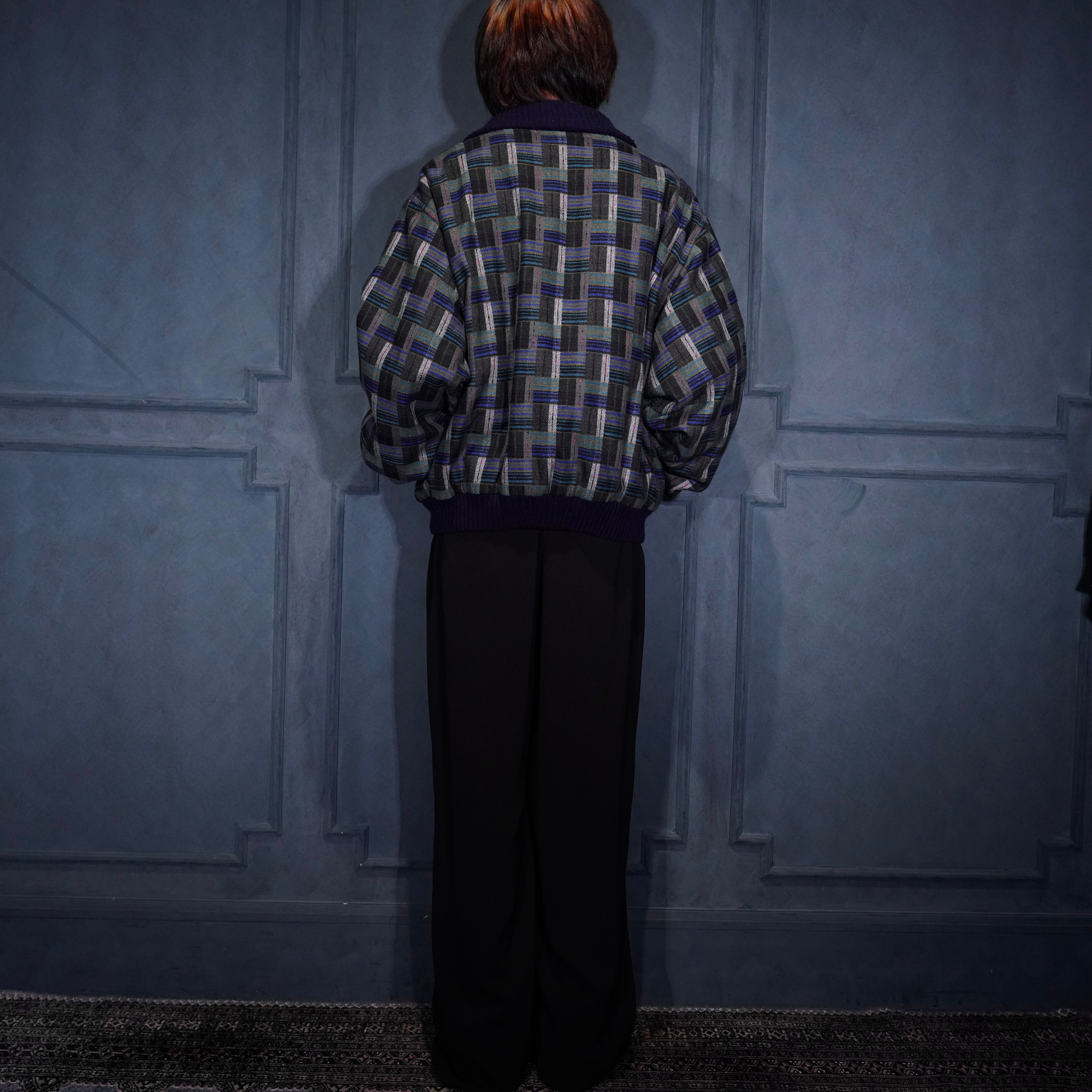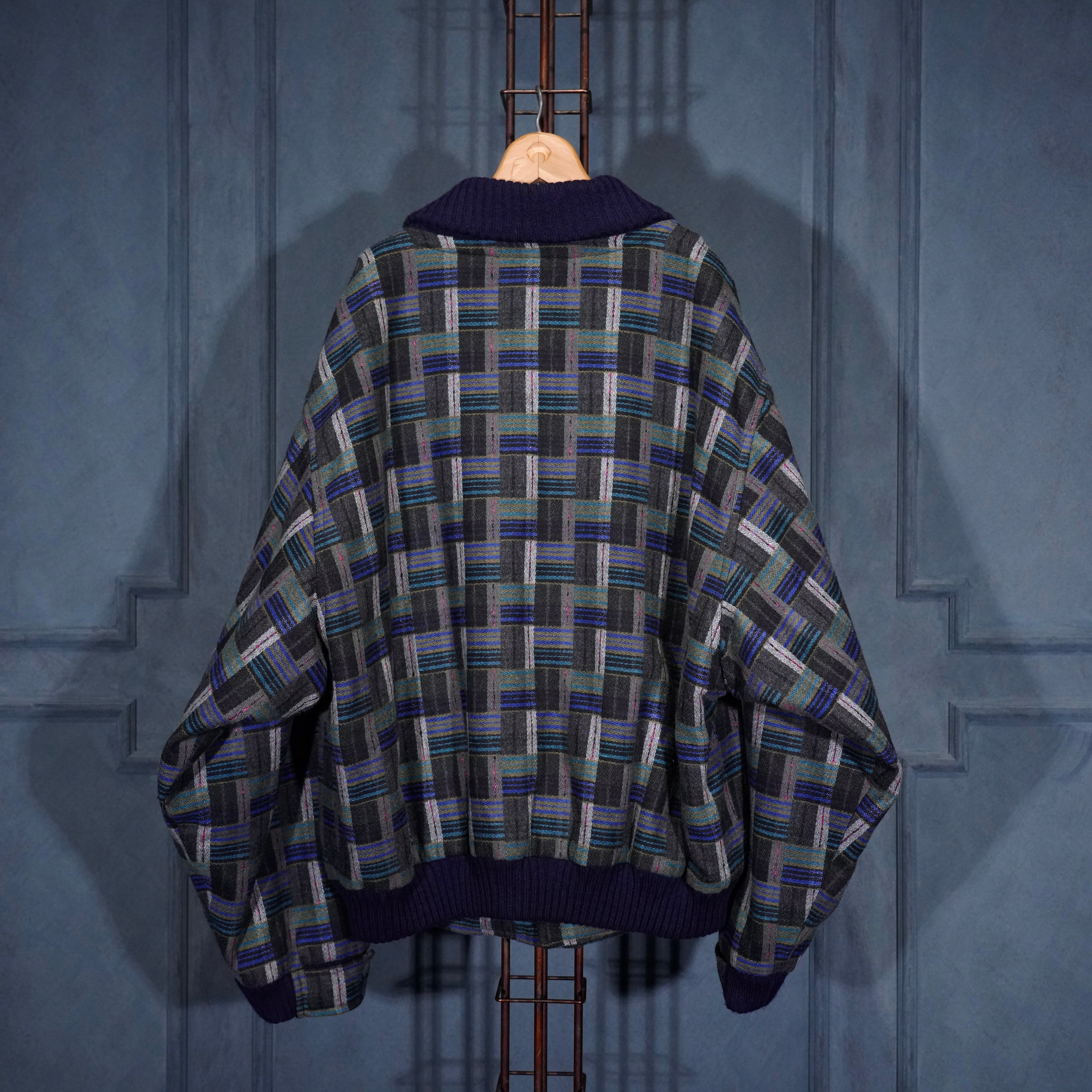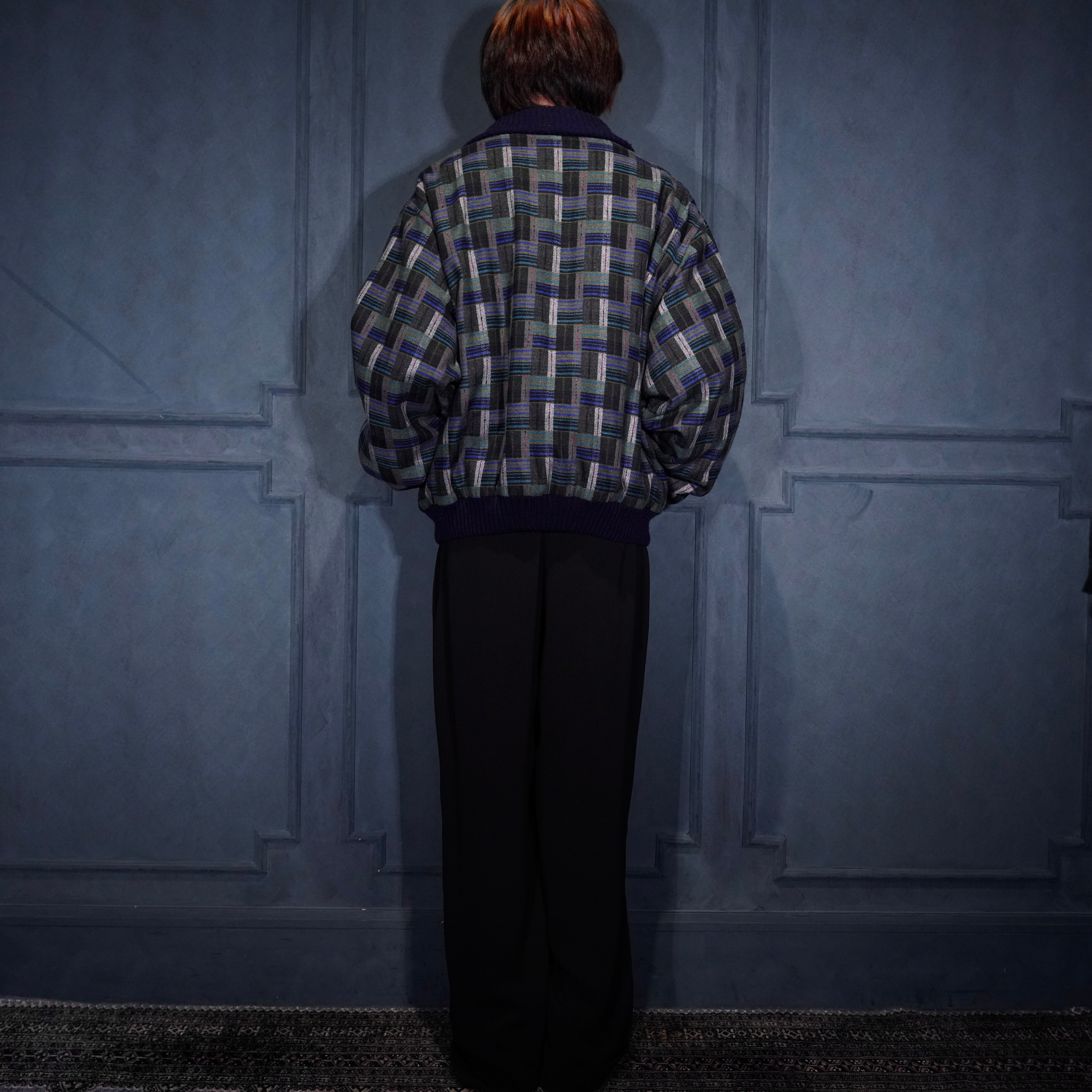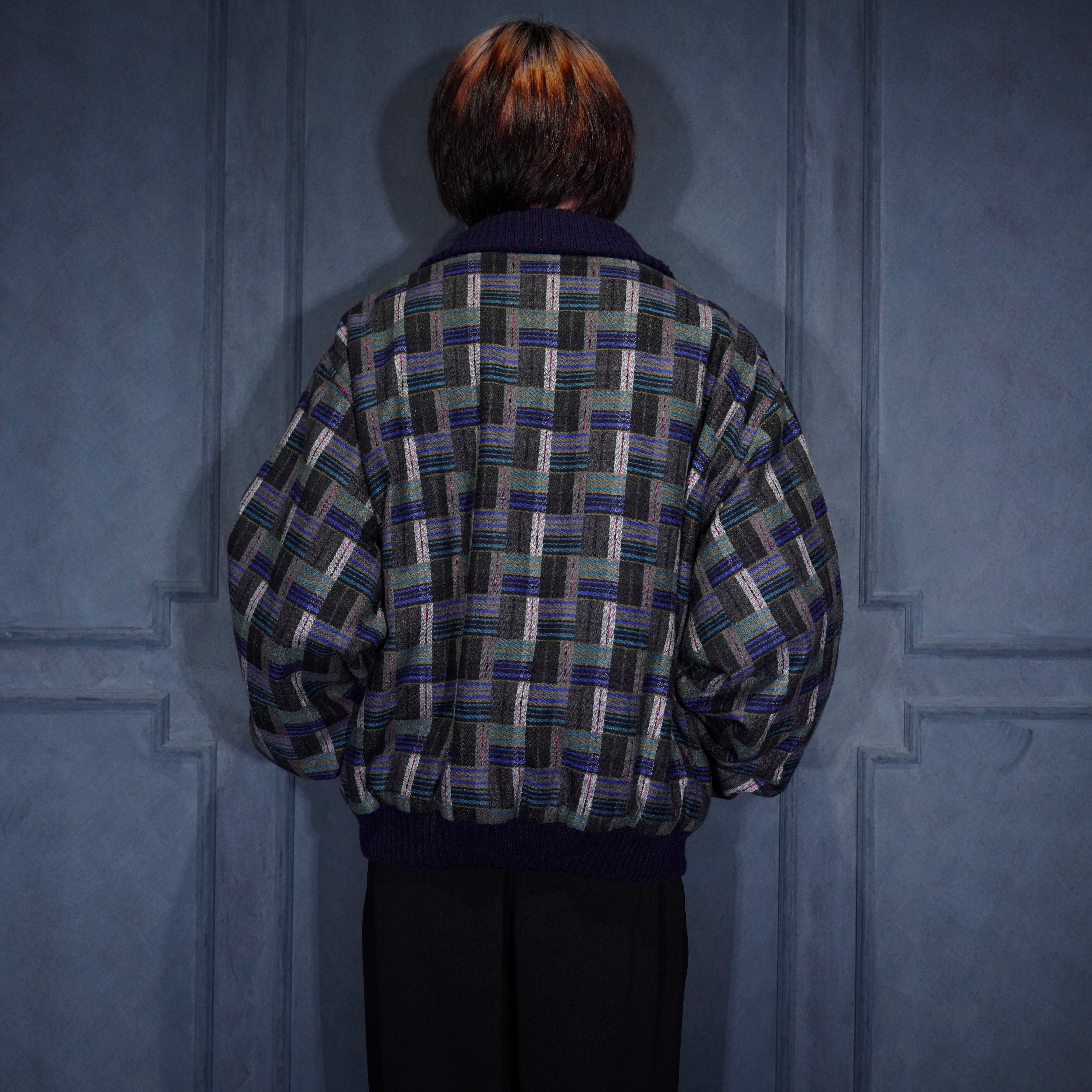 EU VINTAGE PATTERNED WOVEN DESIGN KNIT BLOUSON MADE IN PORTUGAL/ヨーロッパ古着柄織デザインニットブルゾン
