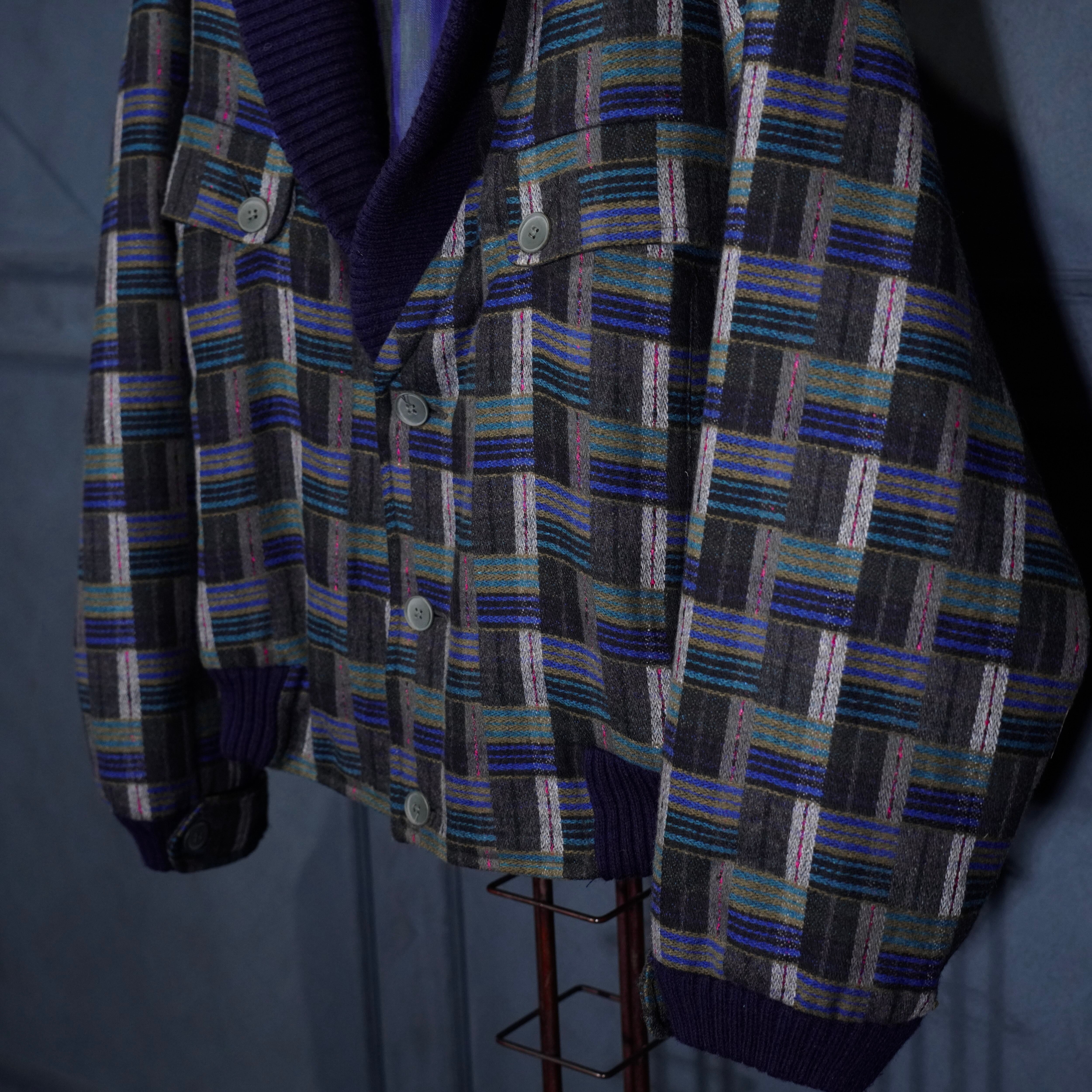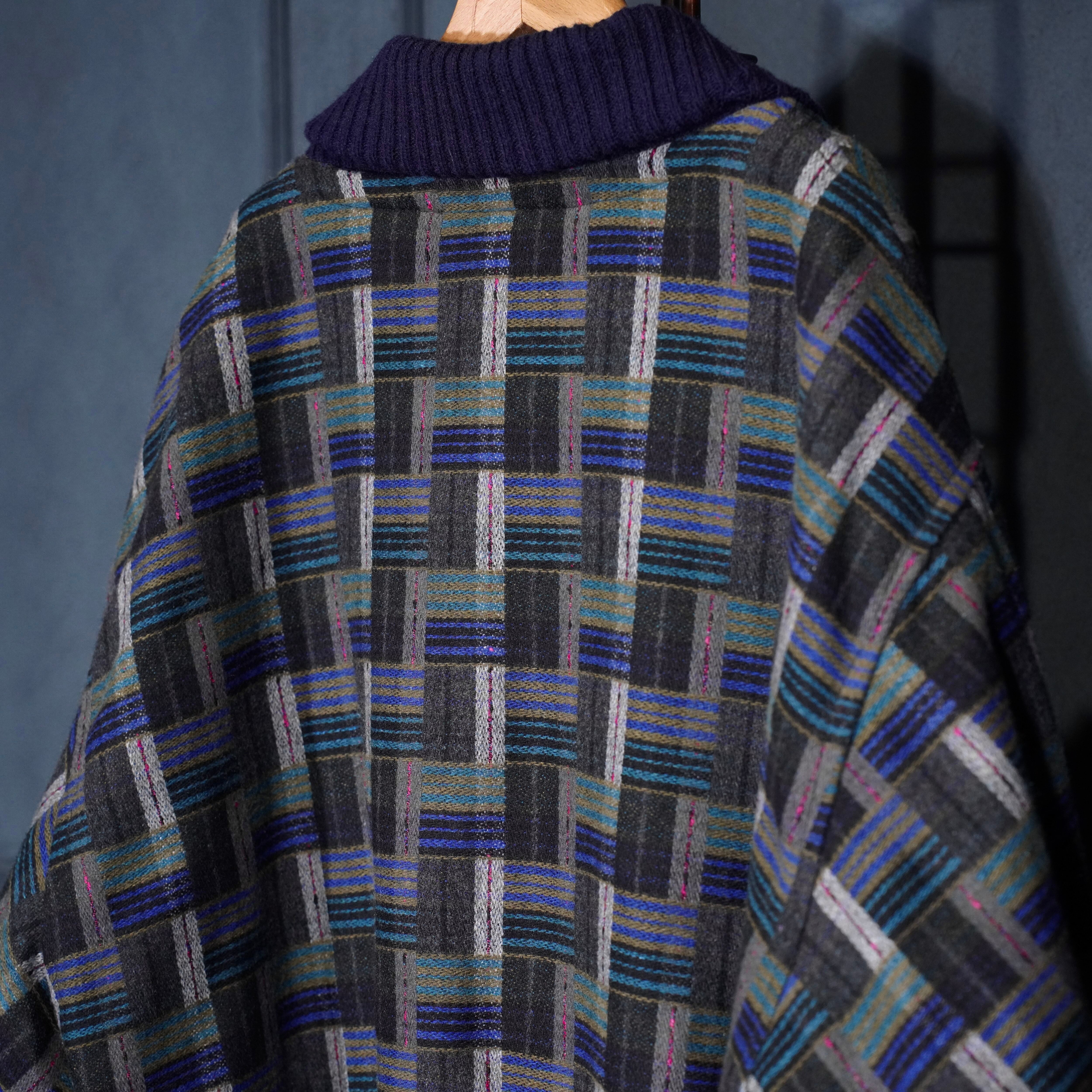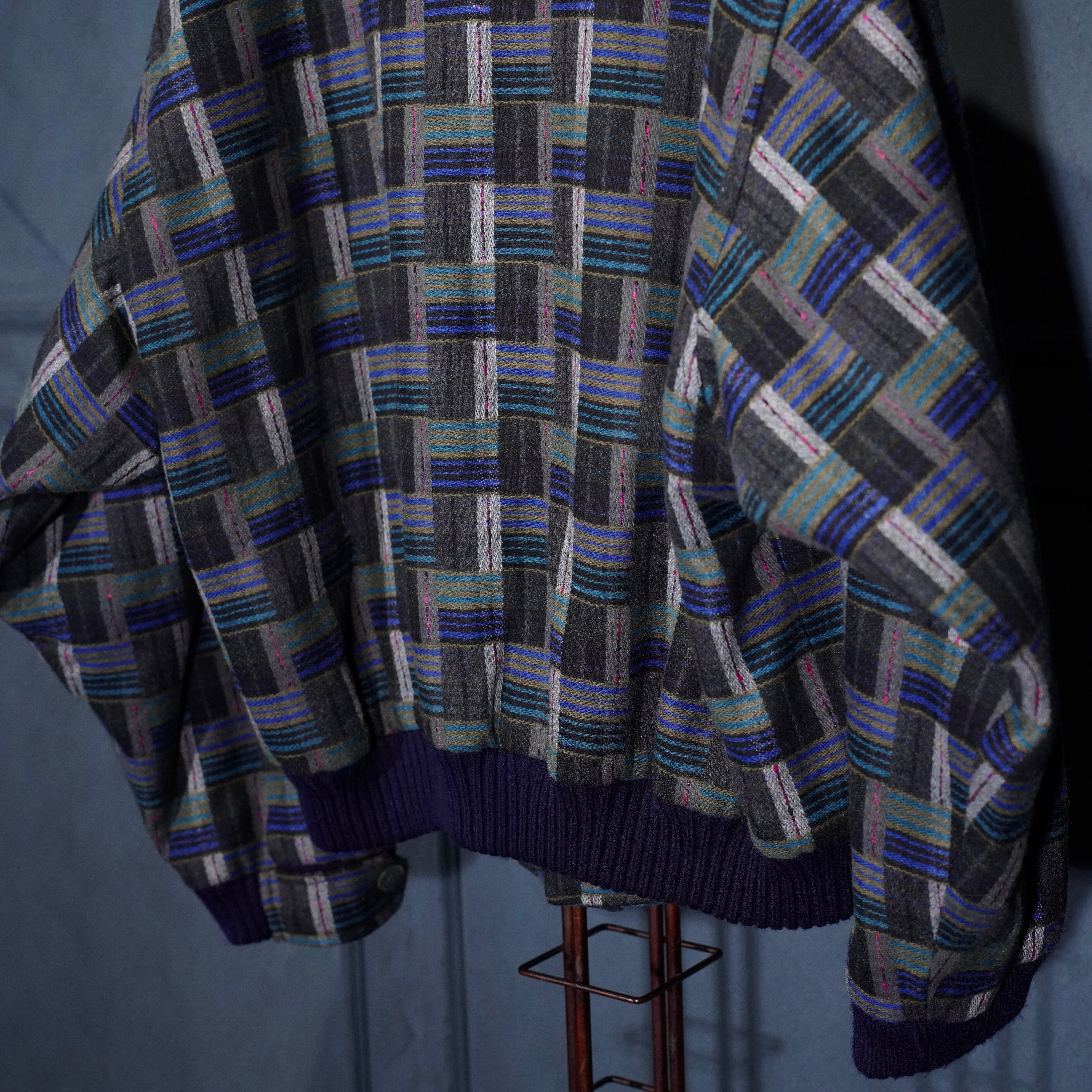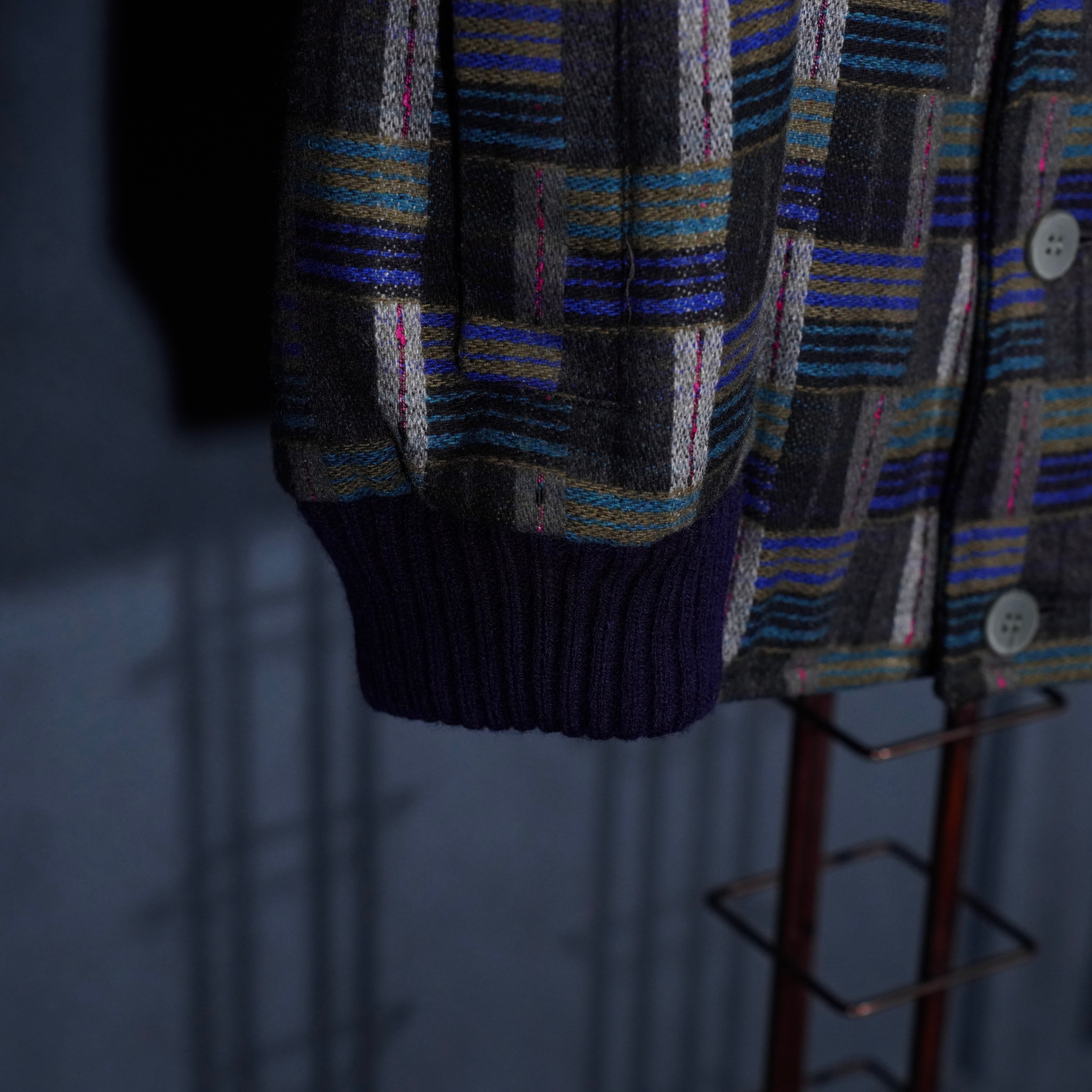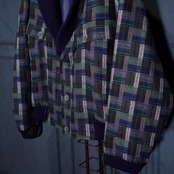 EU VINTAGE PATTERNED WOVEN DESIGN KNIT BLOUSON MADE IN PORTUGAL/ヨーロッパ古着柄織デザインニットブルゾン