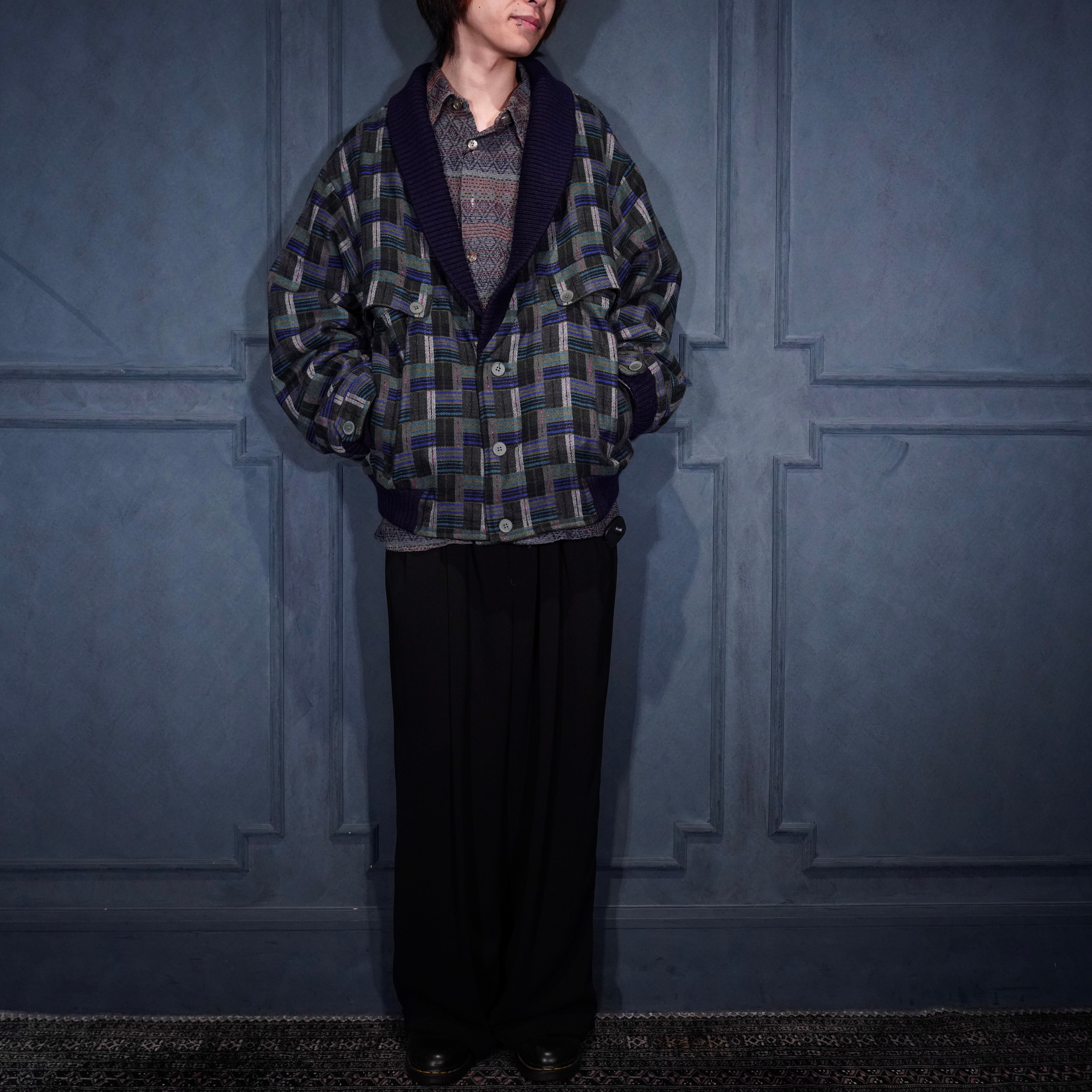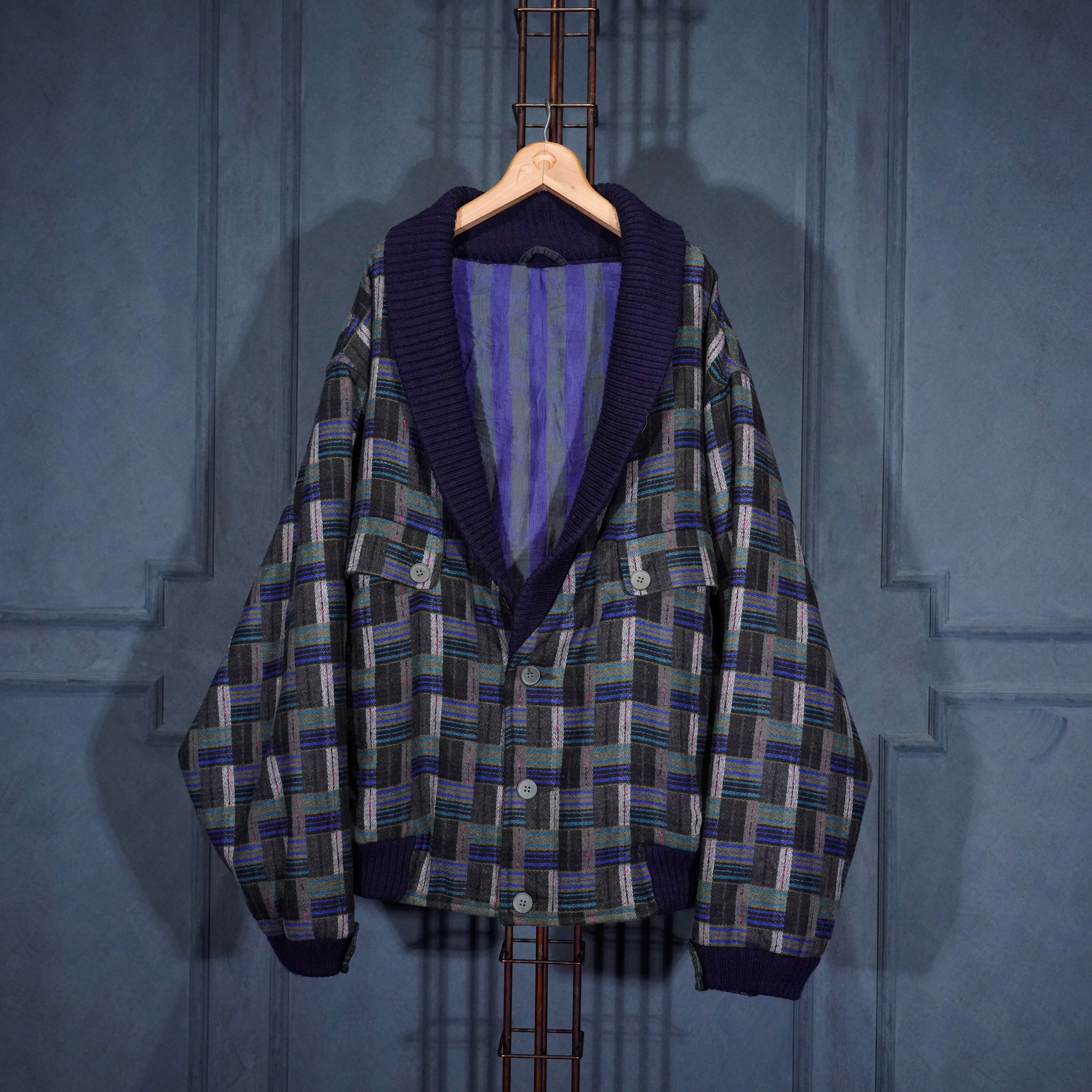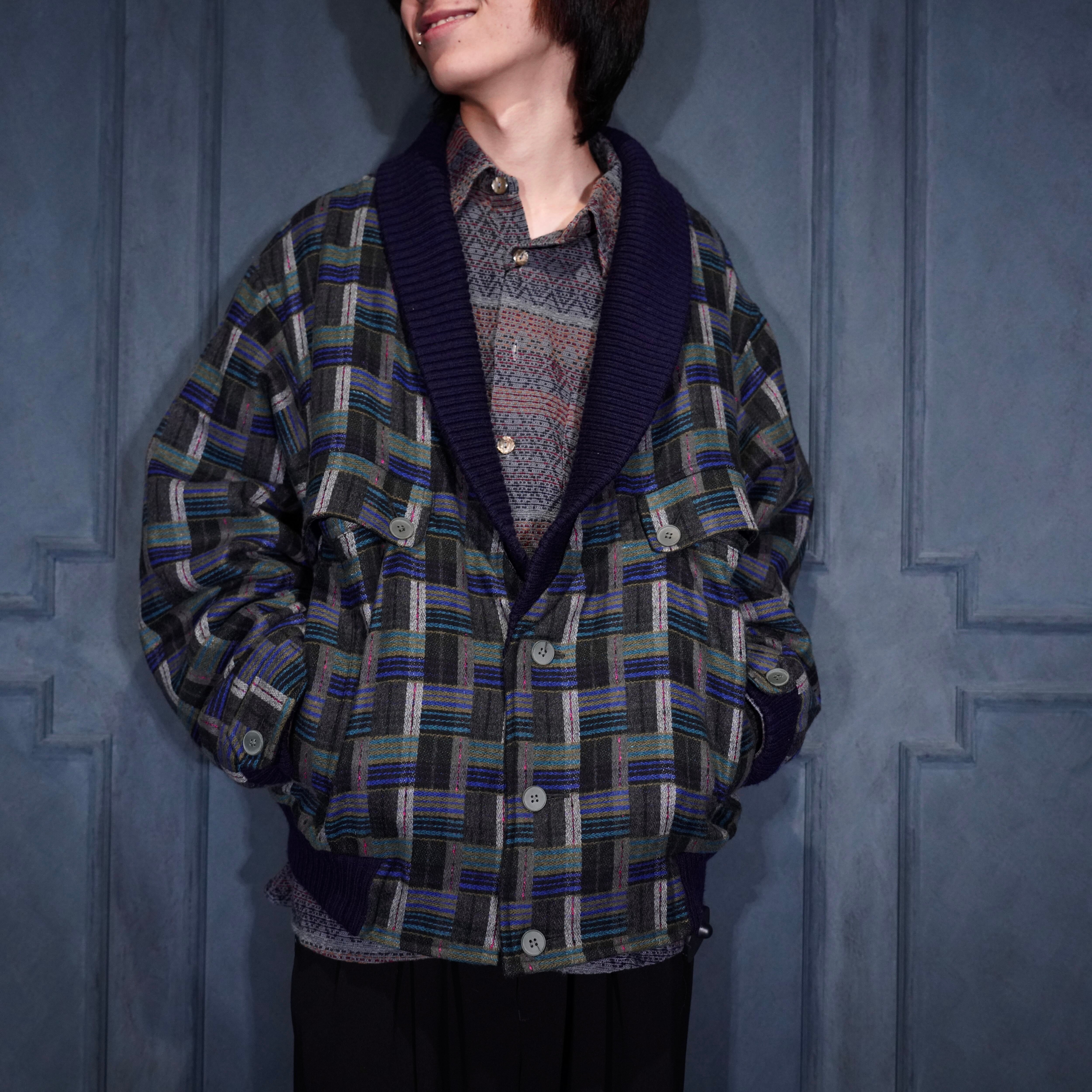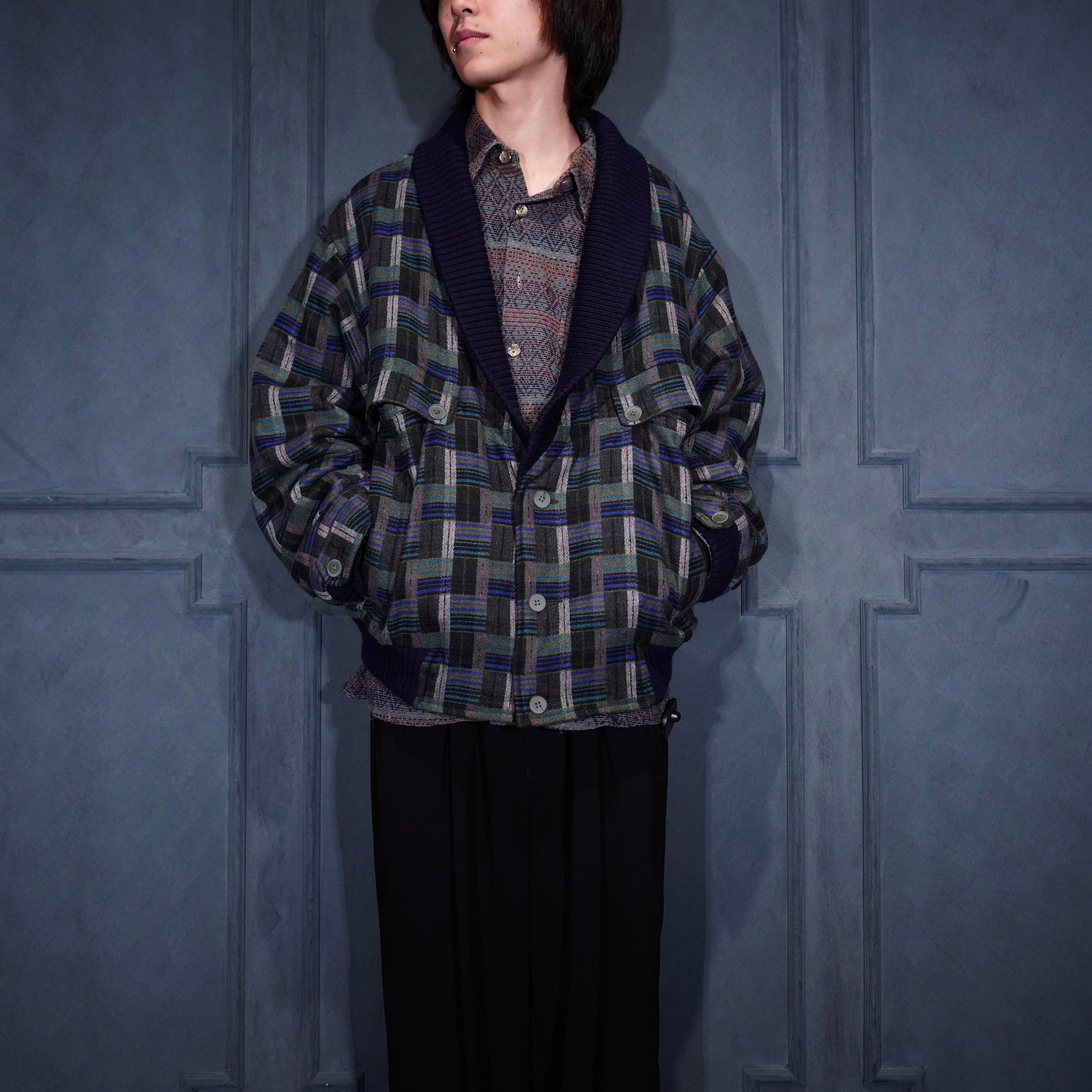 EU VINTAGE PATTERNED WOVEN DESIGN KNIT BLOUSON MADE IN PORTUGAL/ヨーロッパ古着柄織デザインニットブルゾン
