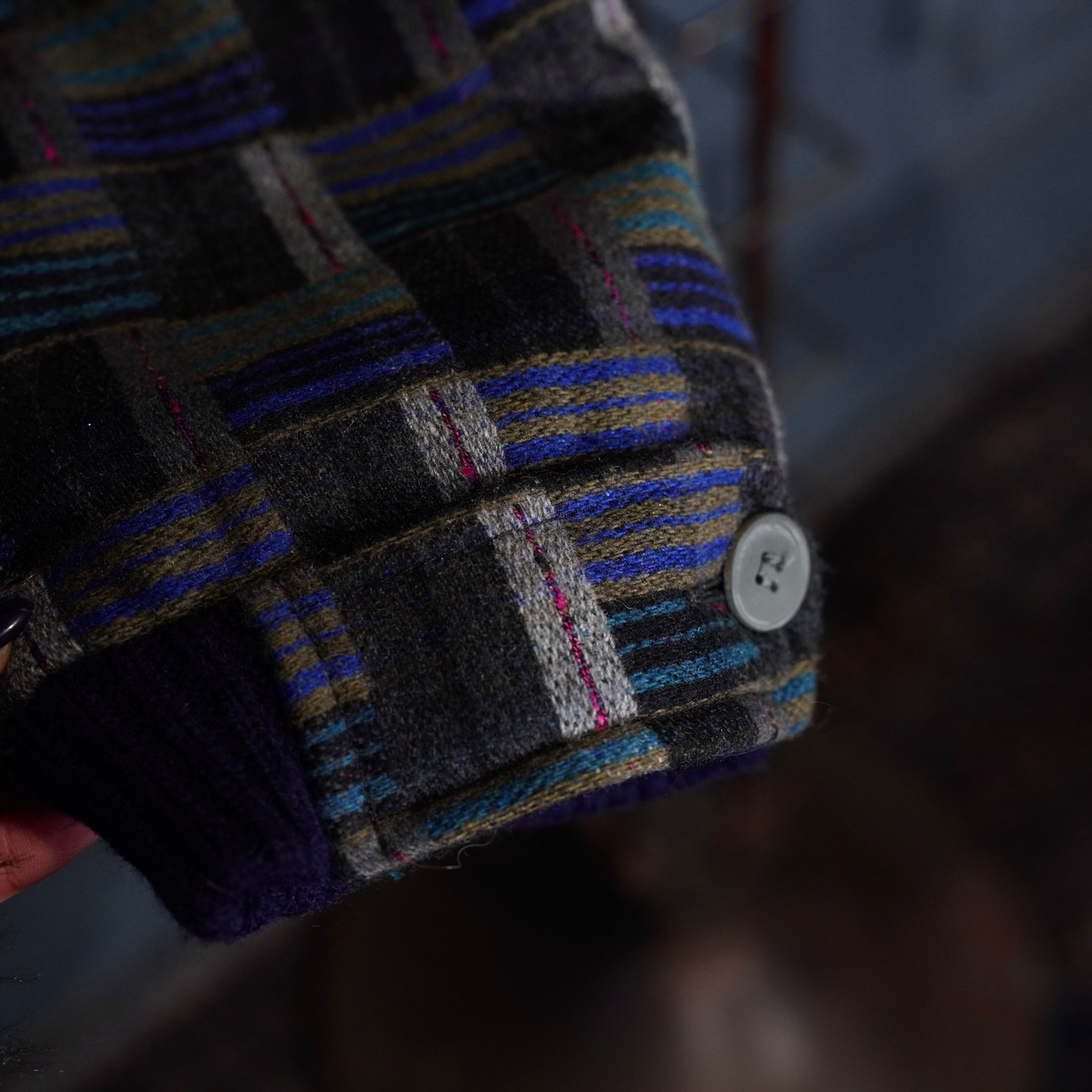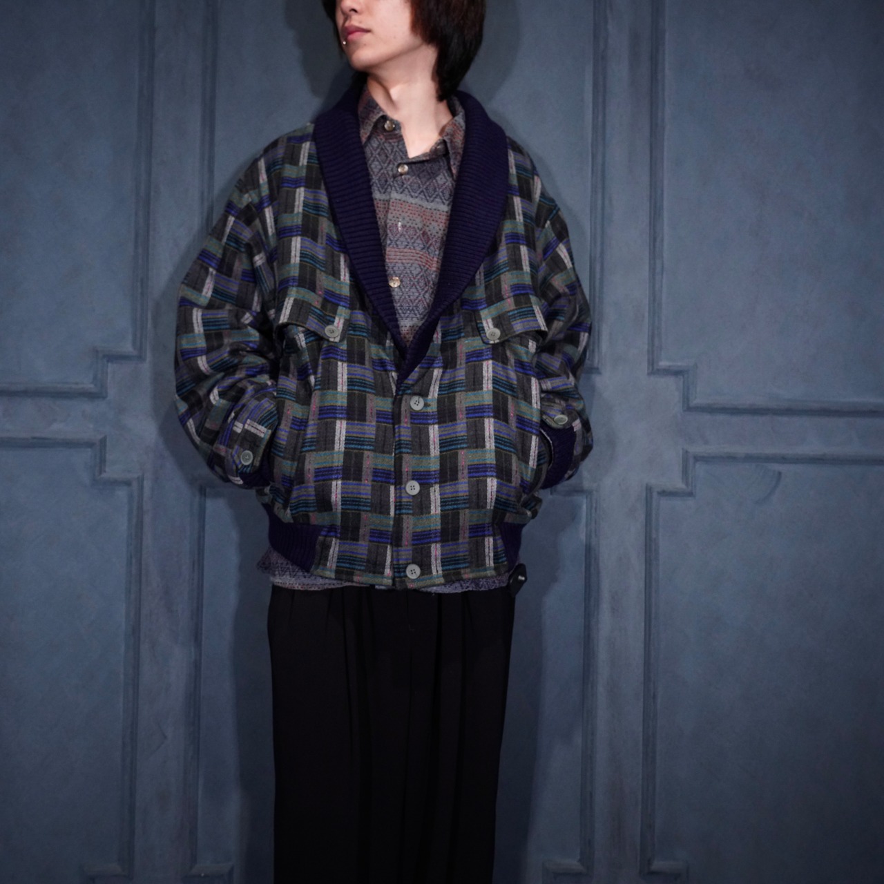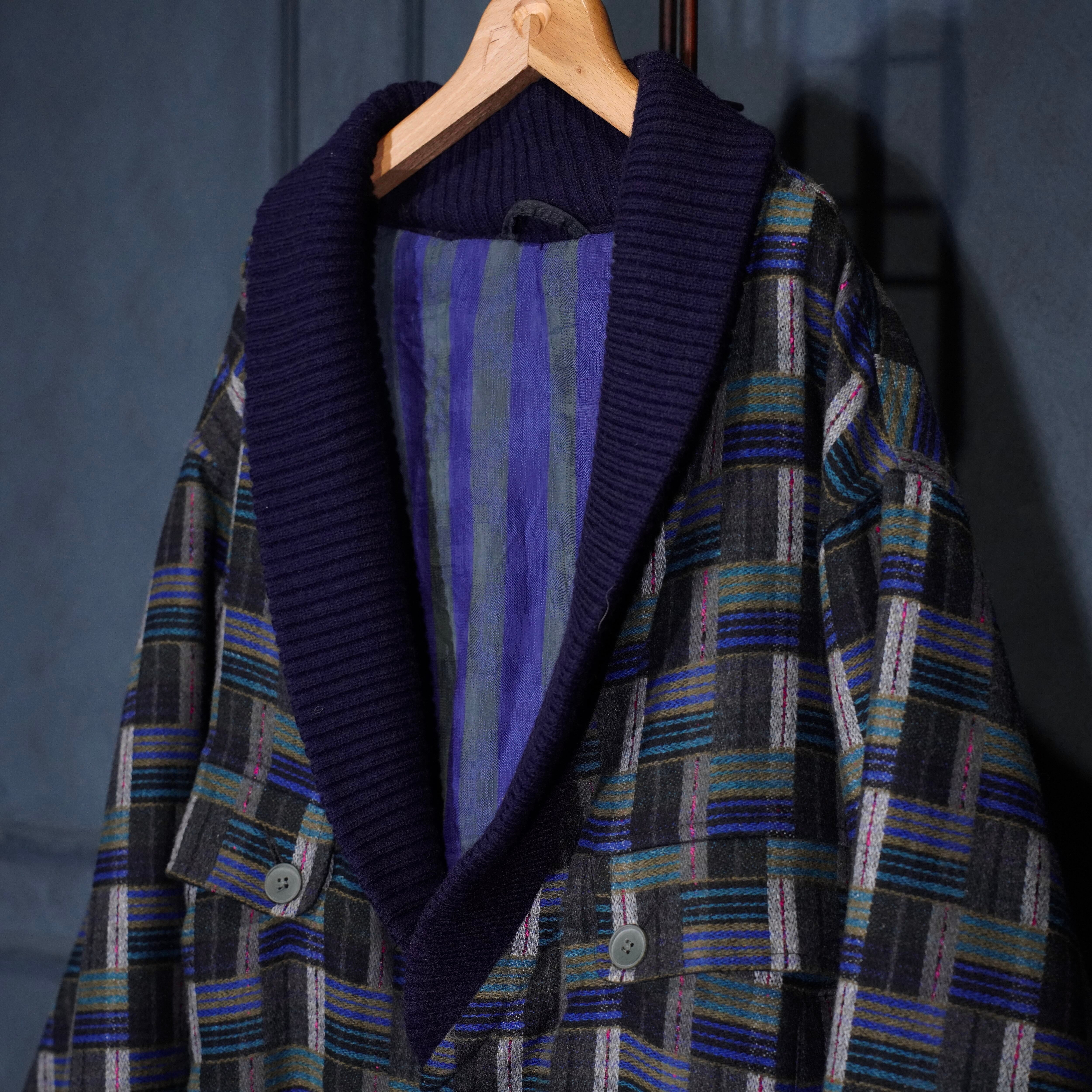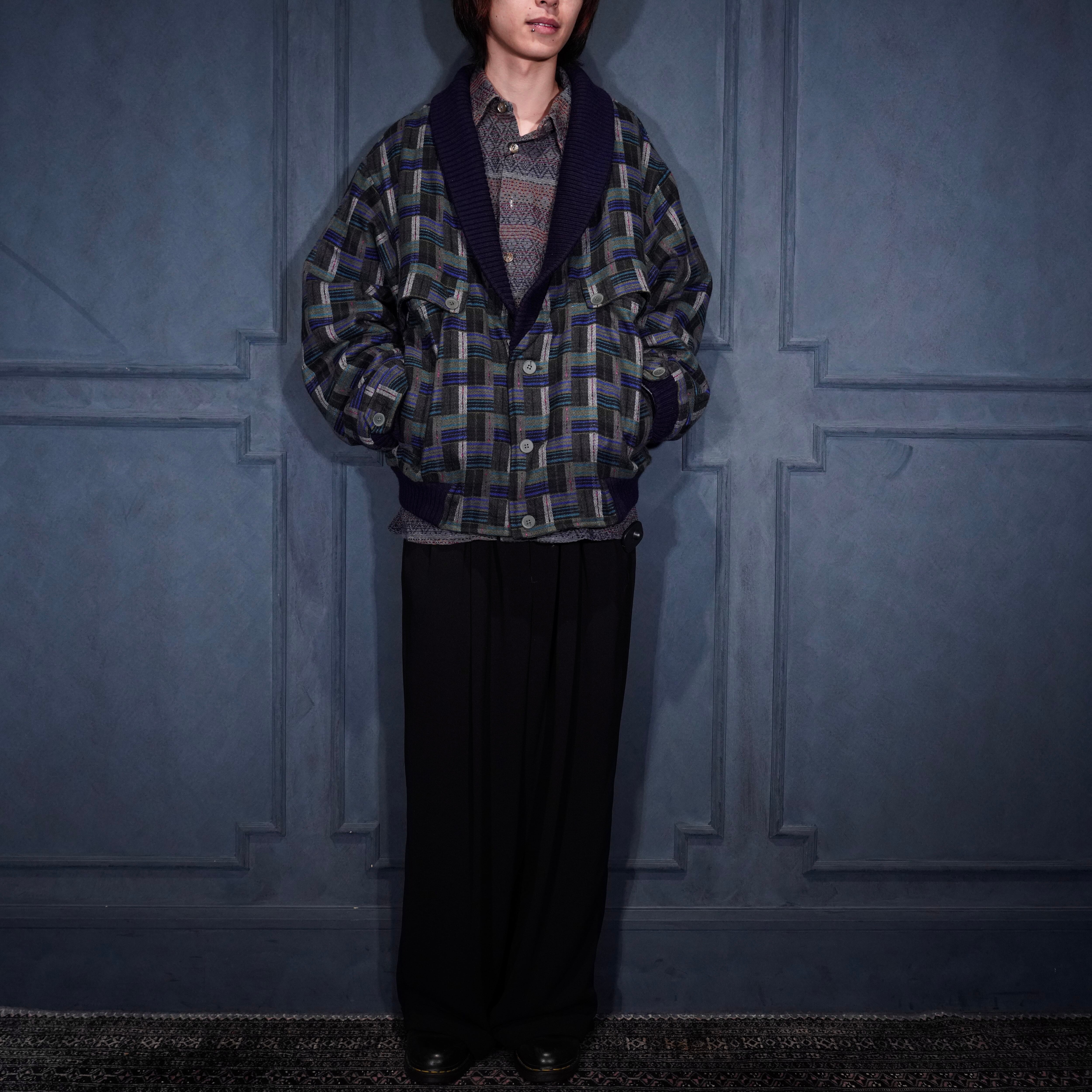EU VINTAGE PATTERNED WOVEN DESIGN KNIT BLOUSON MADE IN PORTUGAL/ヨーロッパ古着柄織デザインニットブルゾン