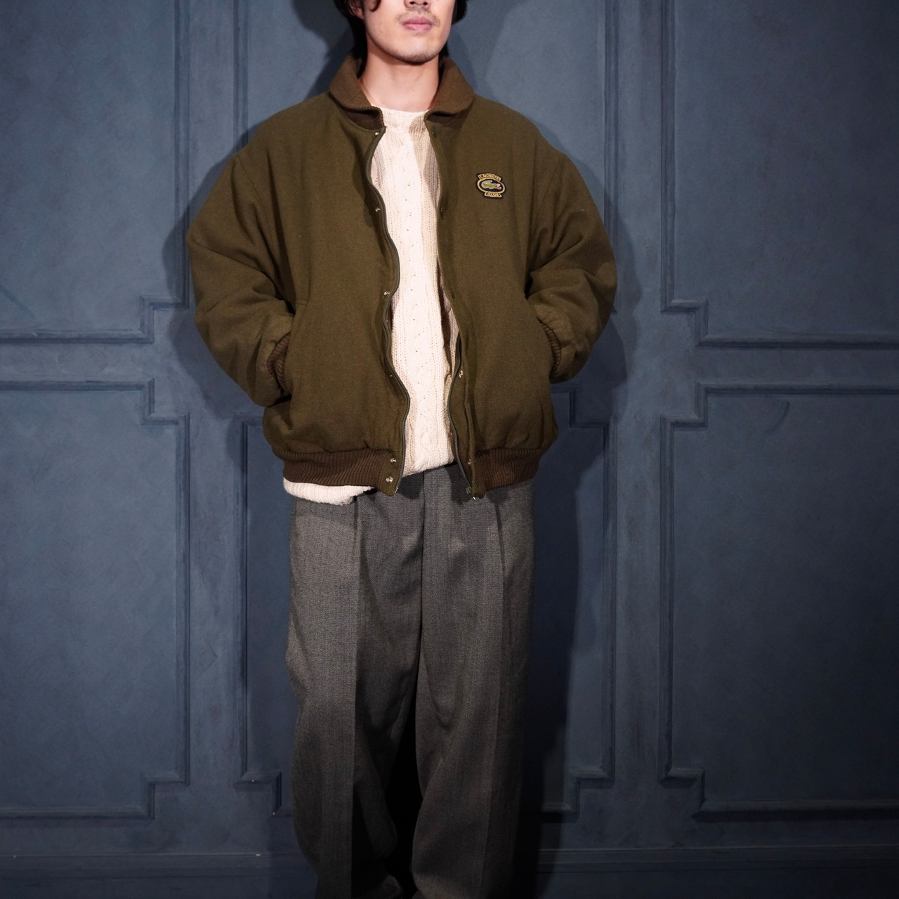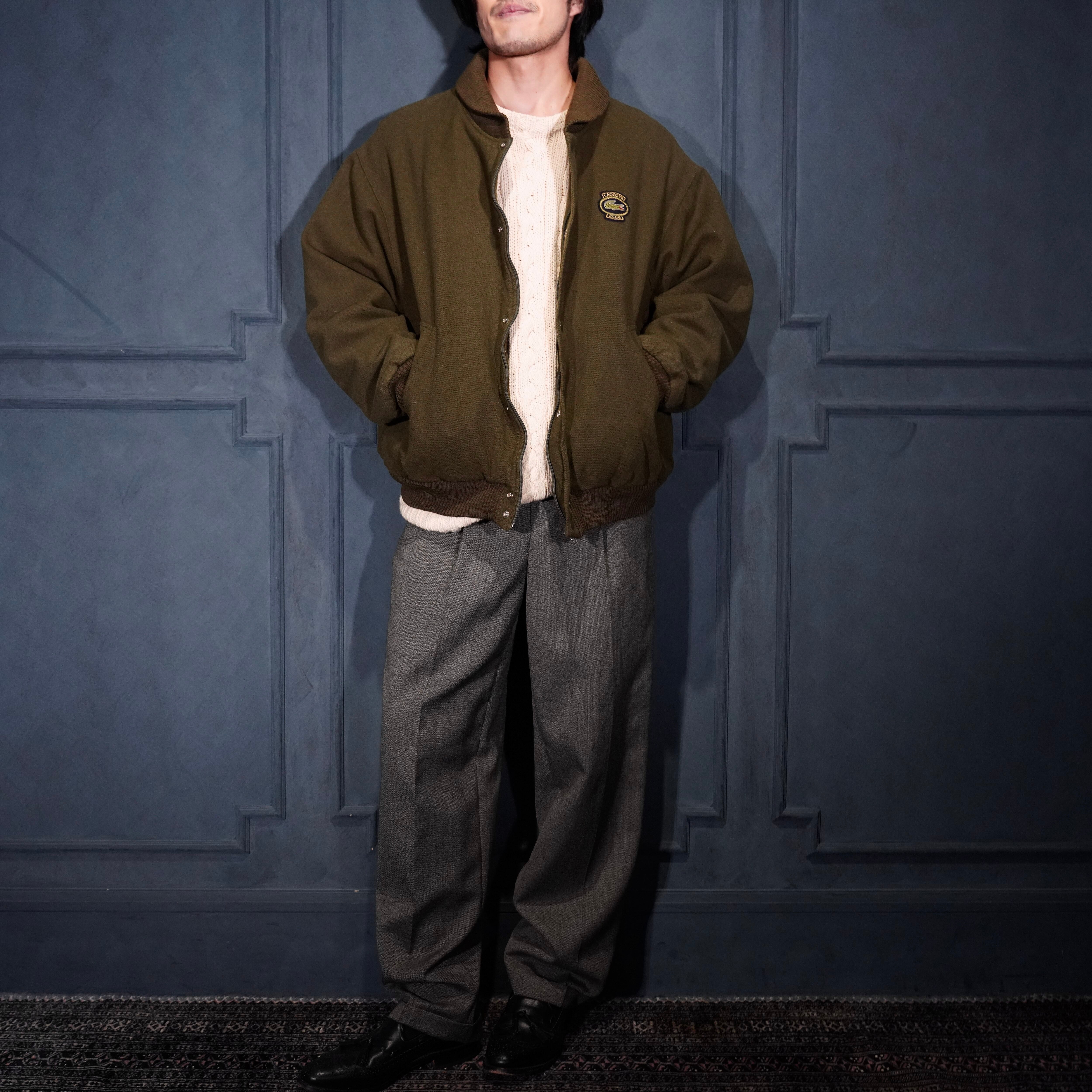 EU VINTAGE LACOSTE CLUB EMBROIDERY DESIGN WOOL ZIP UP BLOUSON MADE IN FRANCE/ヨーロッパ古着ラコステ刺繍デザインウールジップアップブルゾン