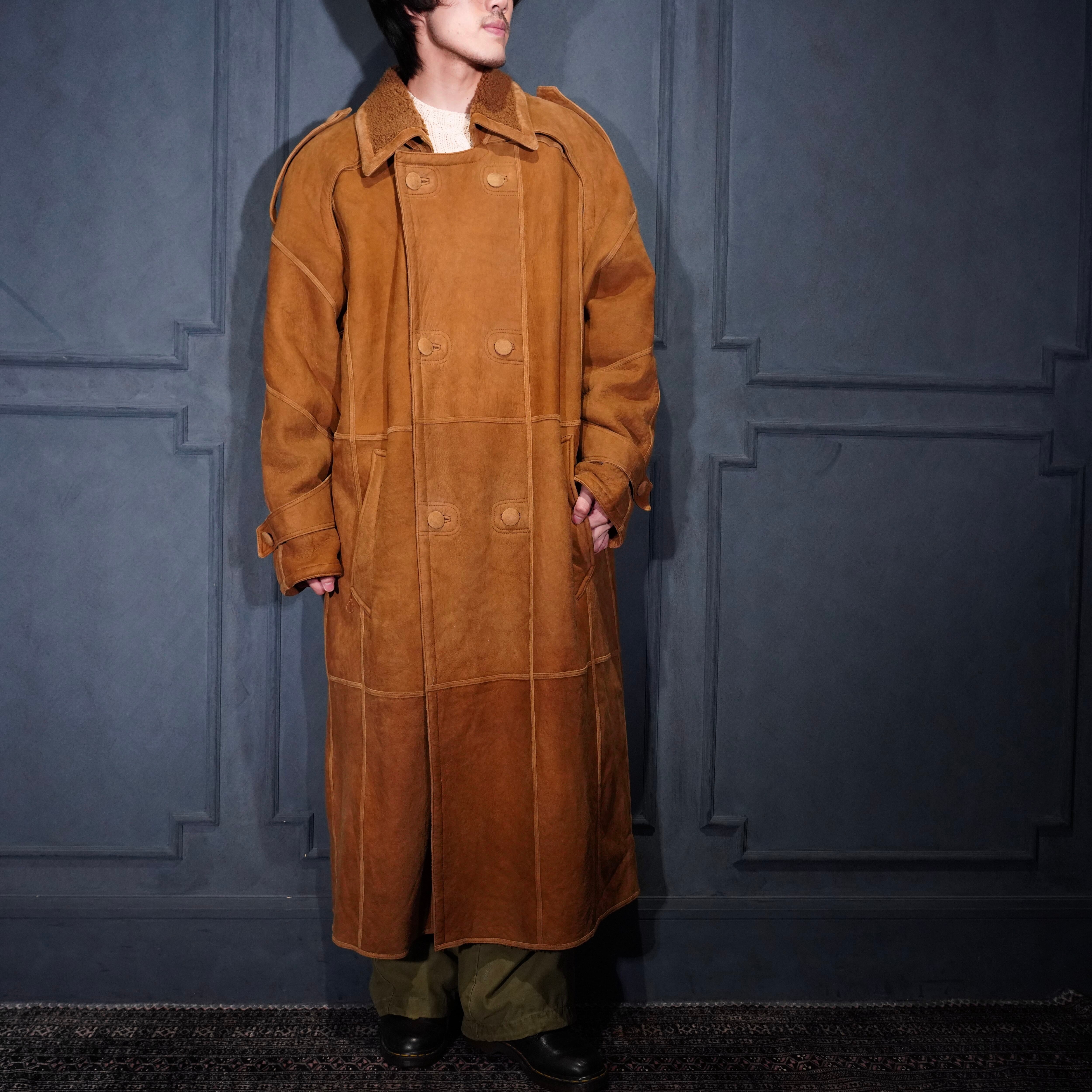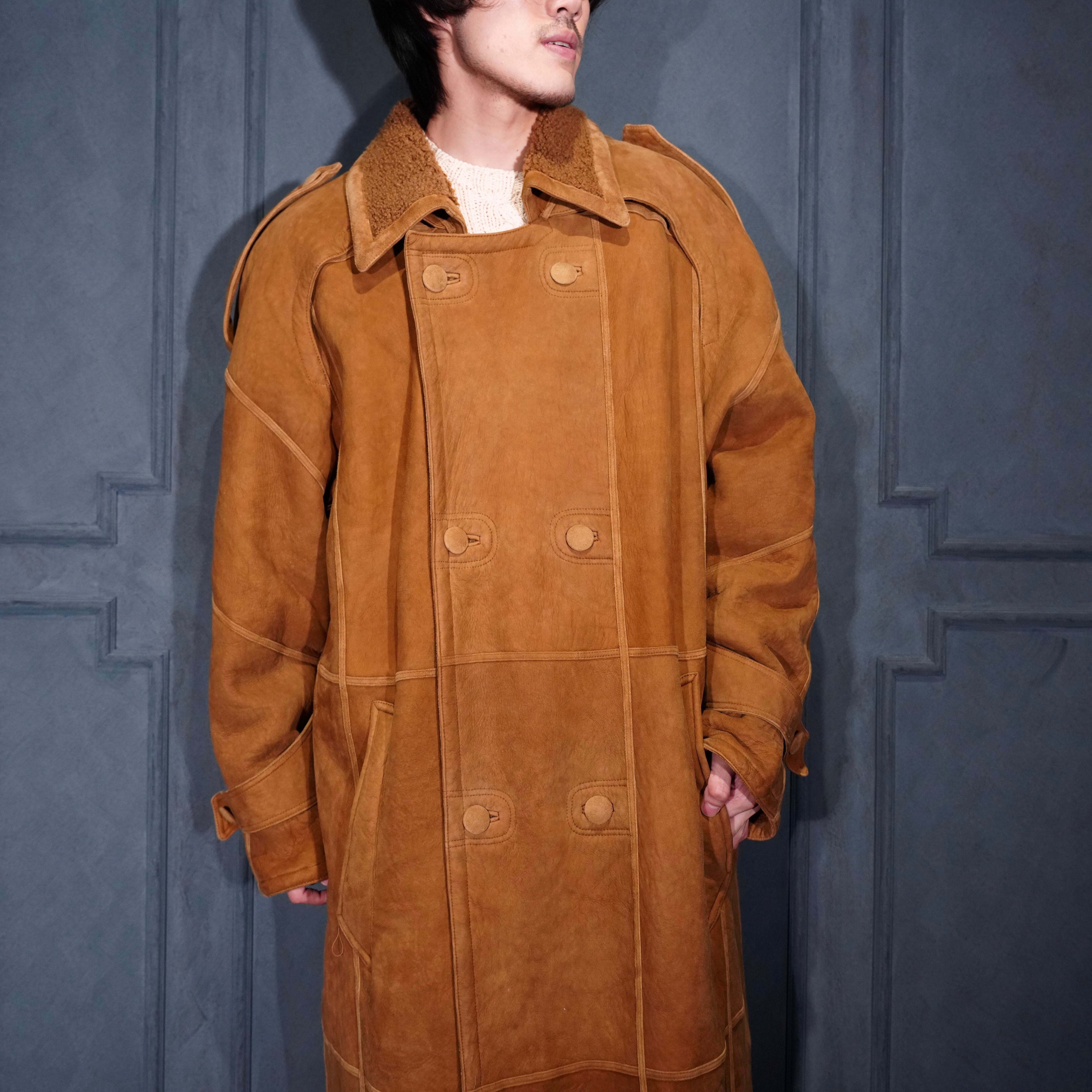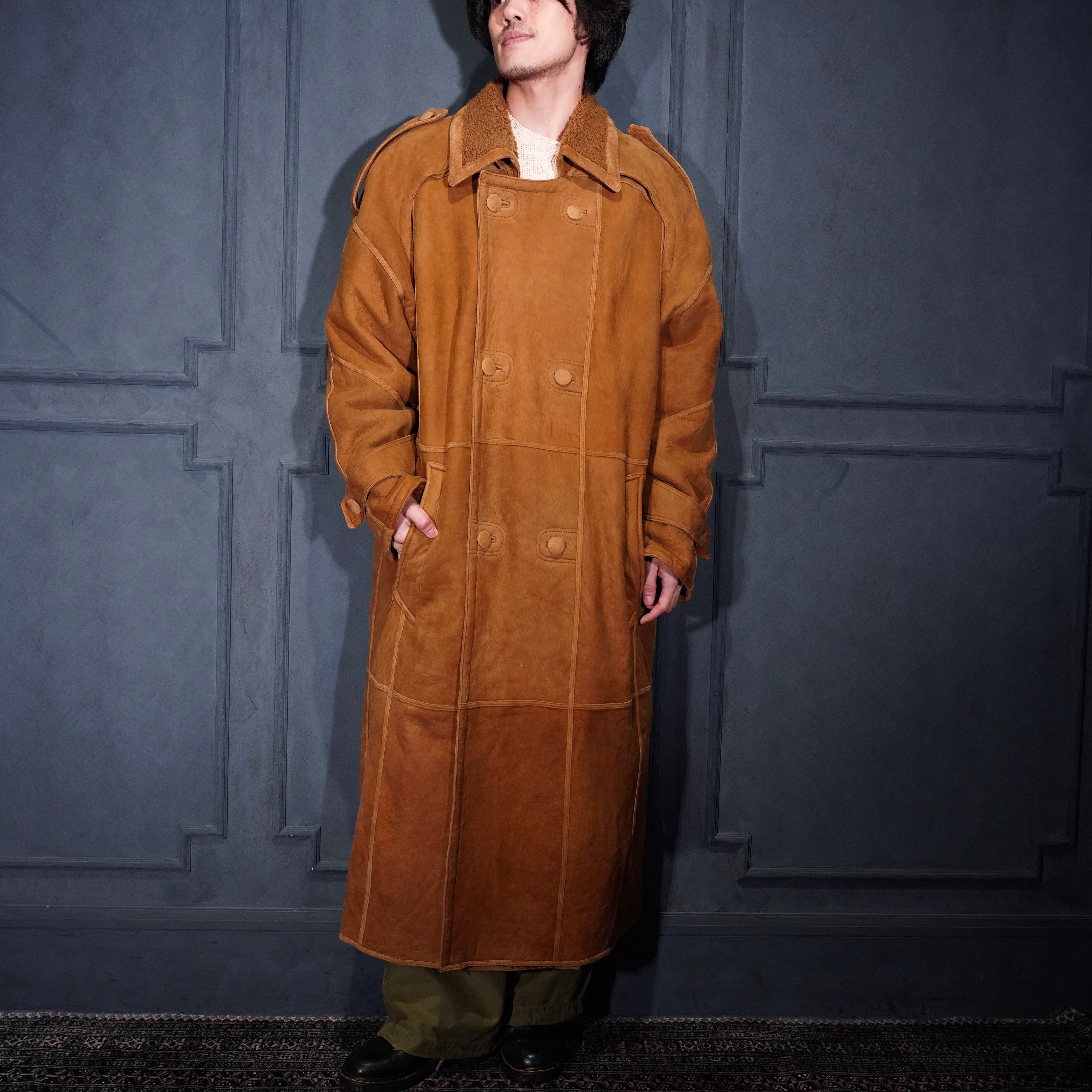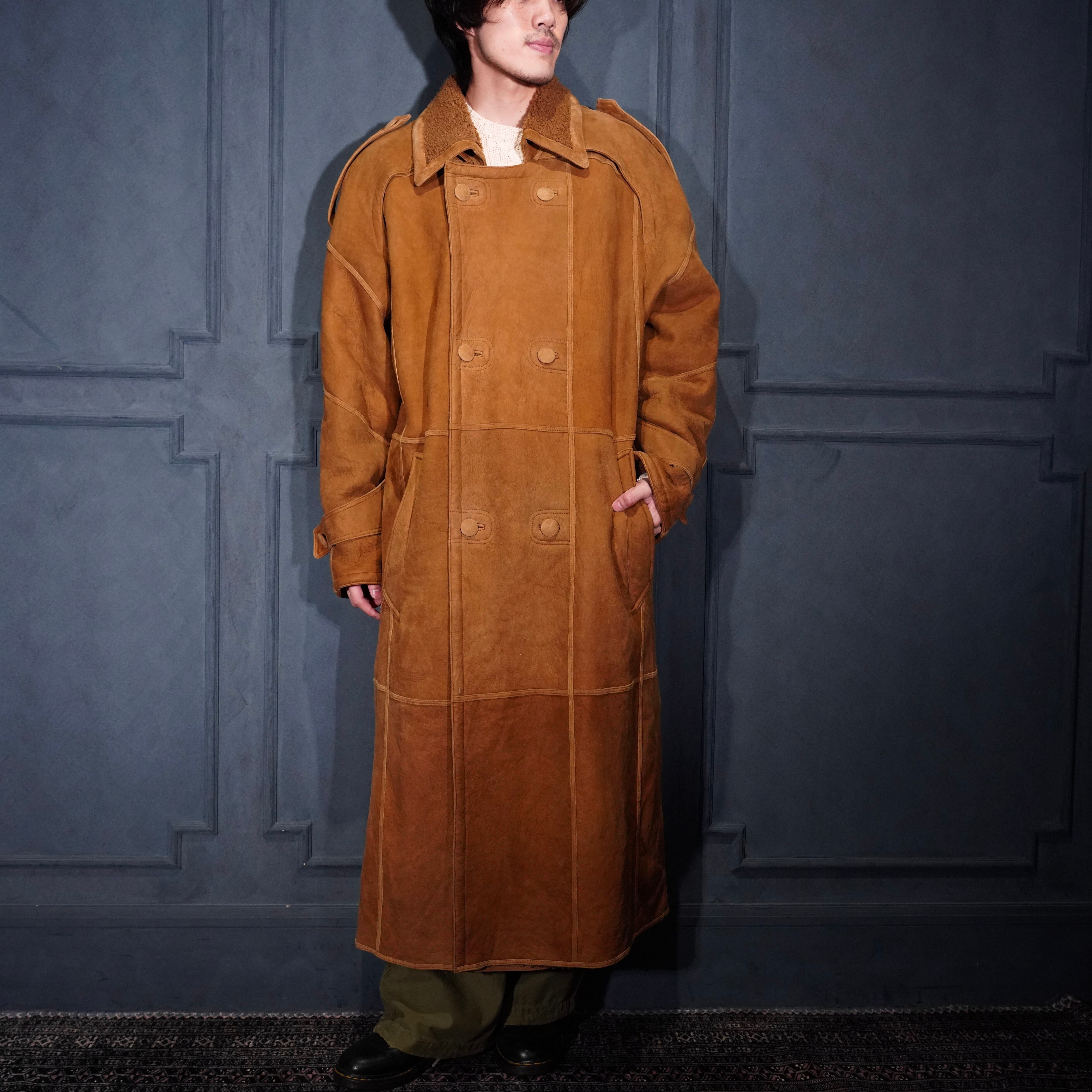 EU VINTAGE DOUBLE DESIGN MOUTON LONG COAT/ヨーロッパ古着ダブルデザインムートンロングコート
