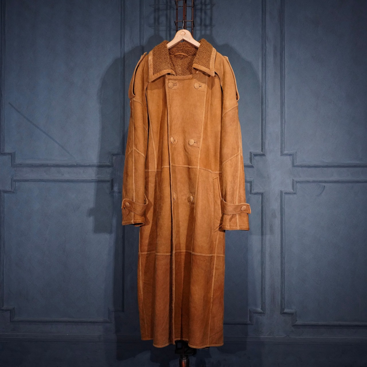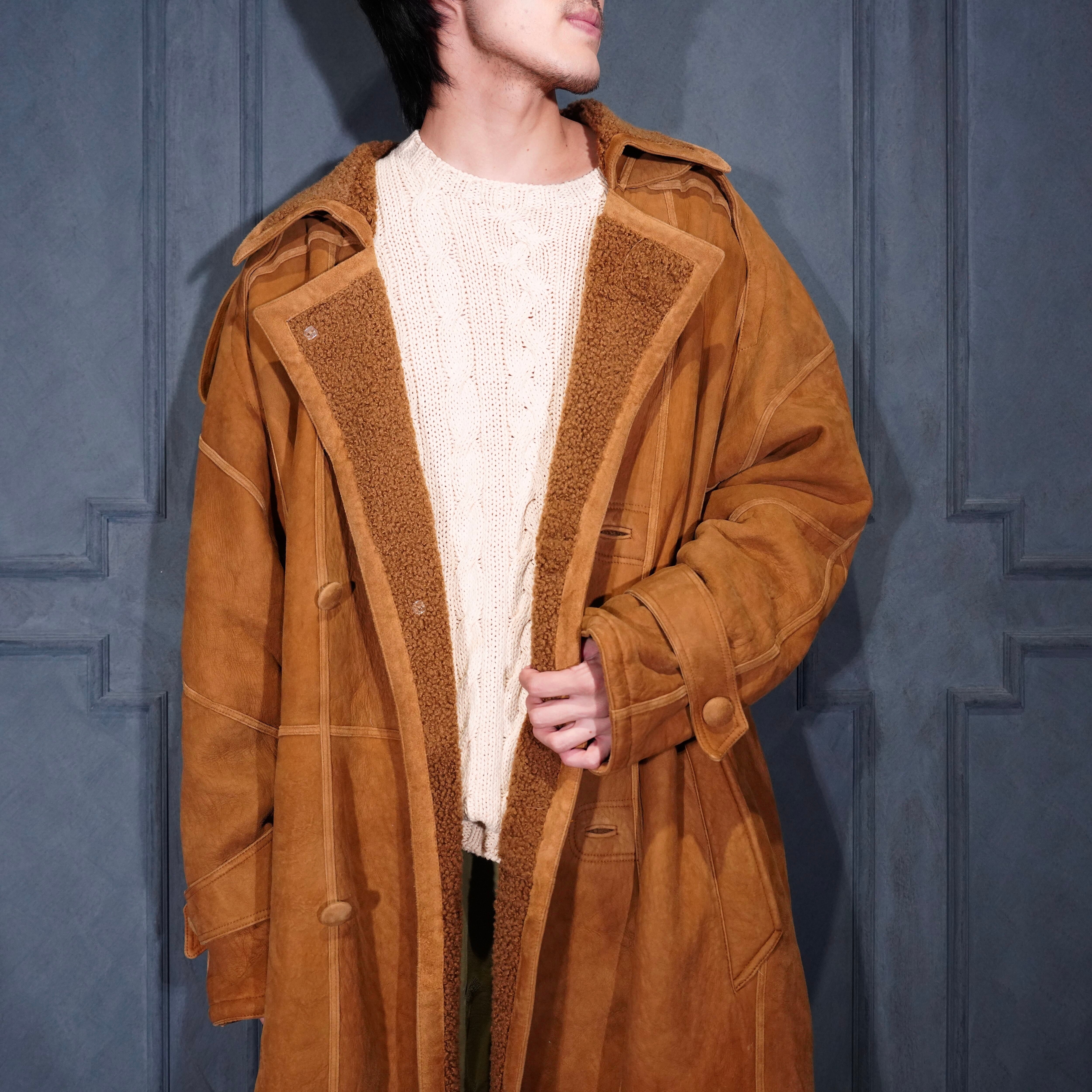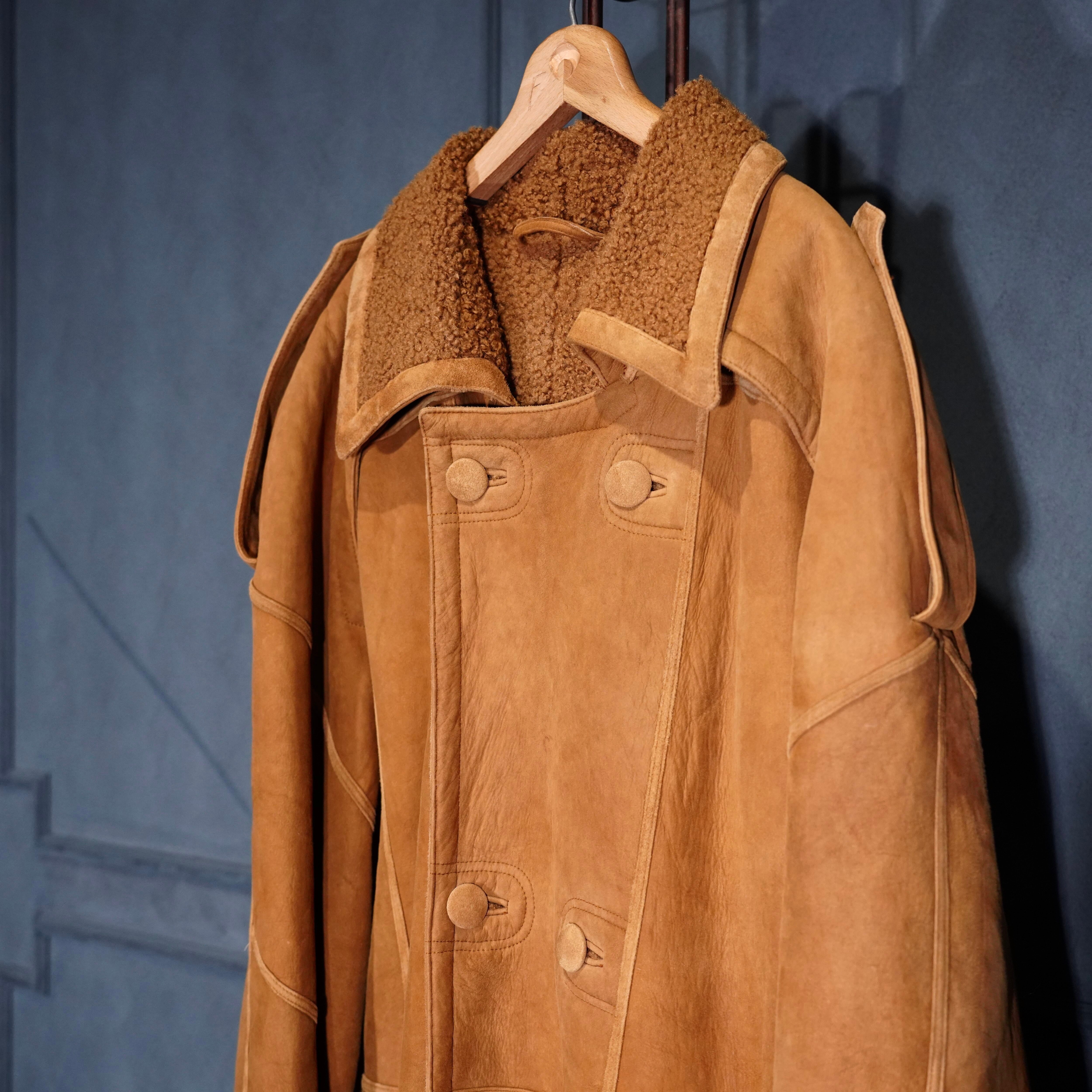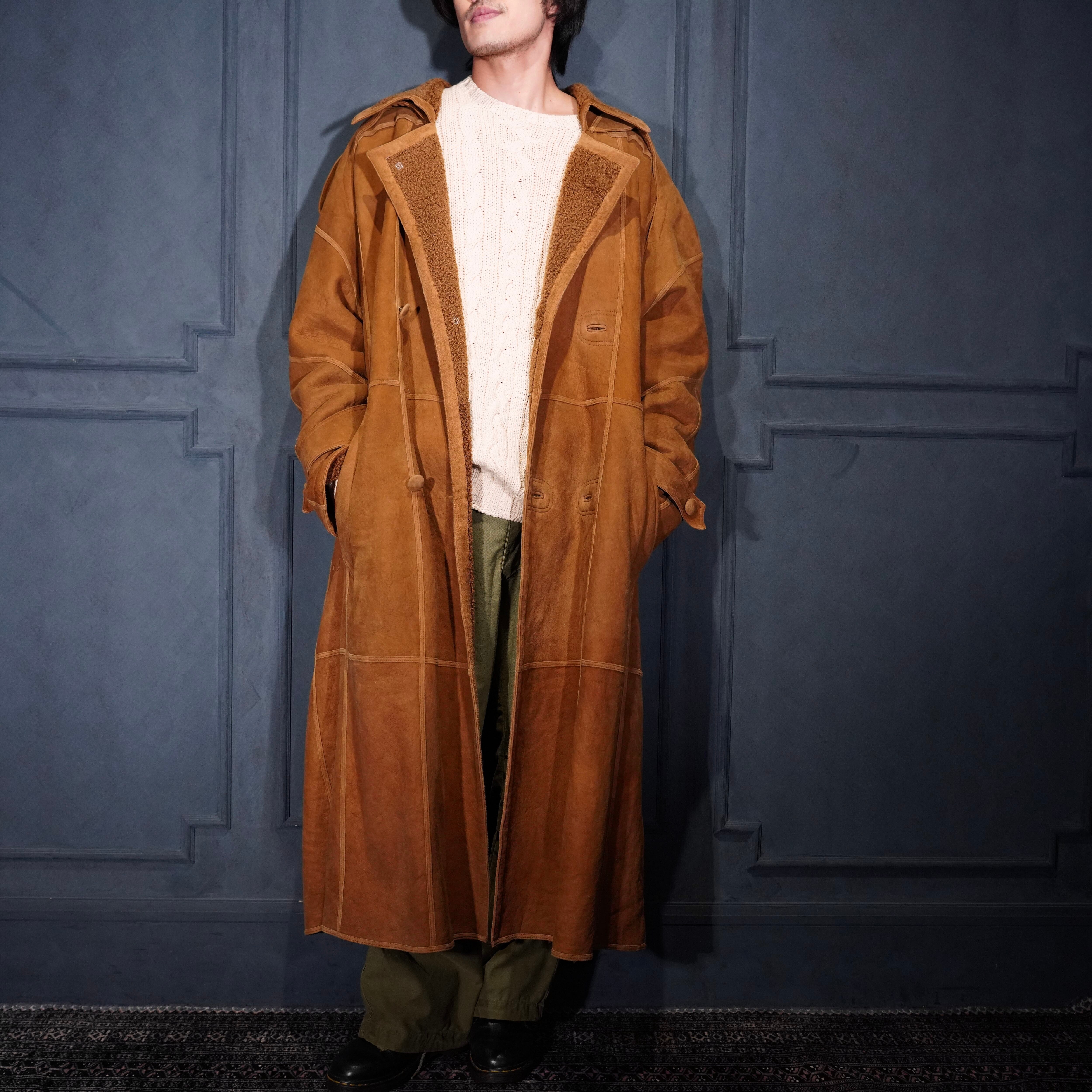 EU VINTAGE DOUBLE DESIGN MOUTON LONG COAT/ヨーロッパ古着ダブルデザインムートンロングコート