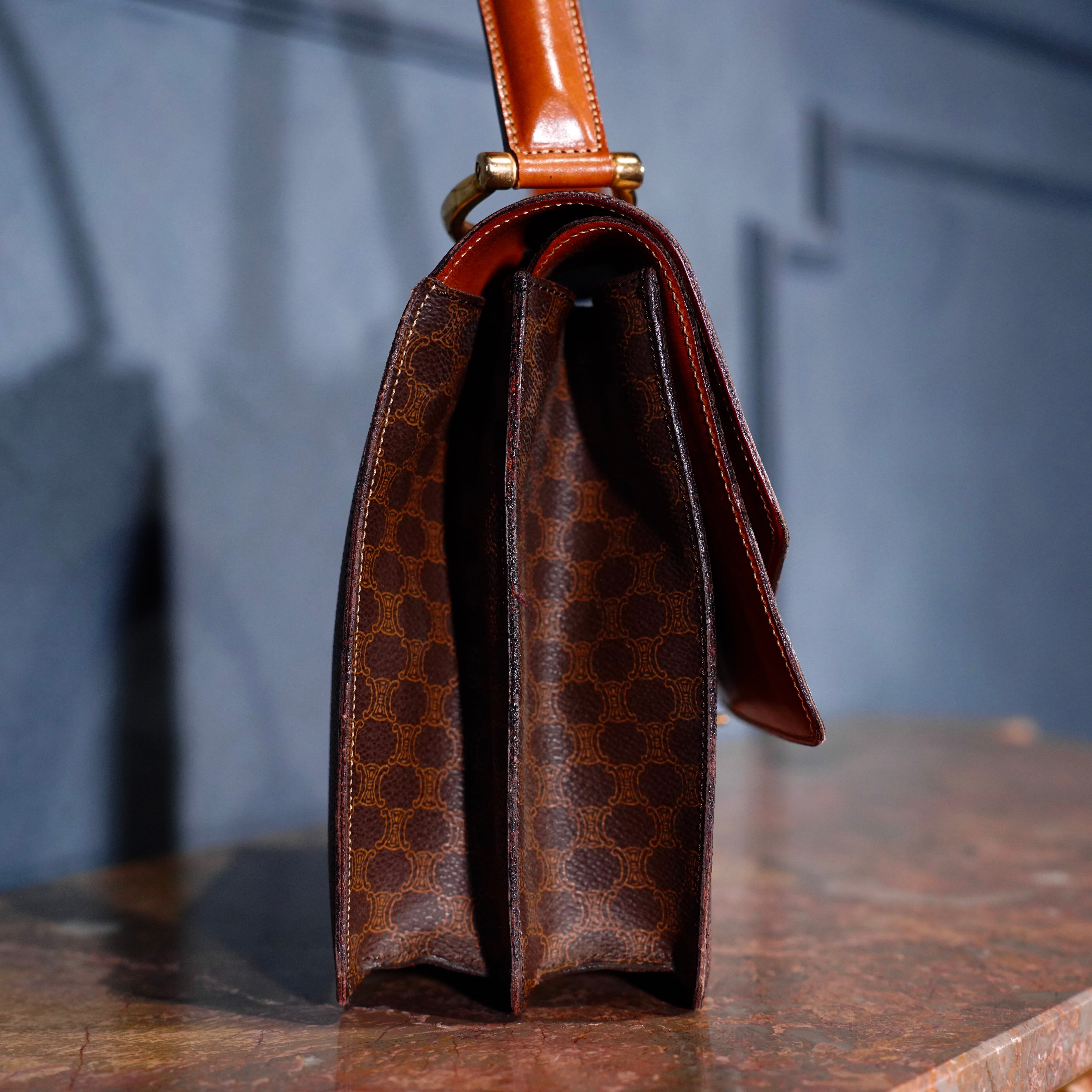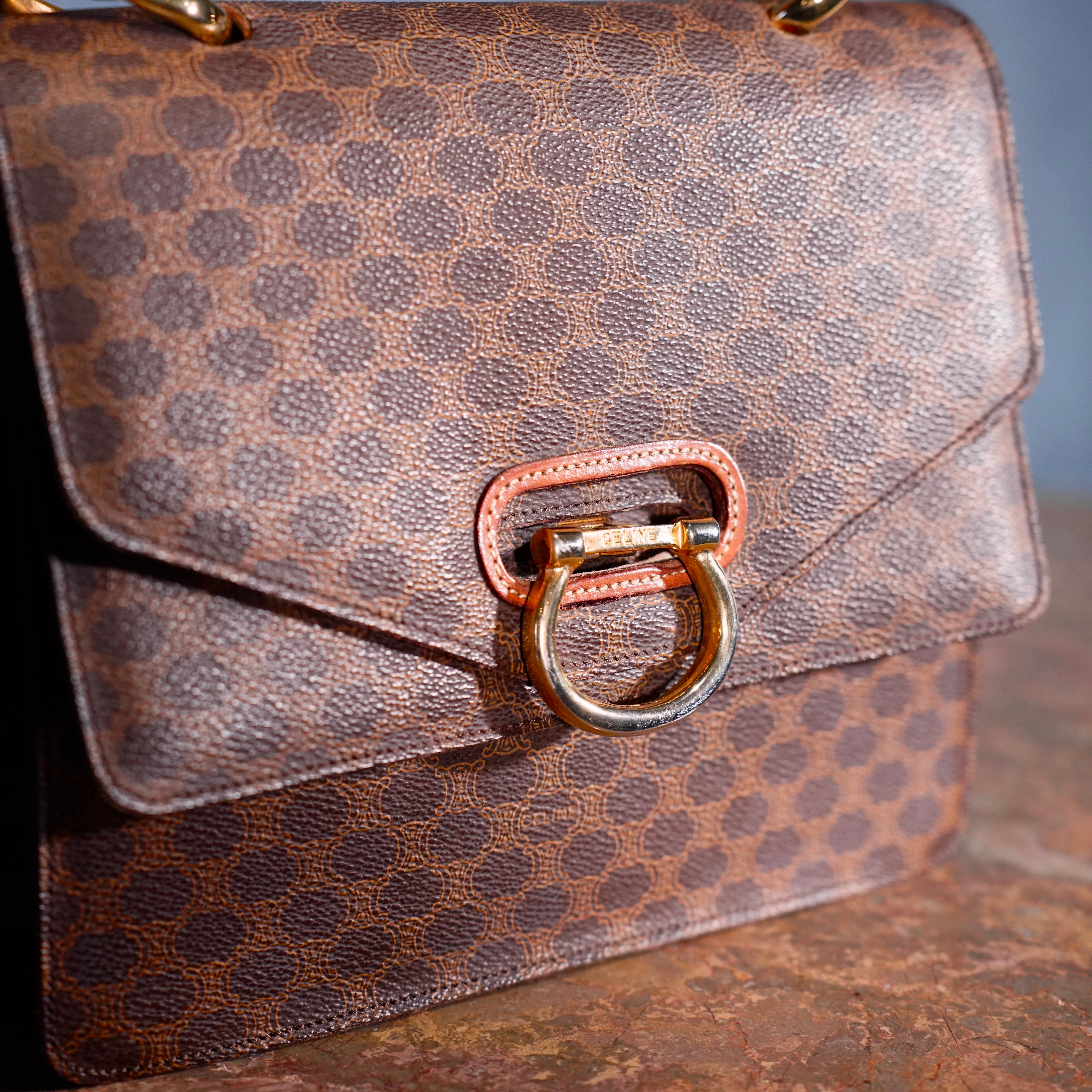 .CELINE MACADAM PATTERNED DOUBLE FLAP HAND BAG/オールドセリーヌマカダム柄ダブルフラップデザインハンドバッグ 2000000074313