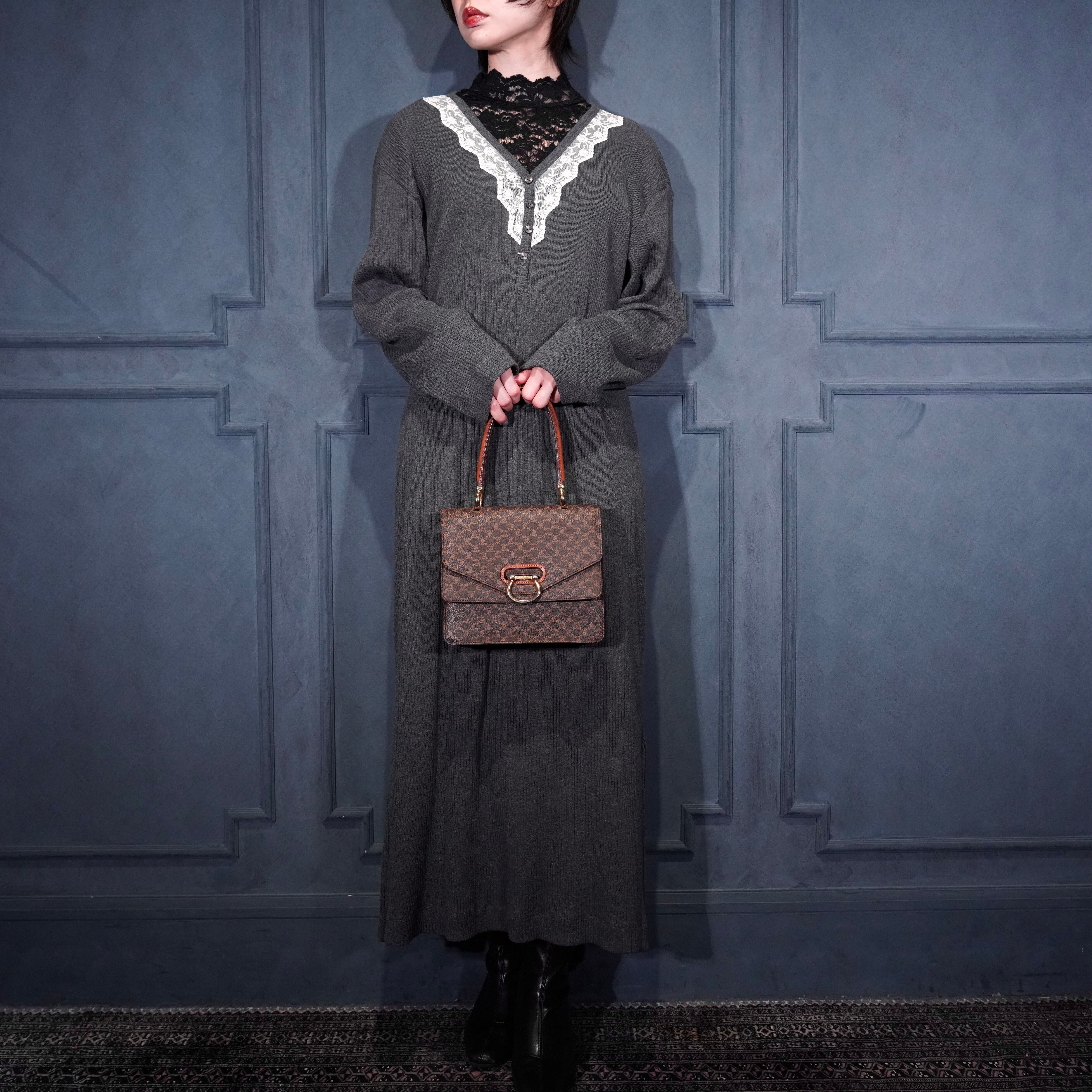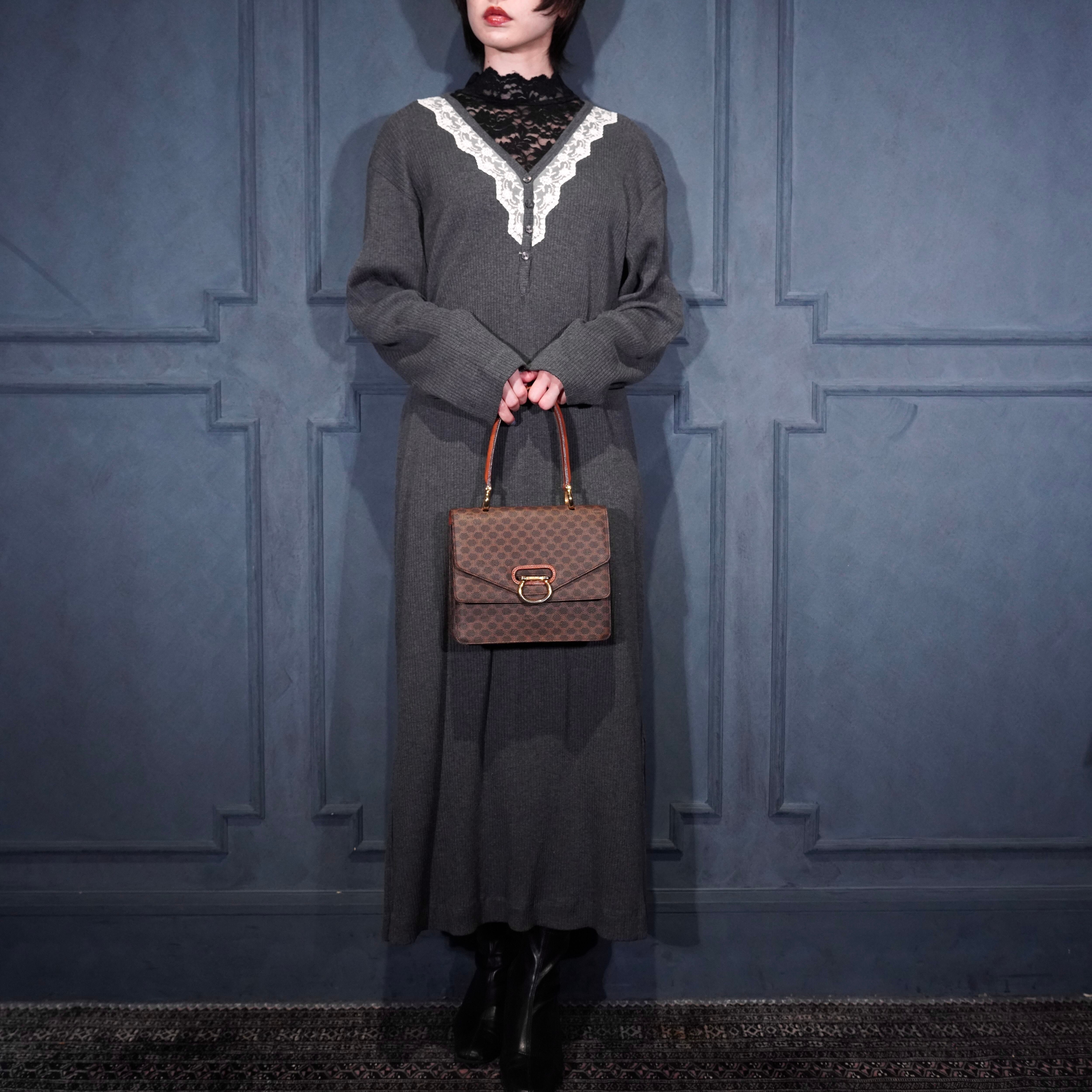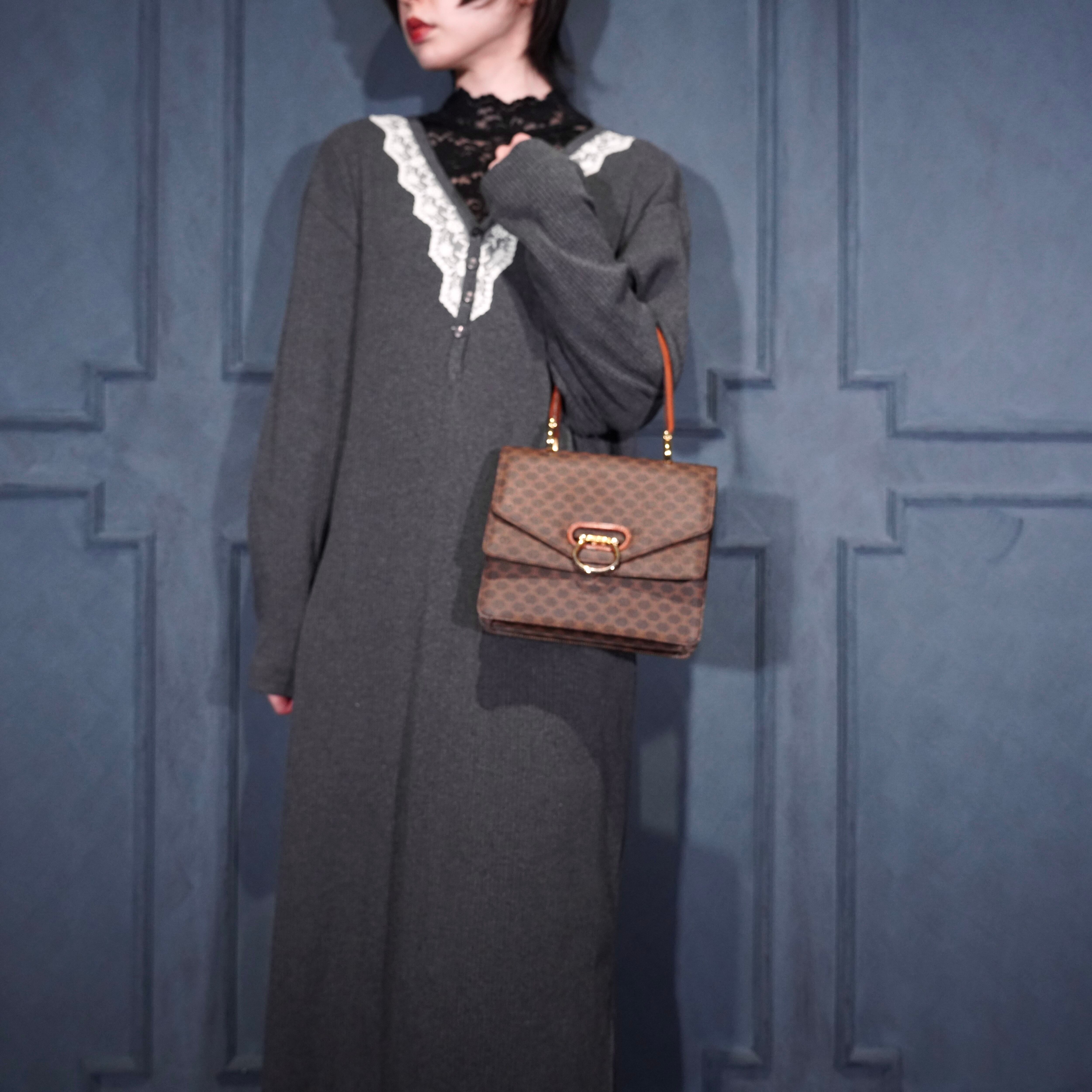CELINE MACADAM PATTERNED DOUBLE FLAP HAND BAG/オールドセリーヌマカダム柄ダブルフラップデザインハンドバッグ