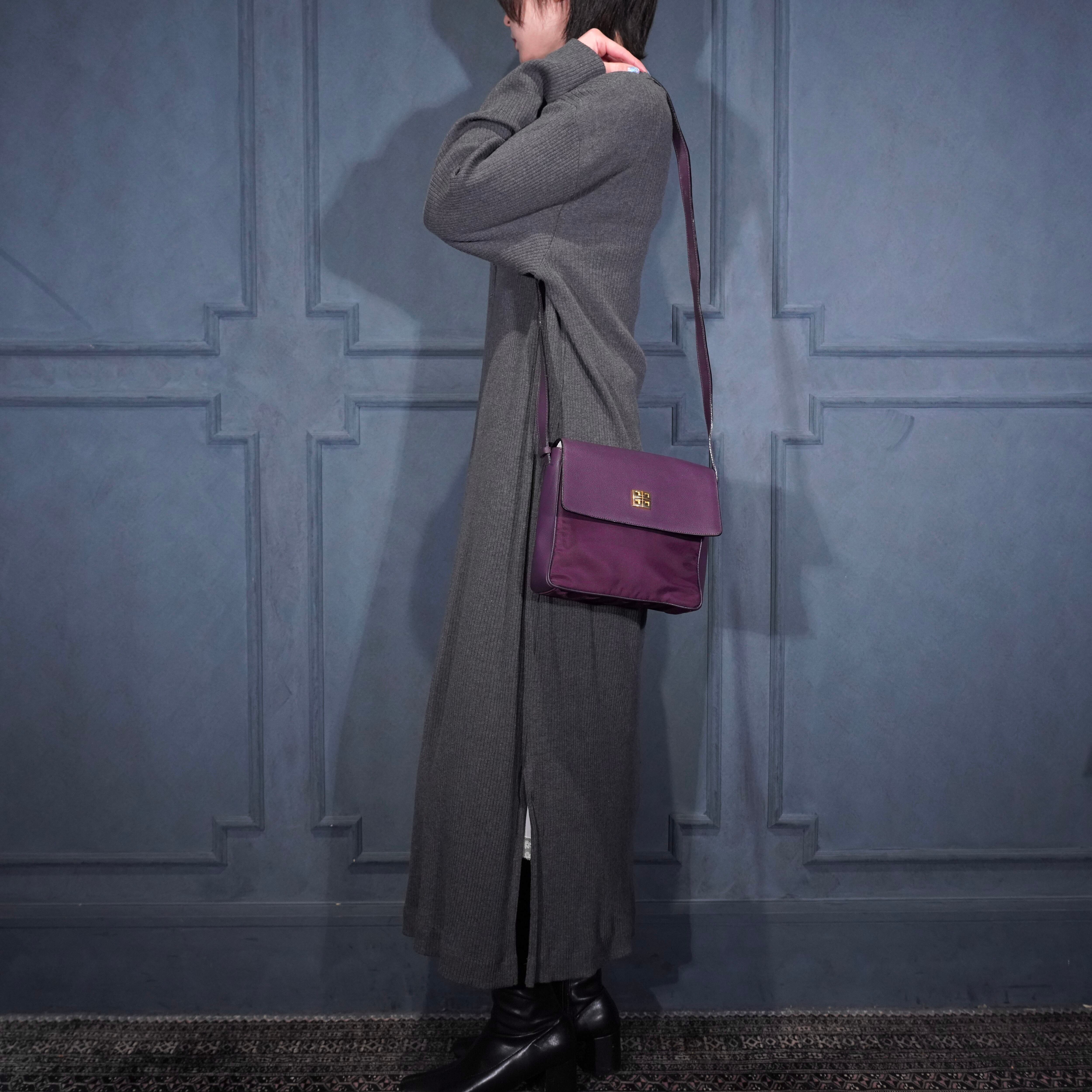 GIVENCHY METAL LOGO DESIGN NYLON LEAHER SHOULDER BAG/ジバンシィメタルロゴデザインナイロンレザーショルダーバッグ