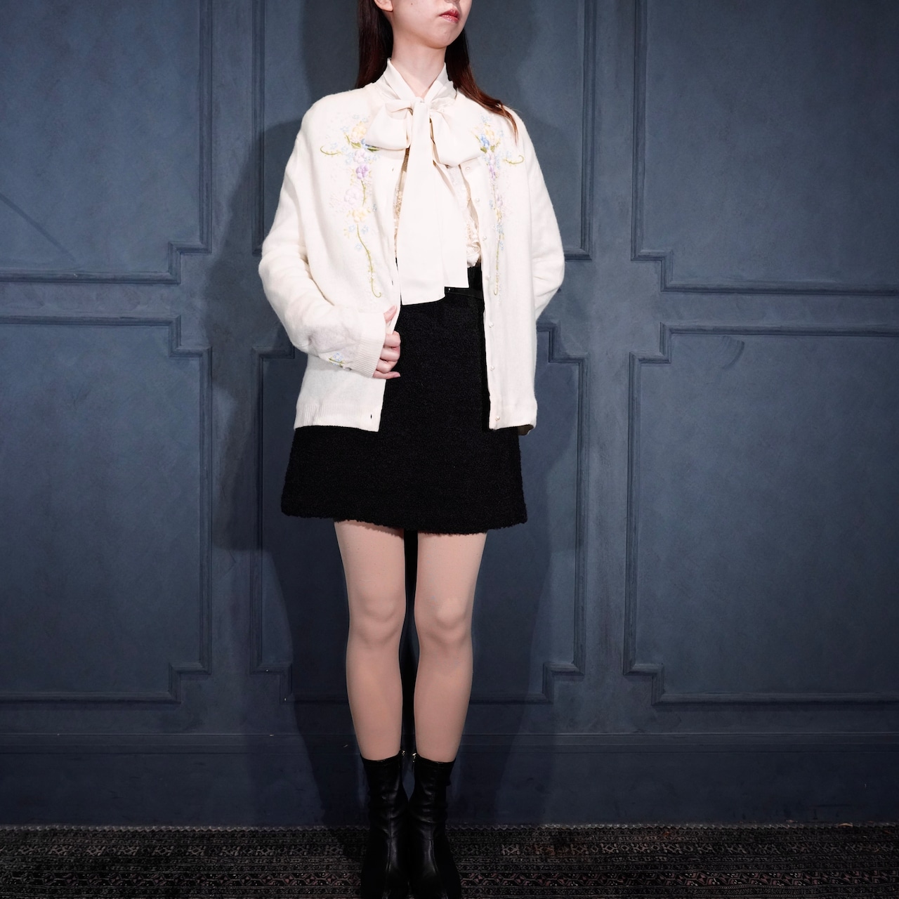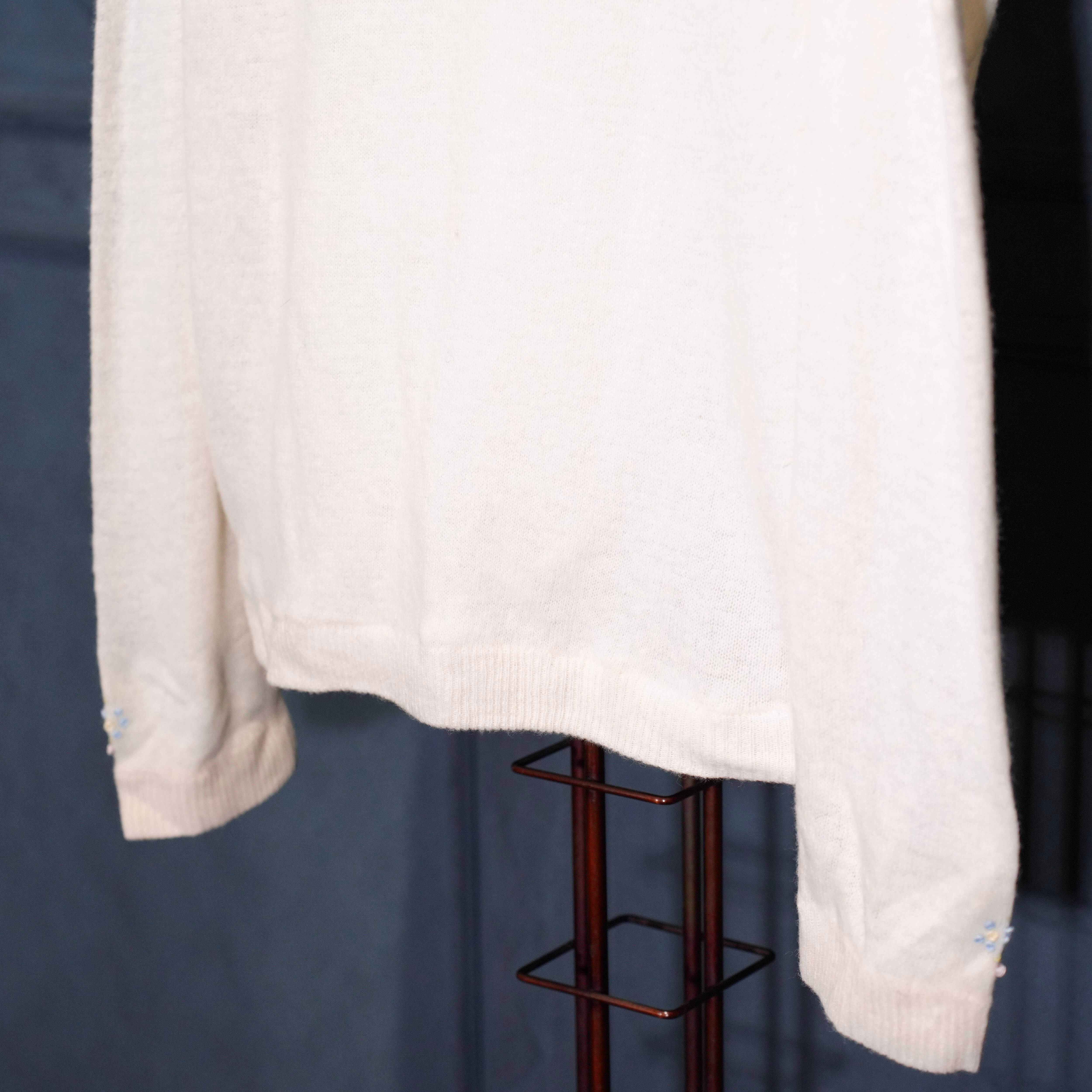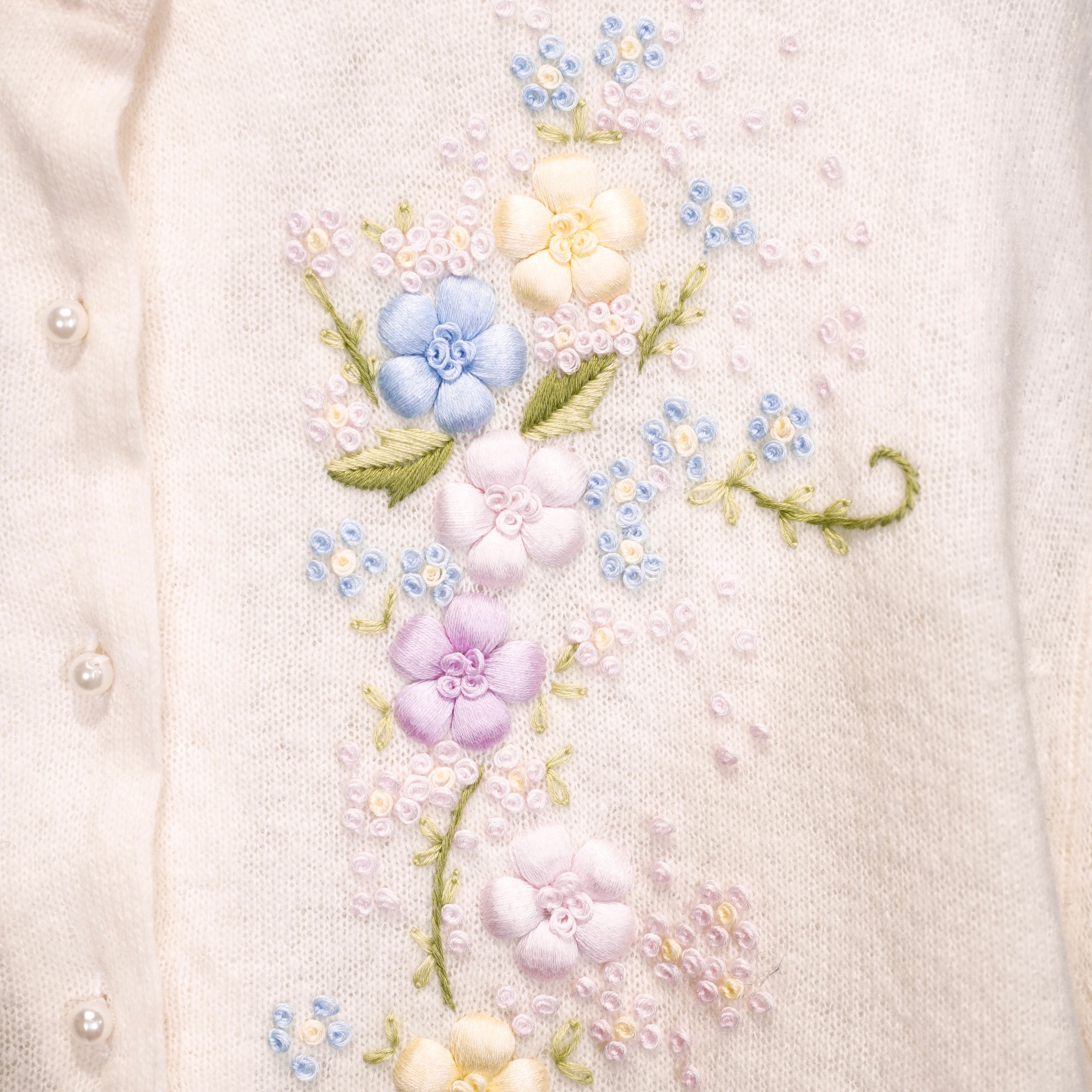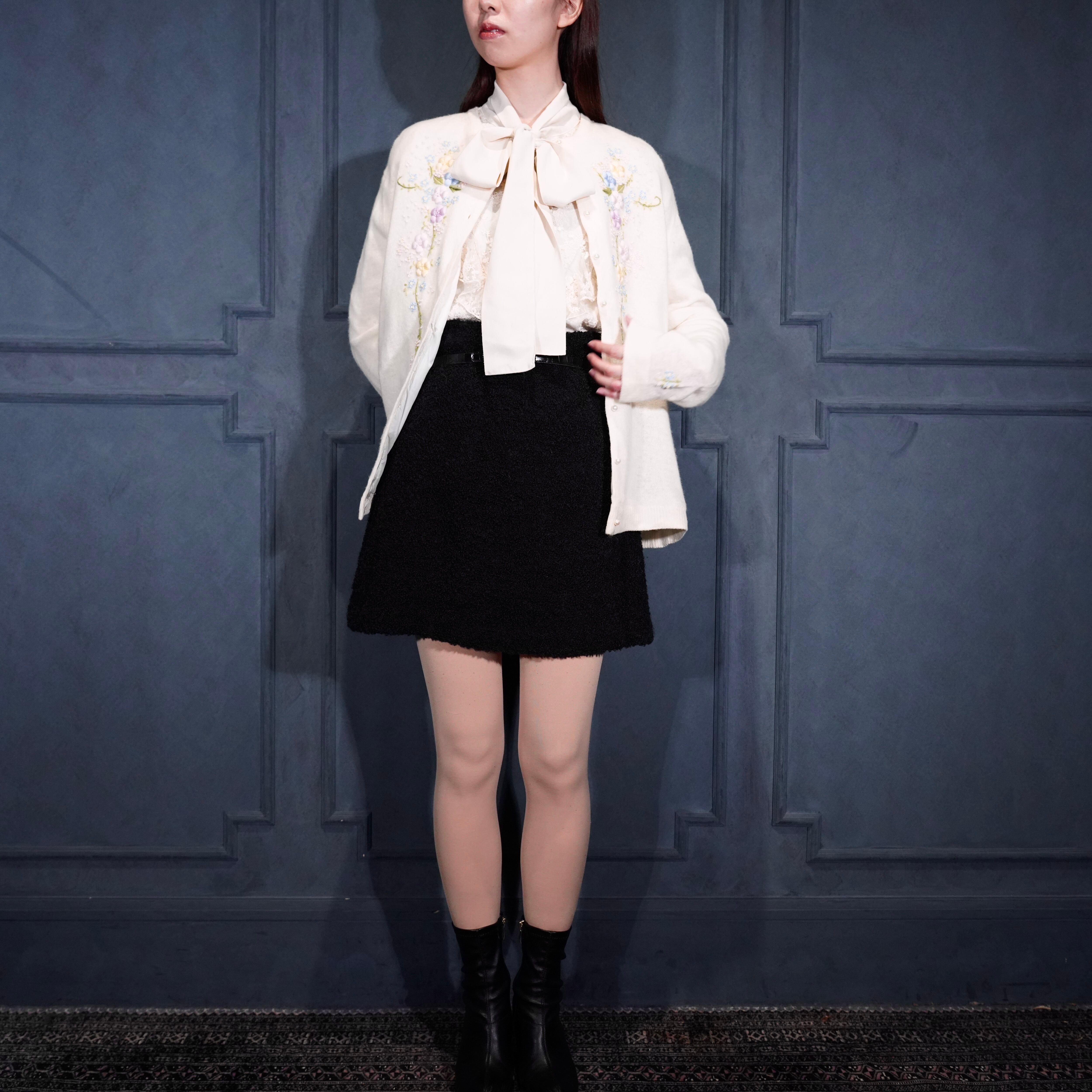 60’s〜70’s USA VINTAGE FLOWER EMBROIDERY PEARL BUTTON DESIGN WOOL KNIT CARDIGAN/60年代〜70年代アメリカ古着お花刺繍パールボタンデザインウールニットカーディガン