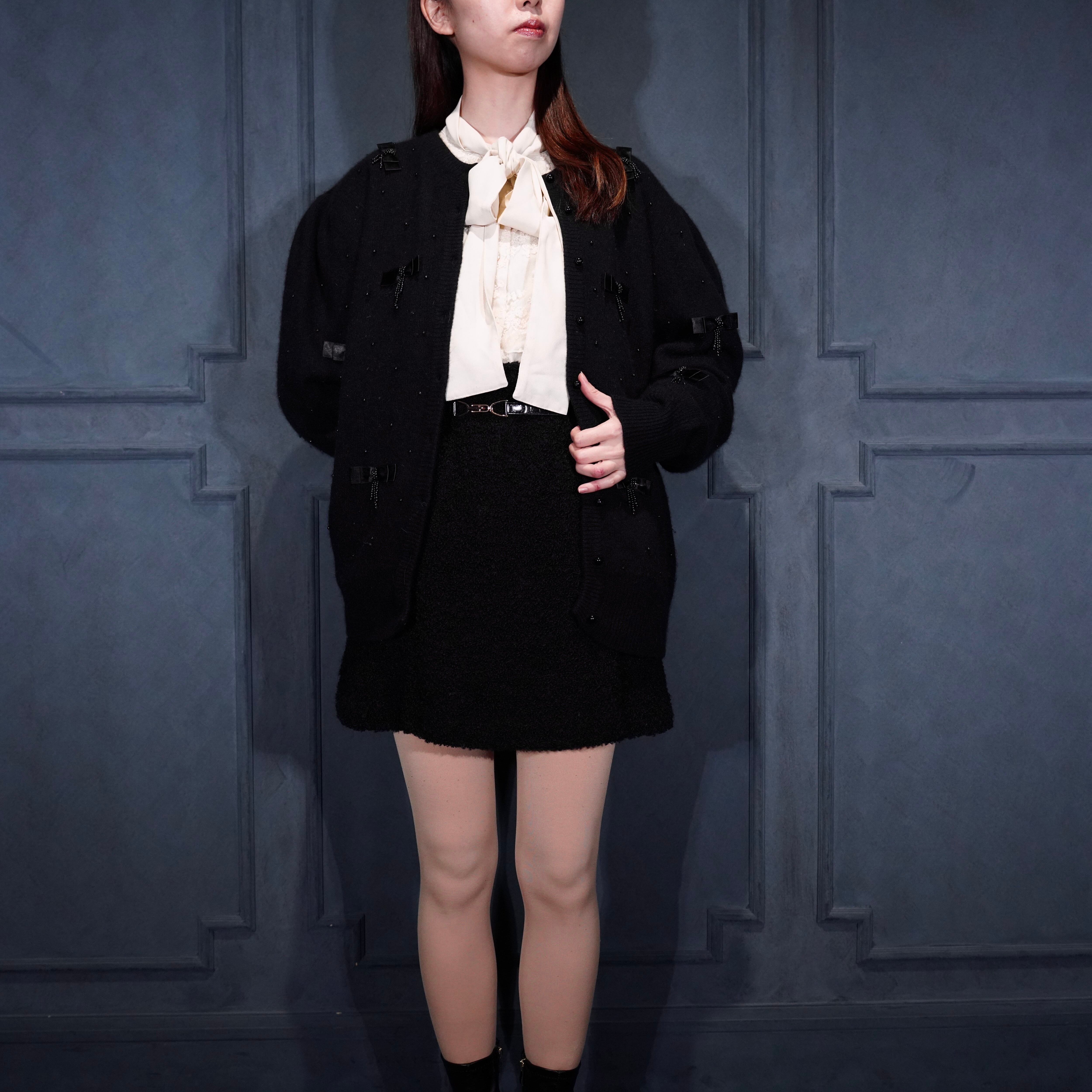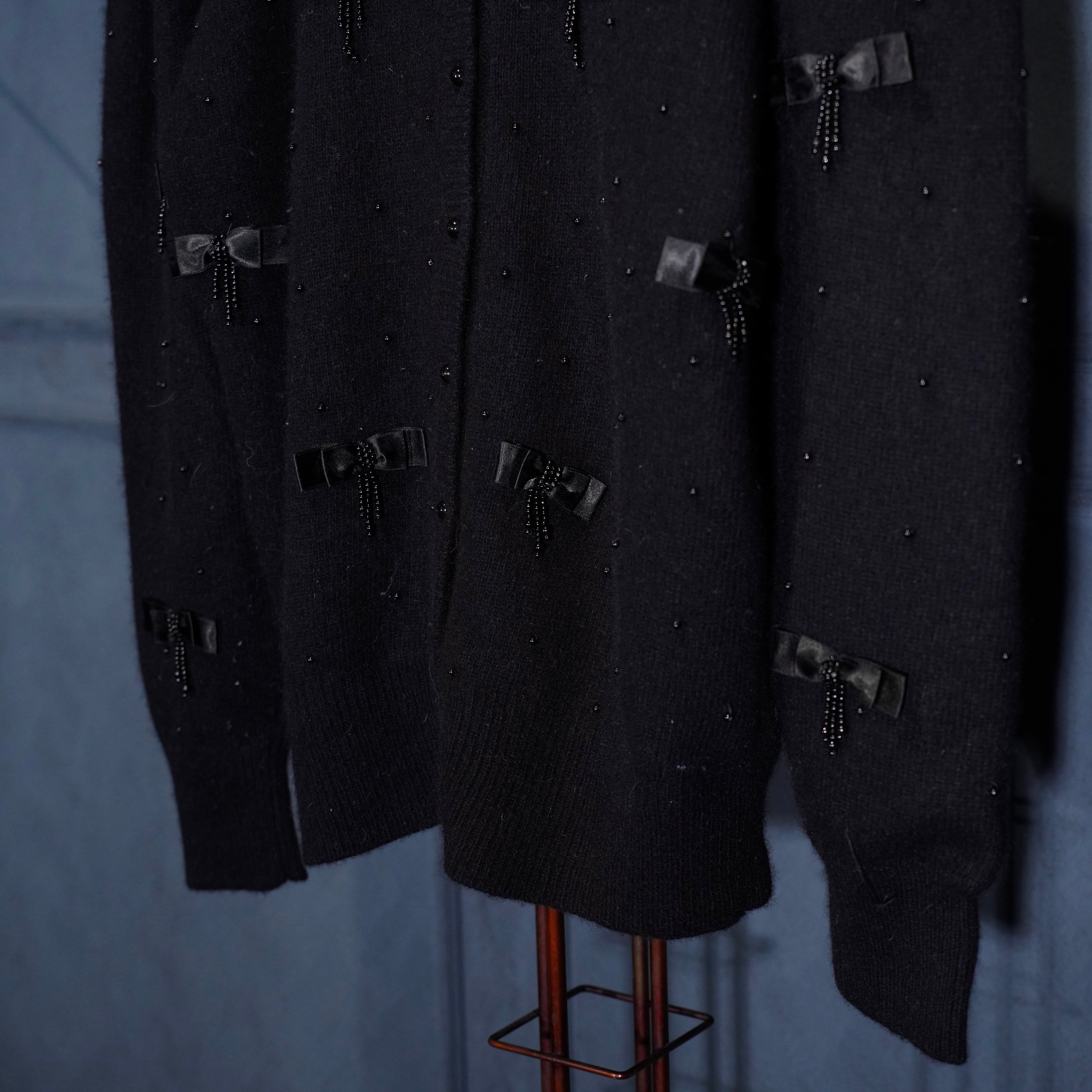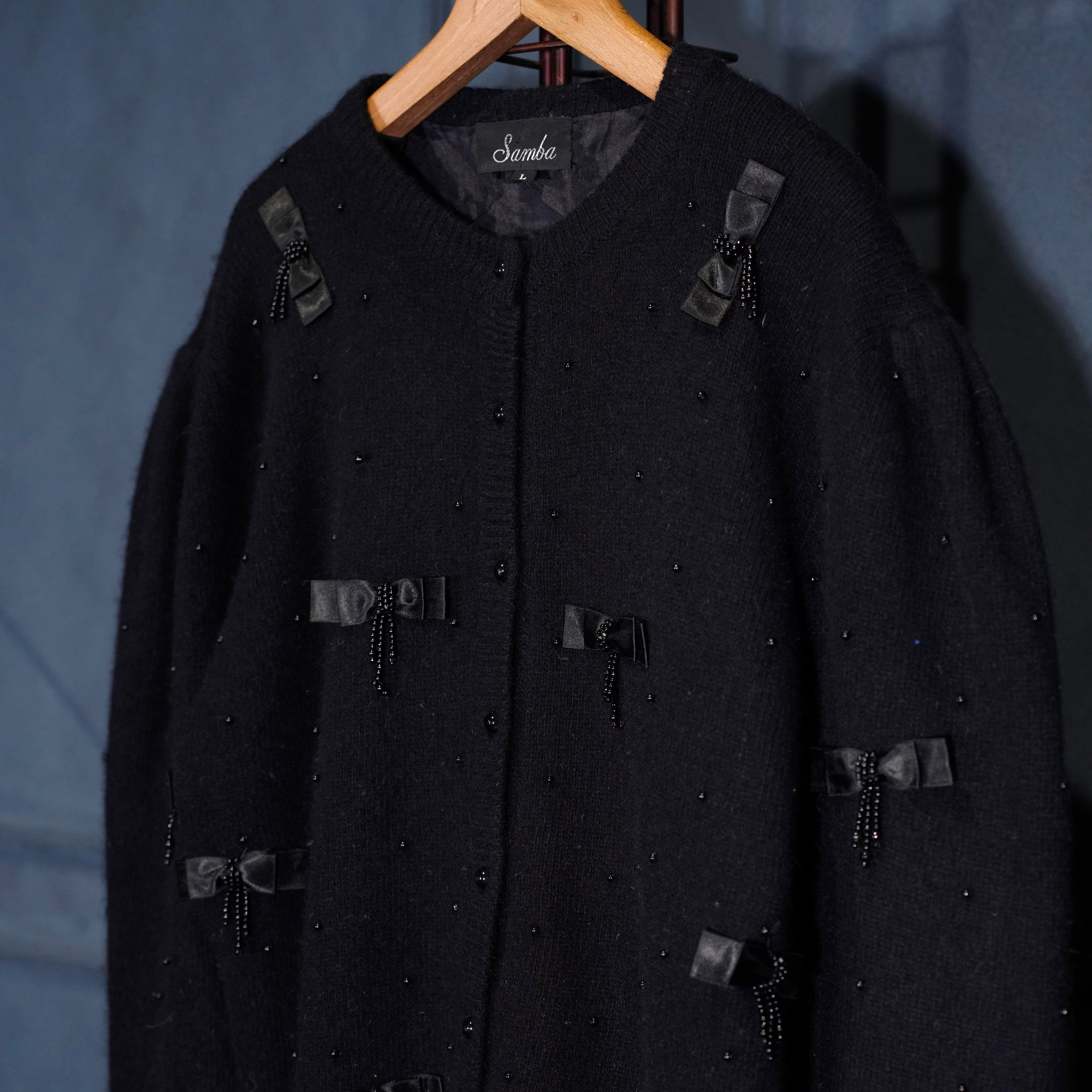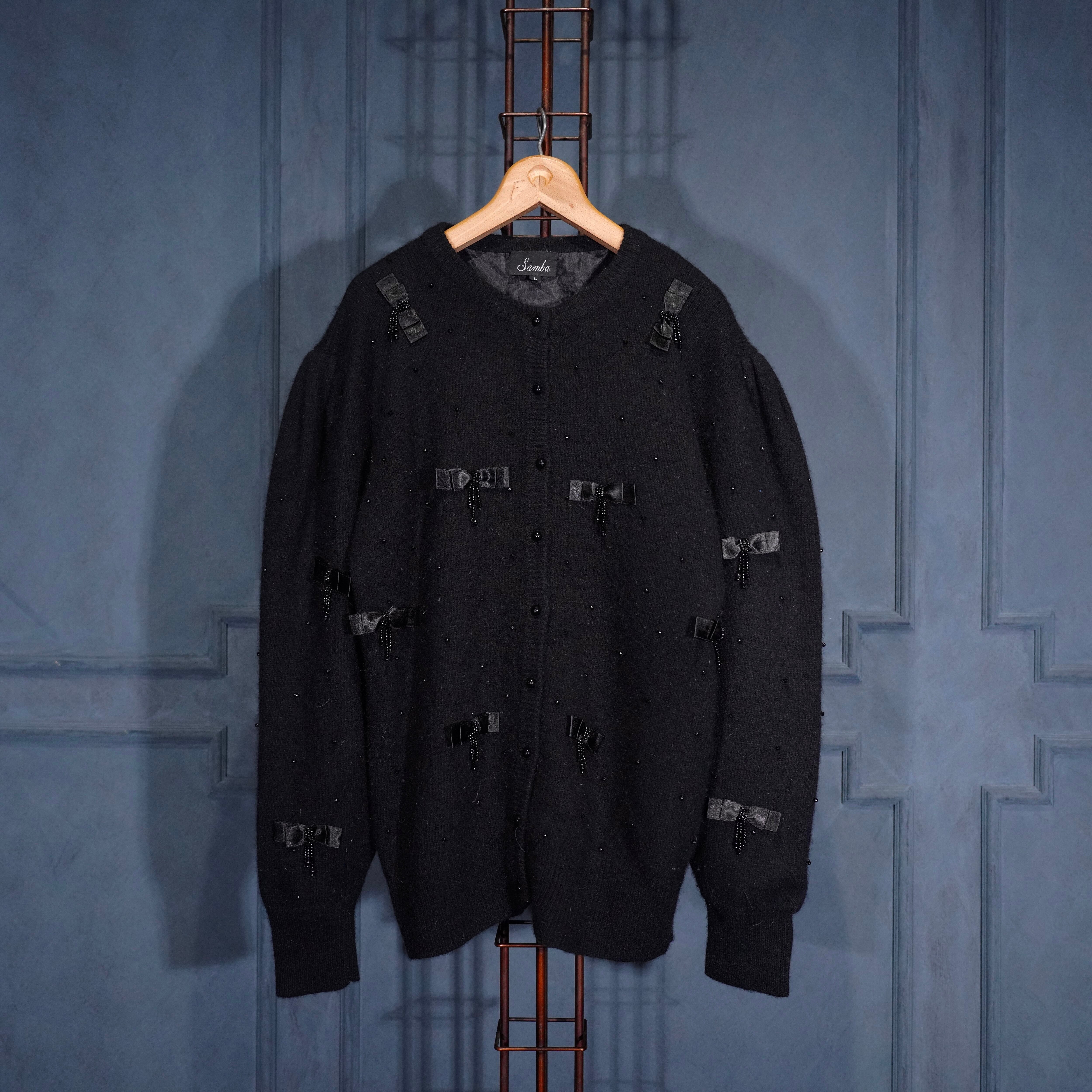 USA VINTAGE Samba RIBBON GIMMICK DESIGN ANGORA WOOL KNIT CARDIGAN/アメリカ古着リボンギミックデザインアンゴラウールニットカーディガン