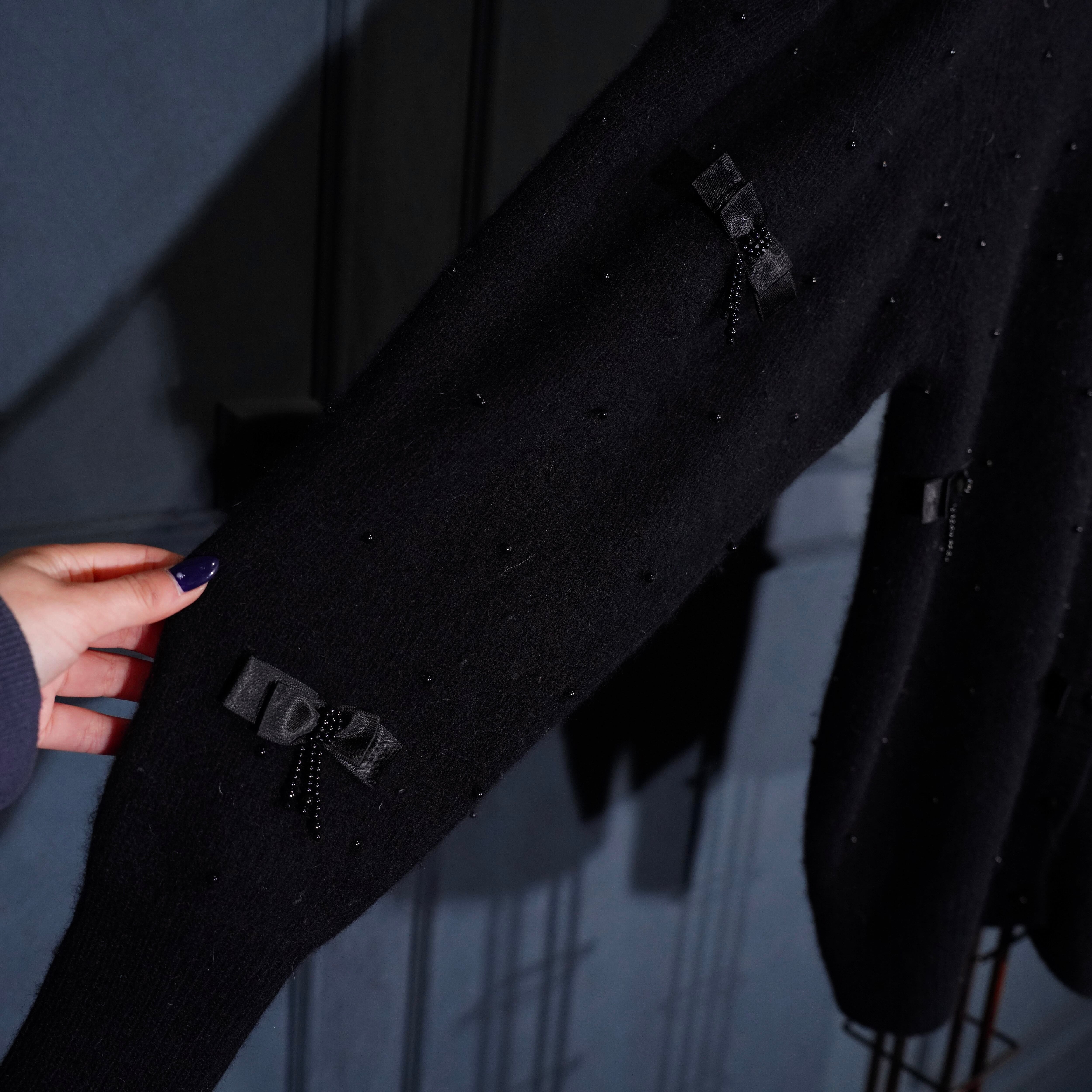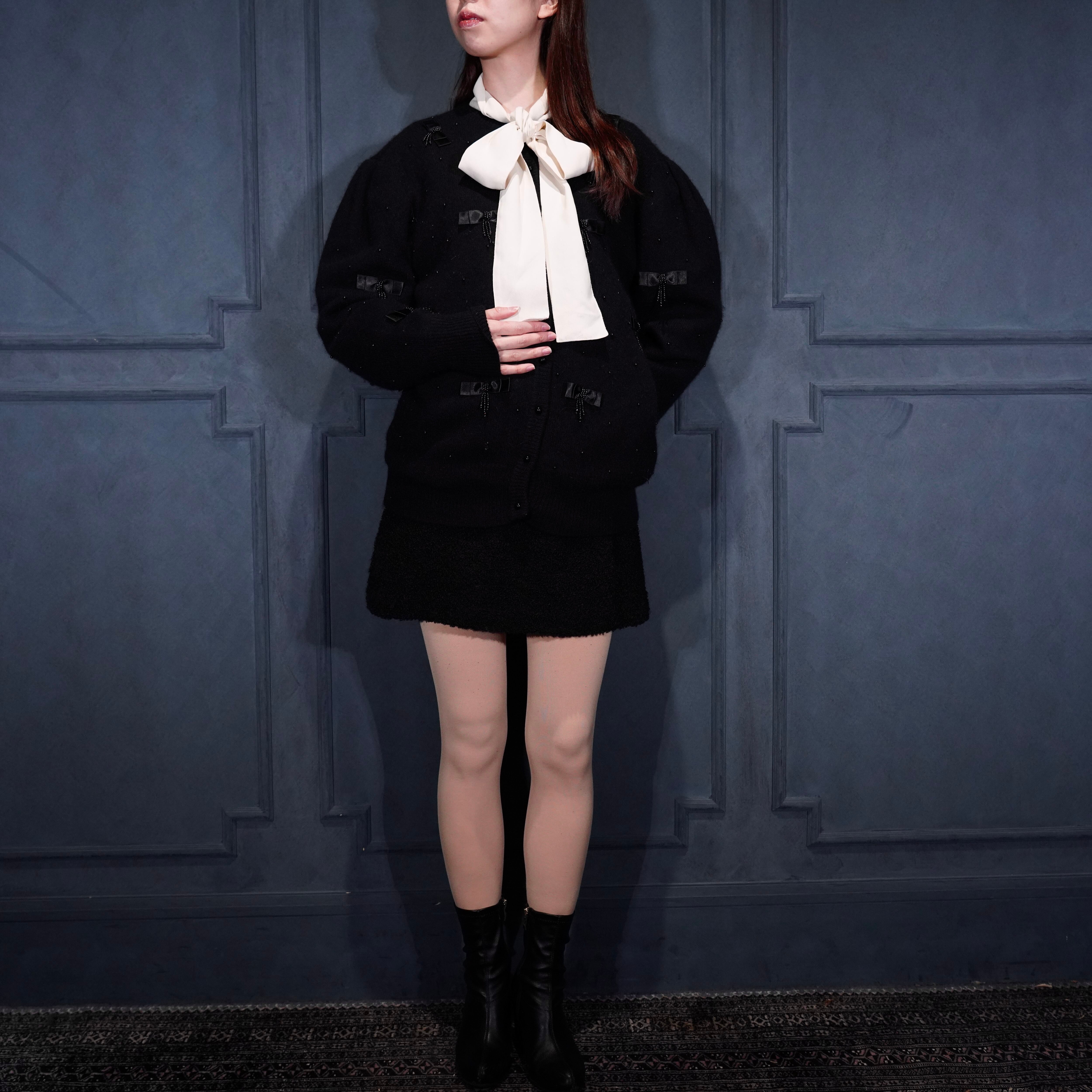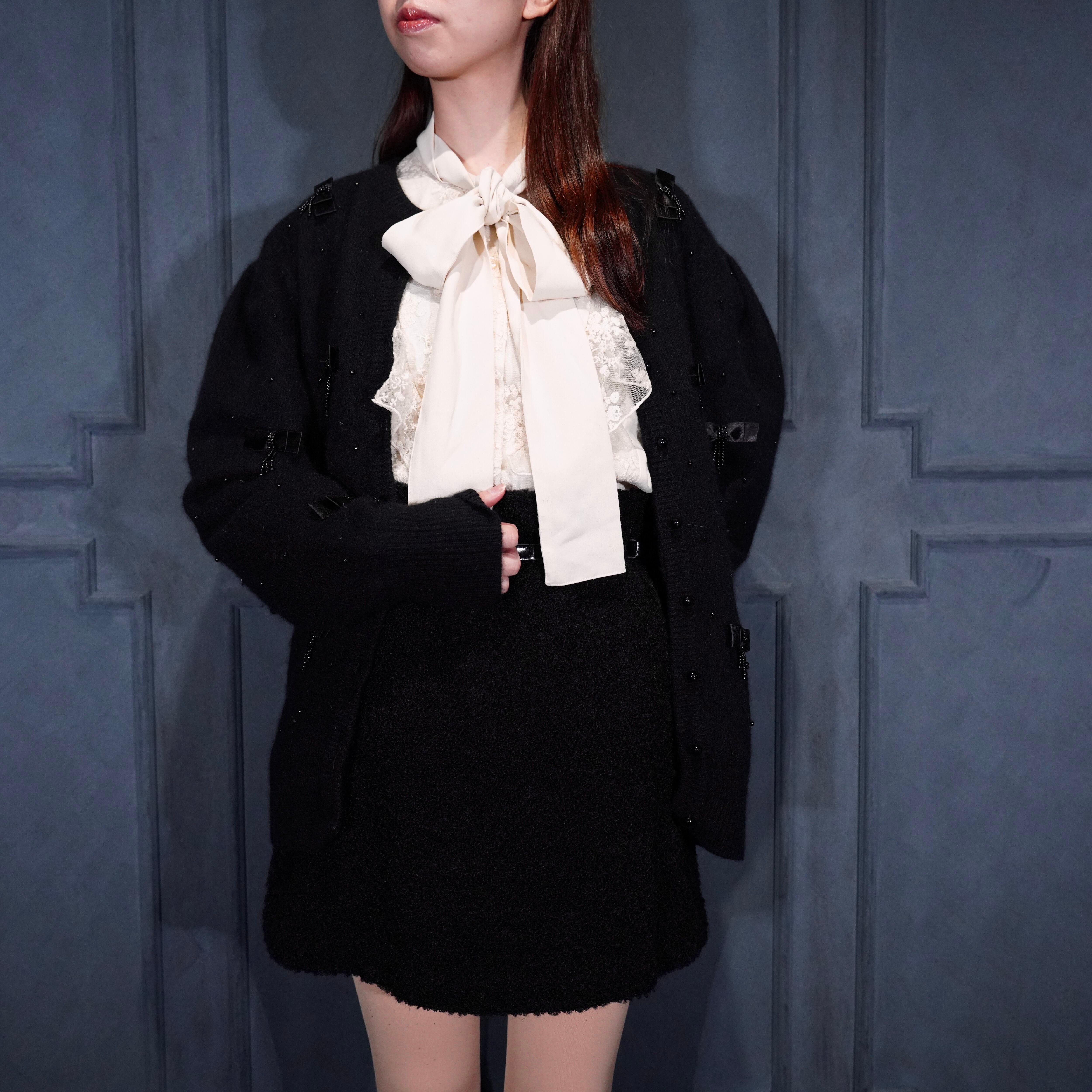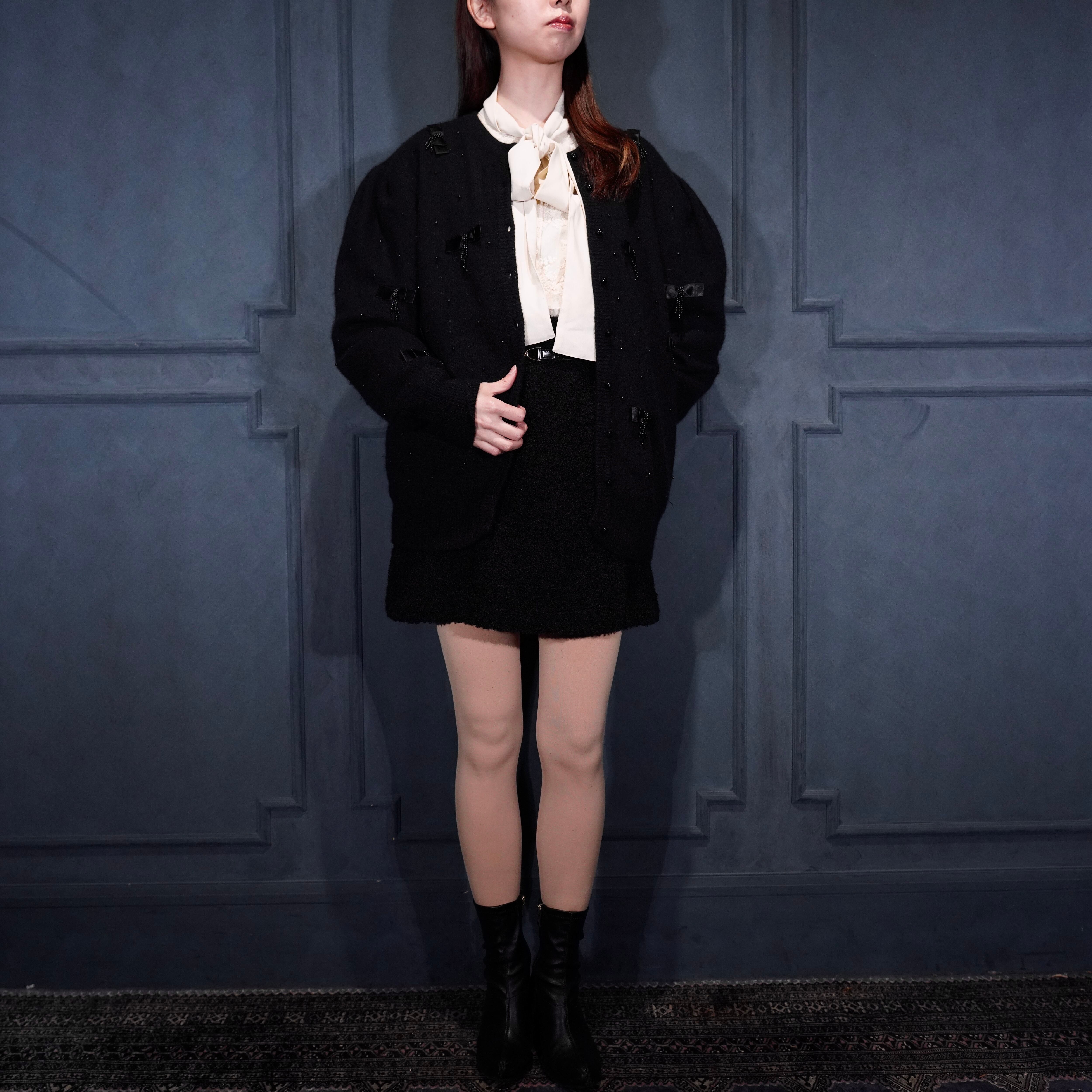 USA VINTAGE Samba RIBBON GIMMICK DESIGN ANGORA WOOL KNIT CARDIGAN/アメリカ古着リボンギミックデザインアンゴラウールニットカーディガン