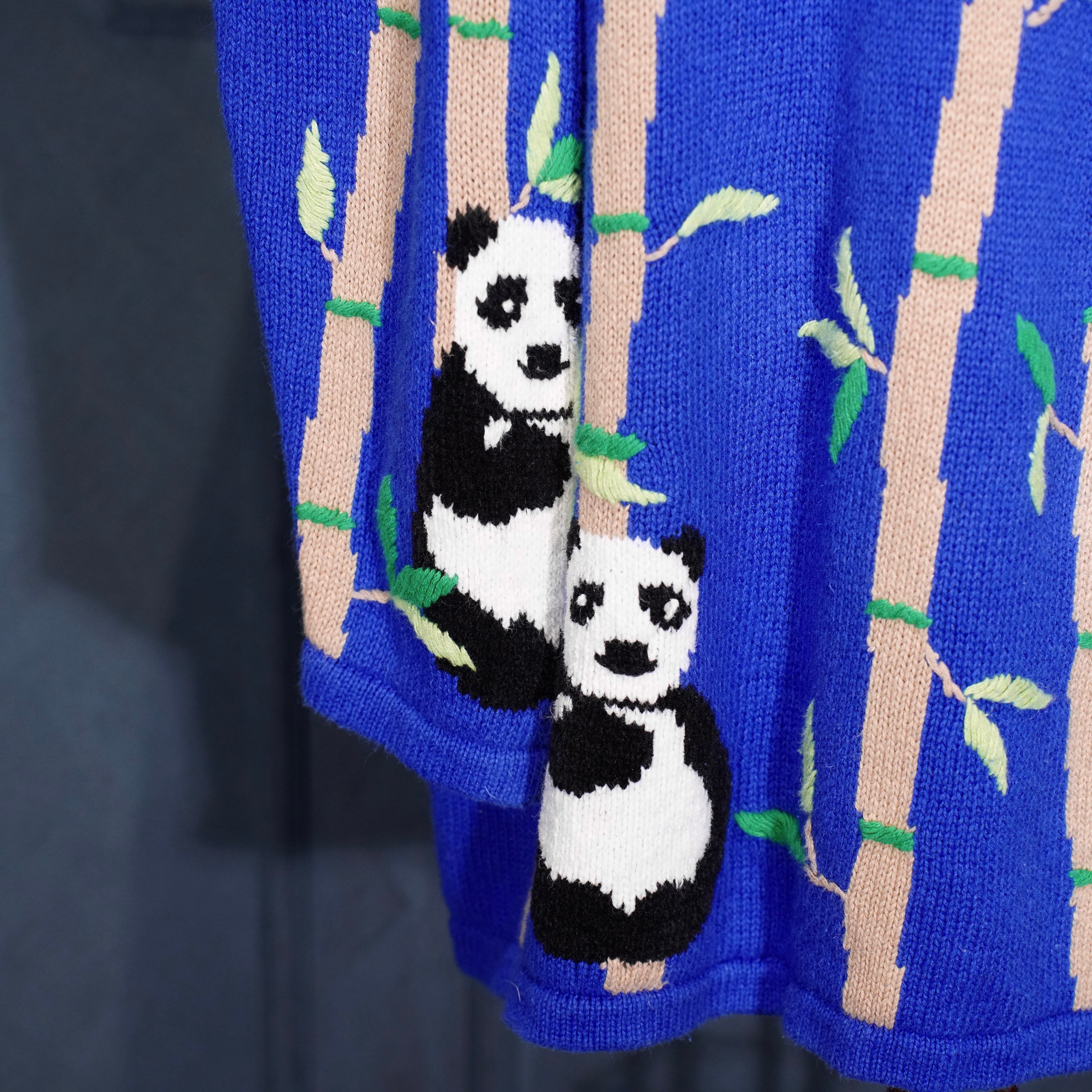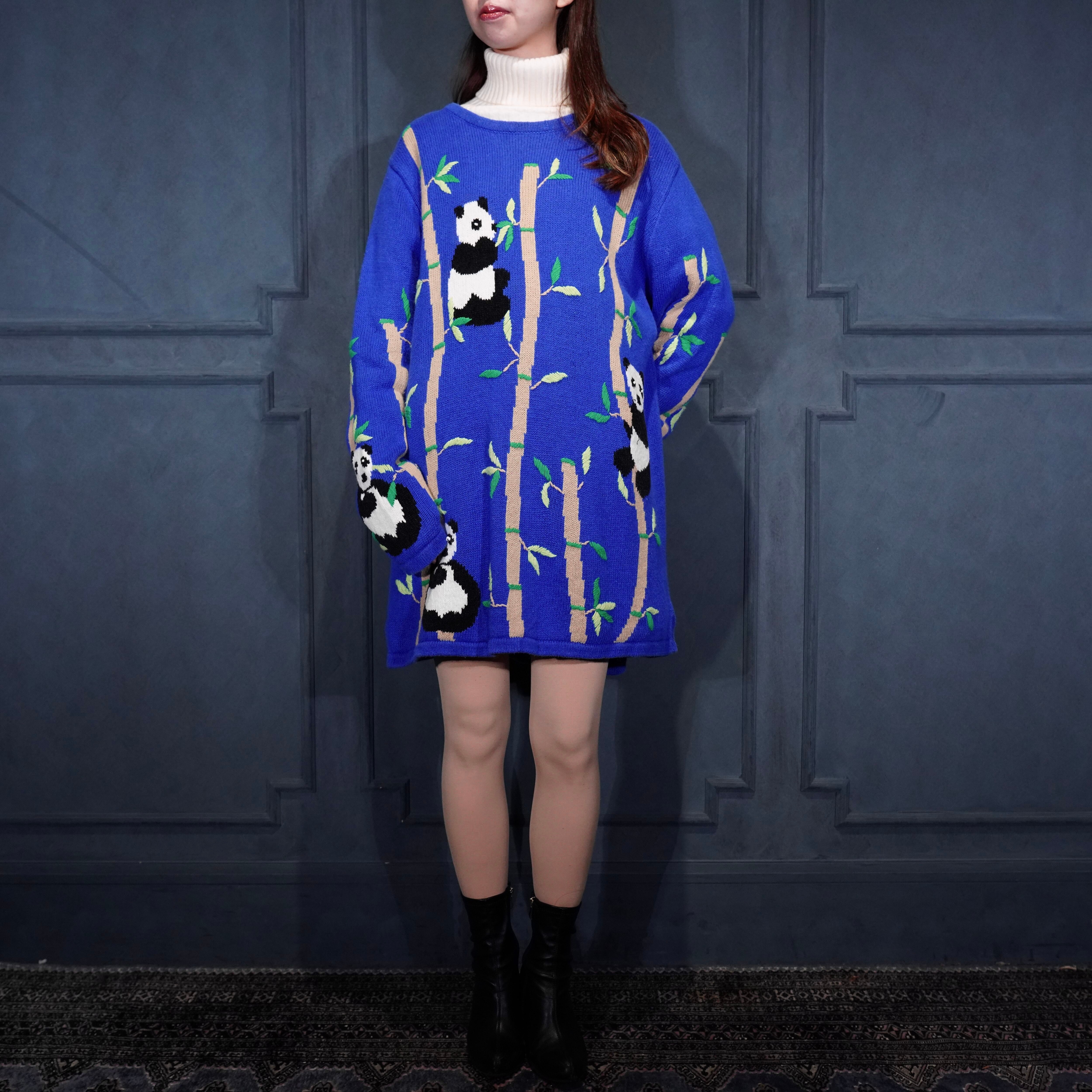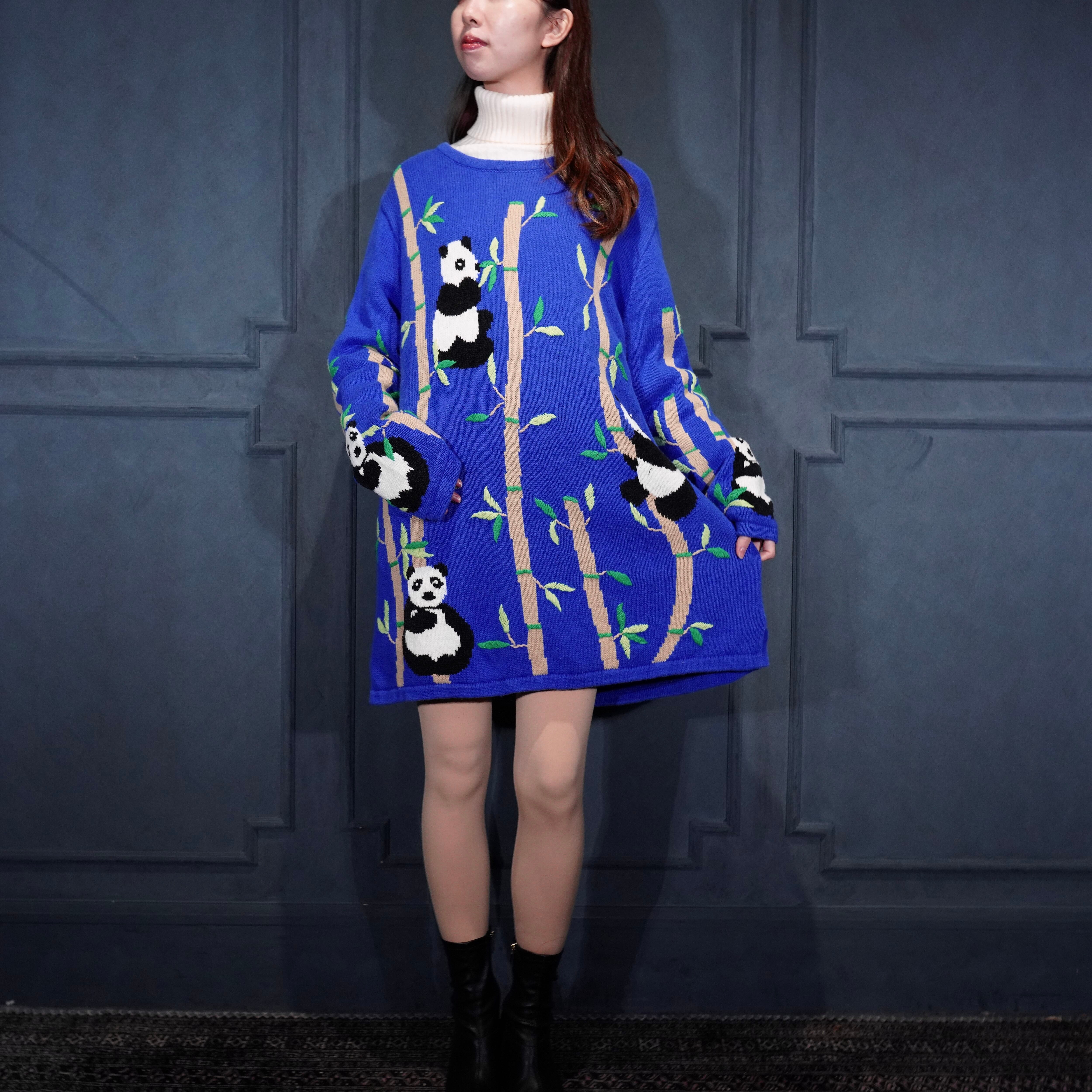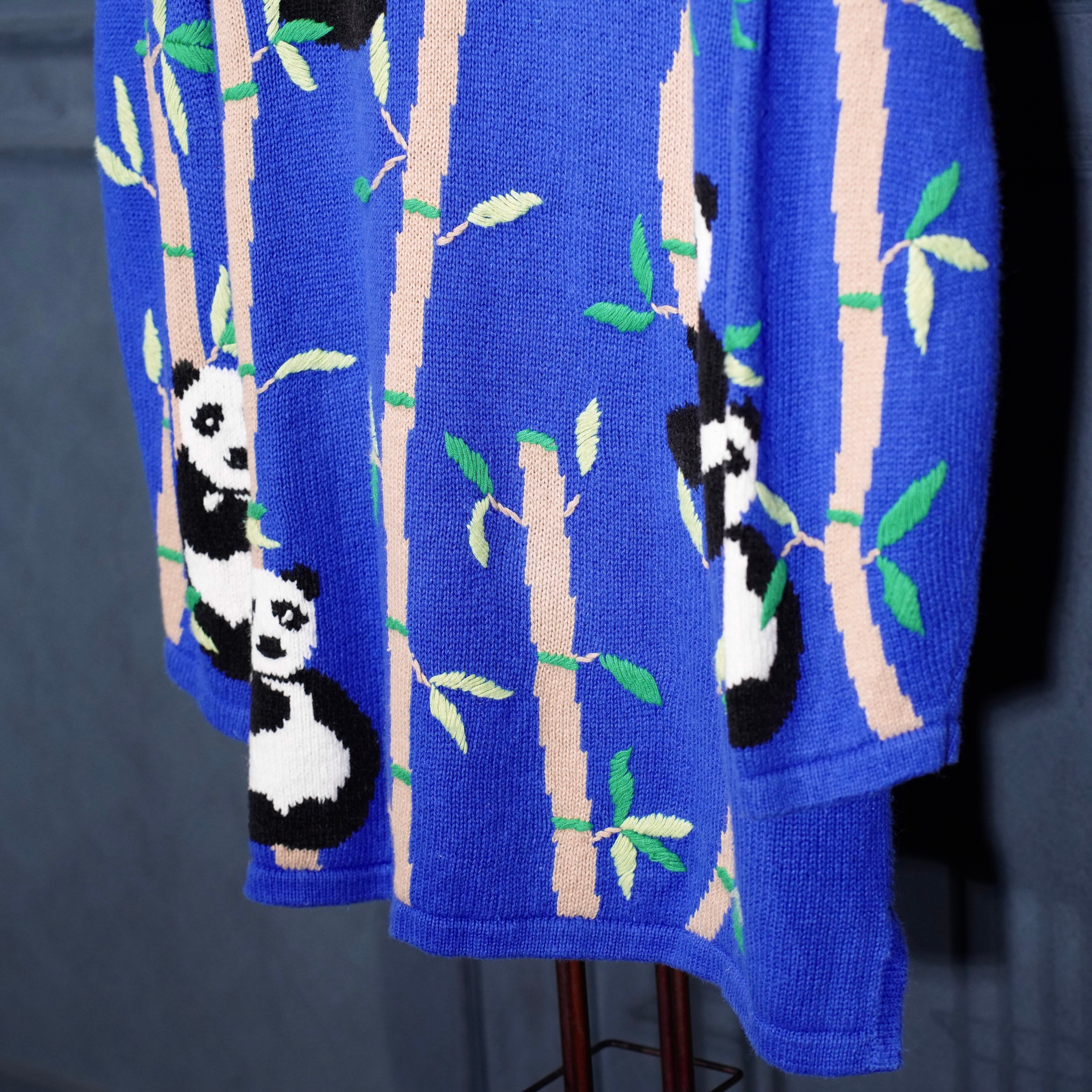 USA VINTAGE the Quacker Factory PANDA PATTERNED DESIGN COTTON RAMIE KNIT ONE PIECE/アメリカ古着パンダ柄デザインコットンラミーニットワンピース