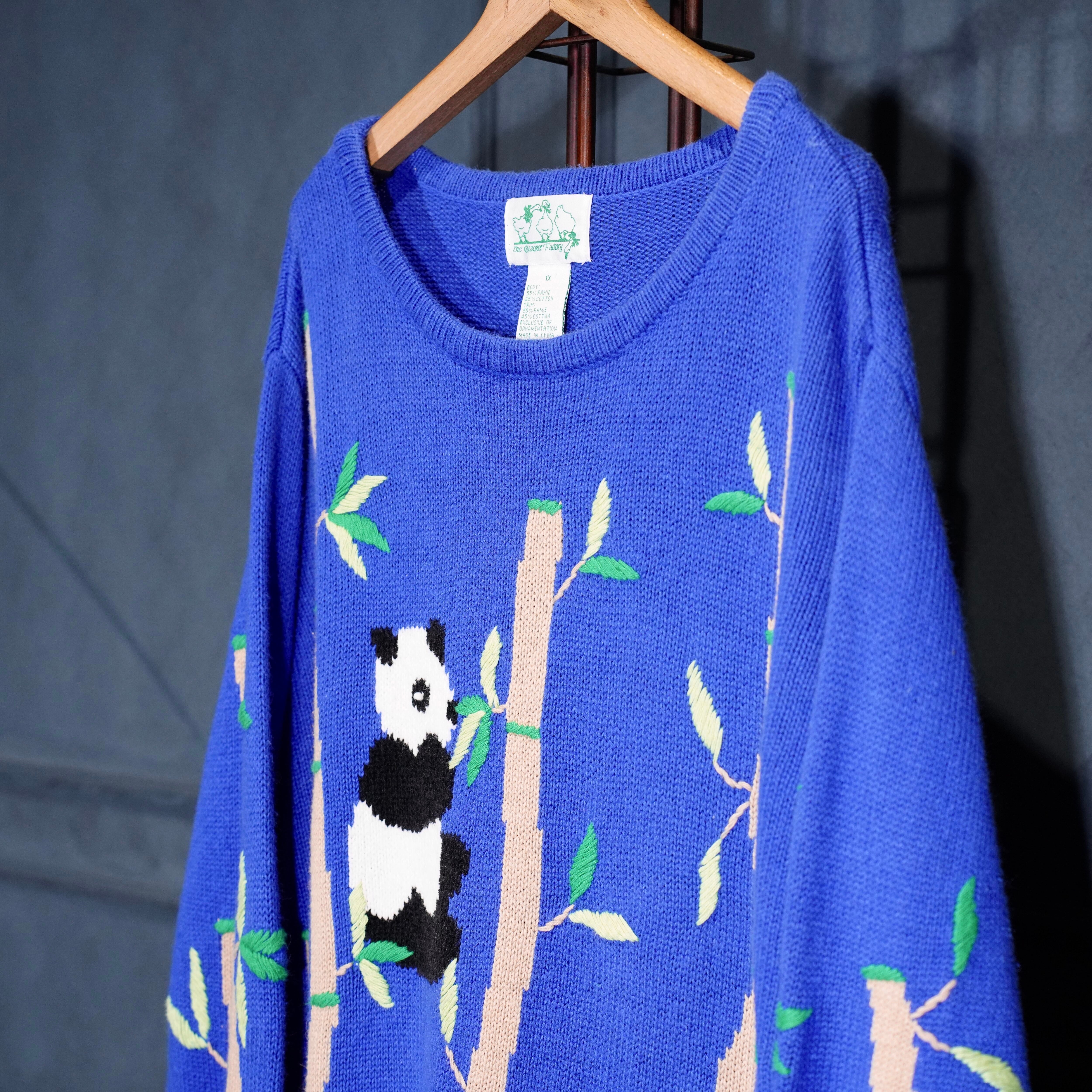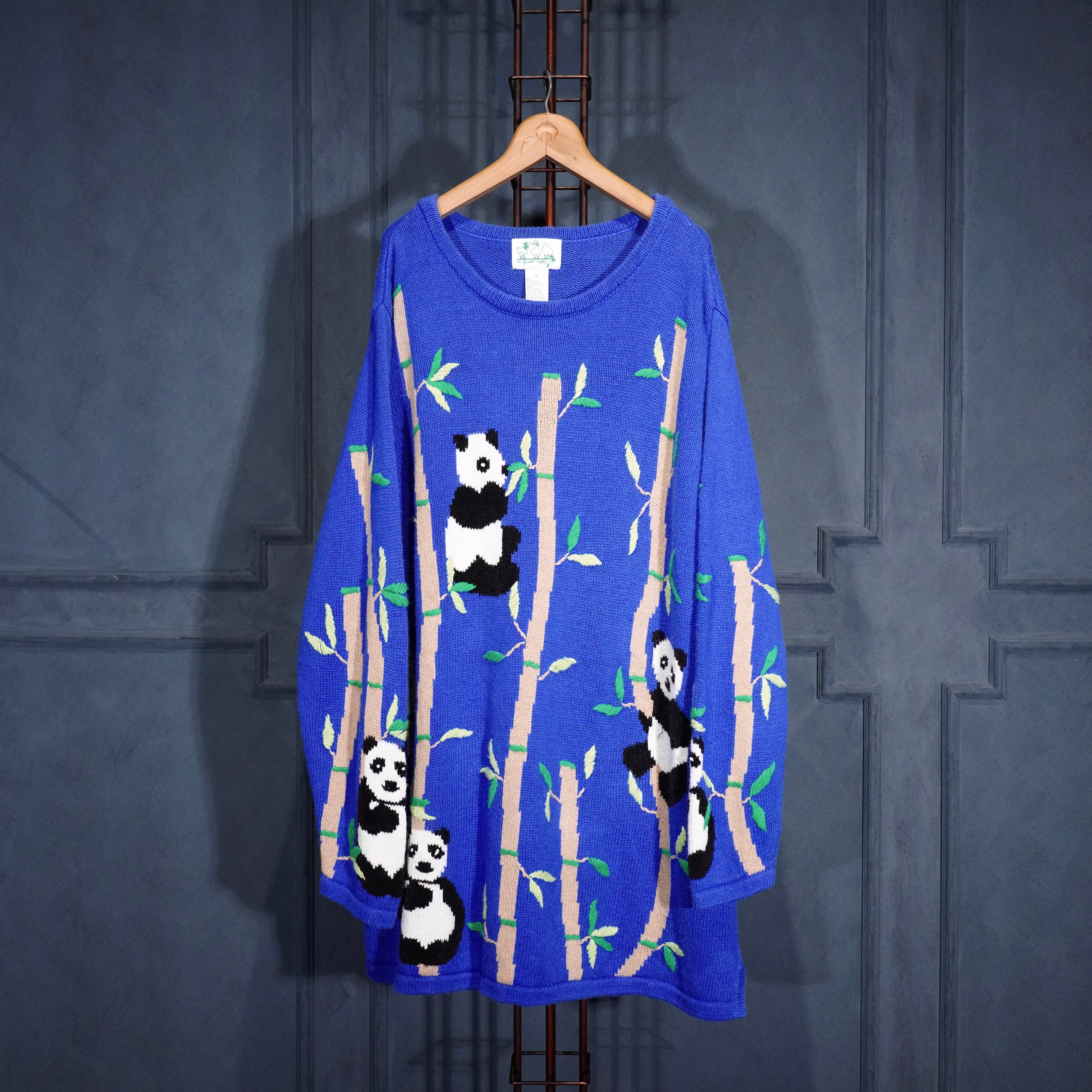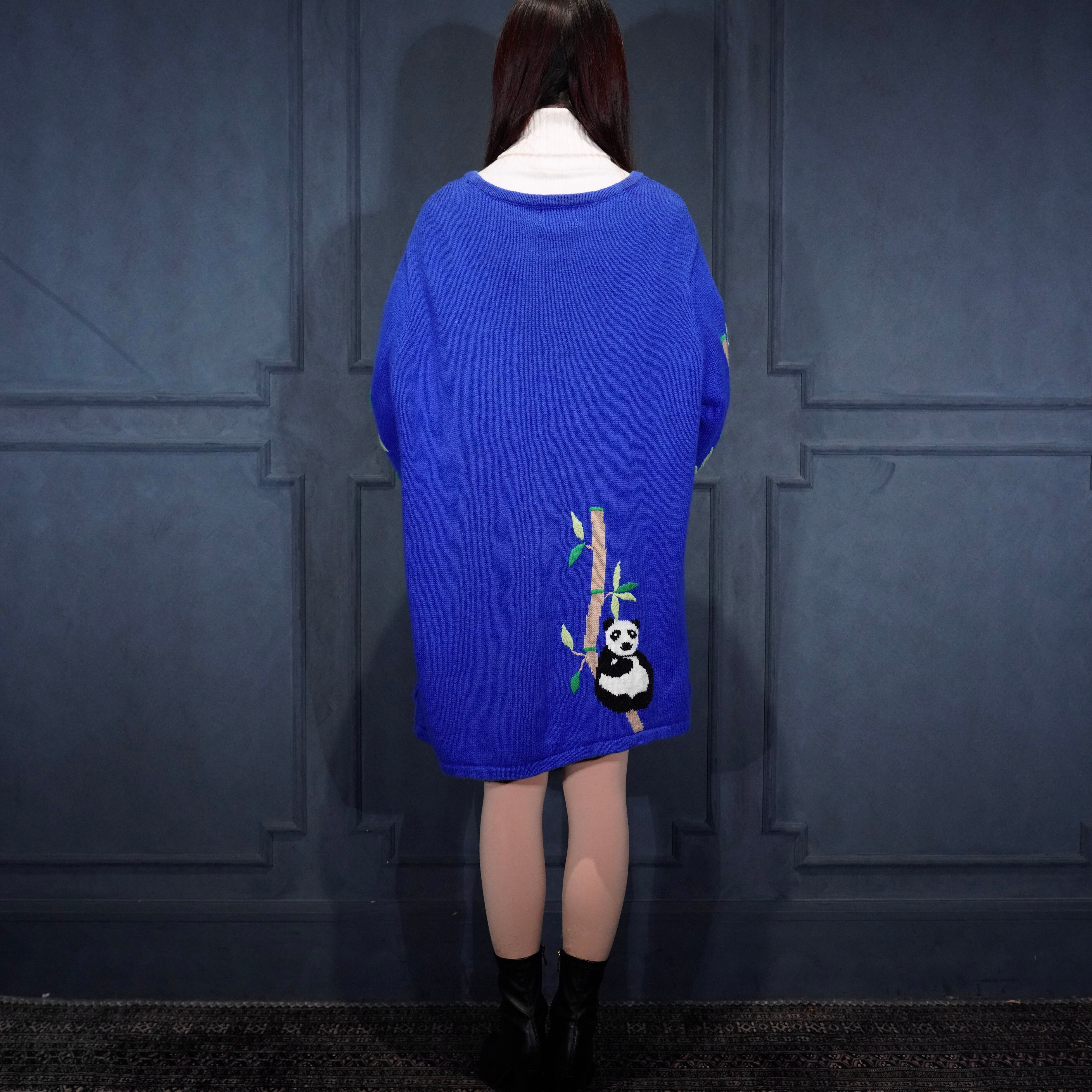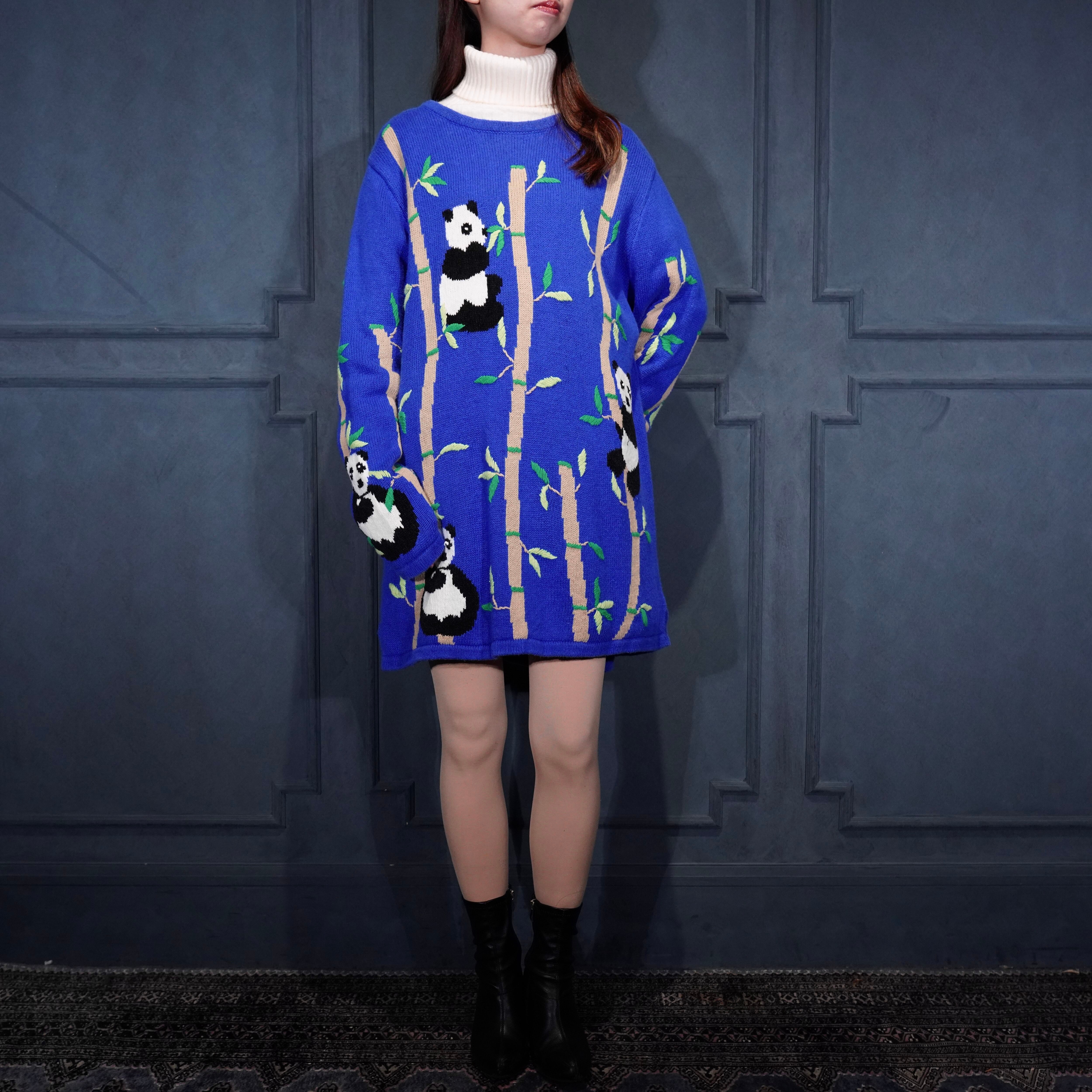 USA VINTAGE the Quacker Factory PANDA PATTERNED DESIGN COTTON RAMIE KNIT ONE PIECE/アメリカ古着パンダ柄デザインコットンラミーニットワンピース