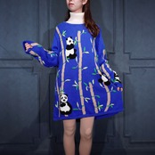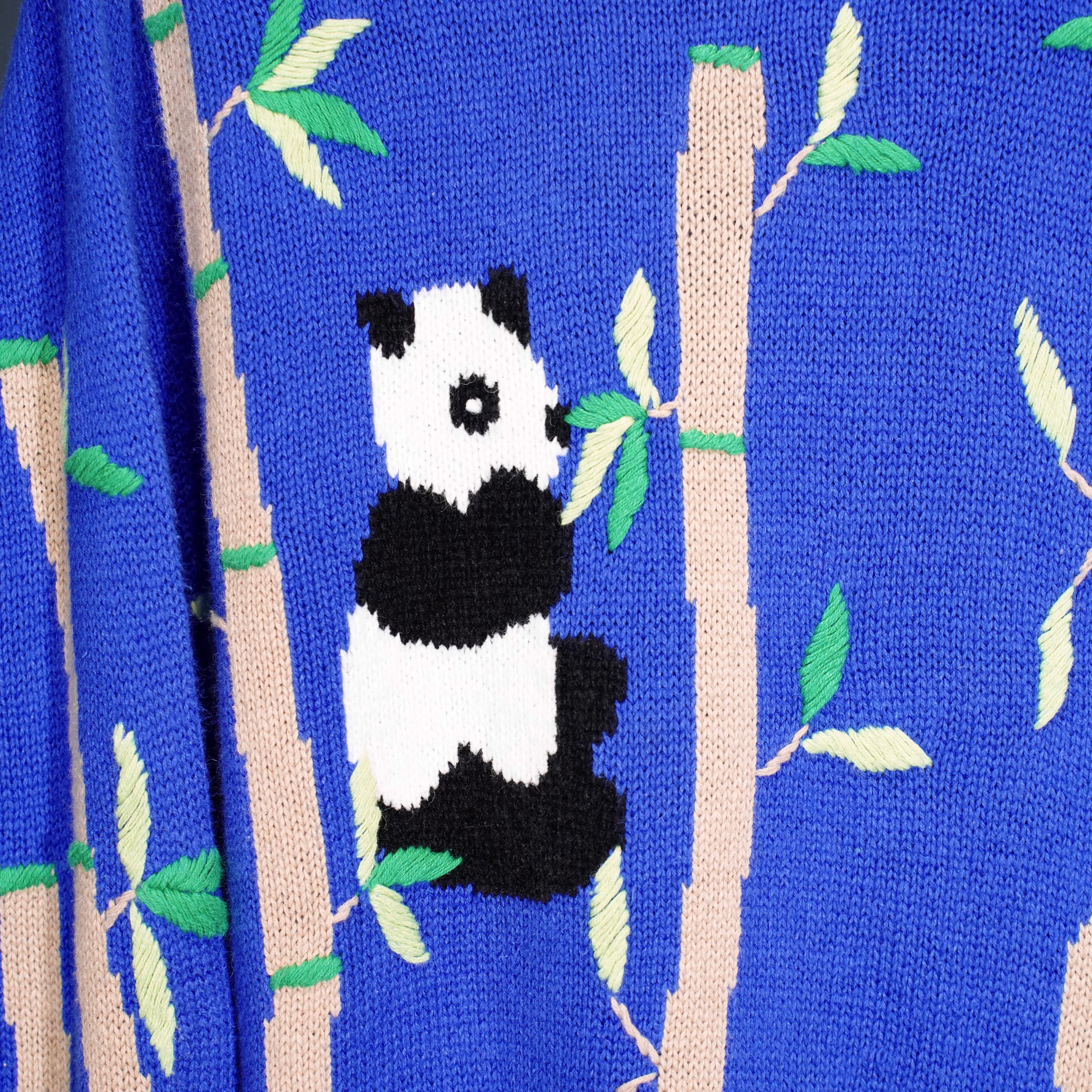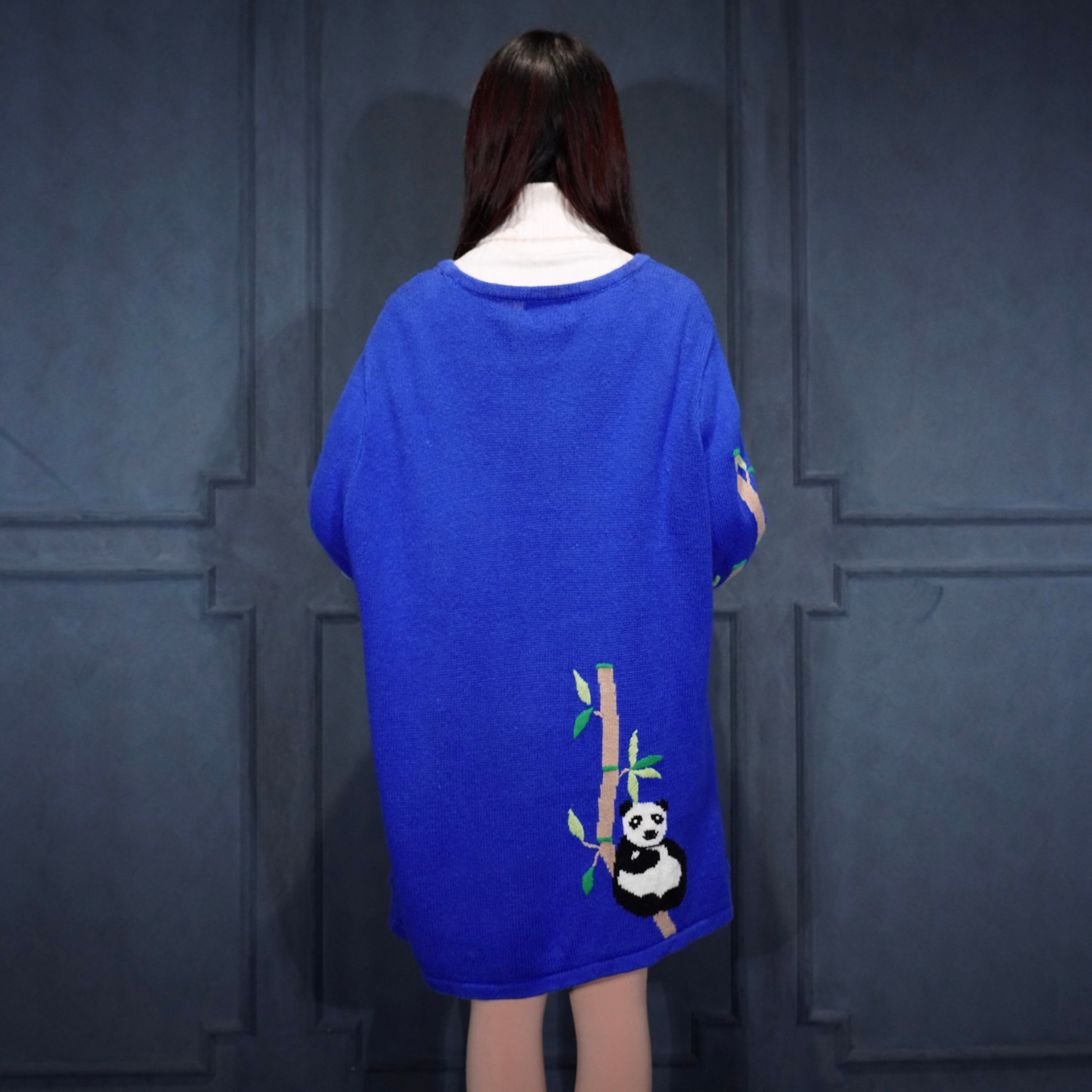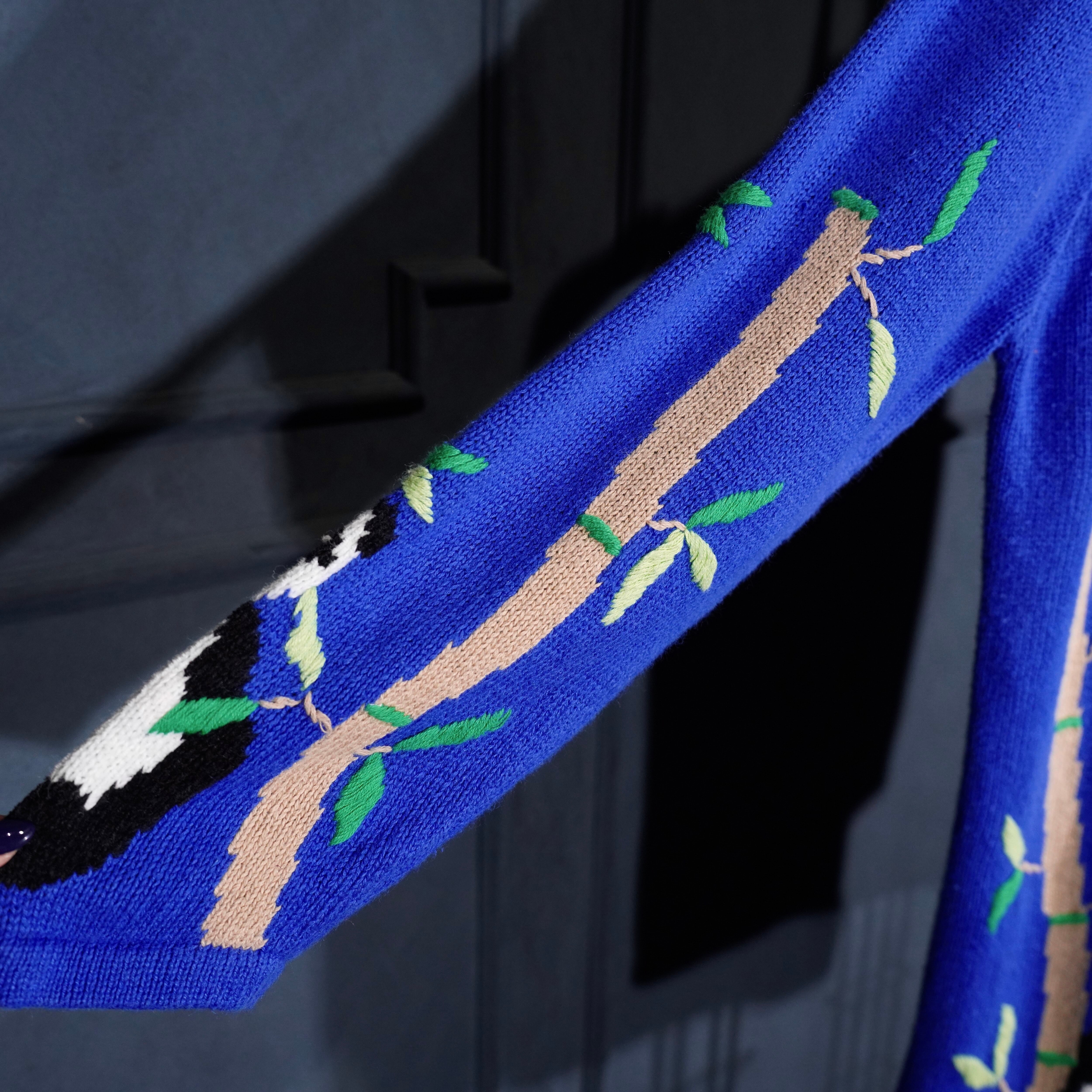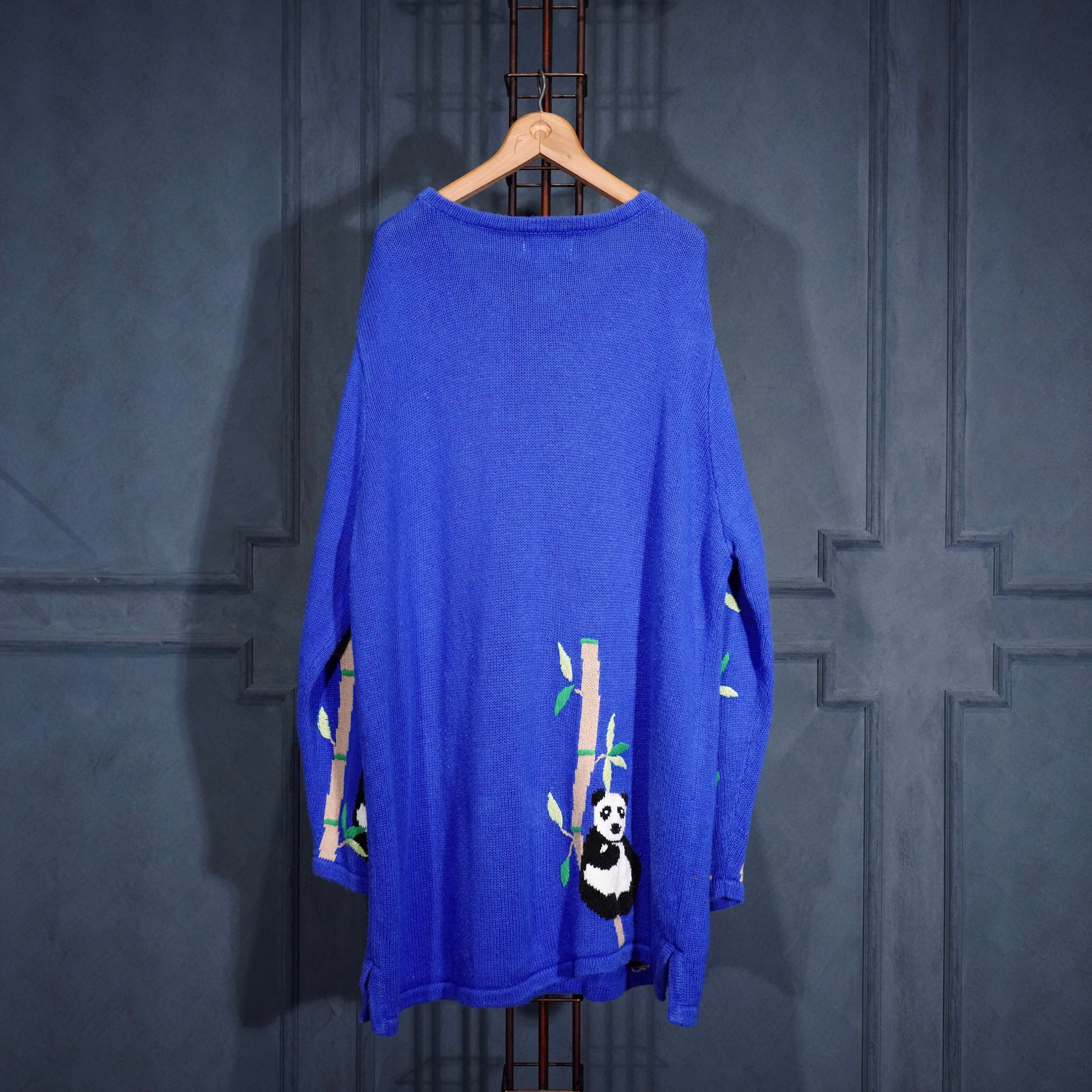 USA VINTAGE the Quacker Factory PANDA PATTERNED DESIGN COTTON RAMIE KNIT ONE PIECE/アメリカ古着パンダ柄デザインコットンラミーニットワンピース