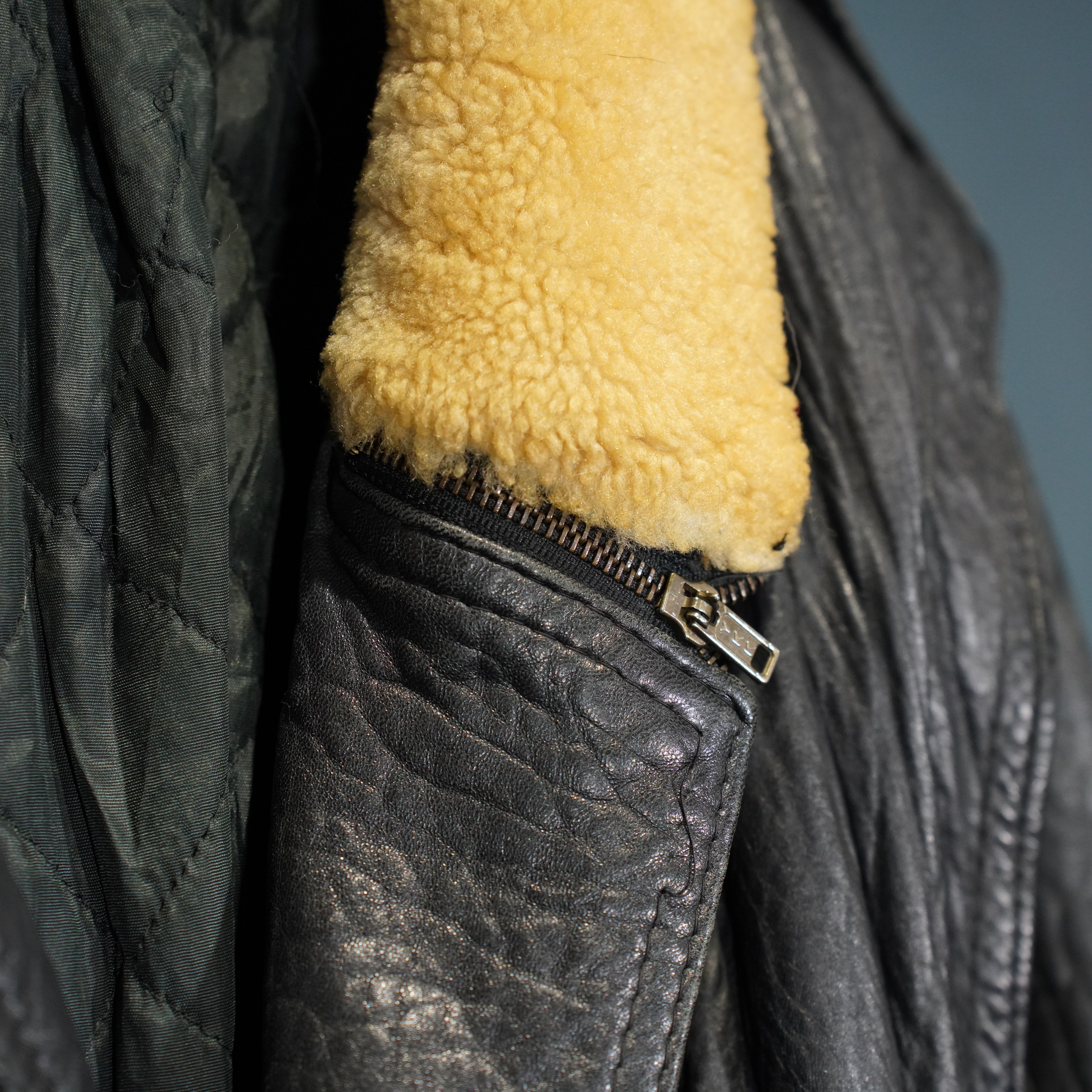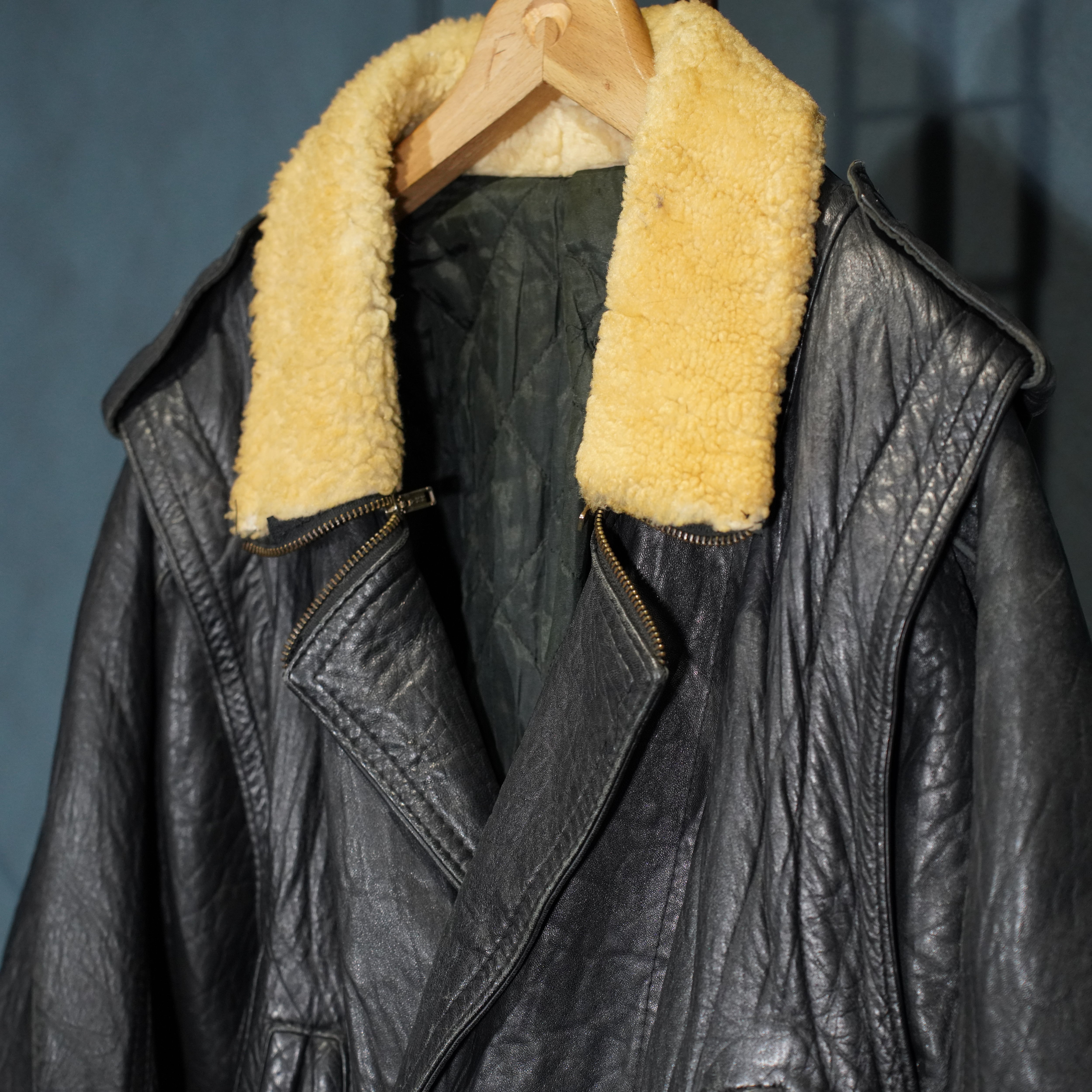 EU VINTAGE Sherling MOUTON COLLAR DOUBLE TYPE LEATHER JACKET MADE IN ITALY/ヨーロッパ古着ムートン襟ダブルタイプレザージャケット