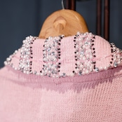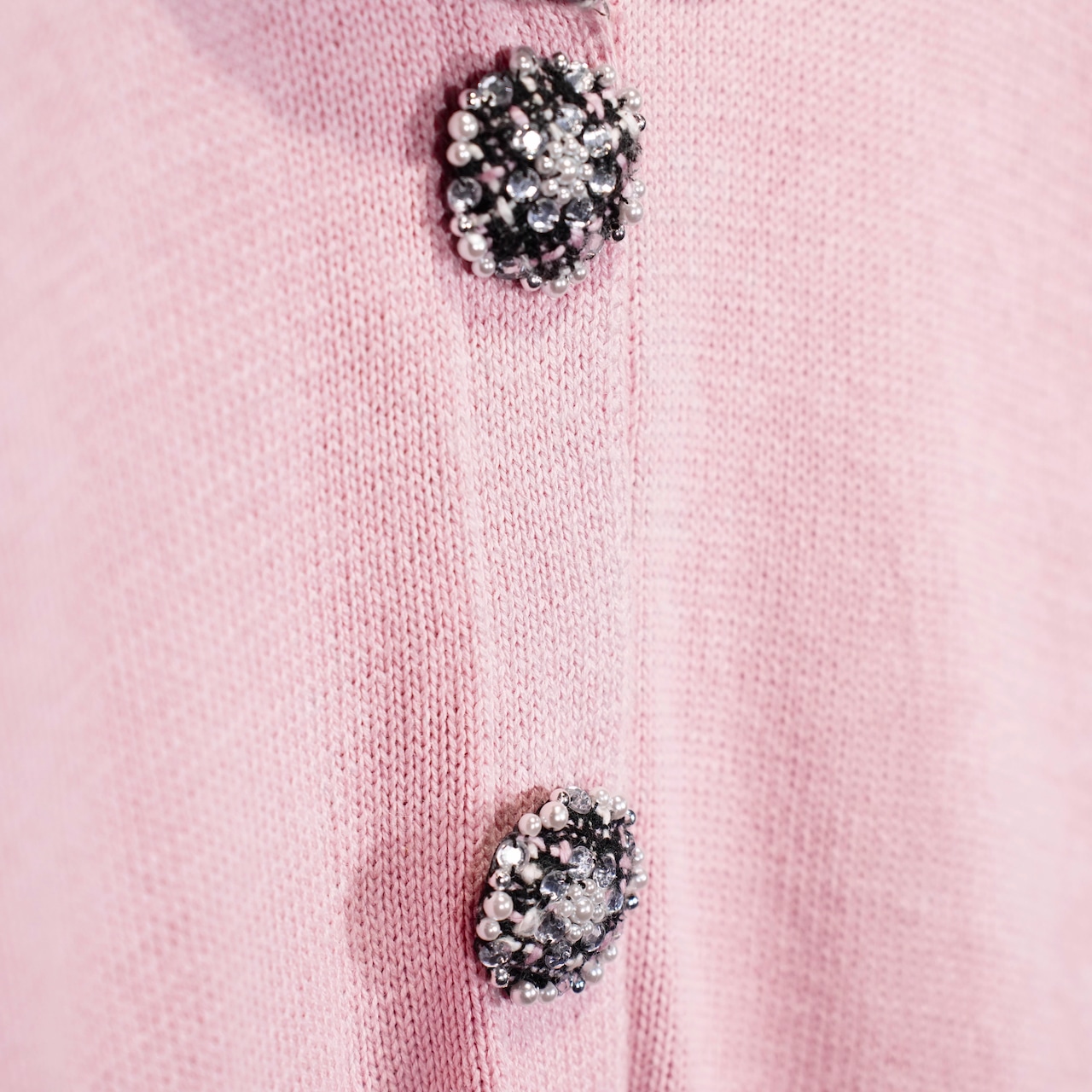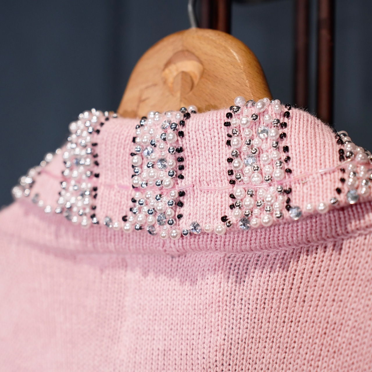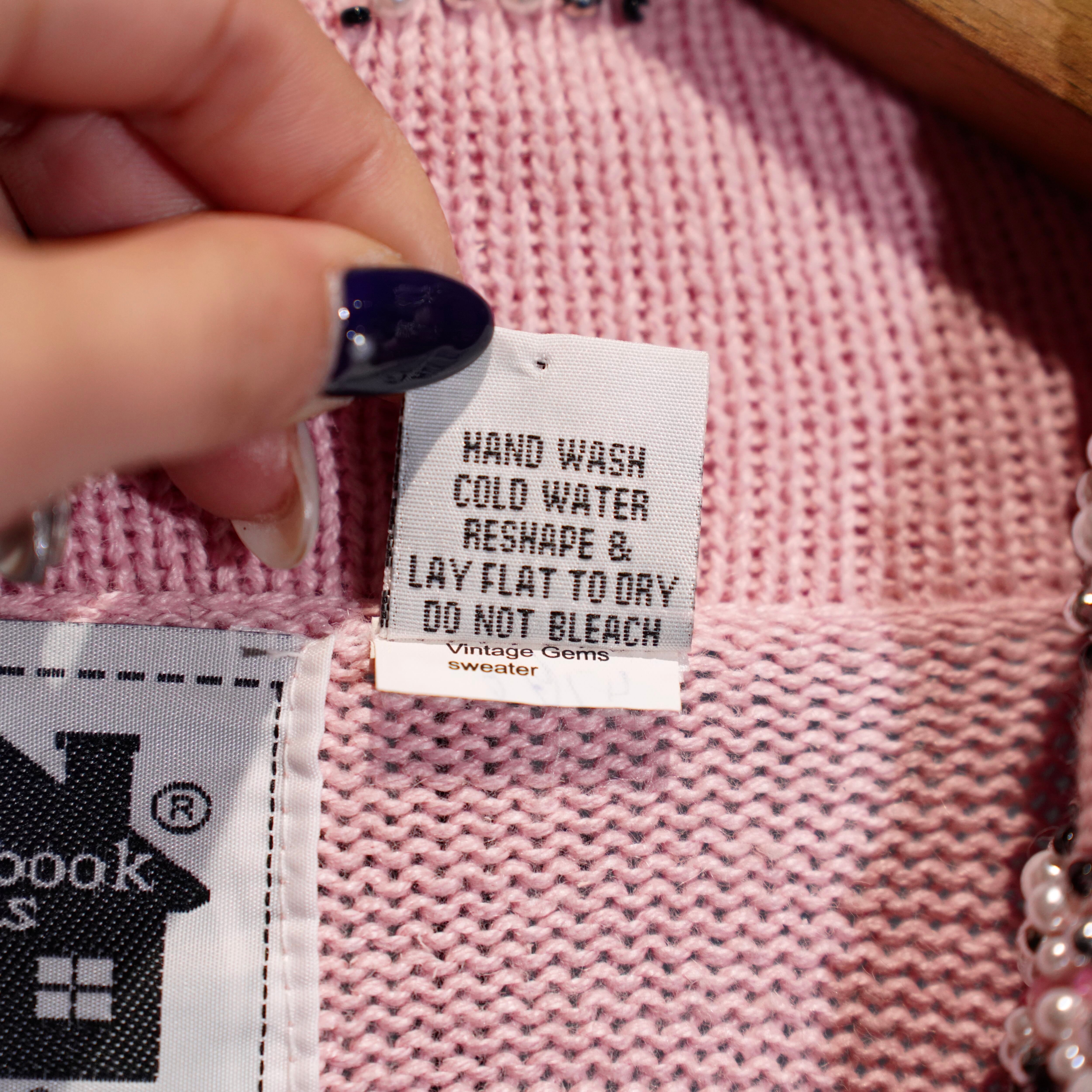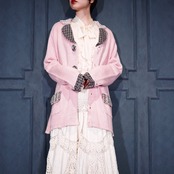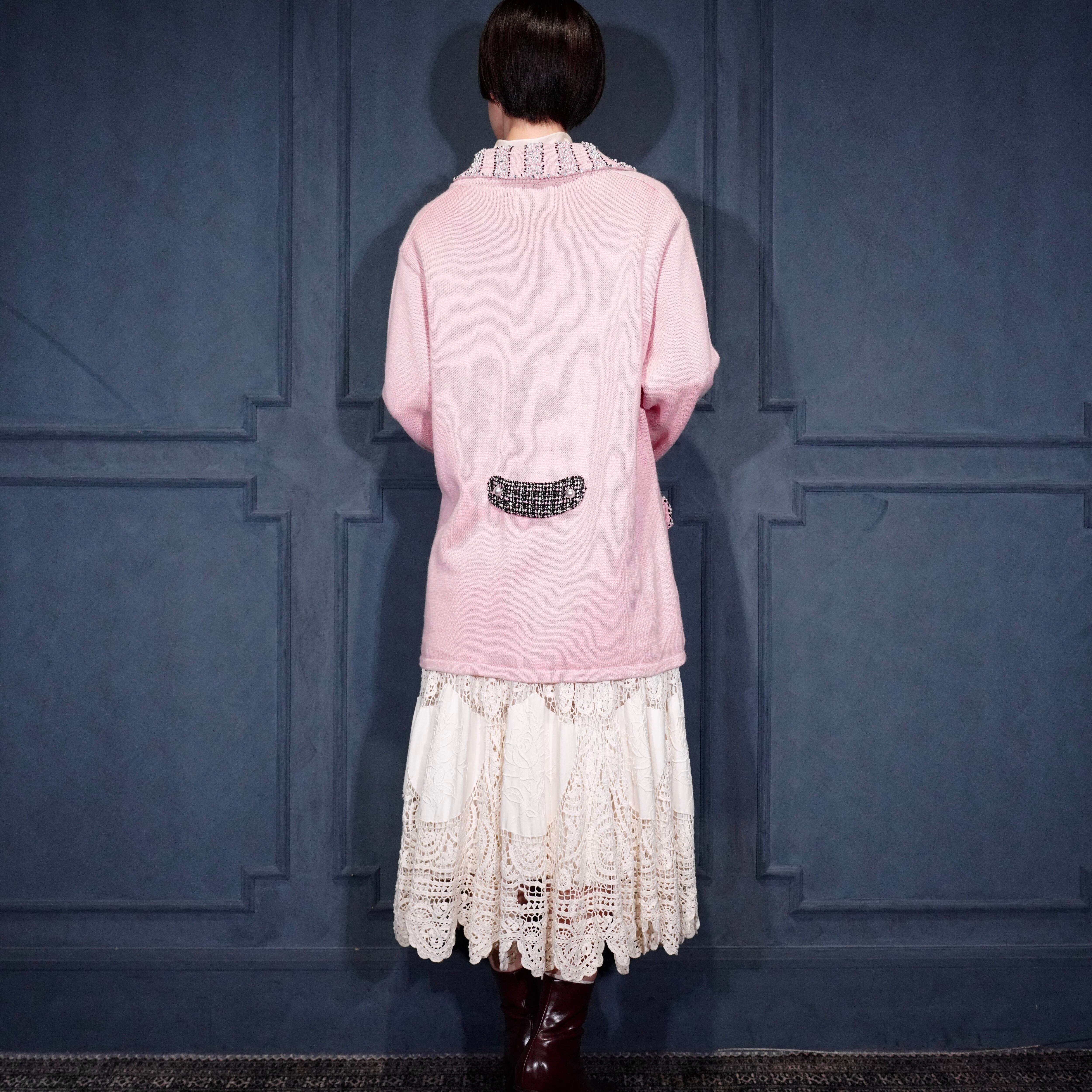 USA VINTAGE Storybook Knits TWEED COLLAR PEARL BEJOU DESIGN COTTON RAMIE KNIT JACKET/アメリカ古着ツイード襟パールビジューデザインコットンラミーニットジャケット(カーディガン)