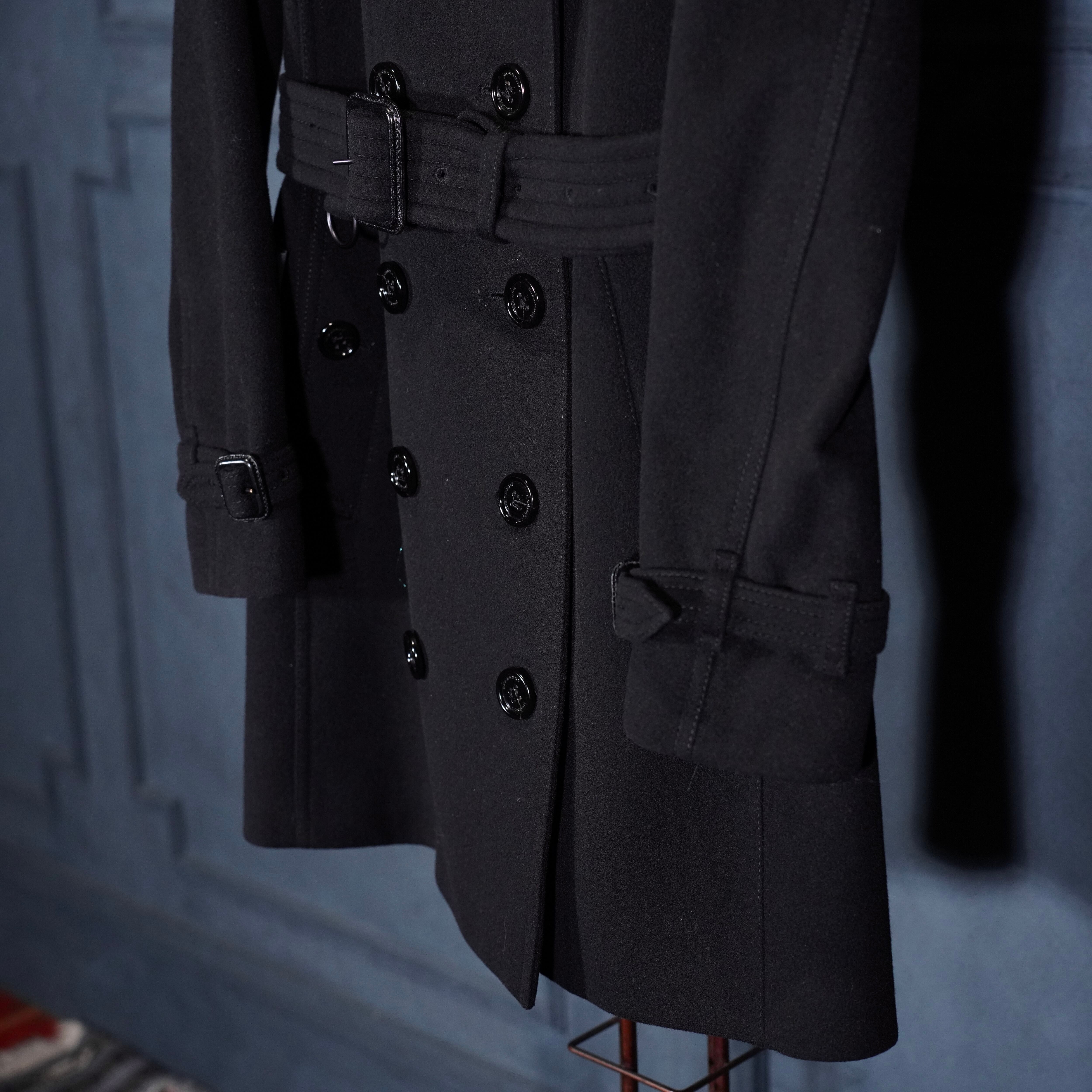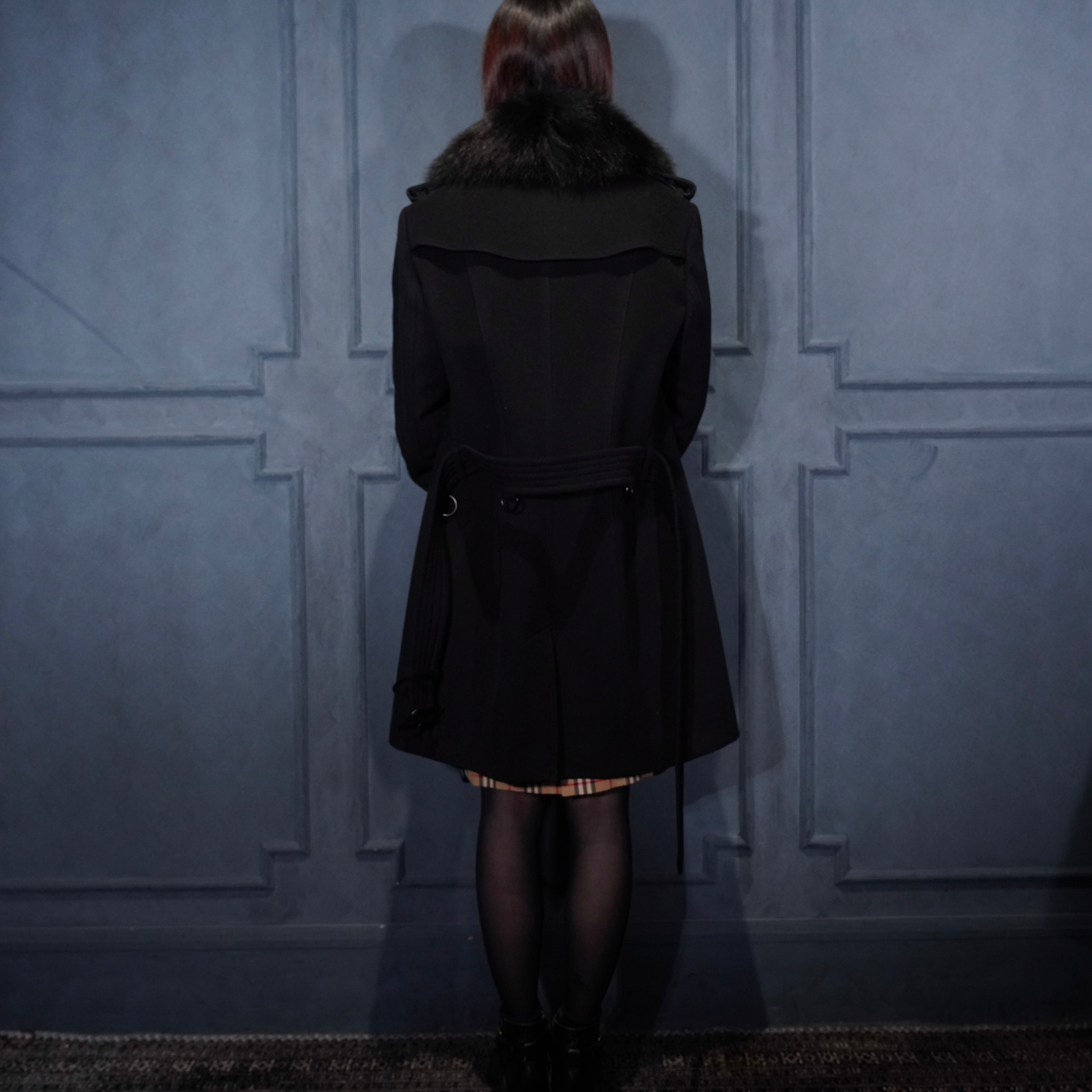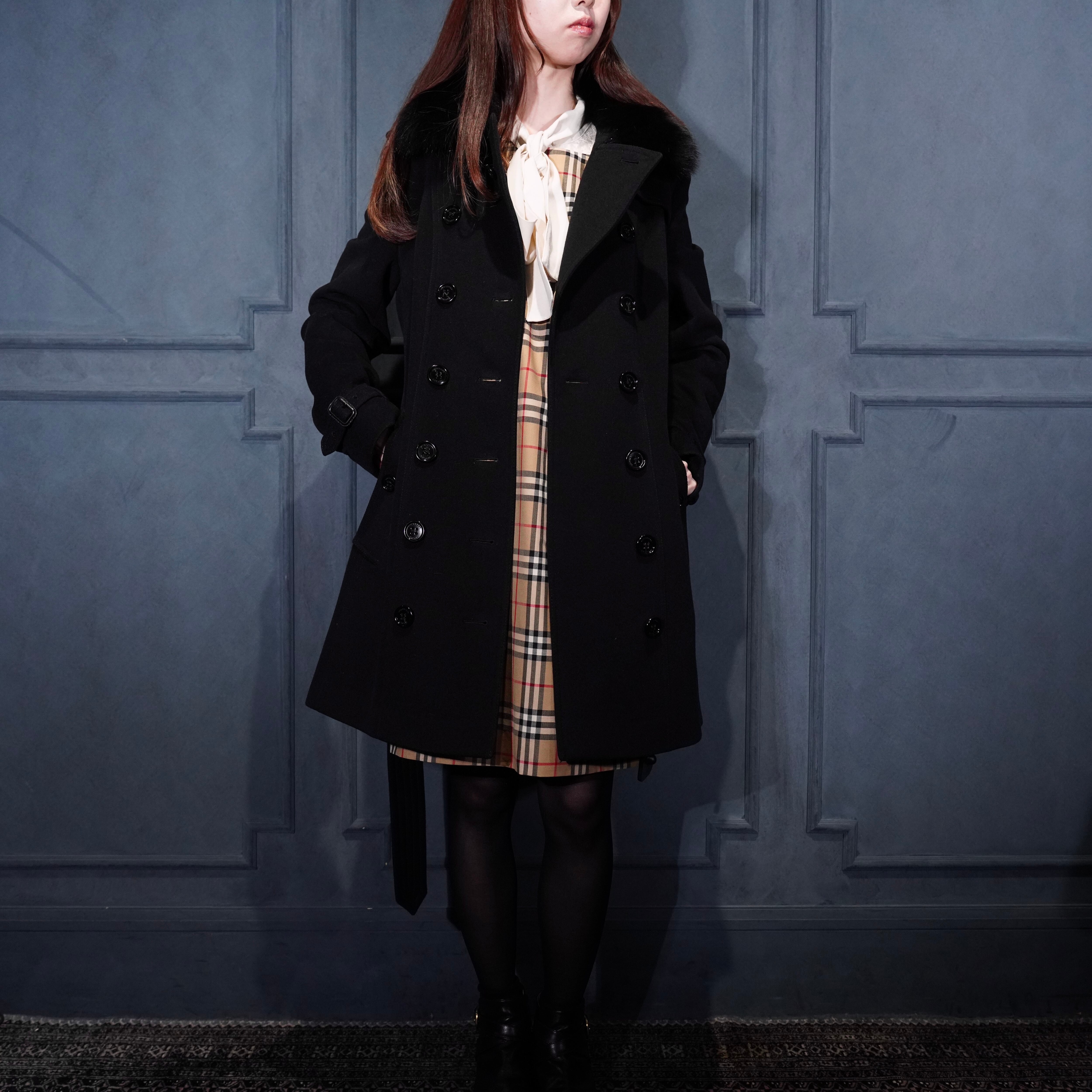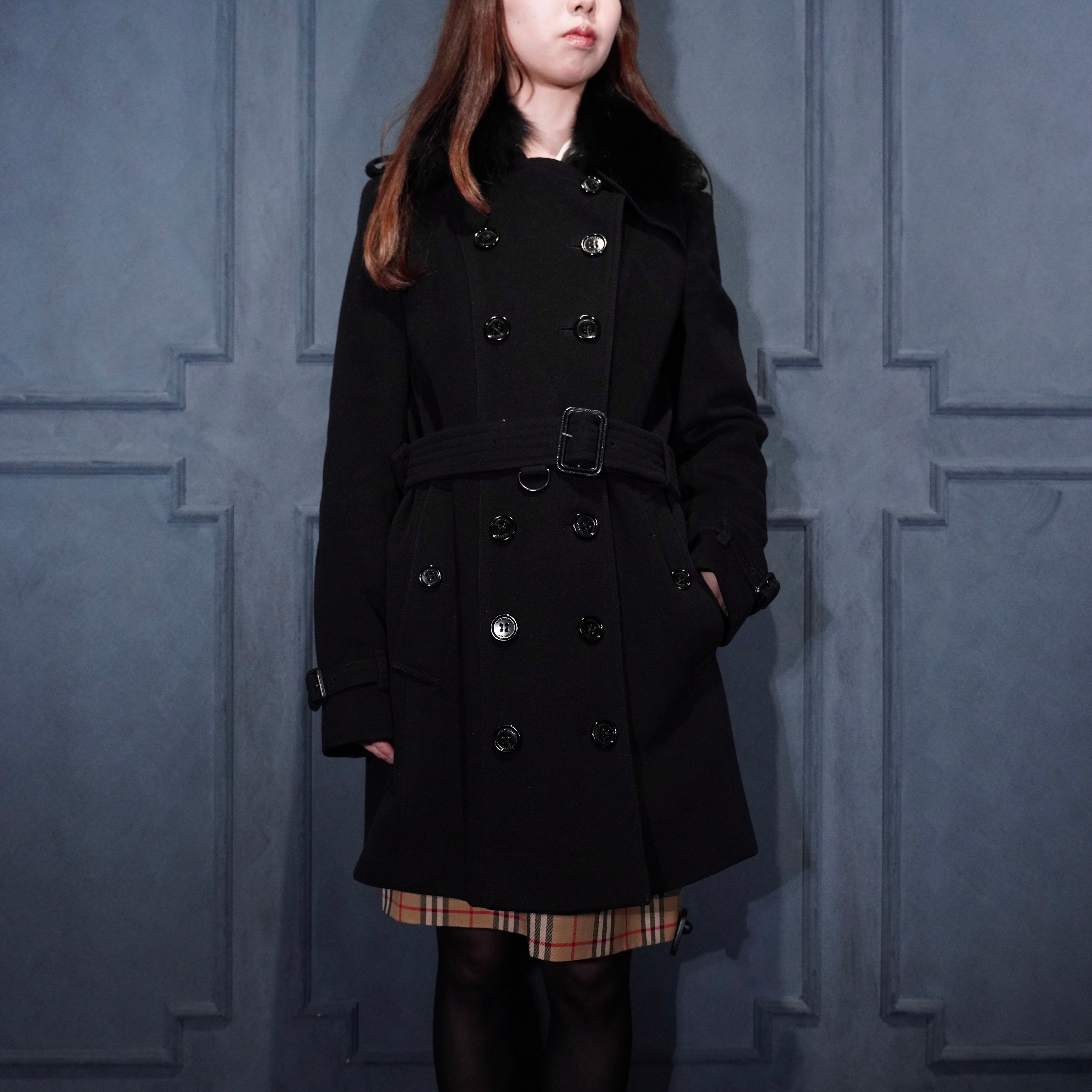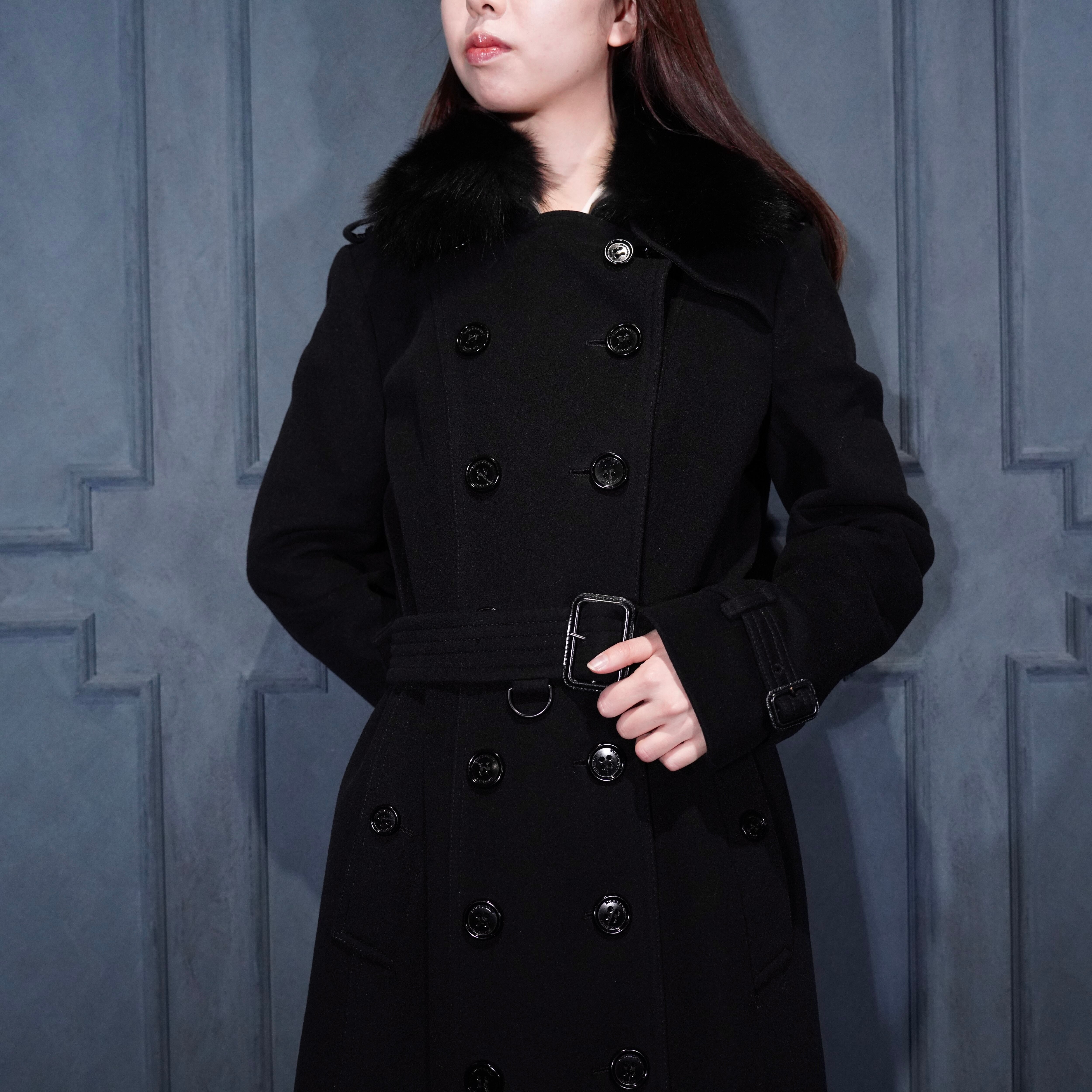 BURBERRY LONDON SANDRINGHAM BLUE FOX FUR CASHMERE BREND WOOL BELTED TRENCH COAT/バーバリーロンドンブルーフォックファーカシミヤ混ウールベルテッドトレンチコート