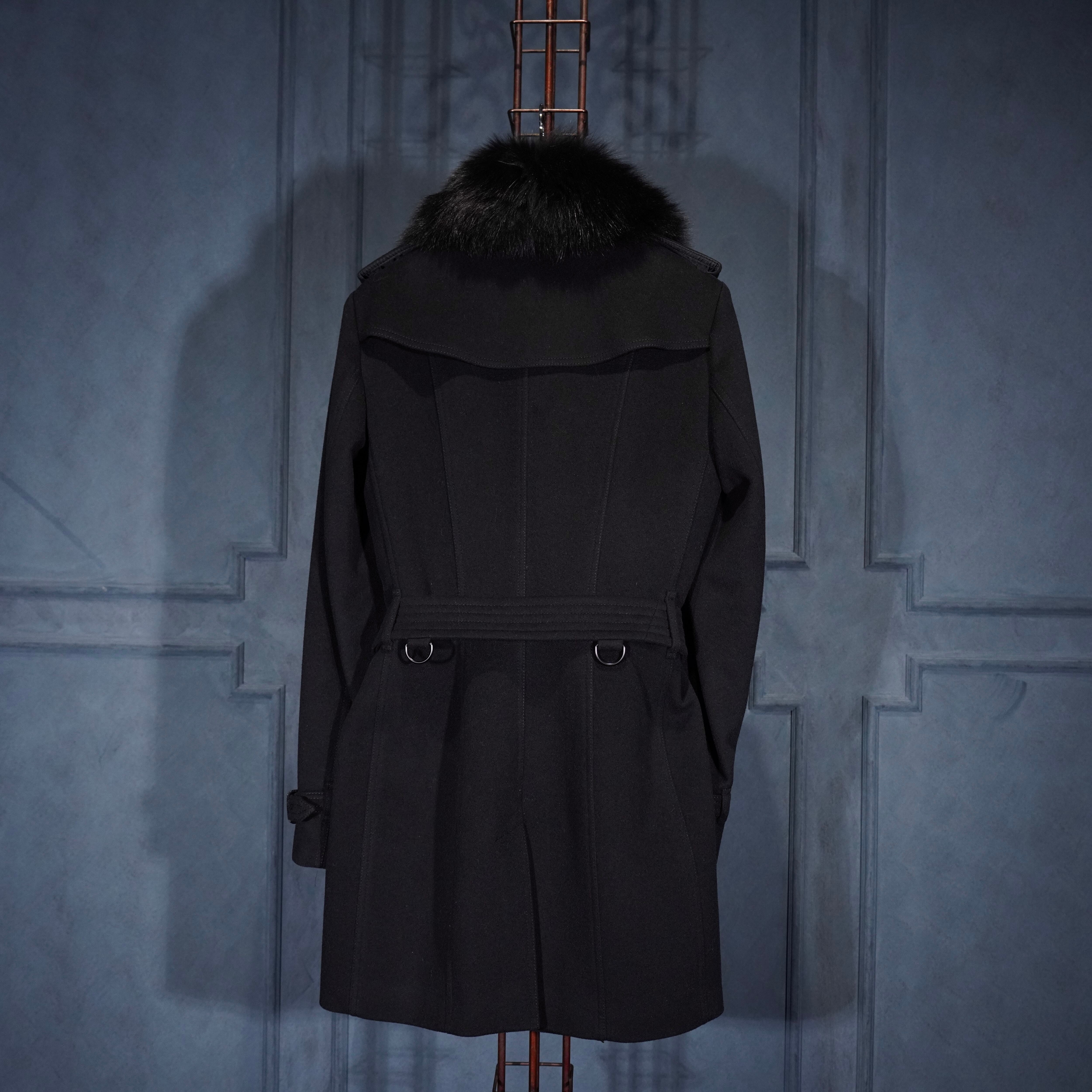 .BURBERRY LONDON SANDRINGHAM BLUE FOX FUR CASHMERE BREND WOOL BELTED TRENCH COAT/バーバリーロンドンブルーフォックファーカシミヤ混ウールベルテッドトレンチコート 2000000074962