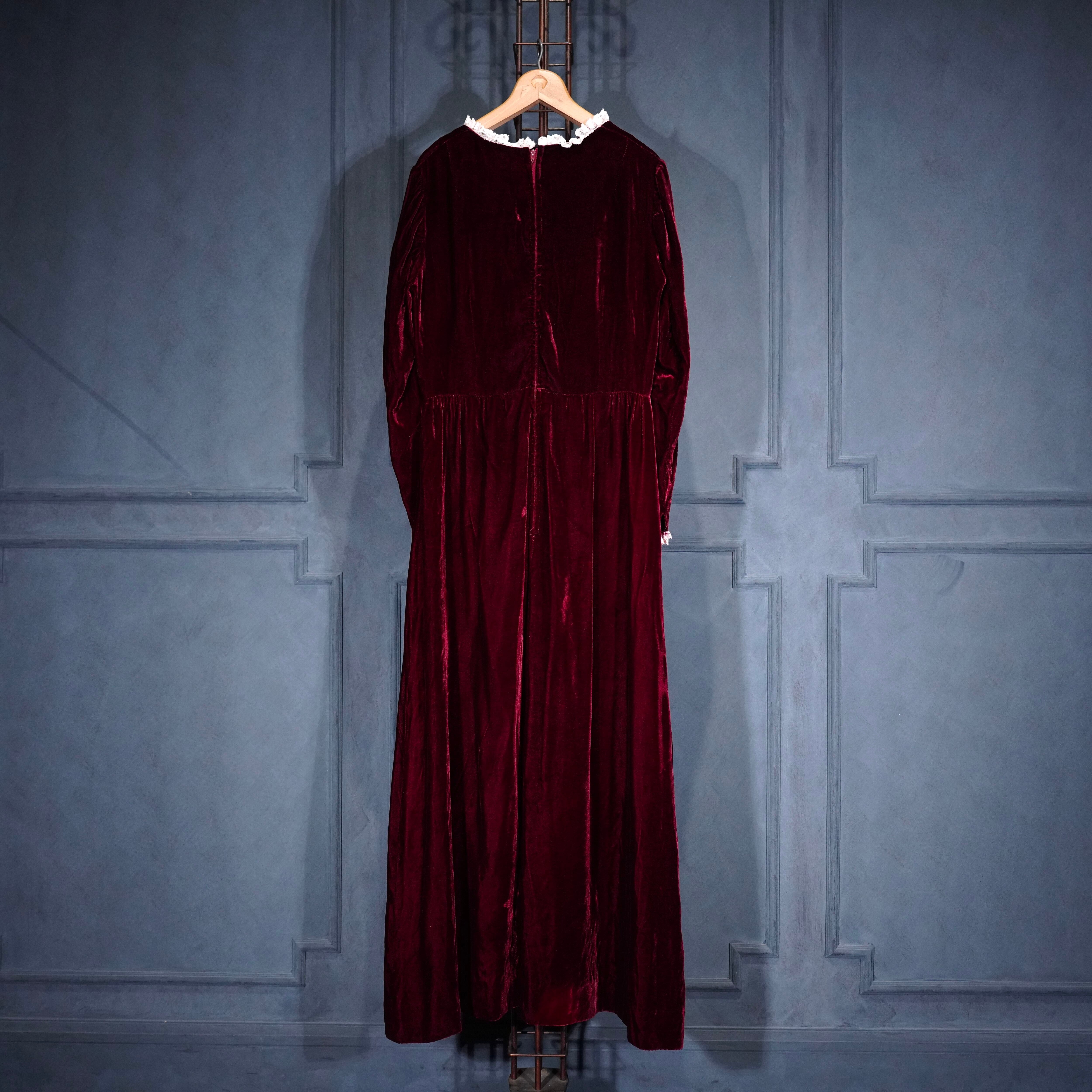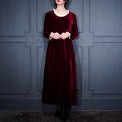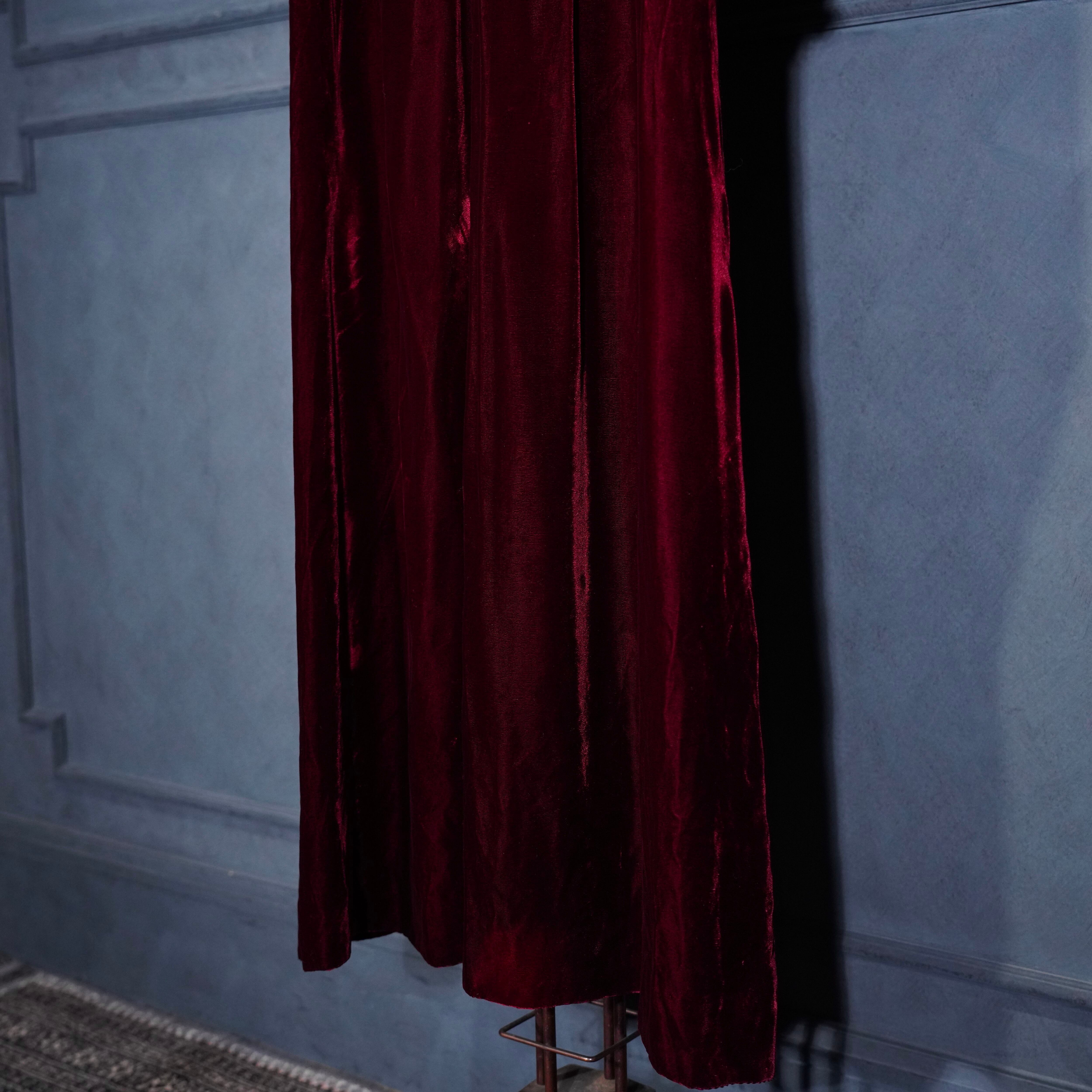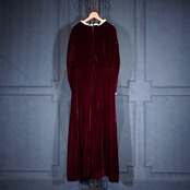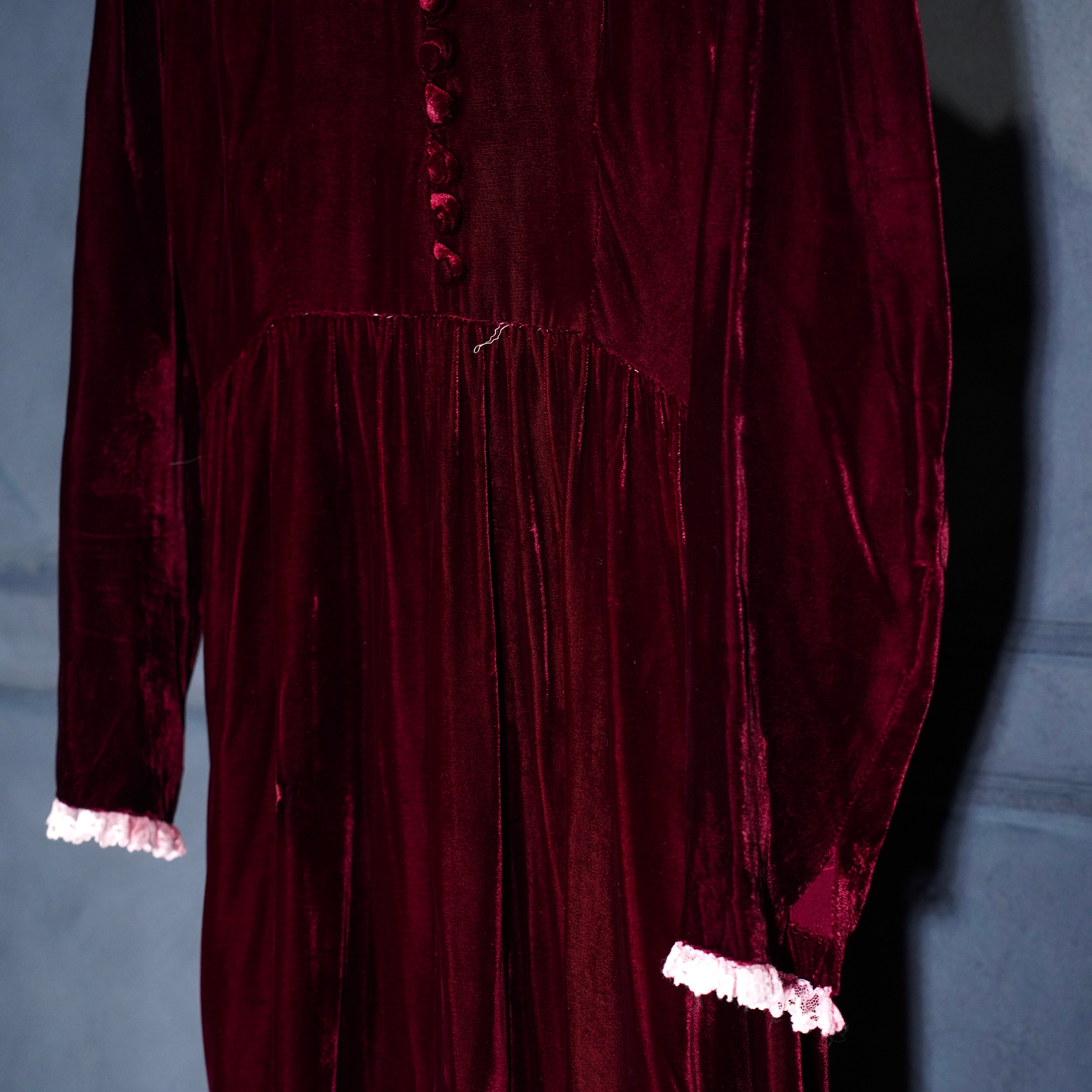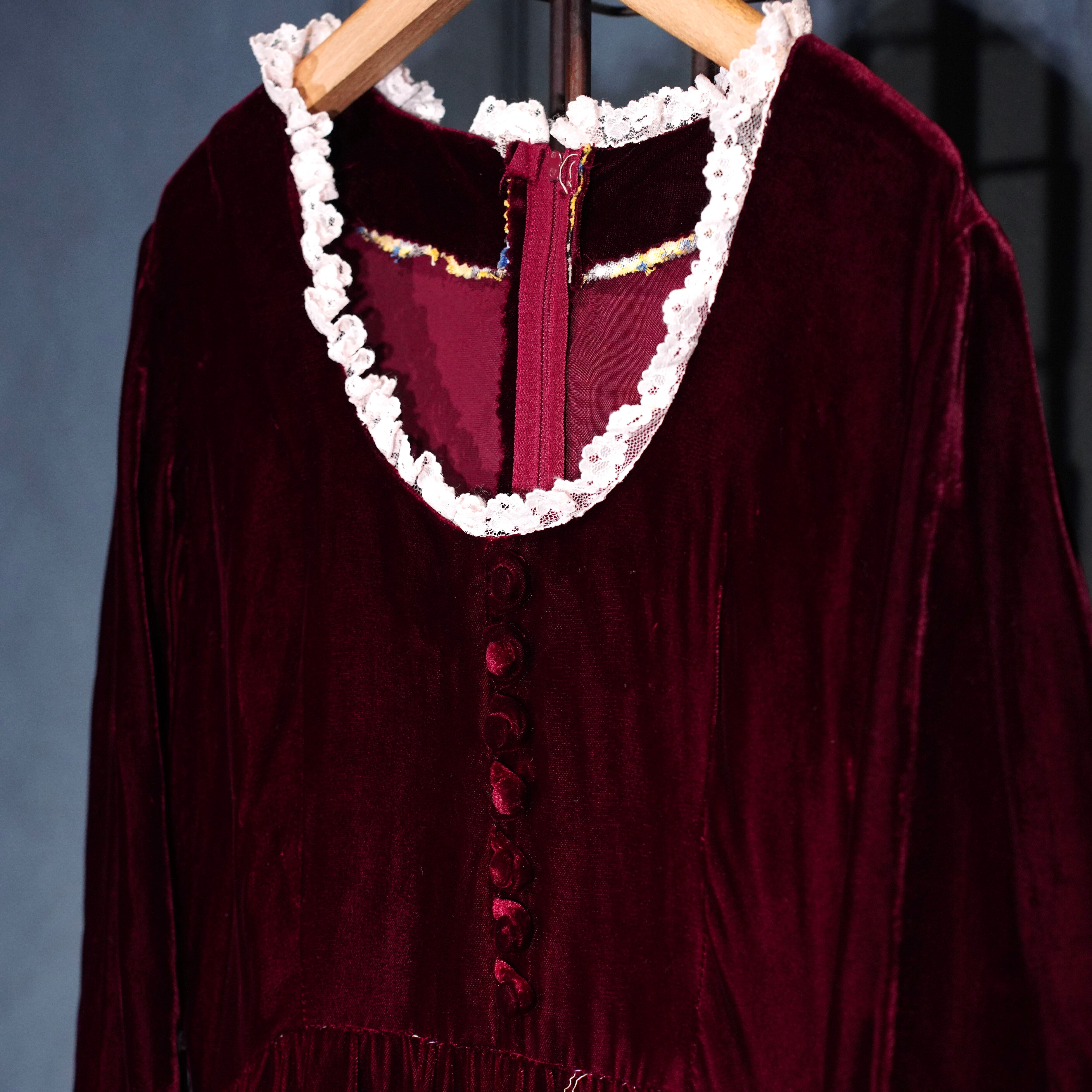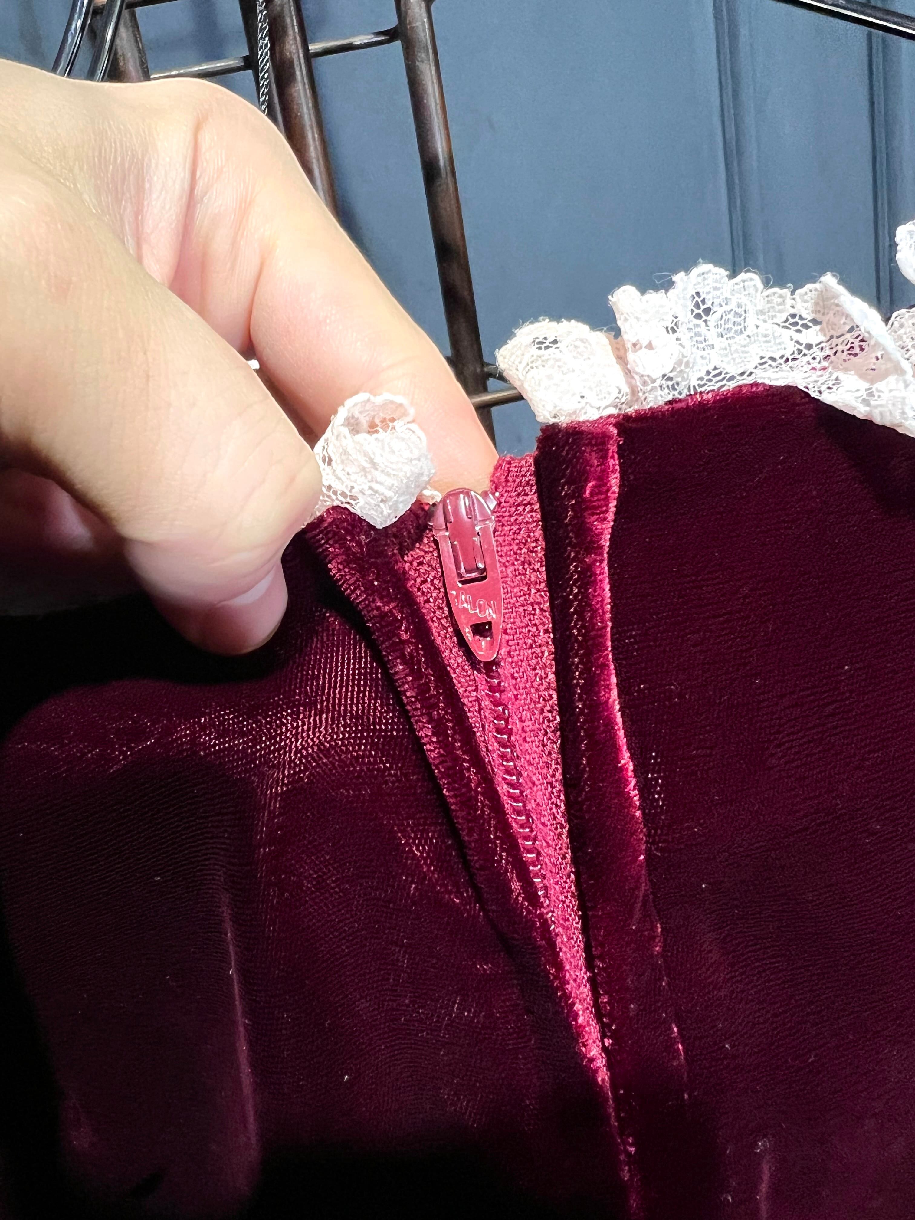 70's USA VINTAGE LACE DESIGN RED COLOR VELOUR DRESS ONE PIECE/70年代アメリカ古着レースデザインレッドカラーベロアドレスワンピース