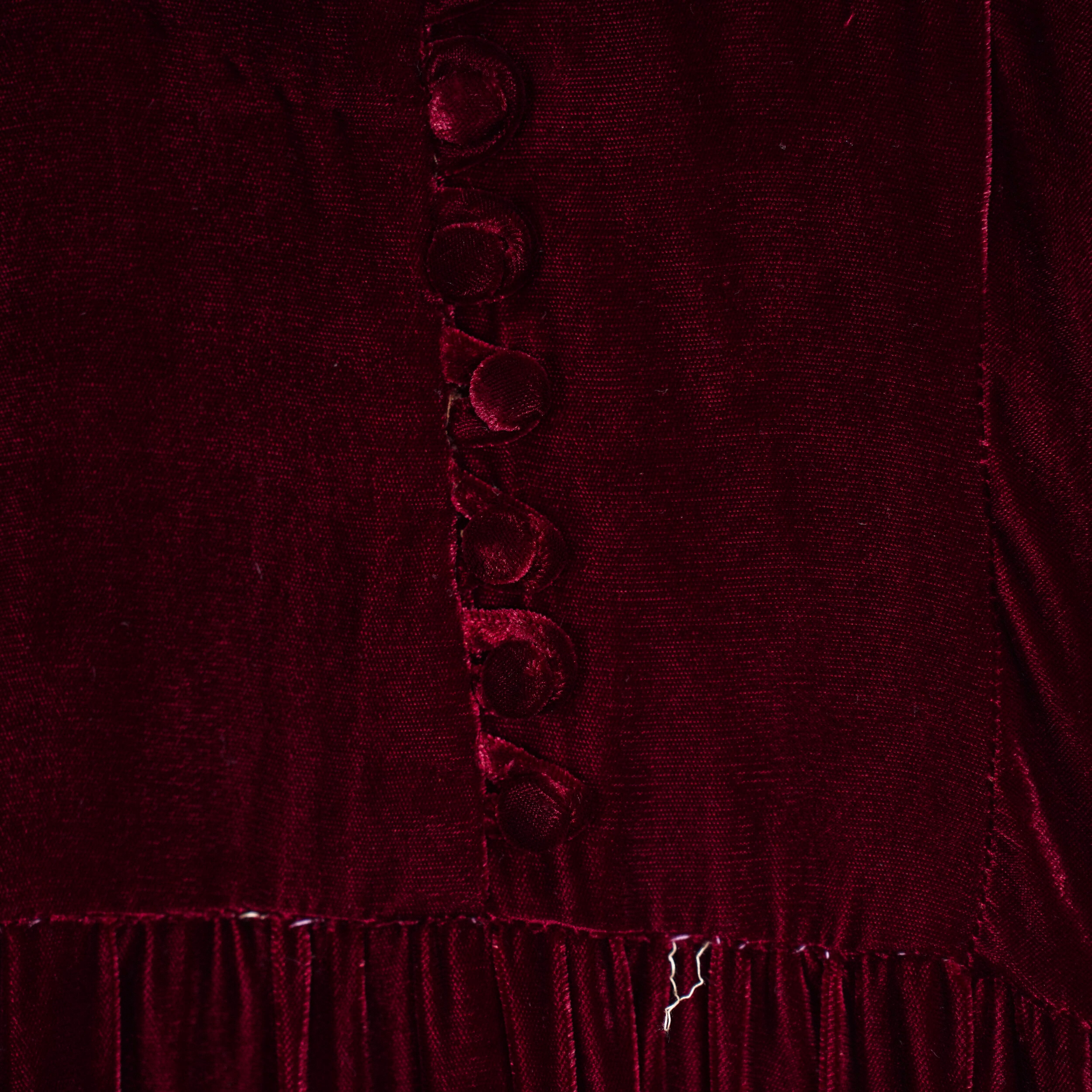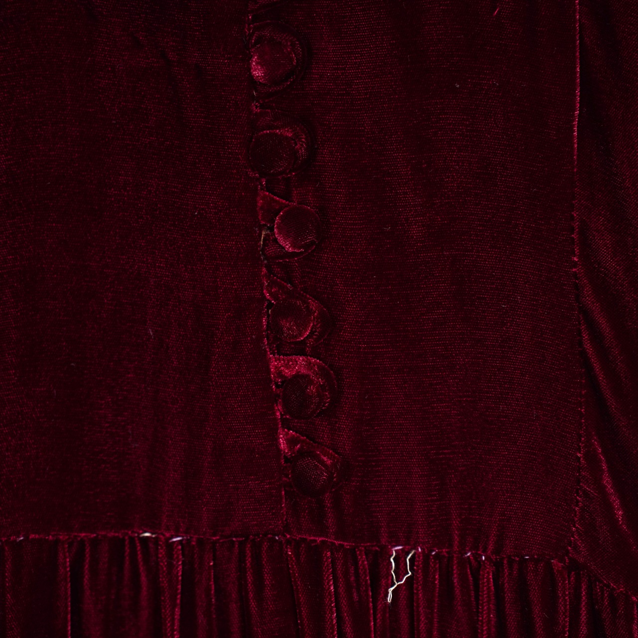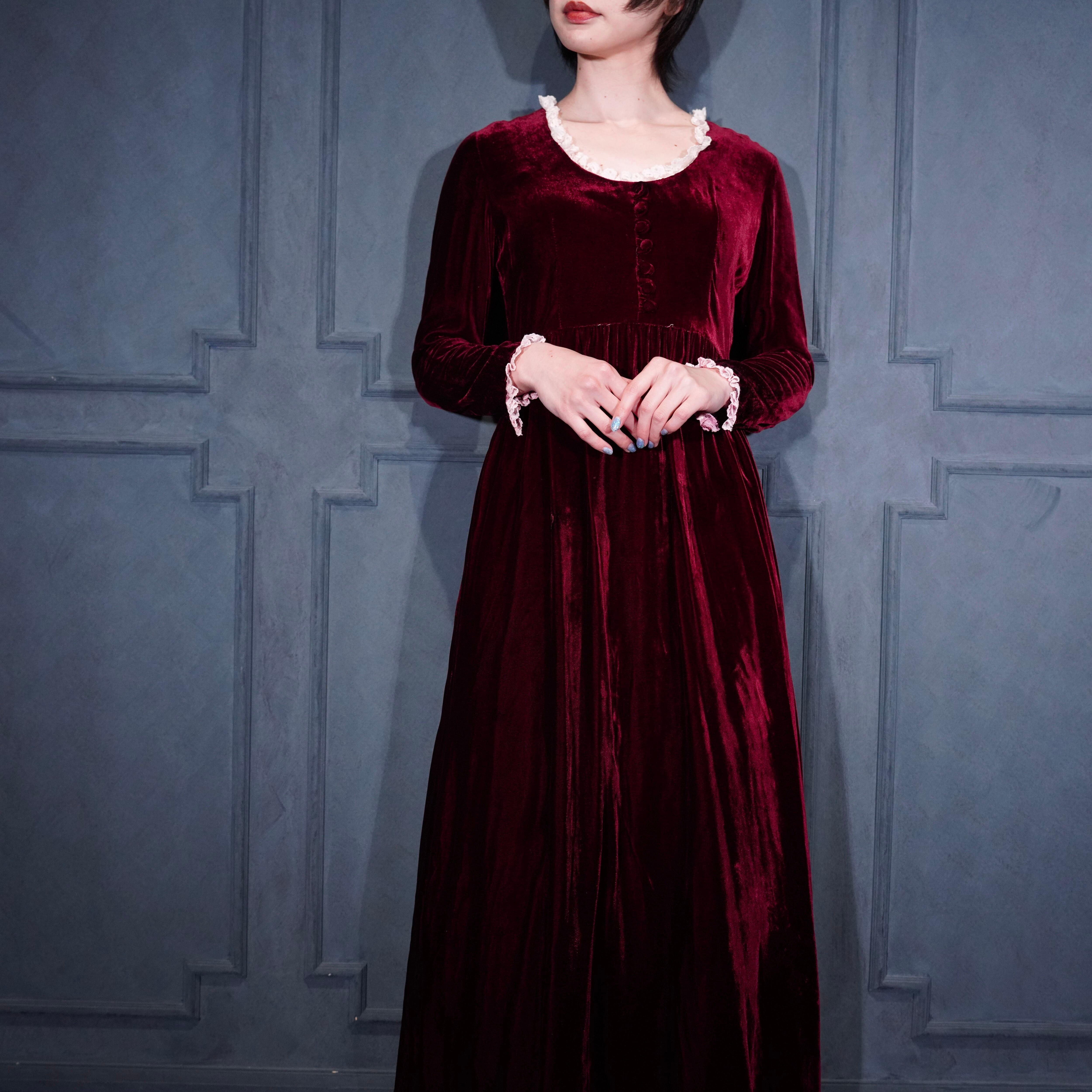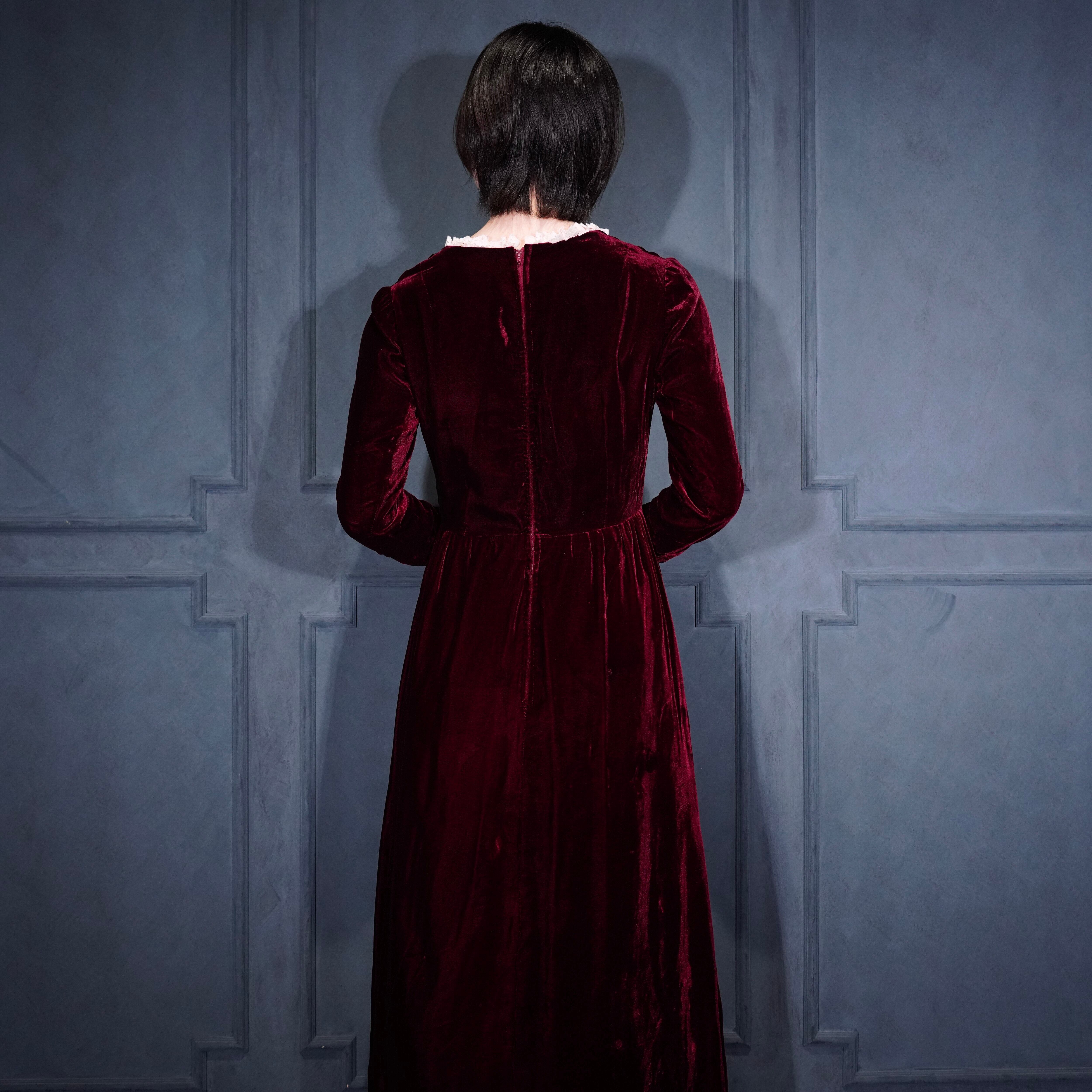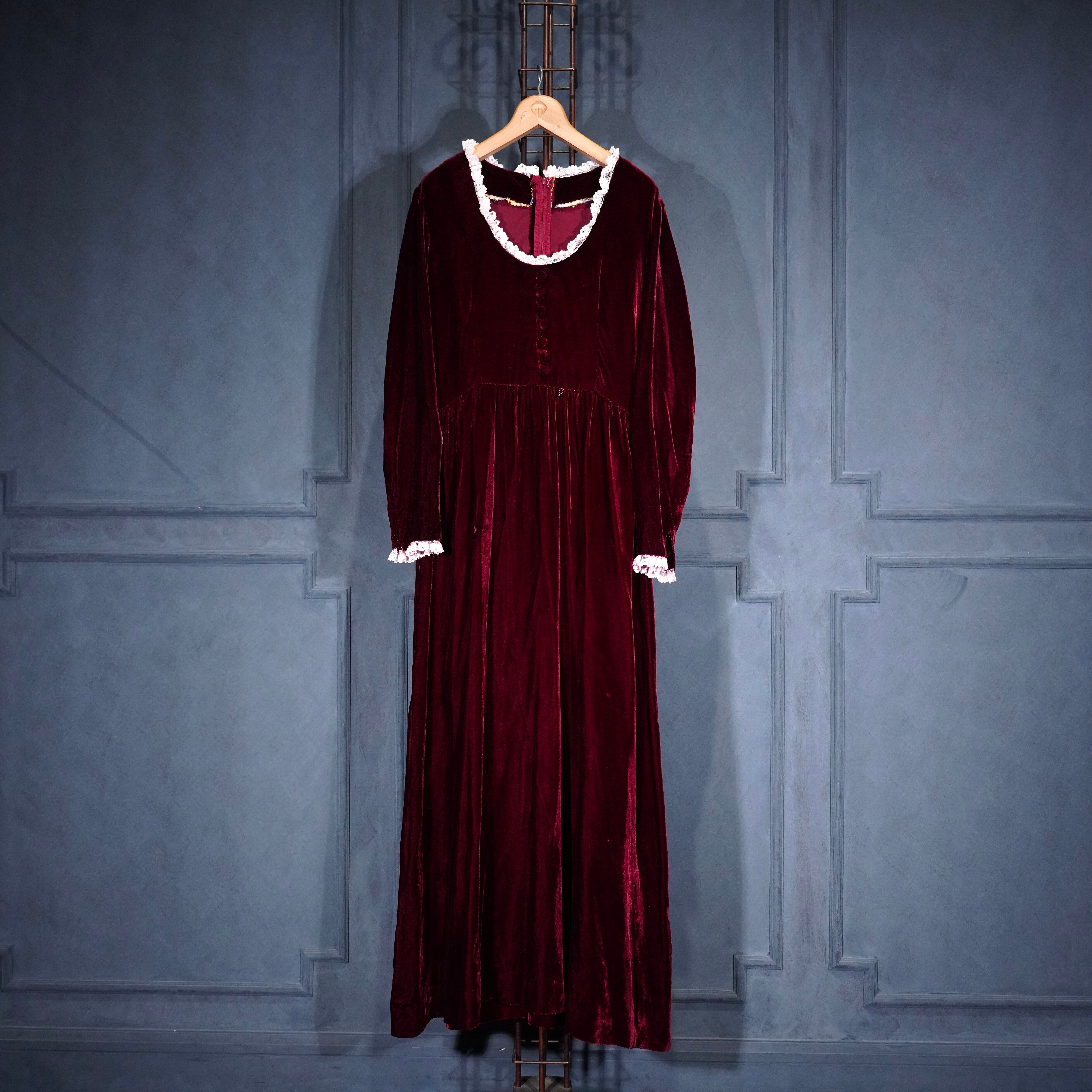 70's USA VINTAGE LACE DESIGN RED COLOR VELOUR DRESS ONE PIECE/70年代アメリカ古着レースデザインレッドカラーベロアドレスワンピース