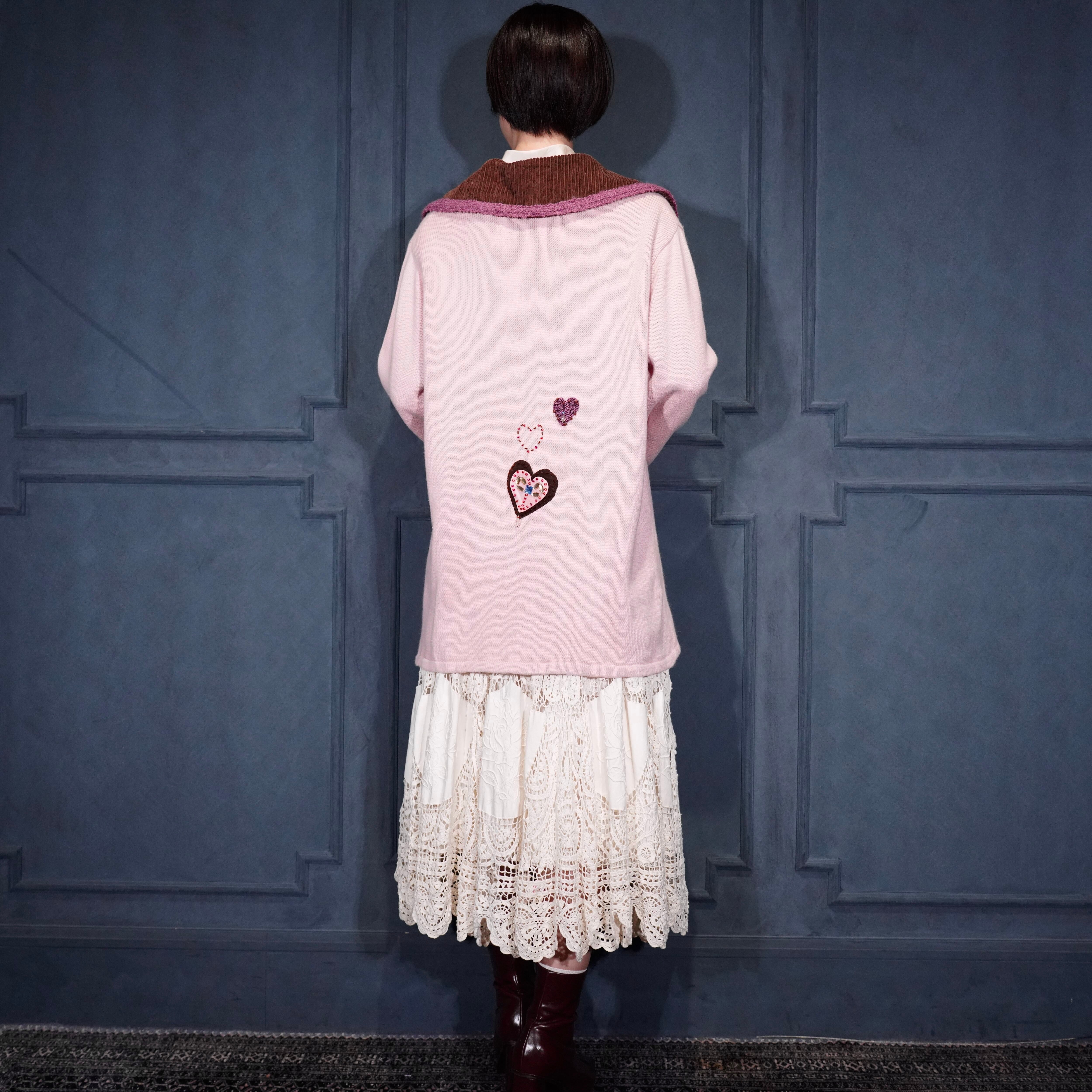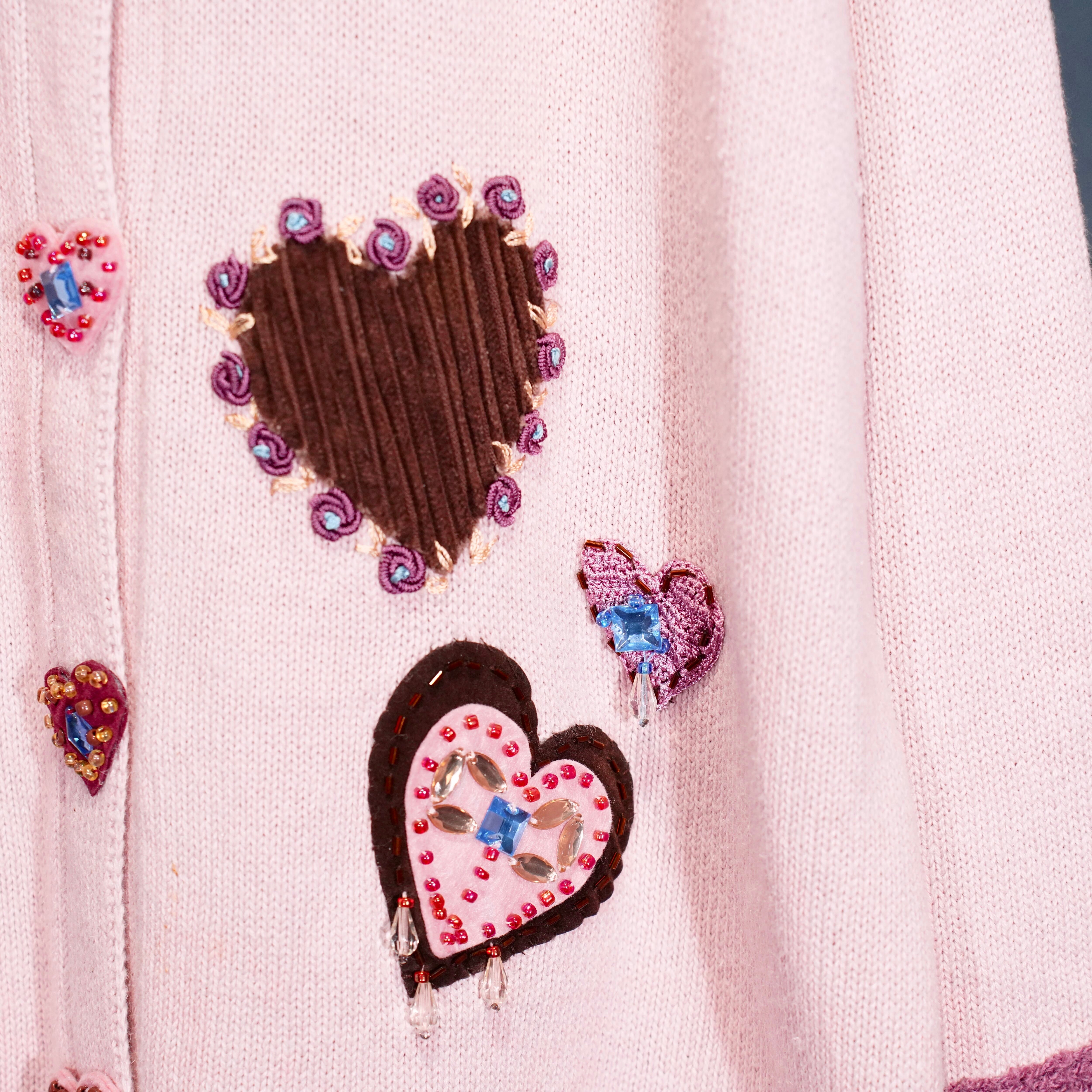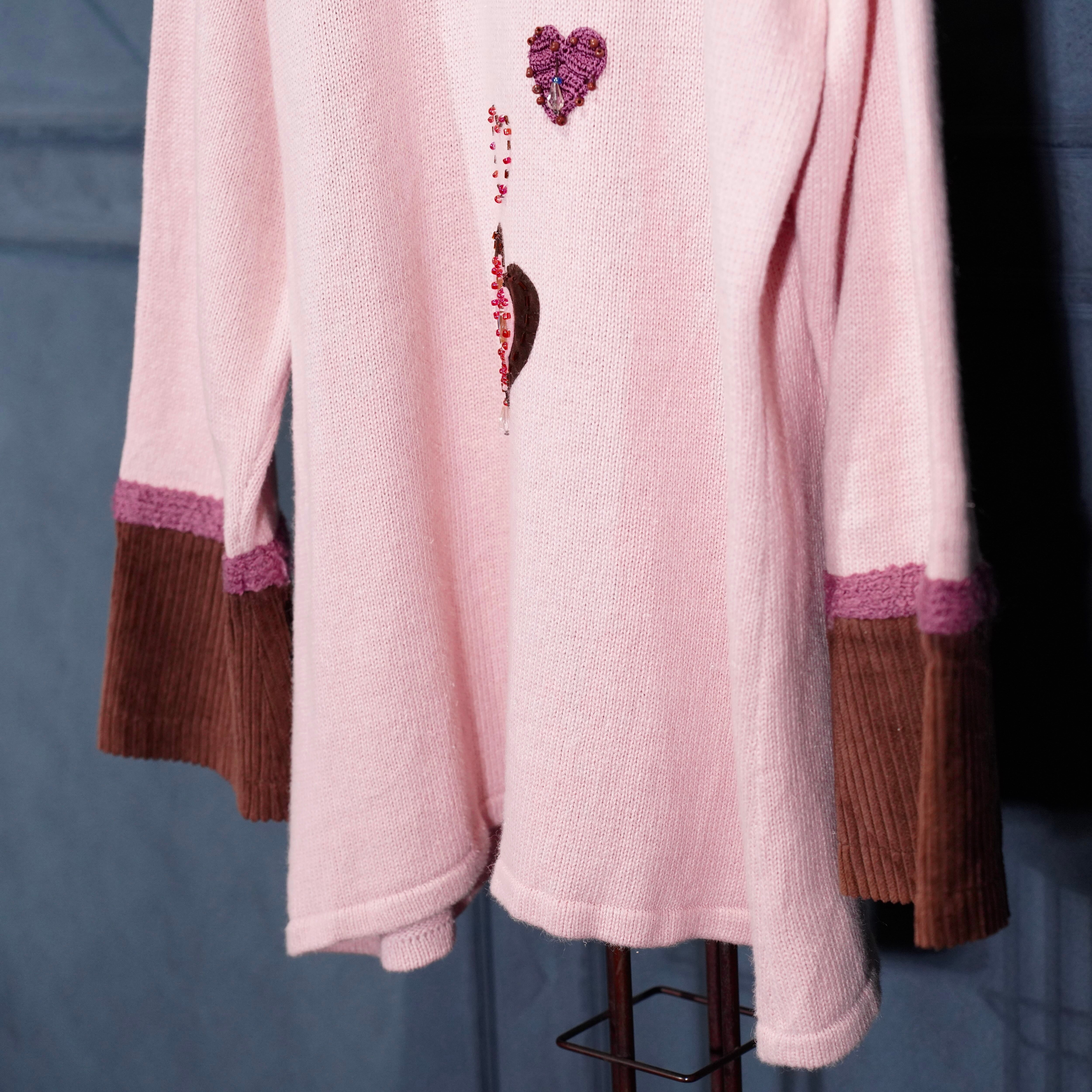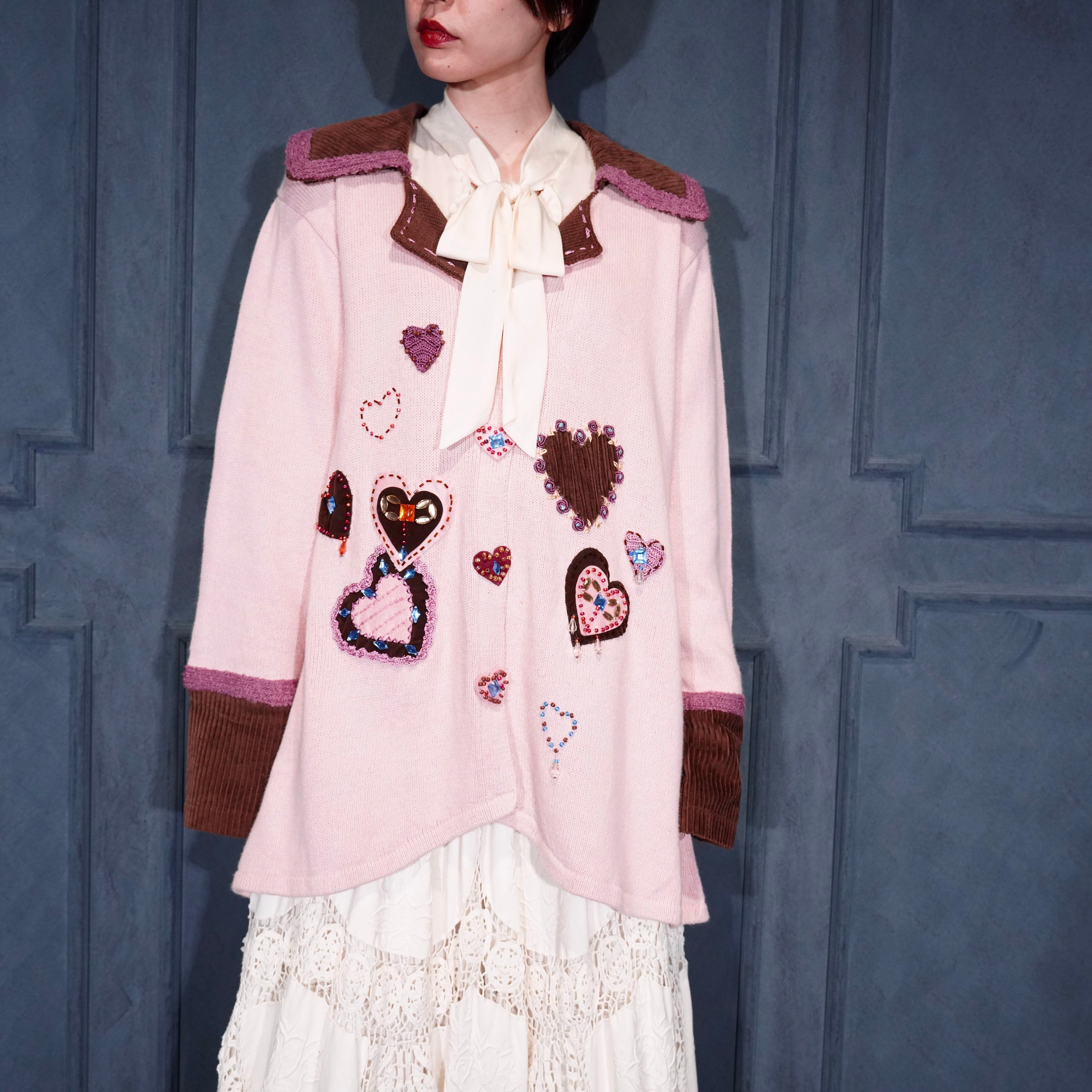 USA VINTAGE Storybook Knits HEART PATCHWORK BEADS DESIGN COTTON RAMIE HAND KNIT JACKET/アメリカ古着ハートパッチワークビーズデザインコットンラミーニットジャケット