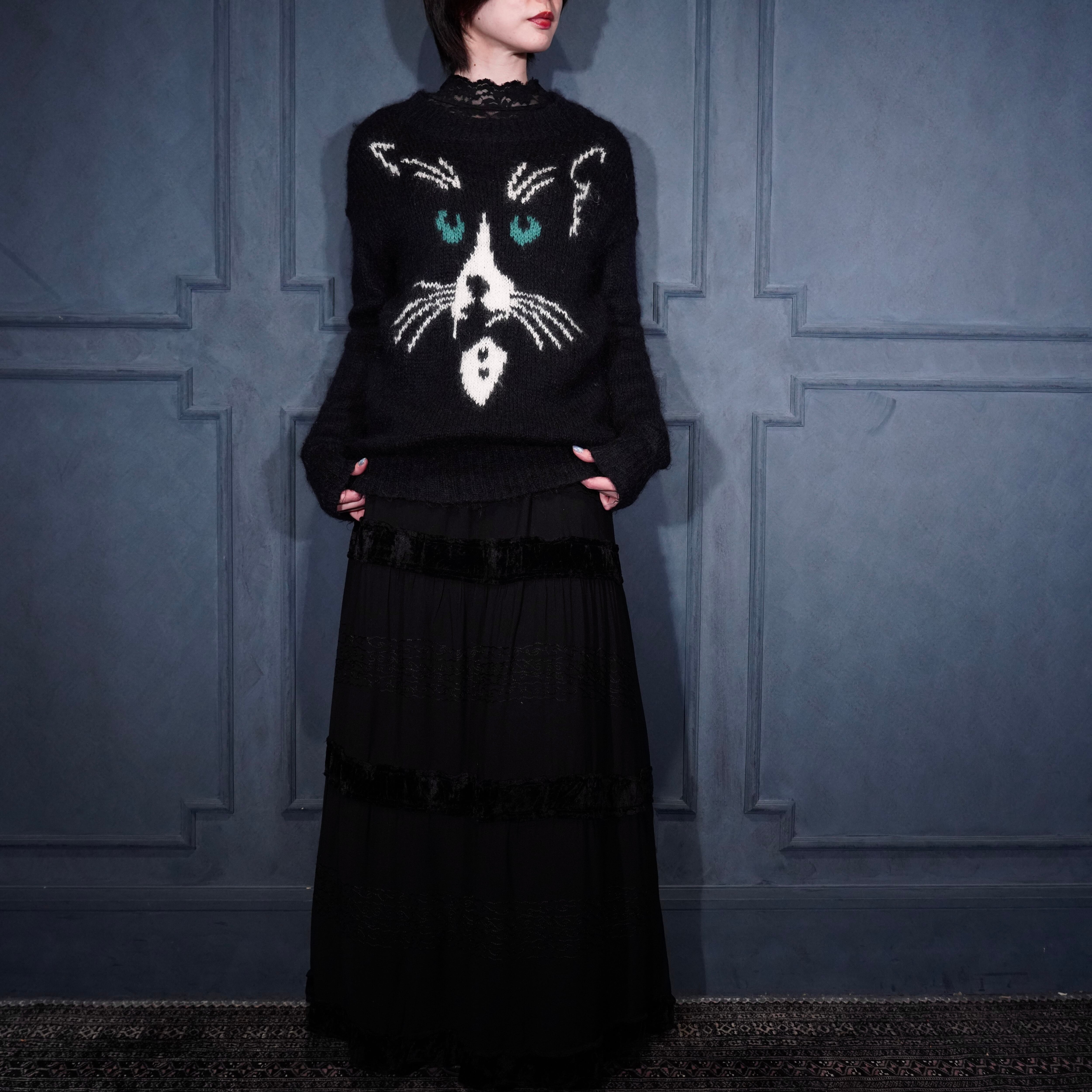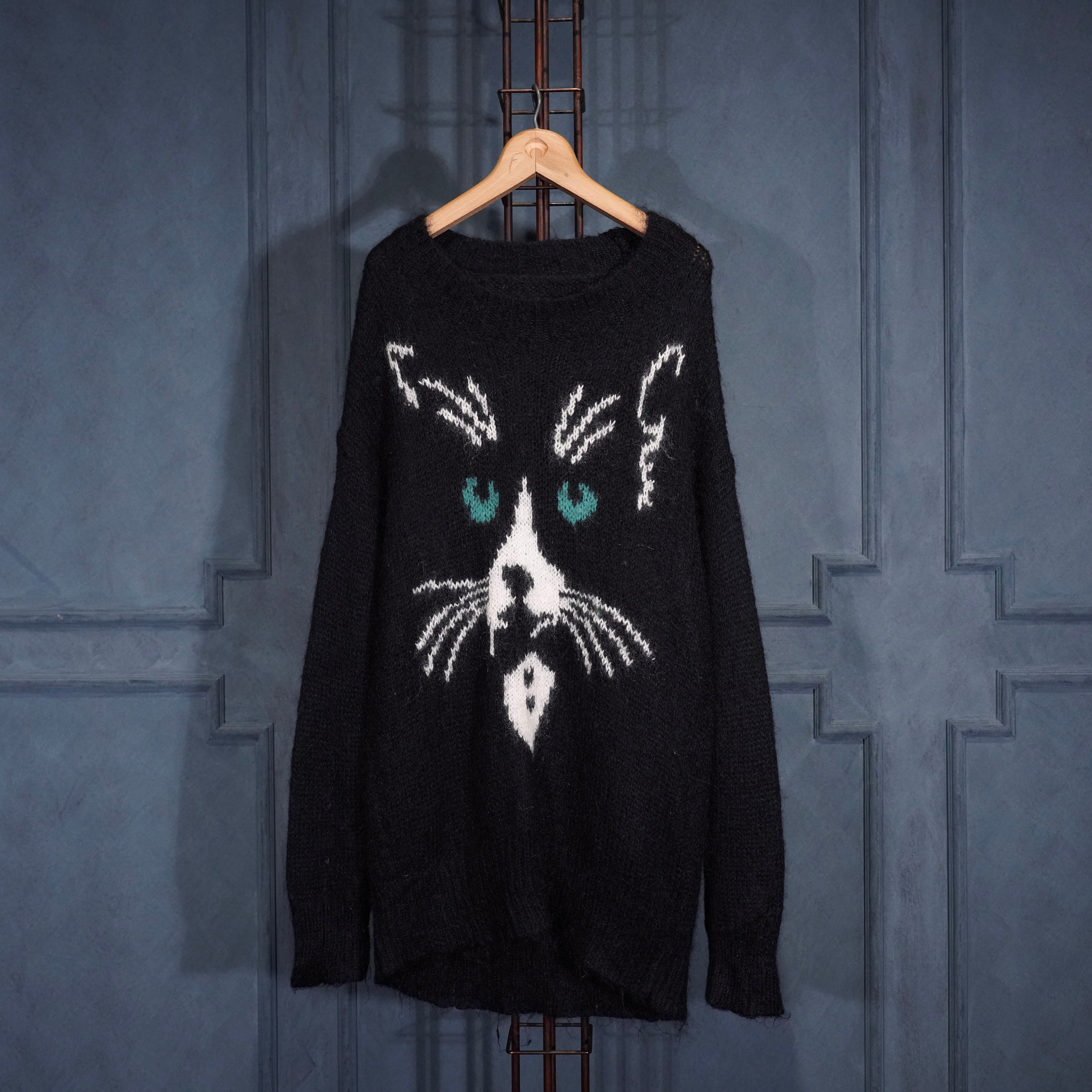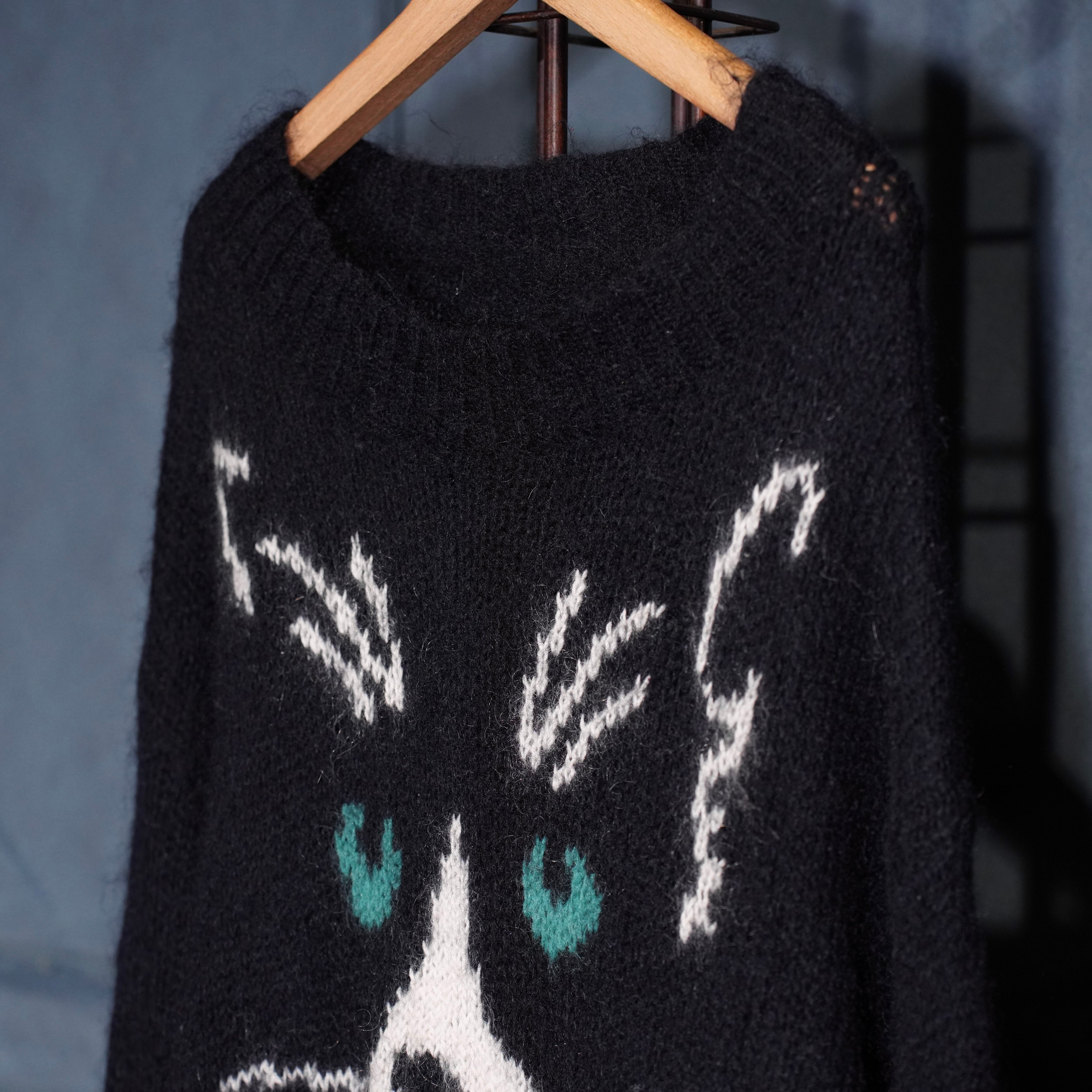 EU VINTAGE TUXEDO CAT DESIGN MOHAIR KNIT/ヨーロッパ古着タキシードにゃんこデザインモヘアニット