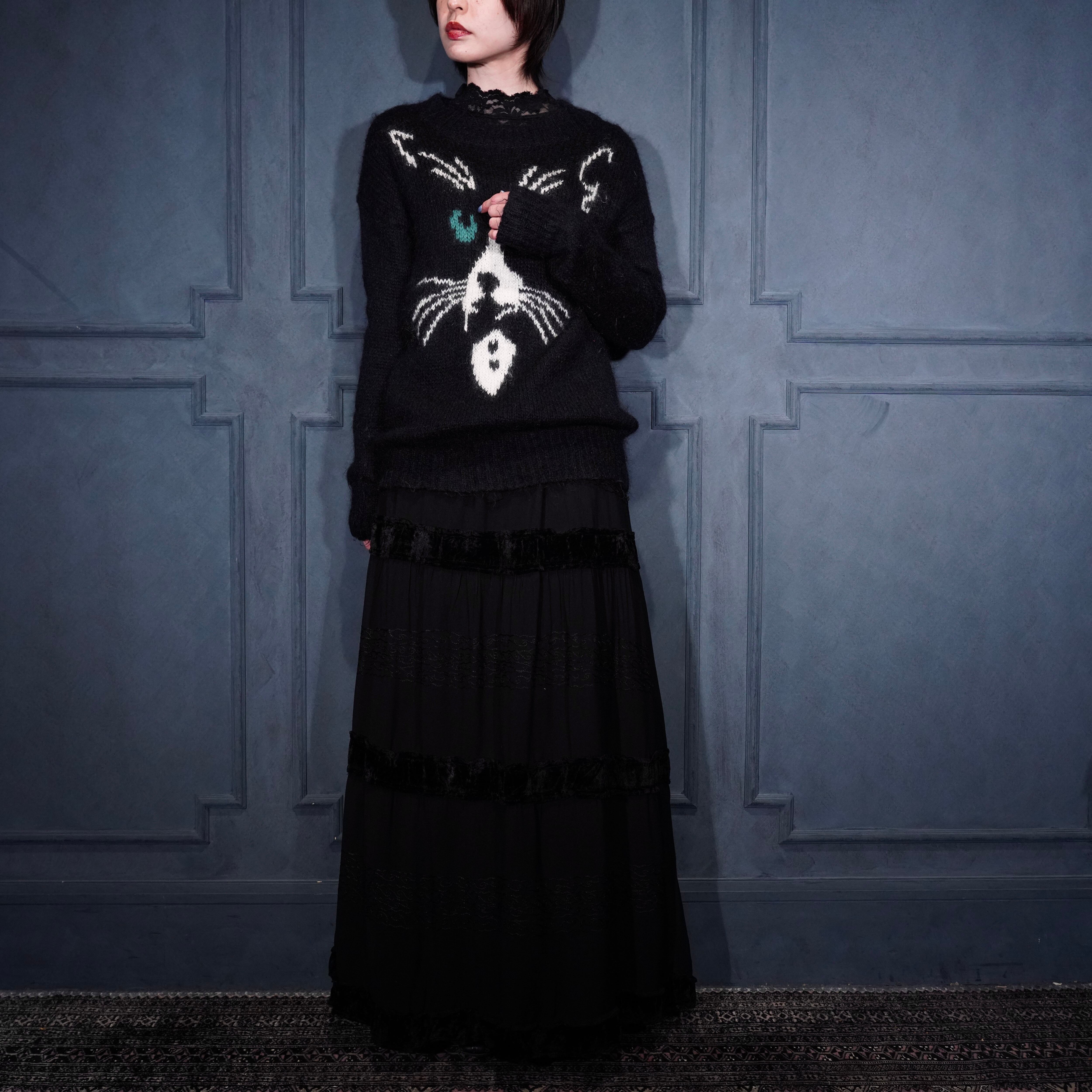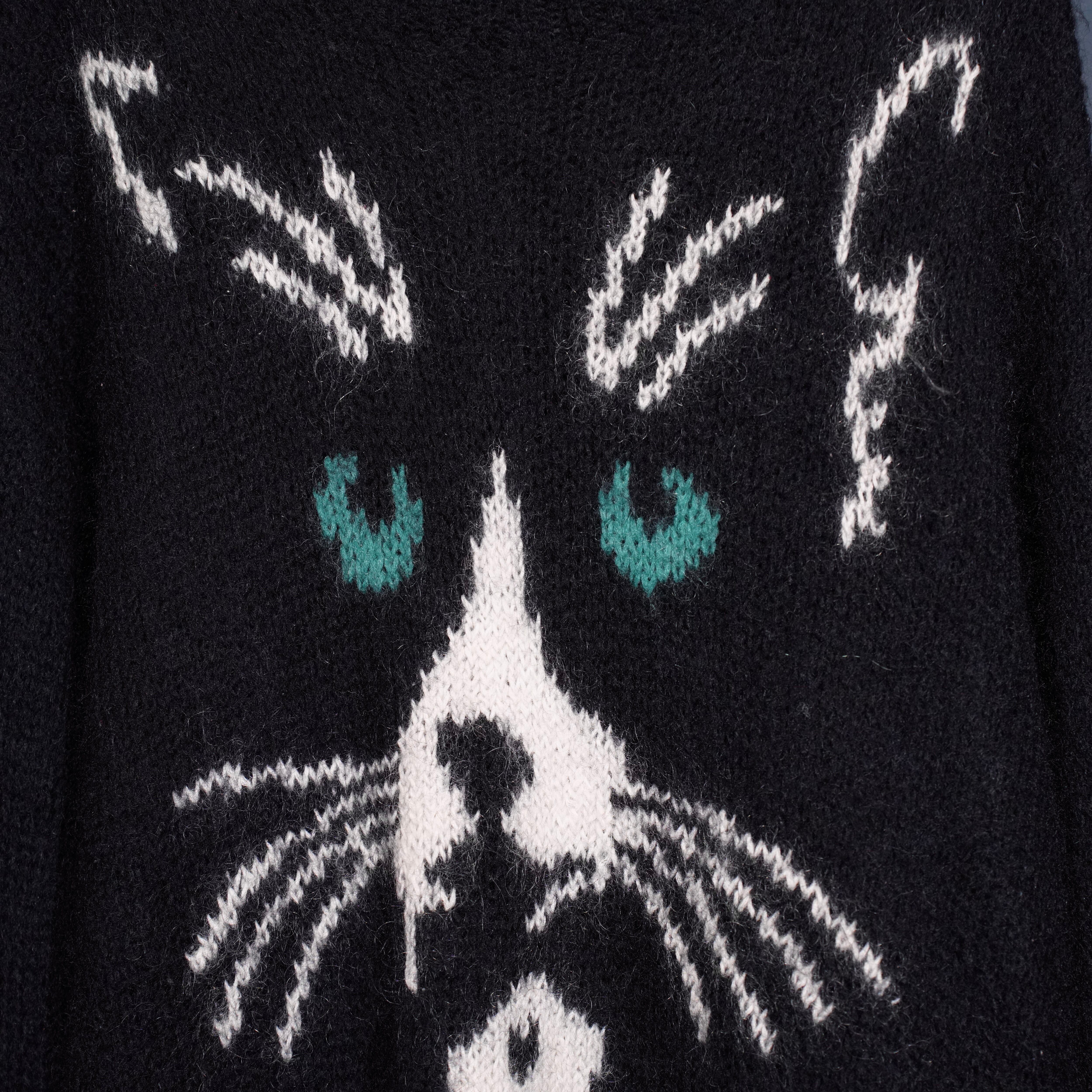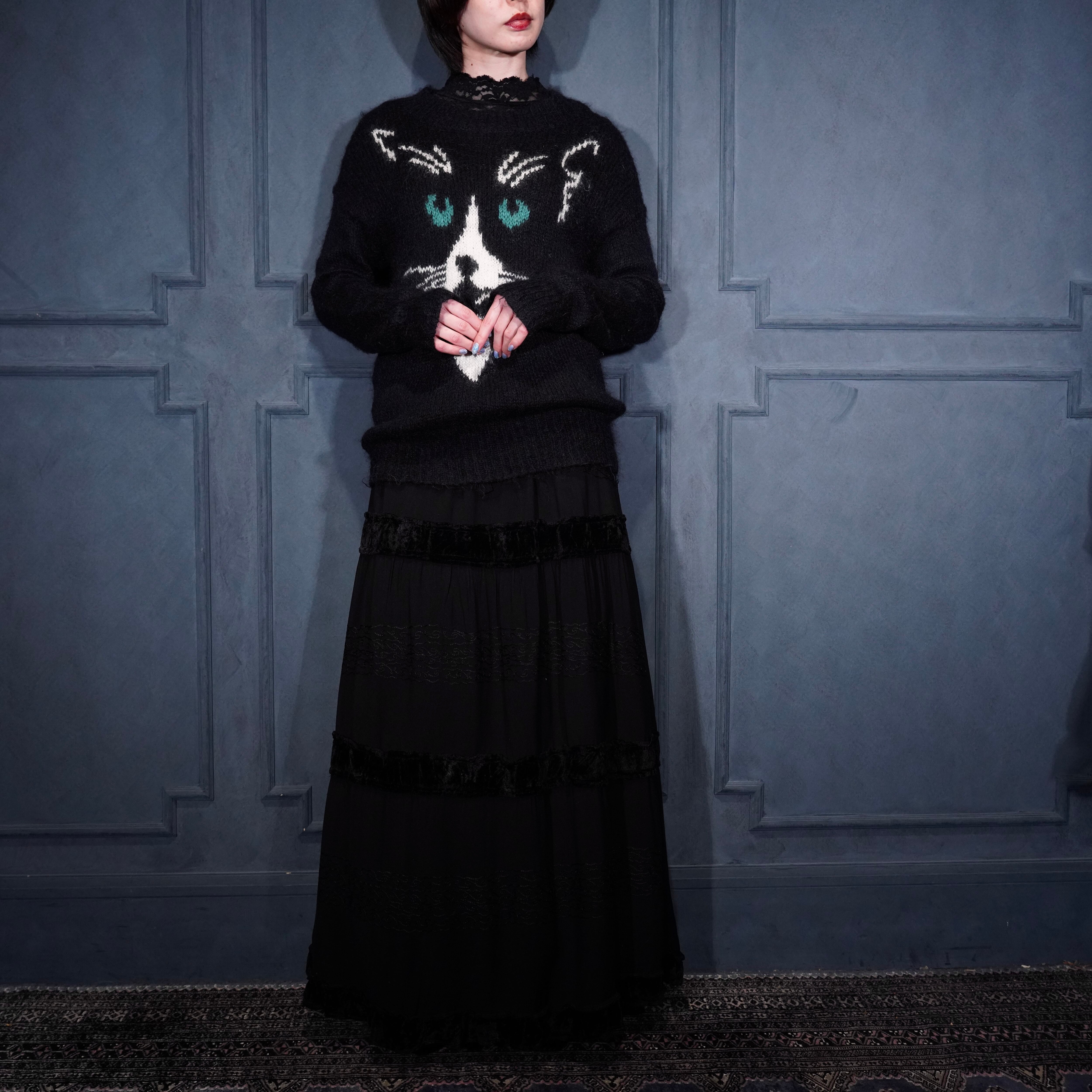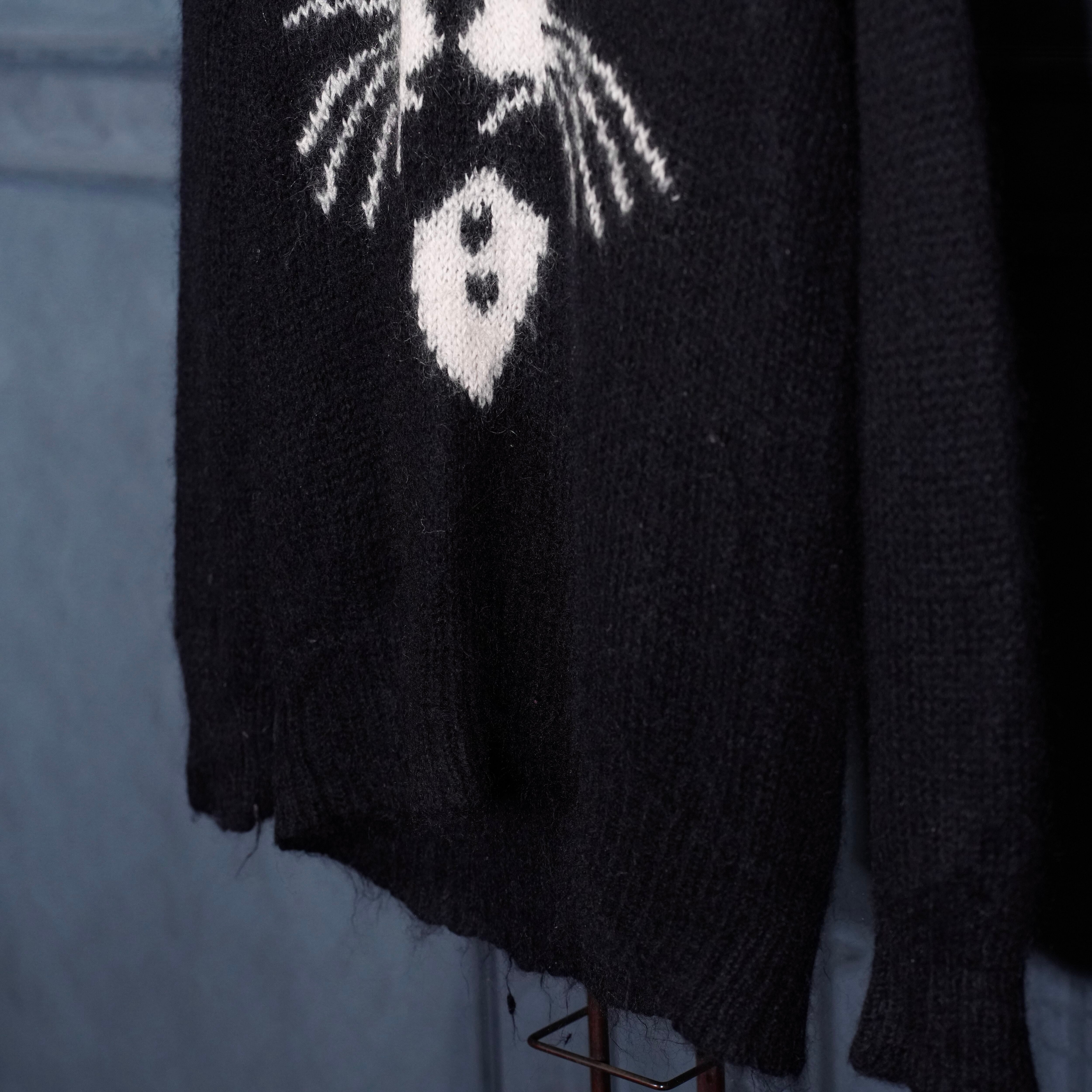 EU VINTAGE TUXEDO CAT DESIGN MOHAIR KNIT/ヨーロッパ古着タキシードにゃんこデザインモヘアニット