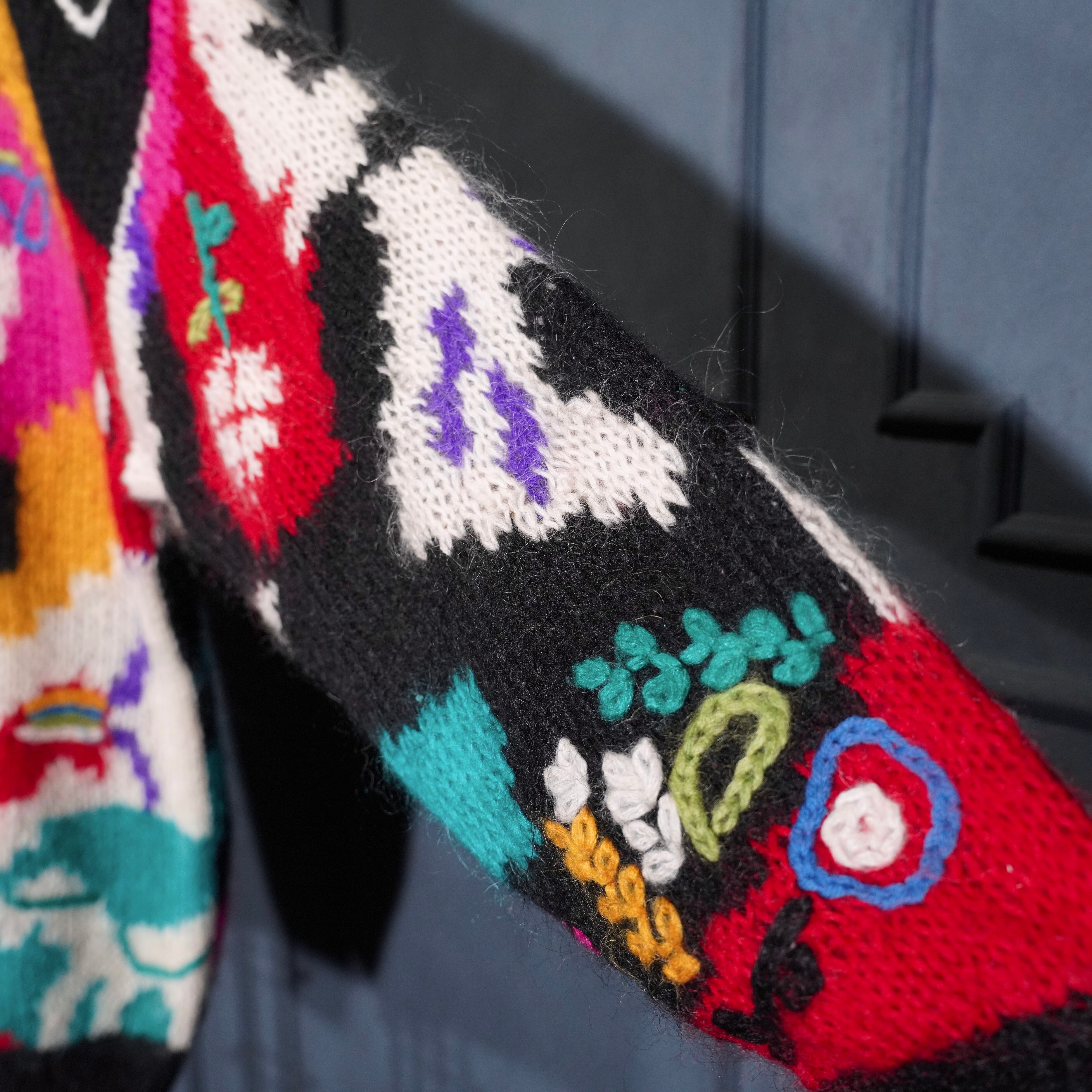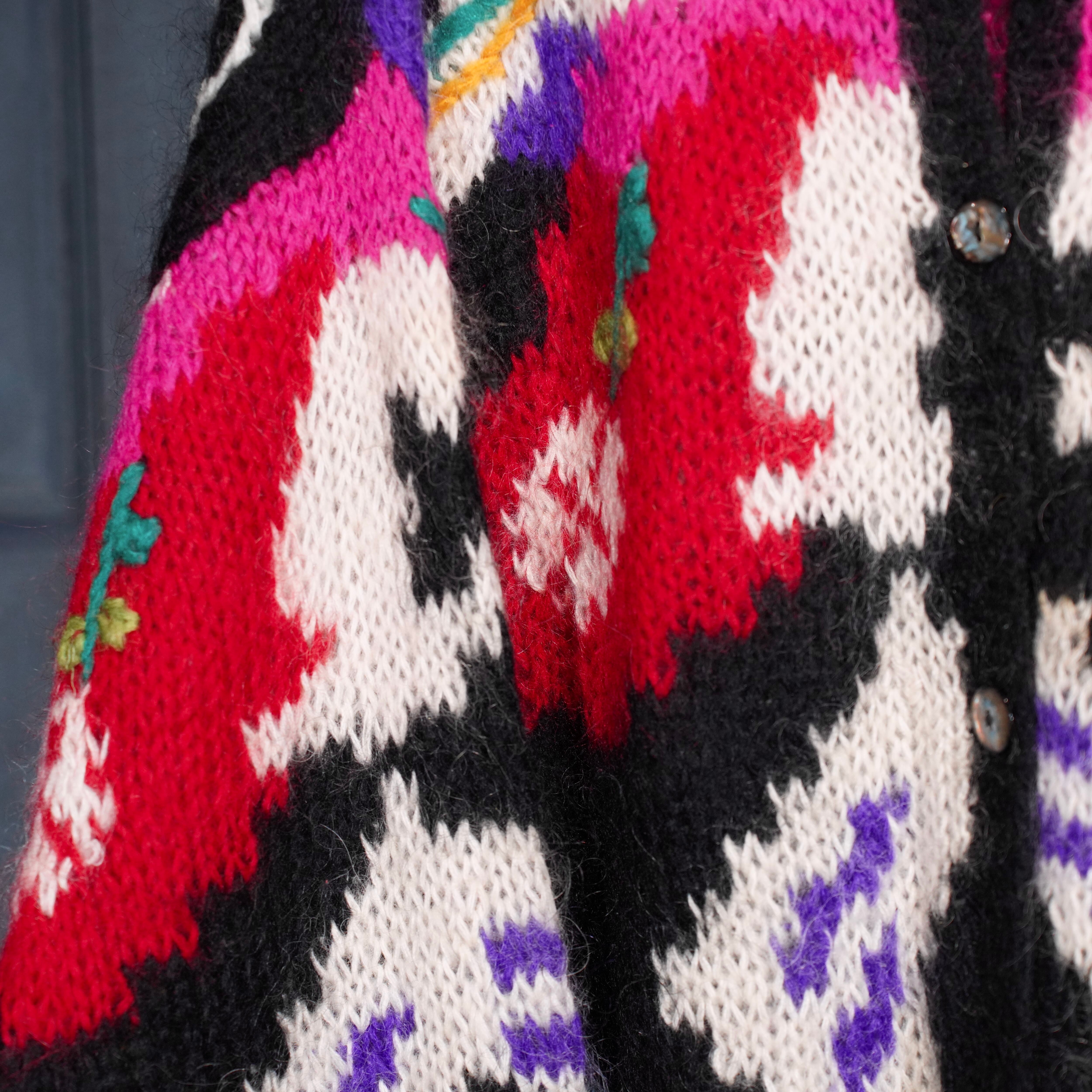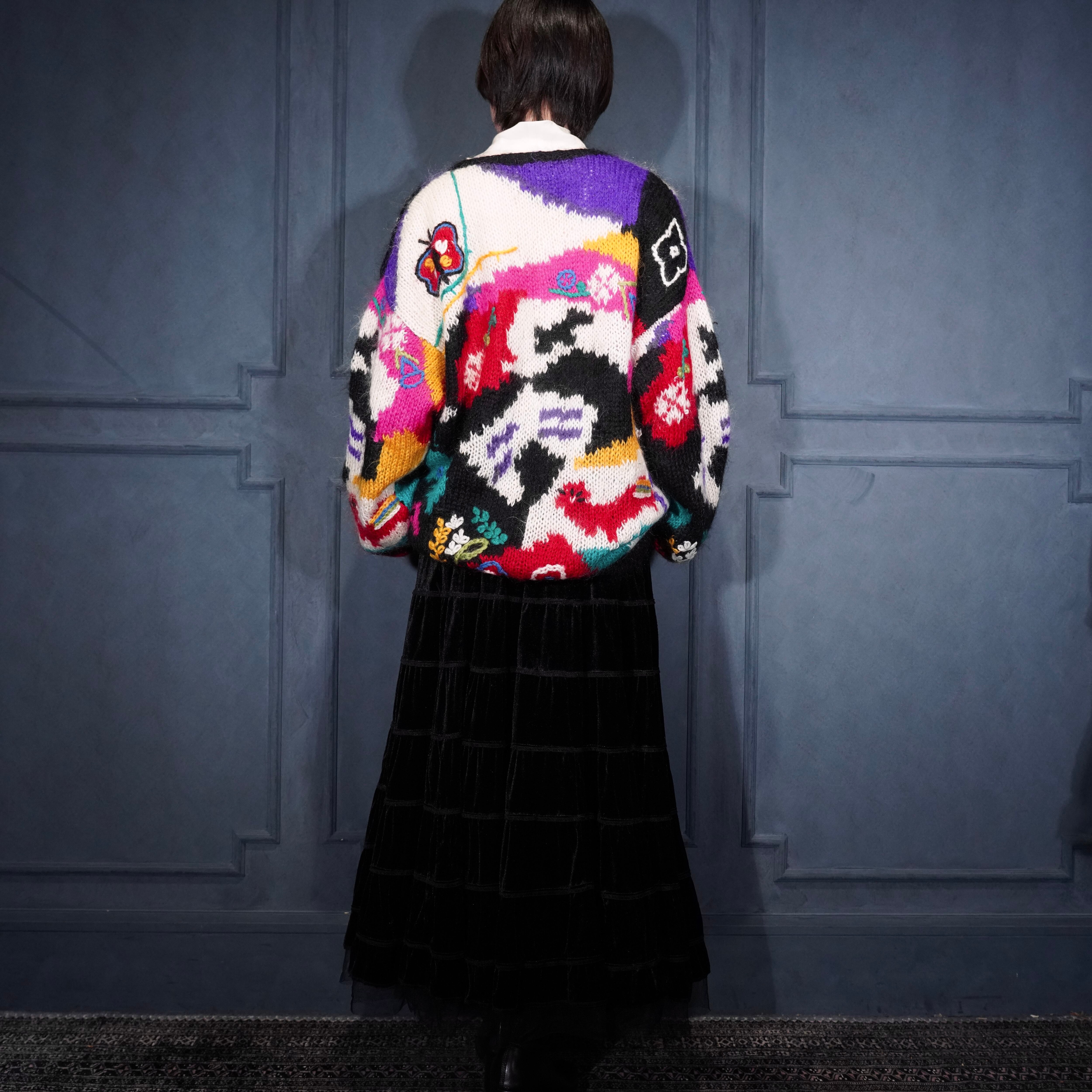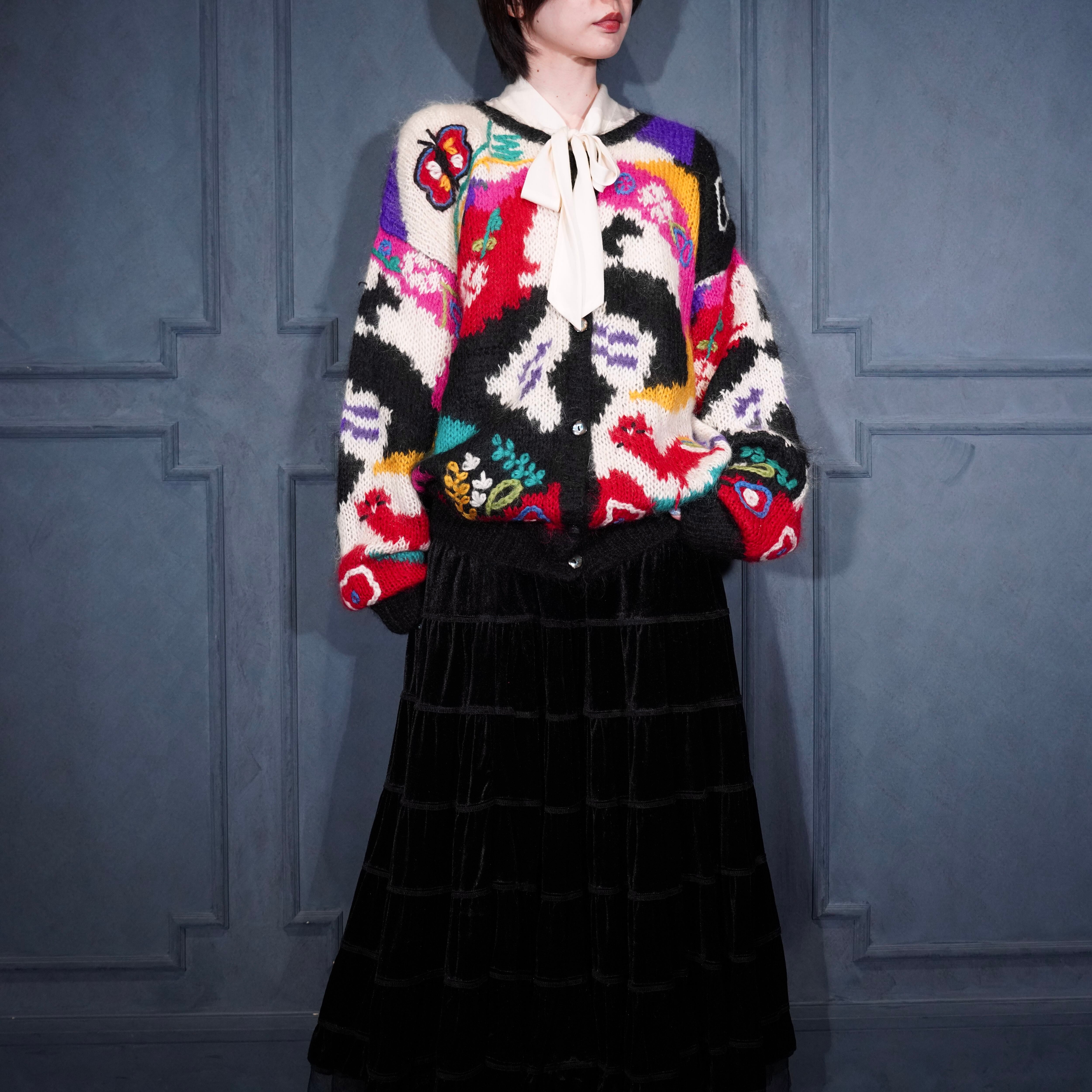 USA VINTAGE VALENTI EMBROIDERY PATTERNED DESIGN MOHAIR KNIT CARDIGAN/アメリカ古着刺繍柄デザインモヘアニットカーディガン