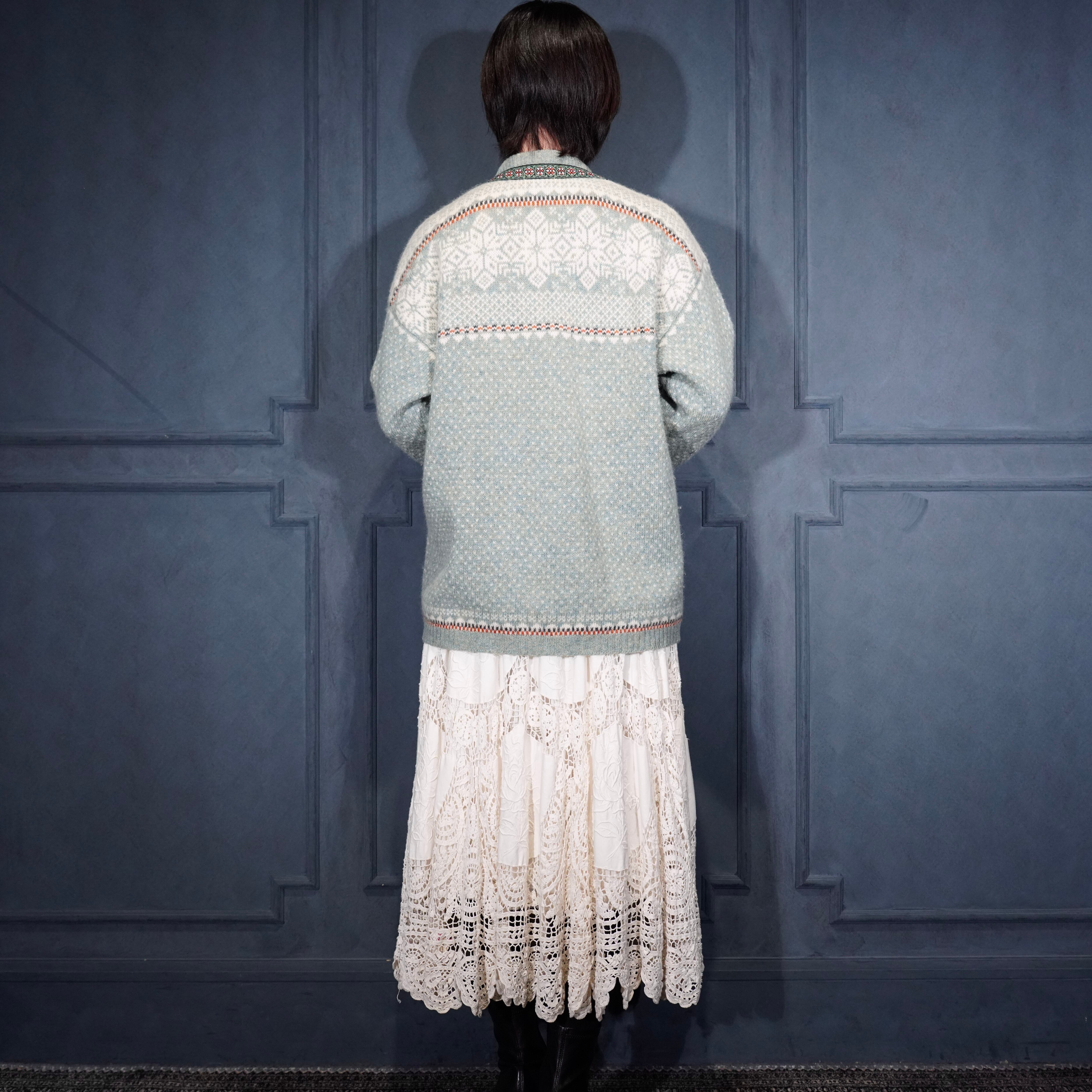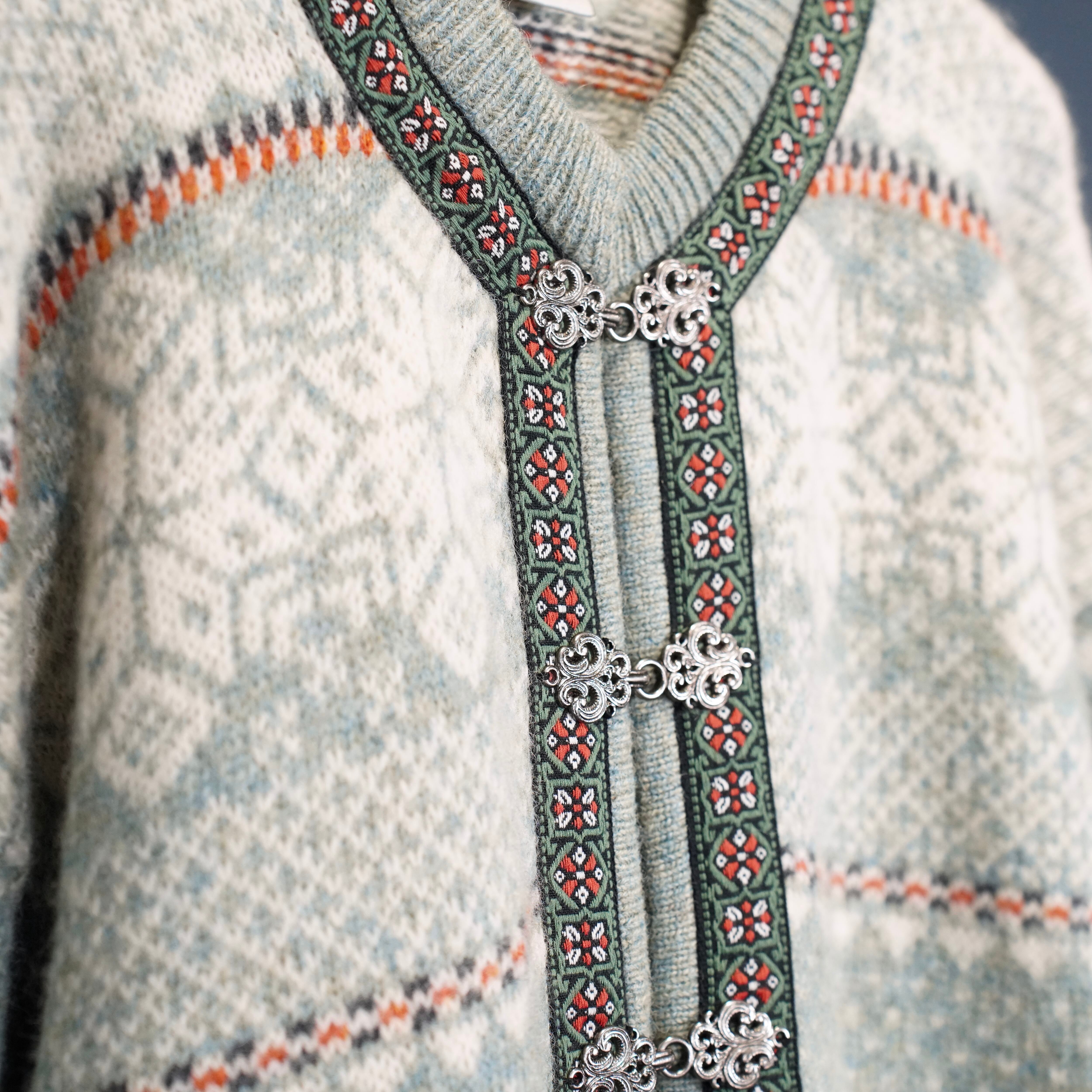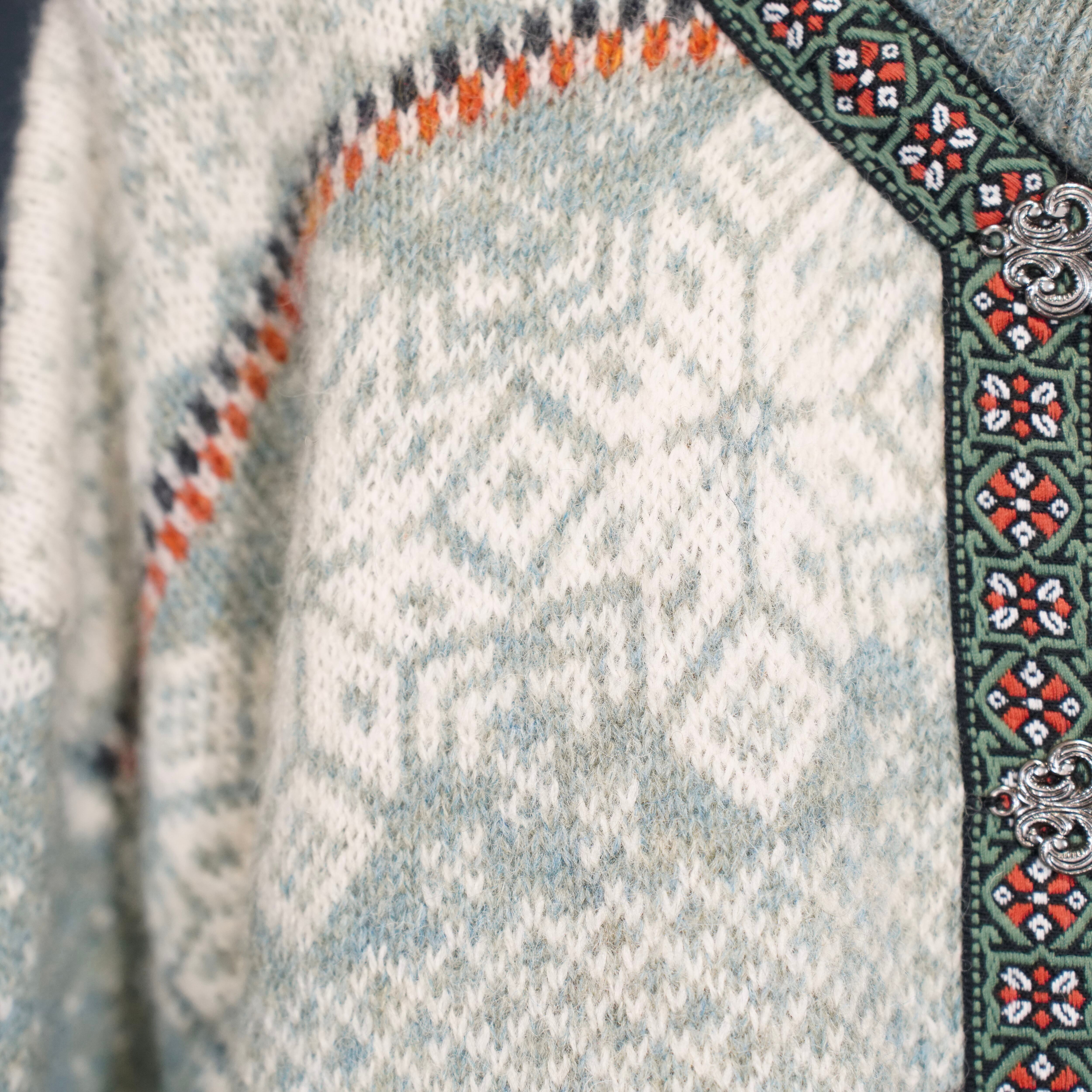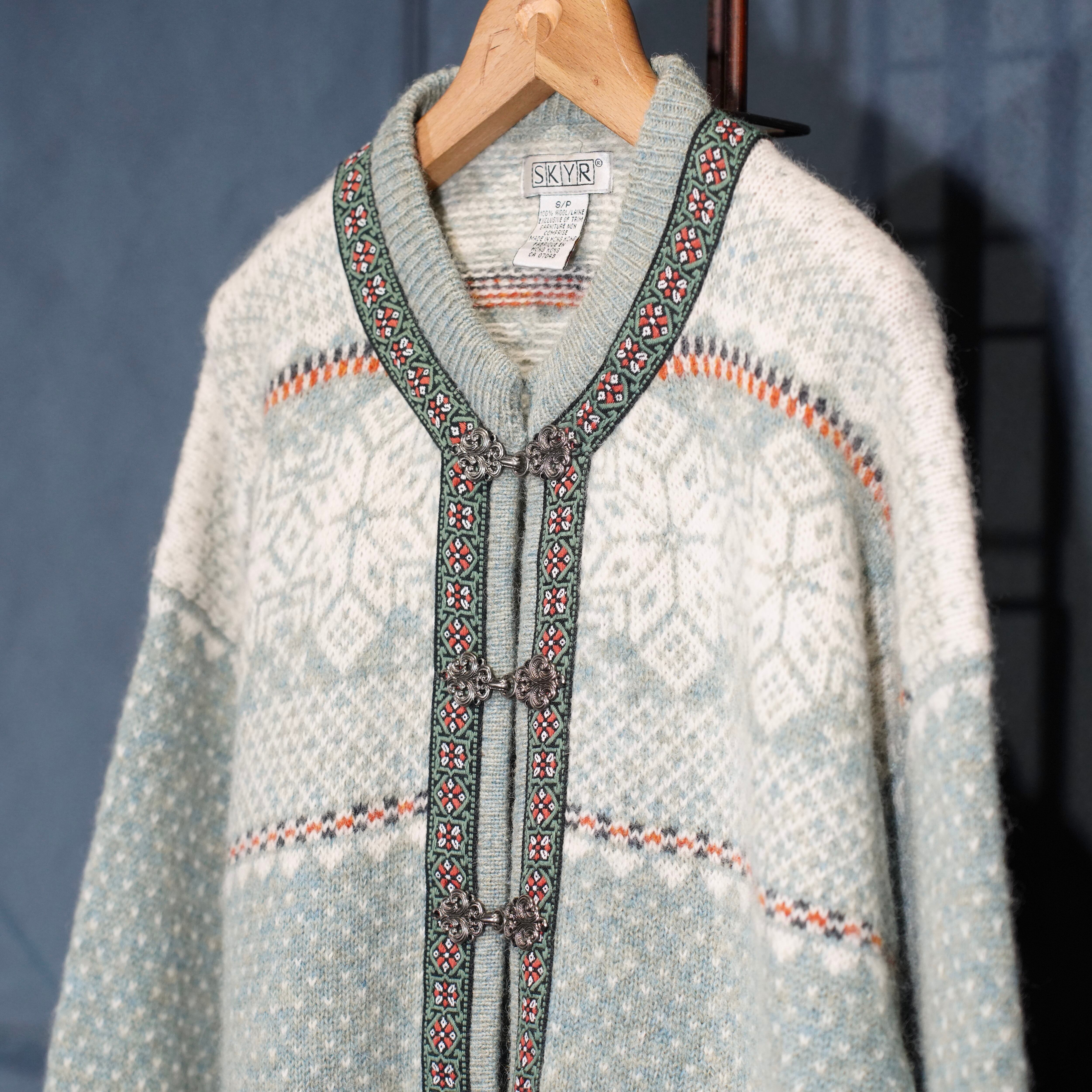EU VINTAGE SKYR EMBROIDERY DESIGN NORDIC KNIT CARDIGAN/ヨーロッパ古着刺繍デザインノルディックニットカーディガン