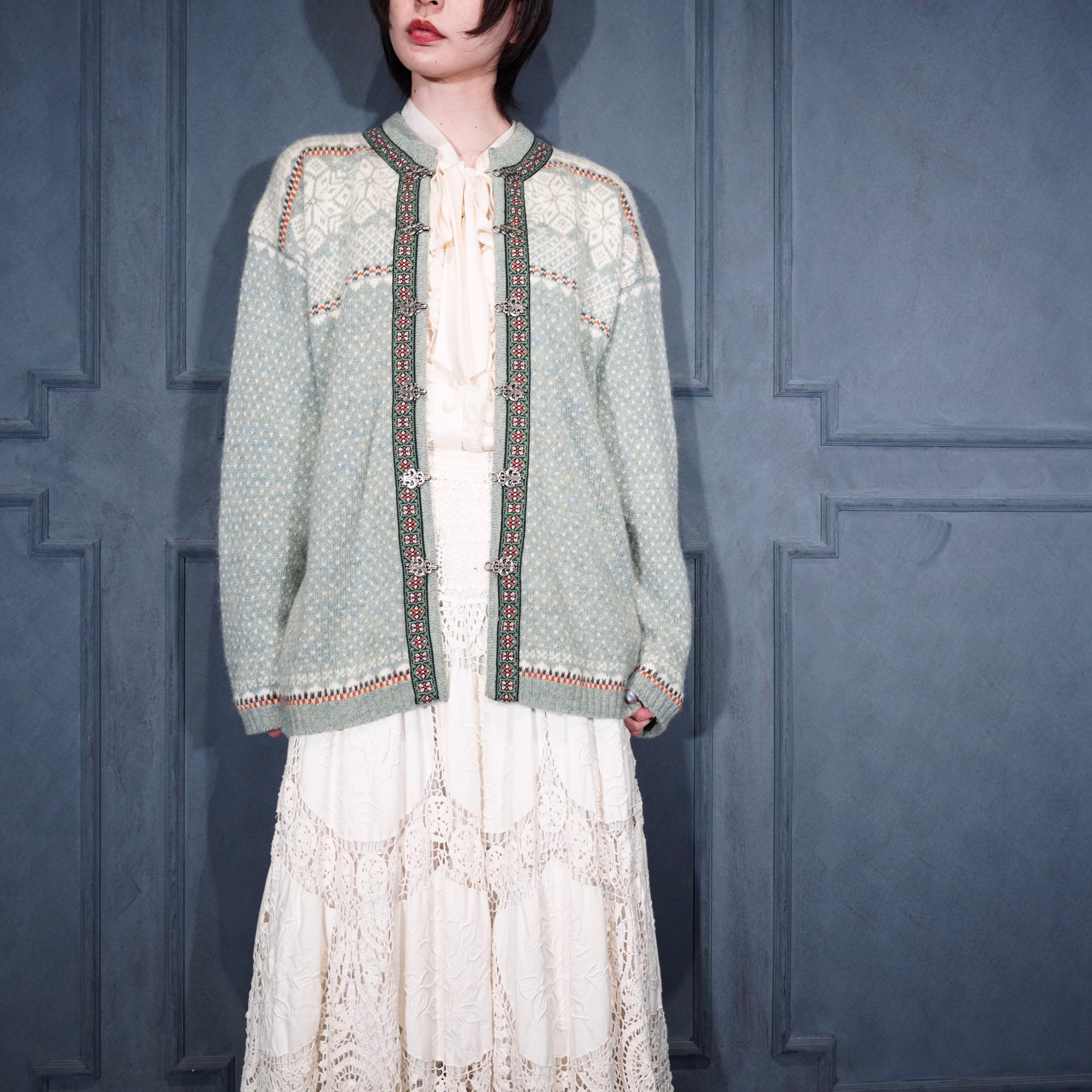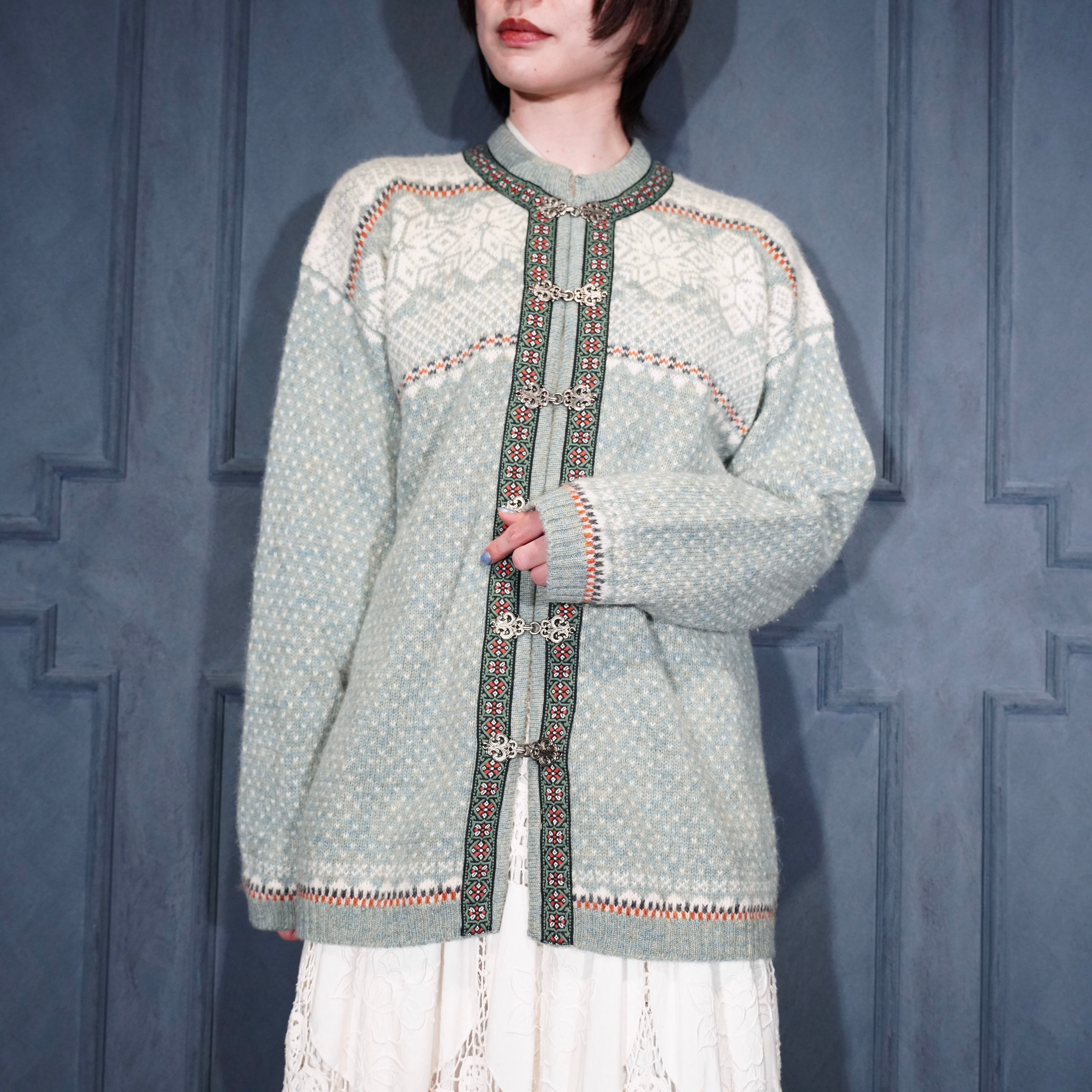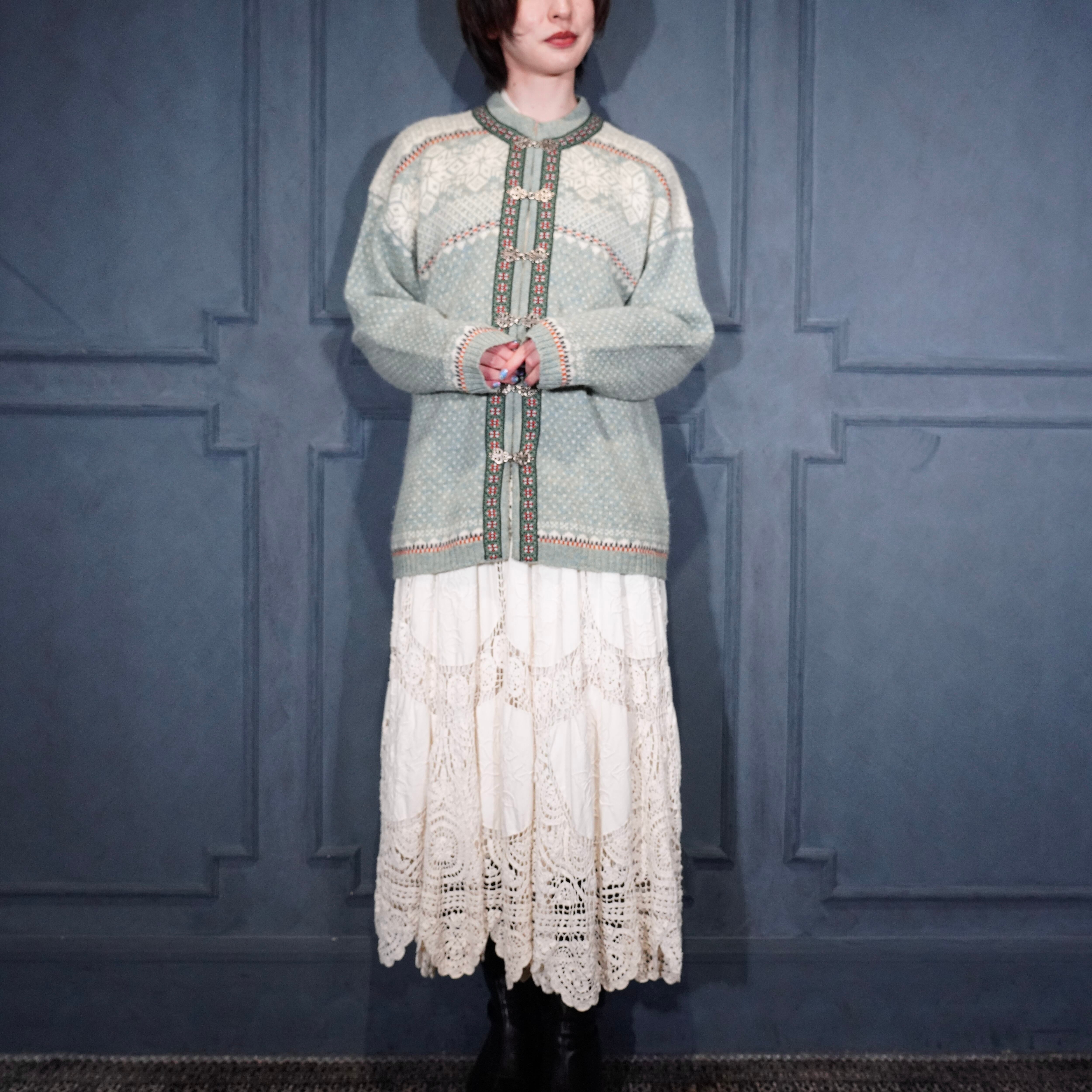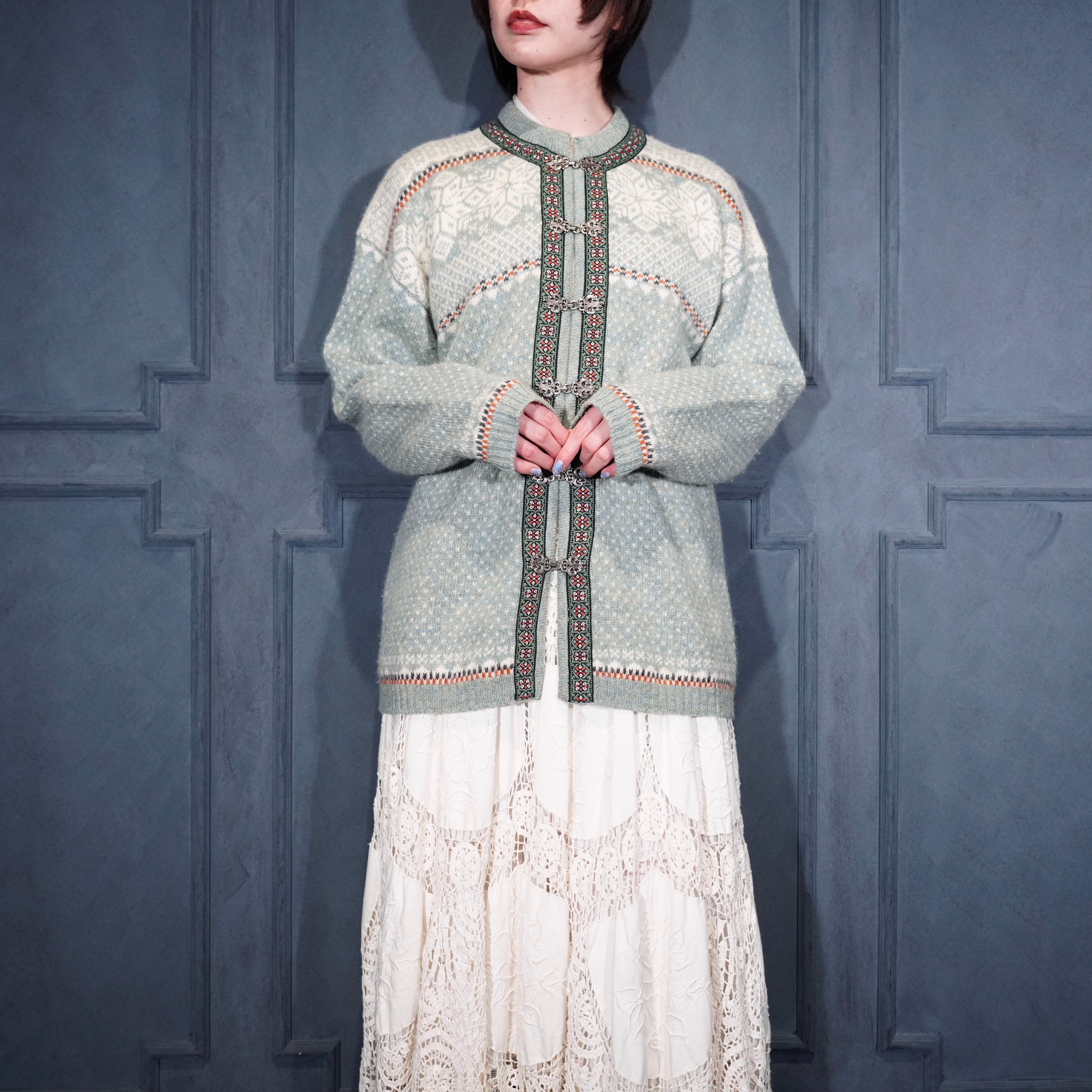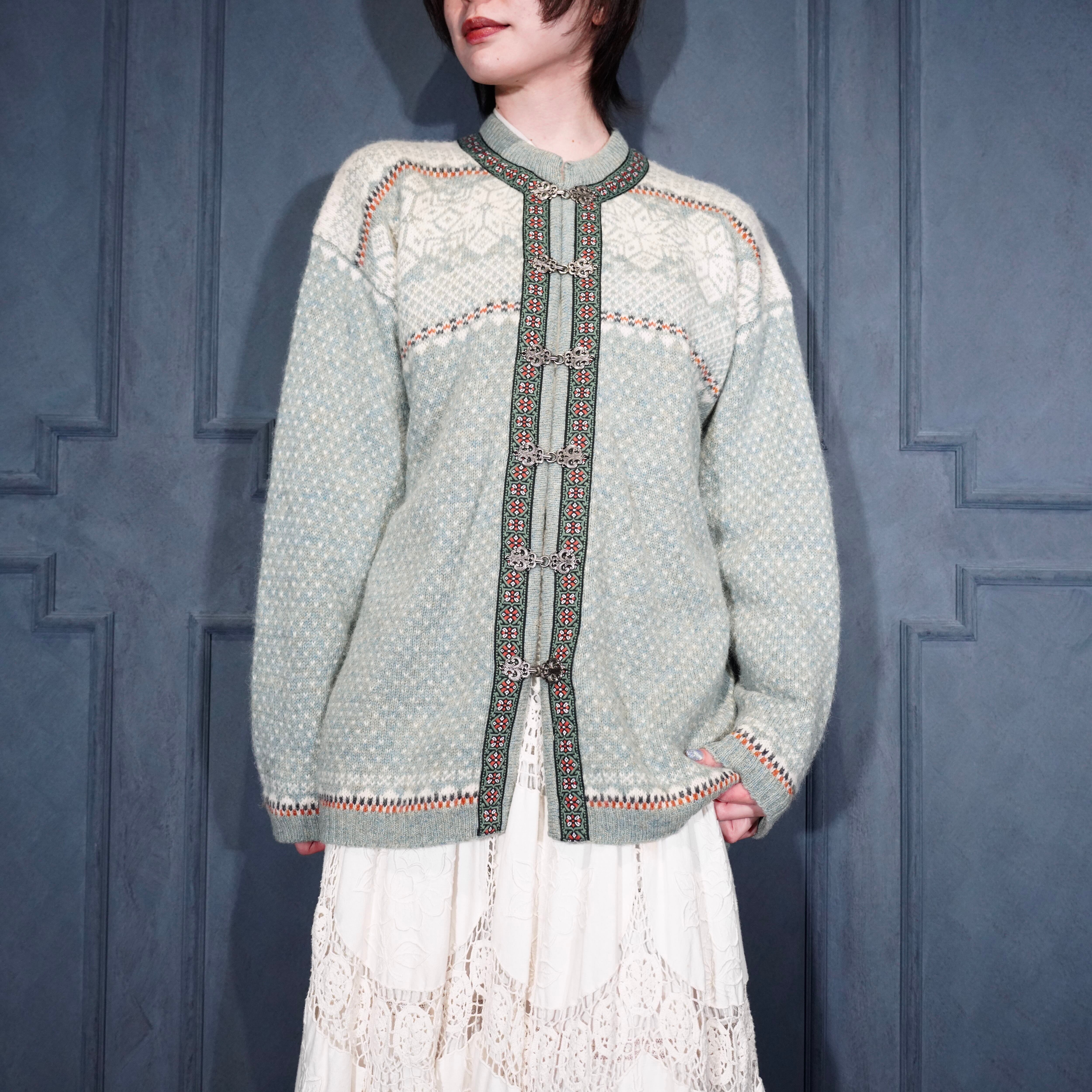 EU VINTAGE SKYR EMBROIDERY DESIGN NORDIC KNIT CARDIGAN/ヨーロッパ古着刺繍デザインノルディックニットカーディガン
