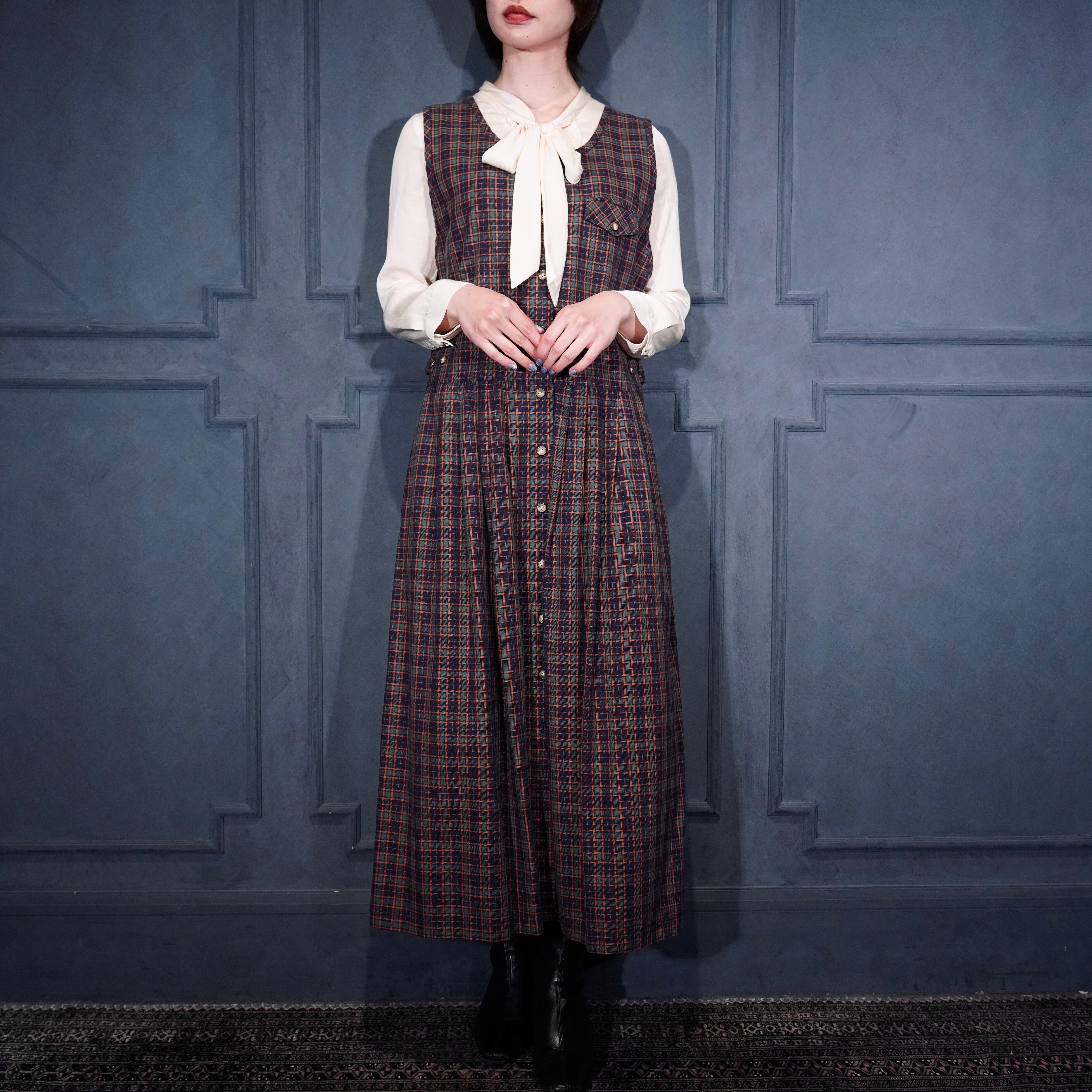 80's~90's USA VINTAGE Eddie Bauer CHECK PATTERNED NO SLEEVE ONE PIECE/80年代~90年代アメリカ古着エディバウアーチェック柄ノースリーブワンピース