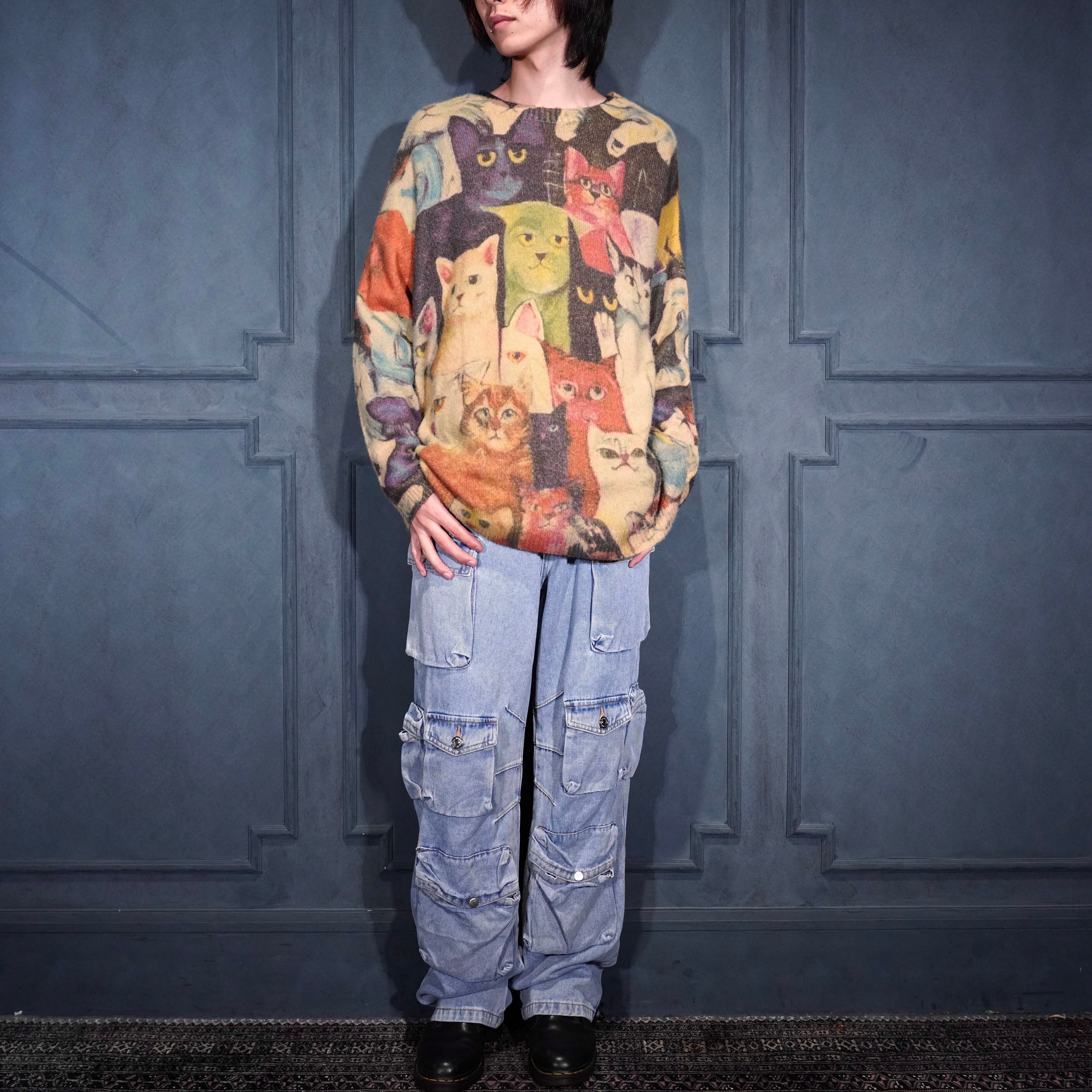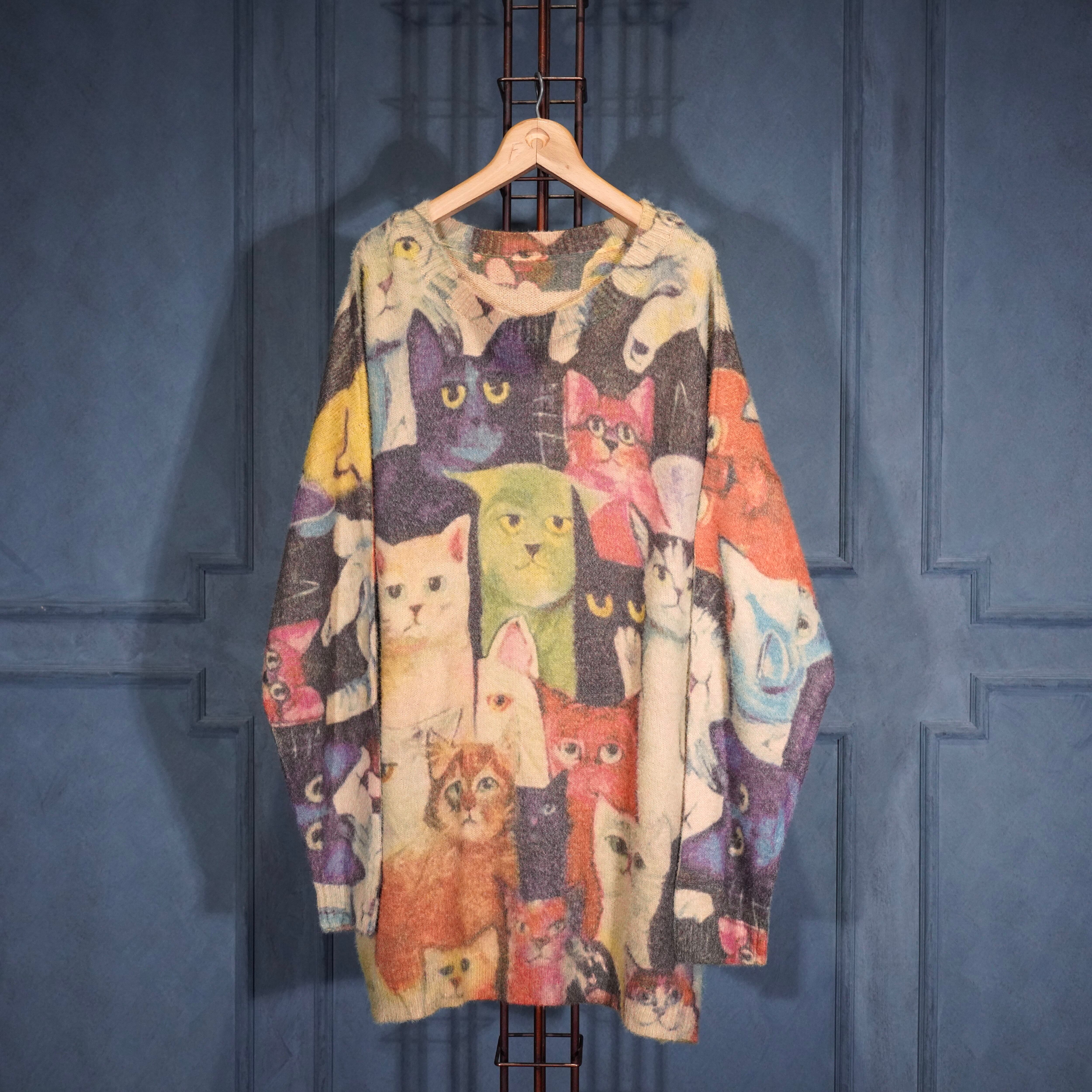USA VINTAGE VARIOUS CATS DESIGN KNIT/アメリカ古着いろんな猫ニット