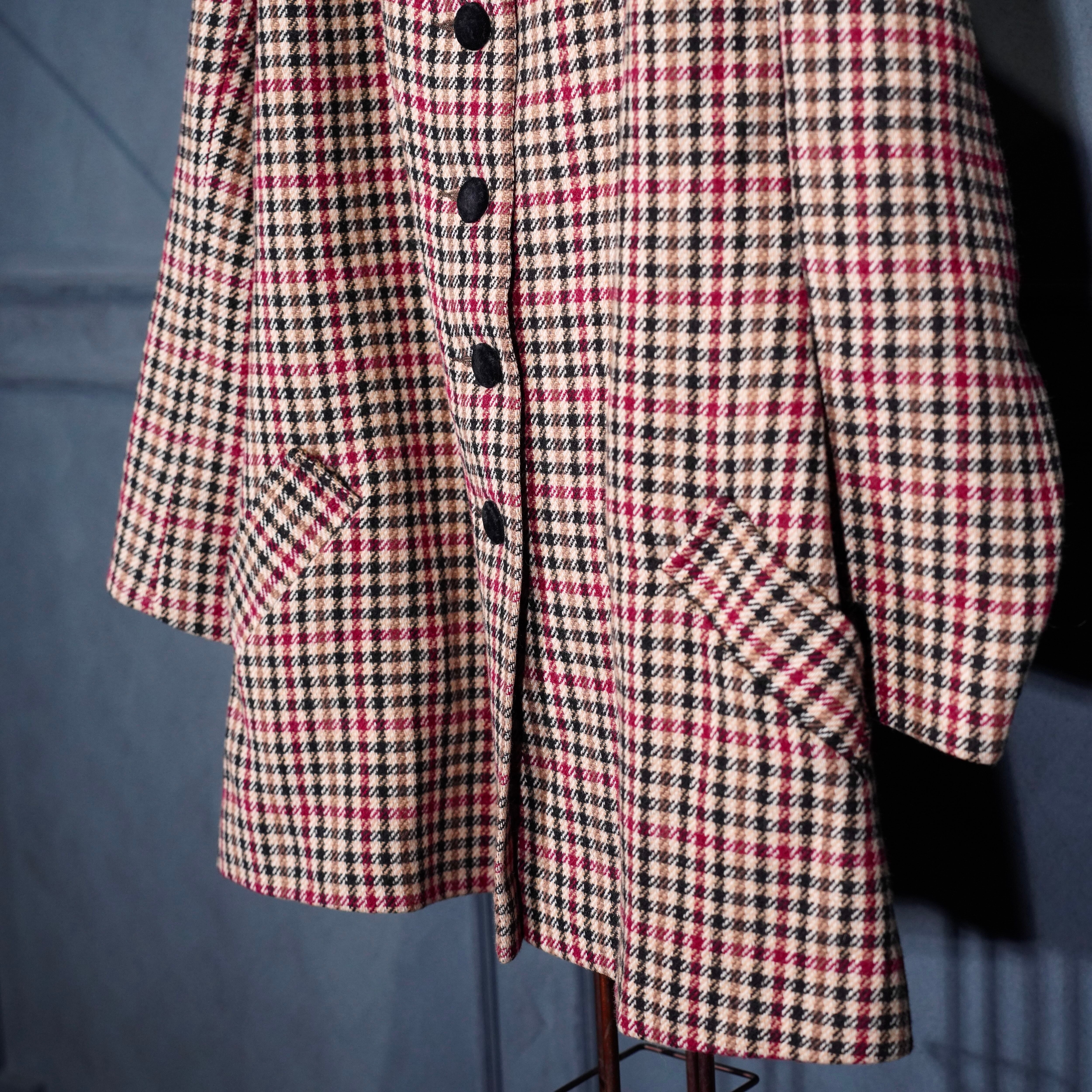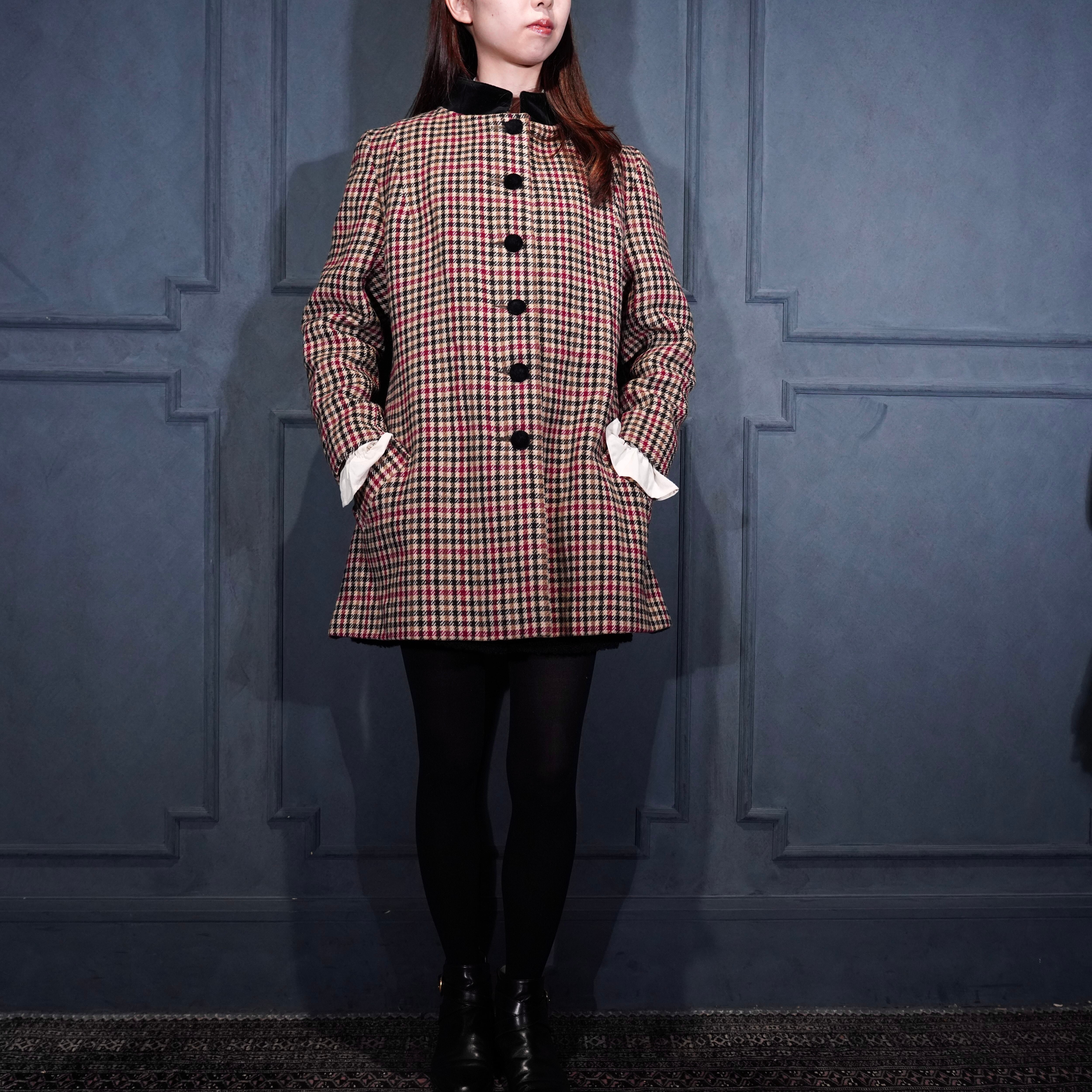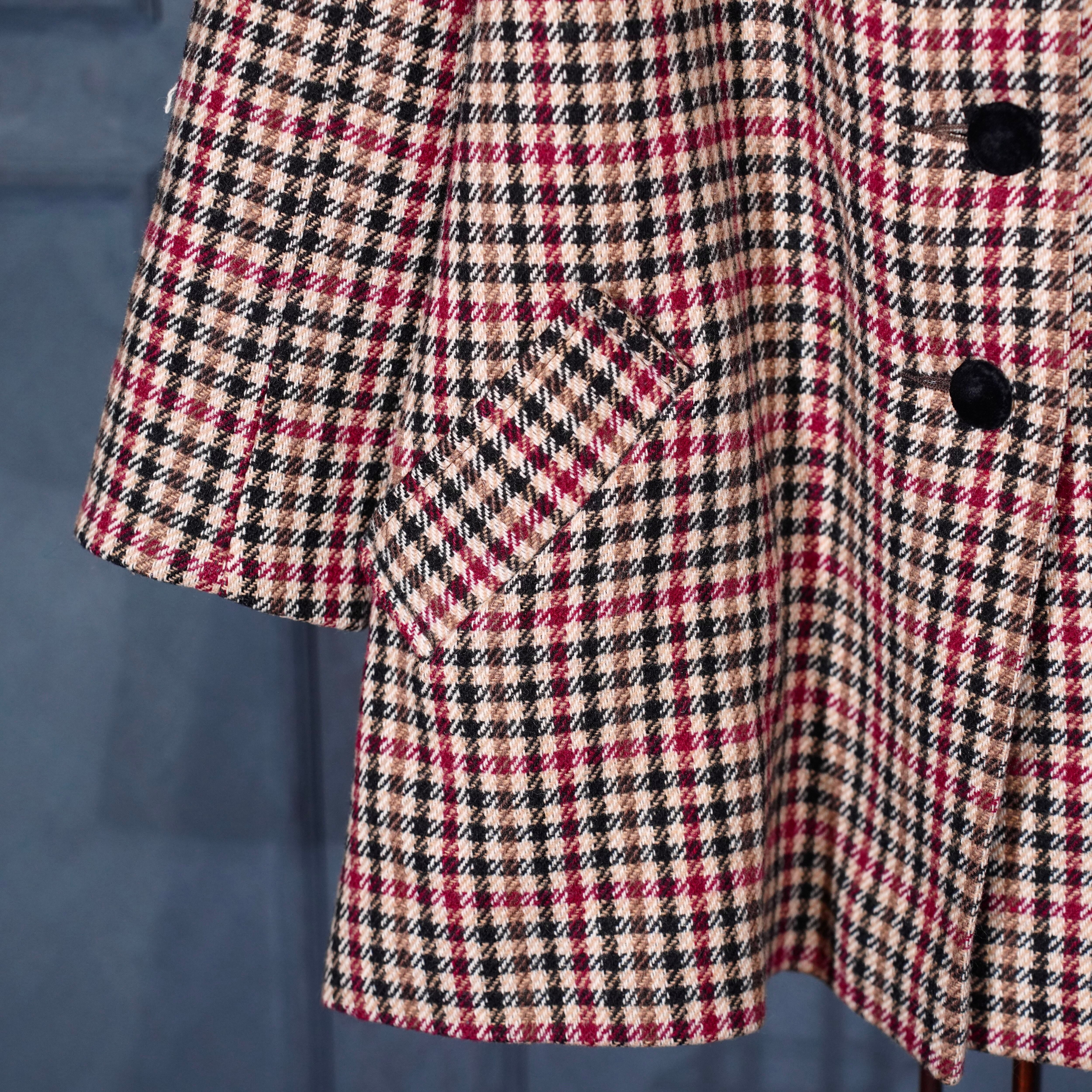 EU VINTAGE CHECK PATTERNED ONE PIECE LIKE WOOL HALF COAT MADE IN BRITAIN/ヨーロッパ古着チェック柄ワンピース風ウールハーフコート