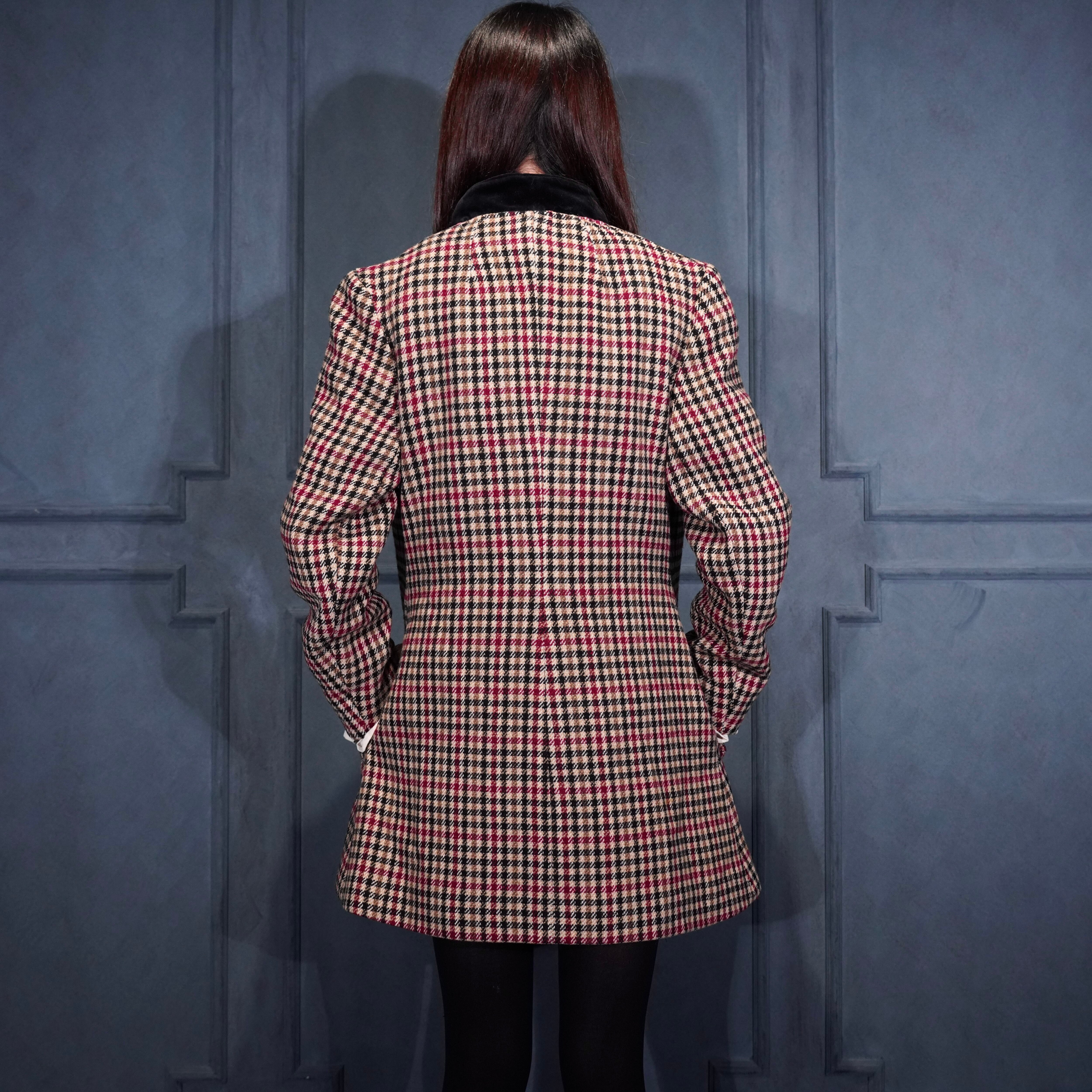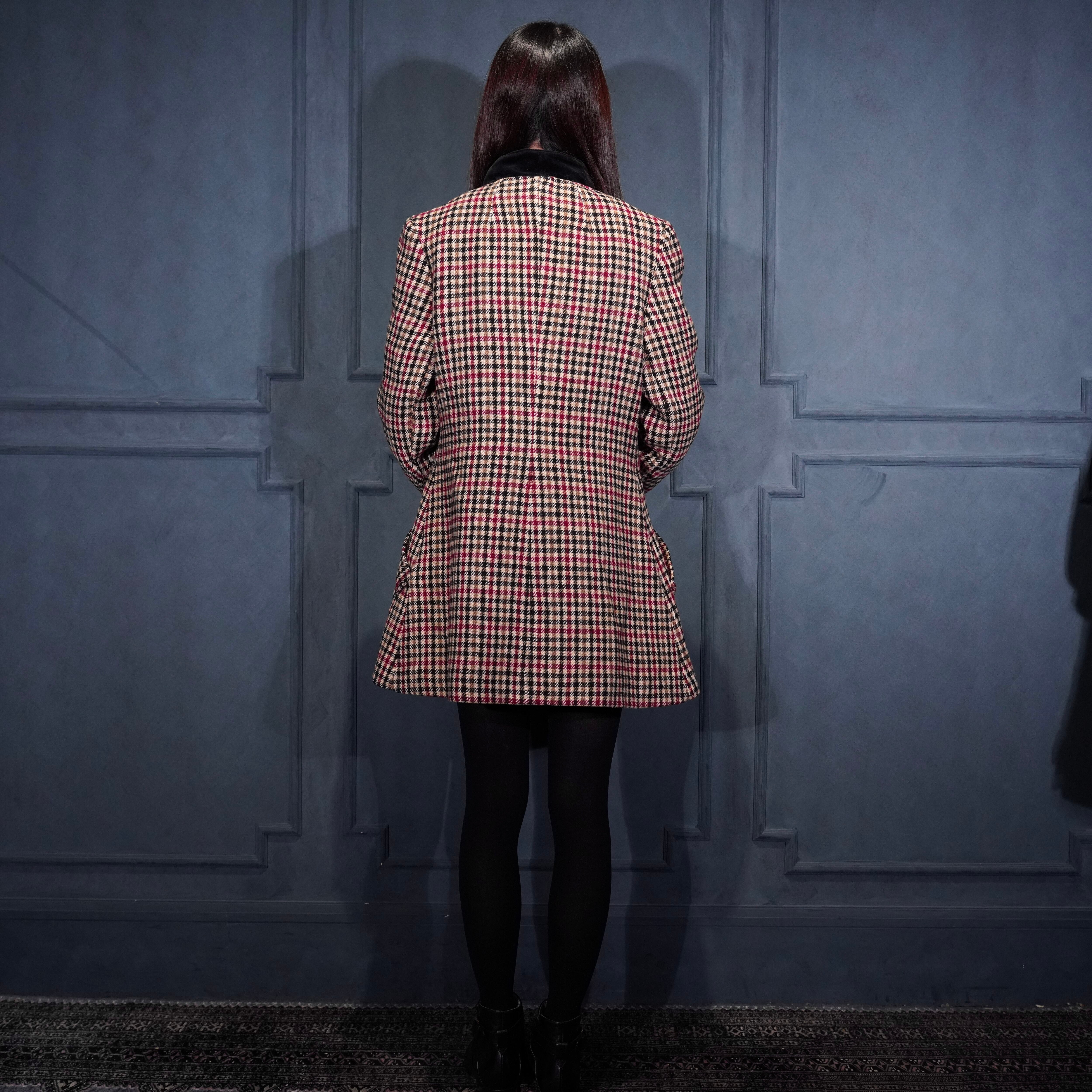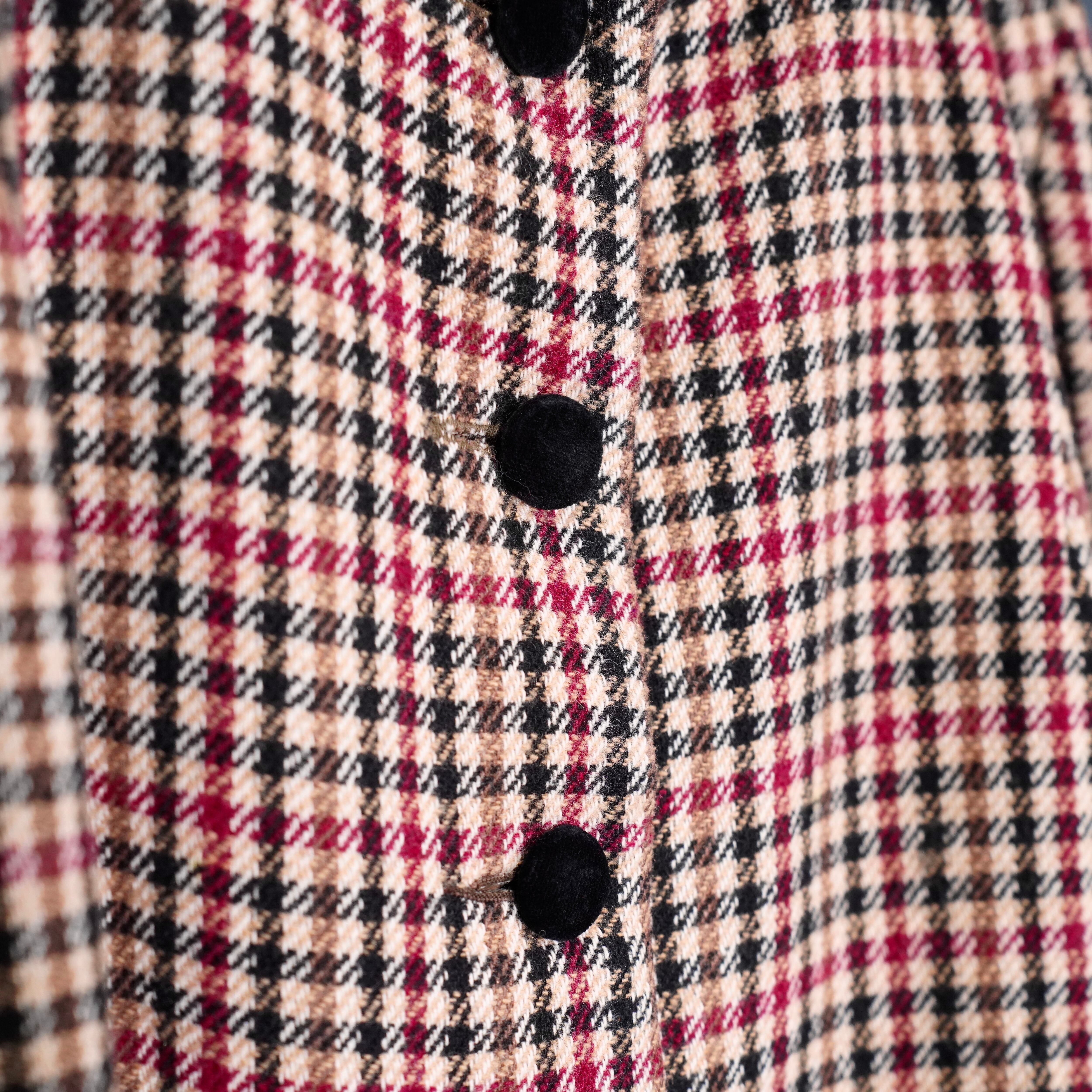 EU VINTAGE CHECK PATTERNED ONE PIECE LIKE WOOL HALF COAT MADE IN BRITAIN/ヨーロッパ古着チェック柄ワンピース風ウールハーフコート