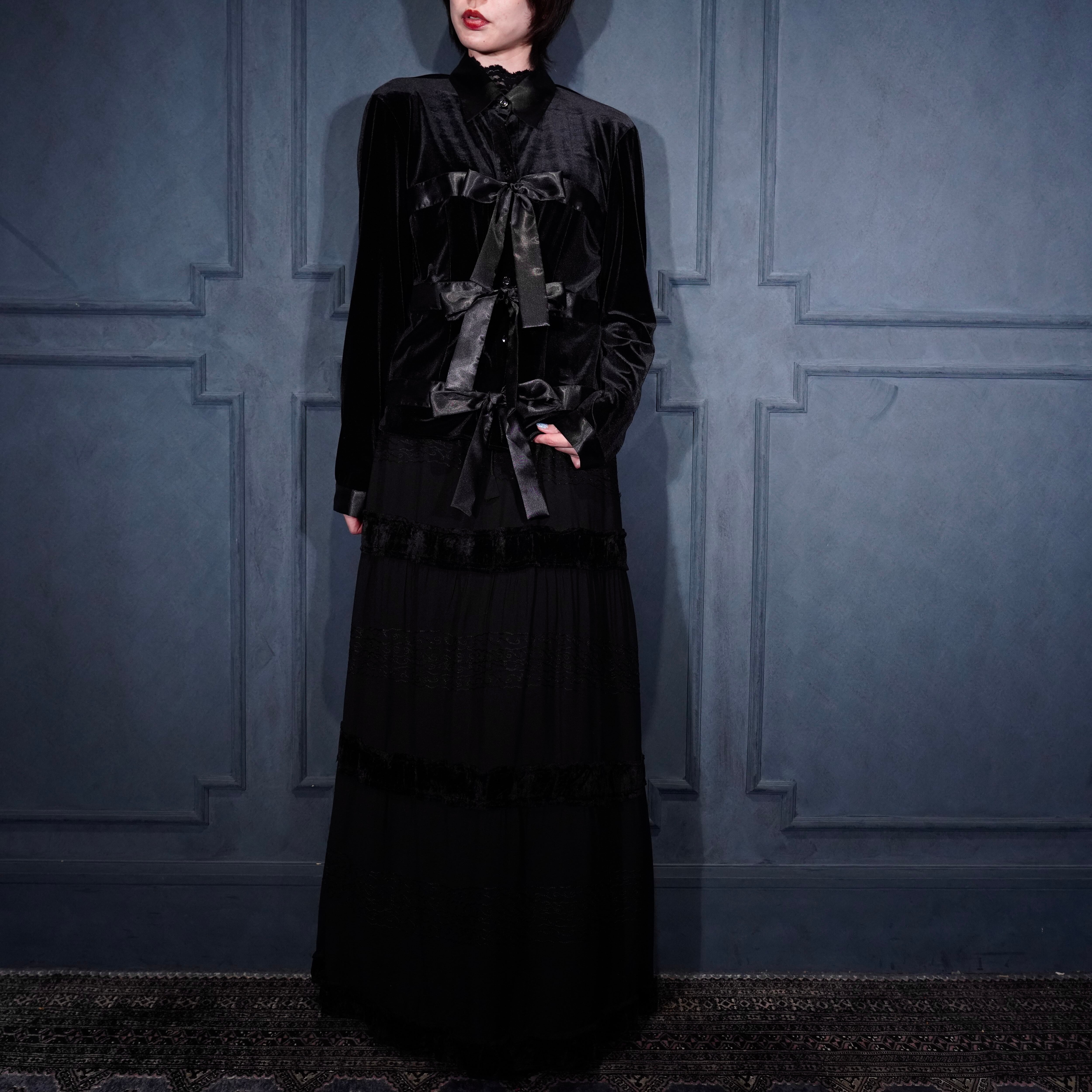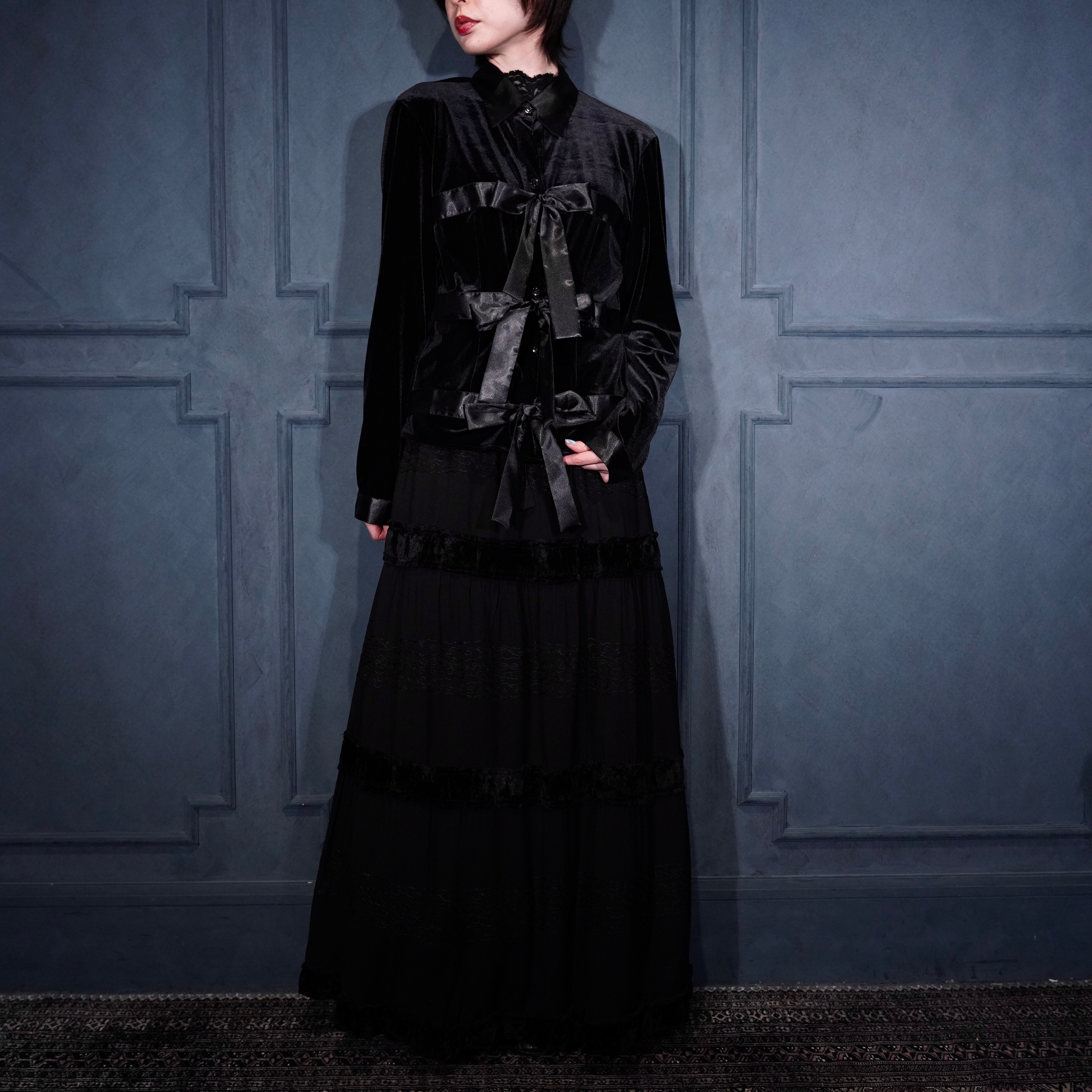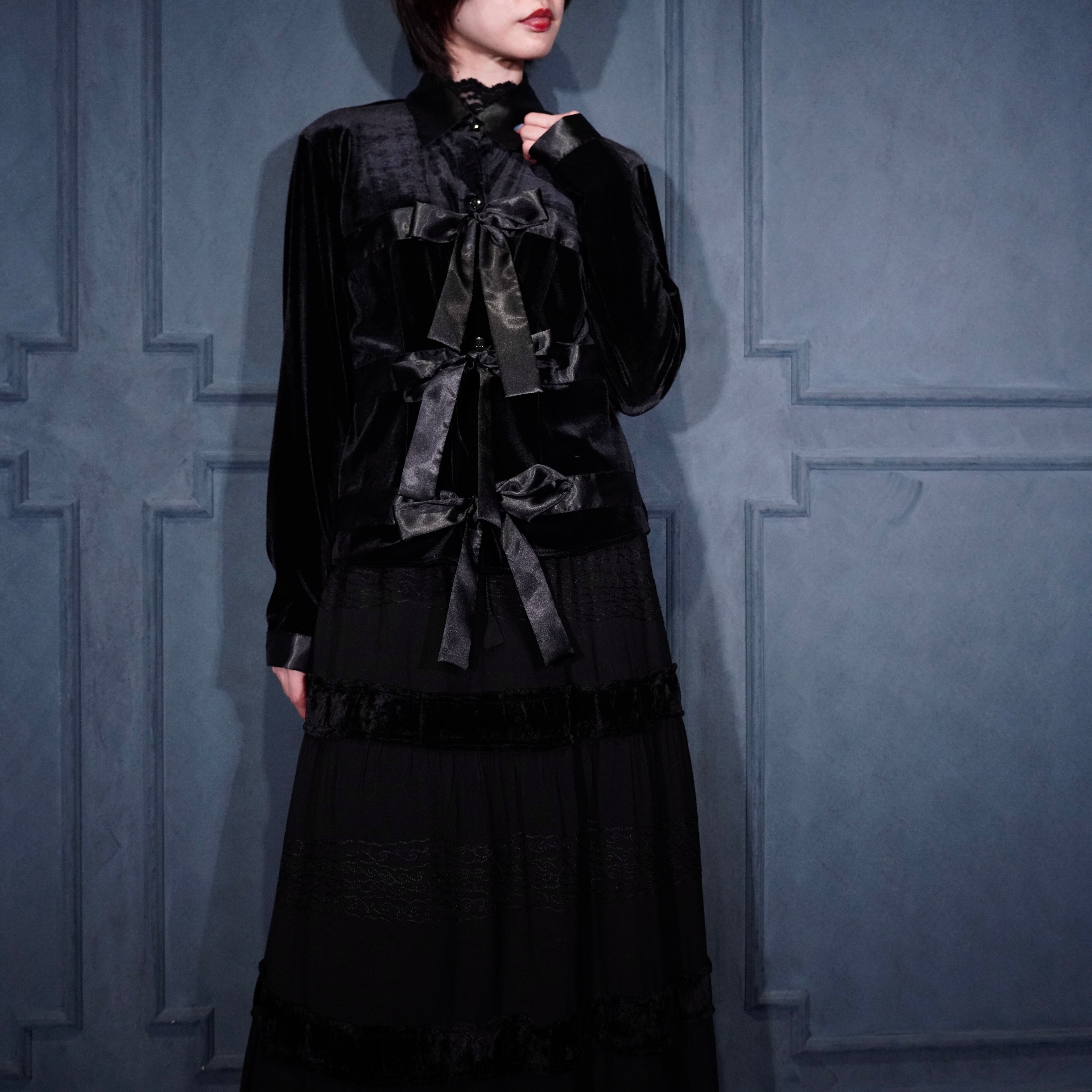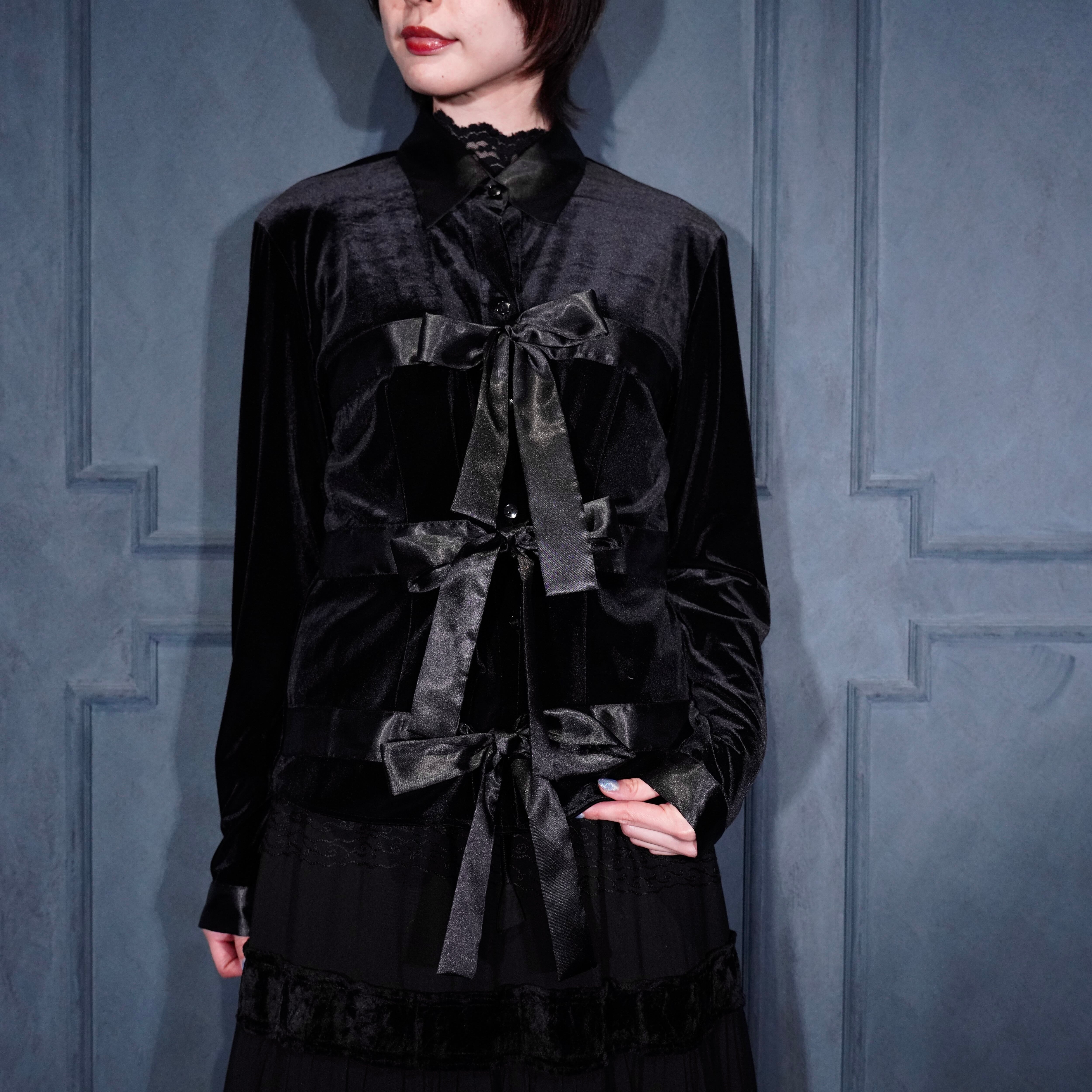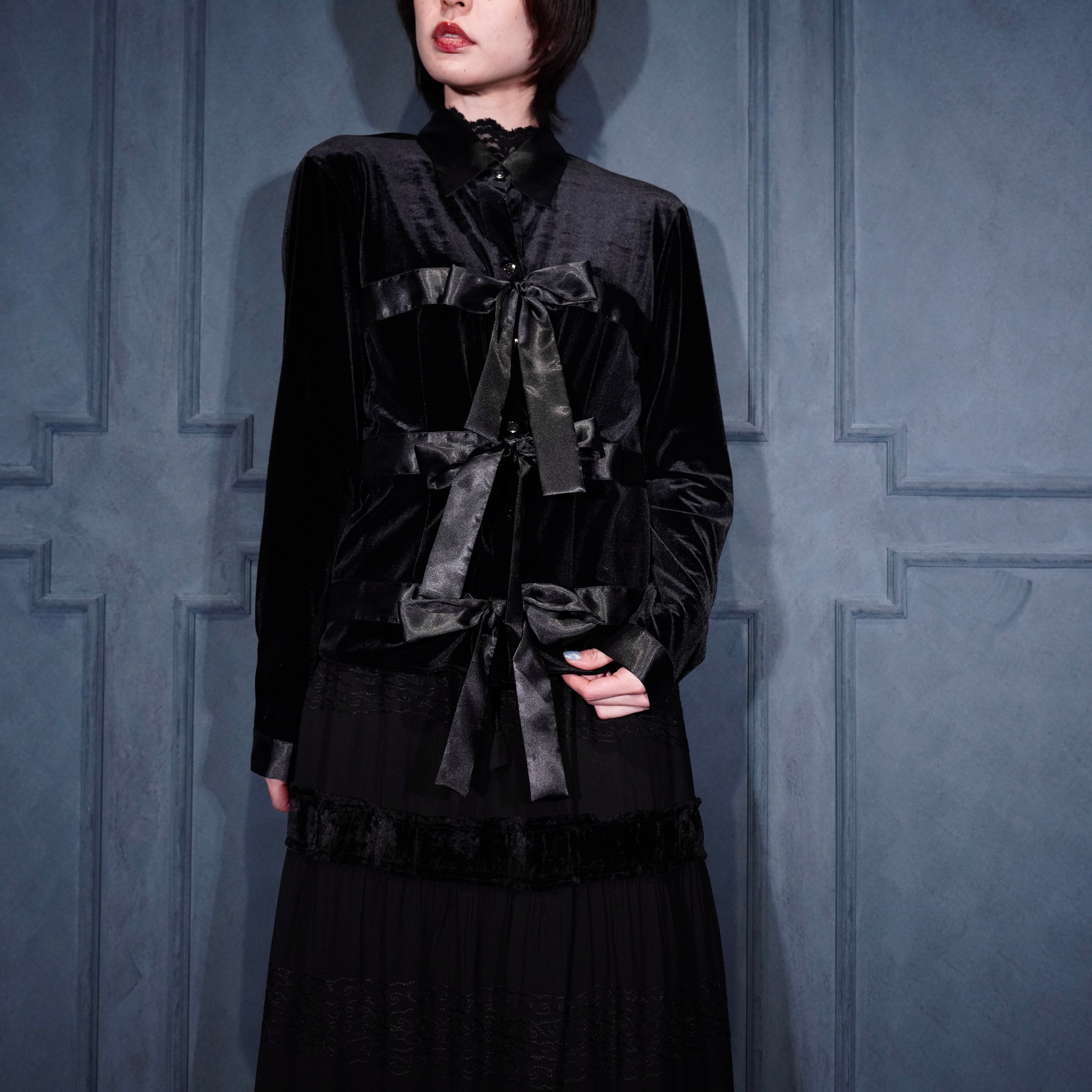 USA VINTAGE D&Y MULTI RIBBON DESIGN VELOUR SHIRT JACKET/アメリカ古着マルチリボンデザインベロアシャツジャケット