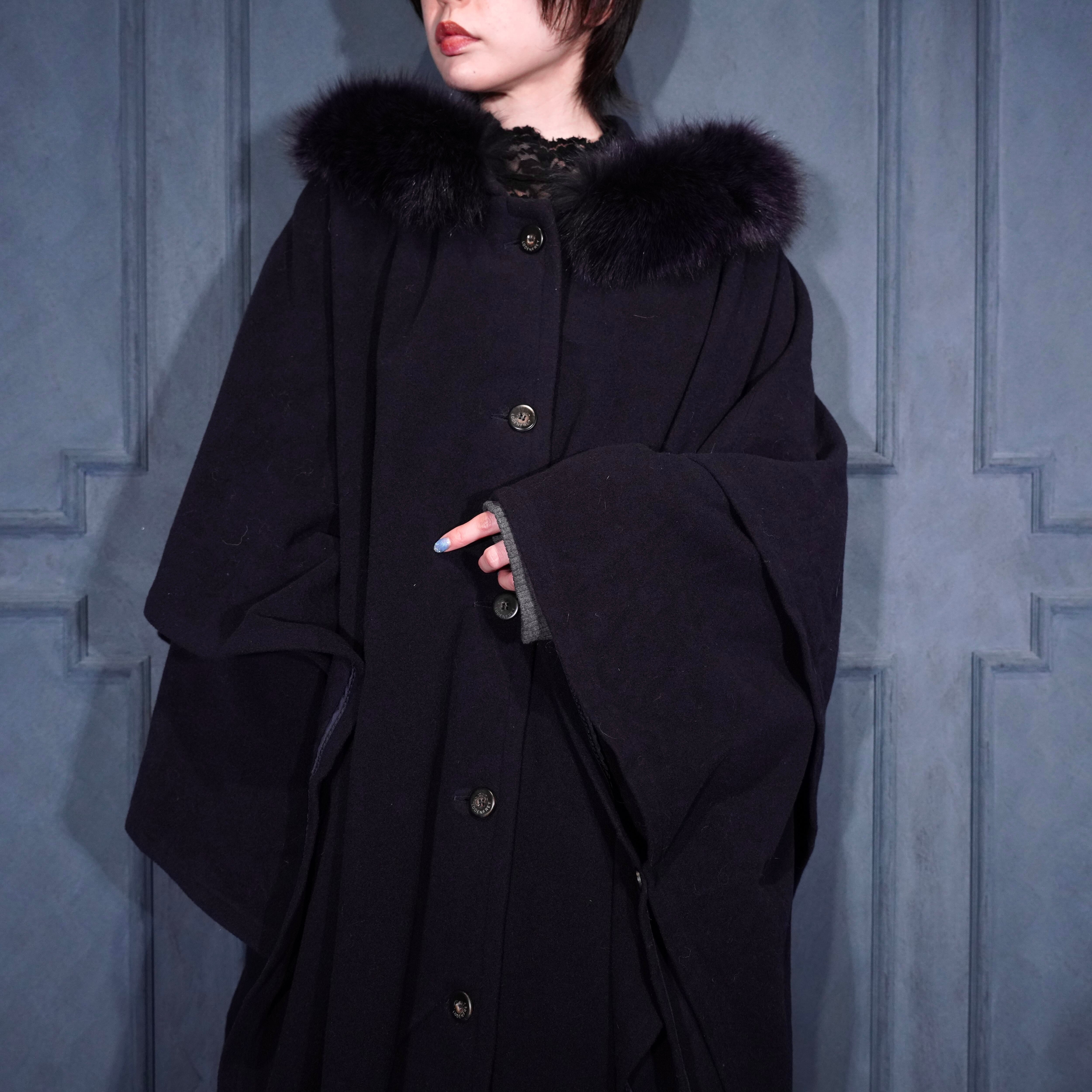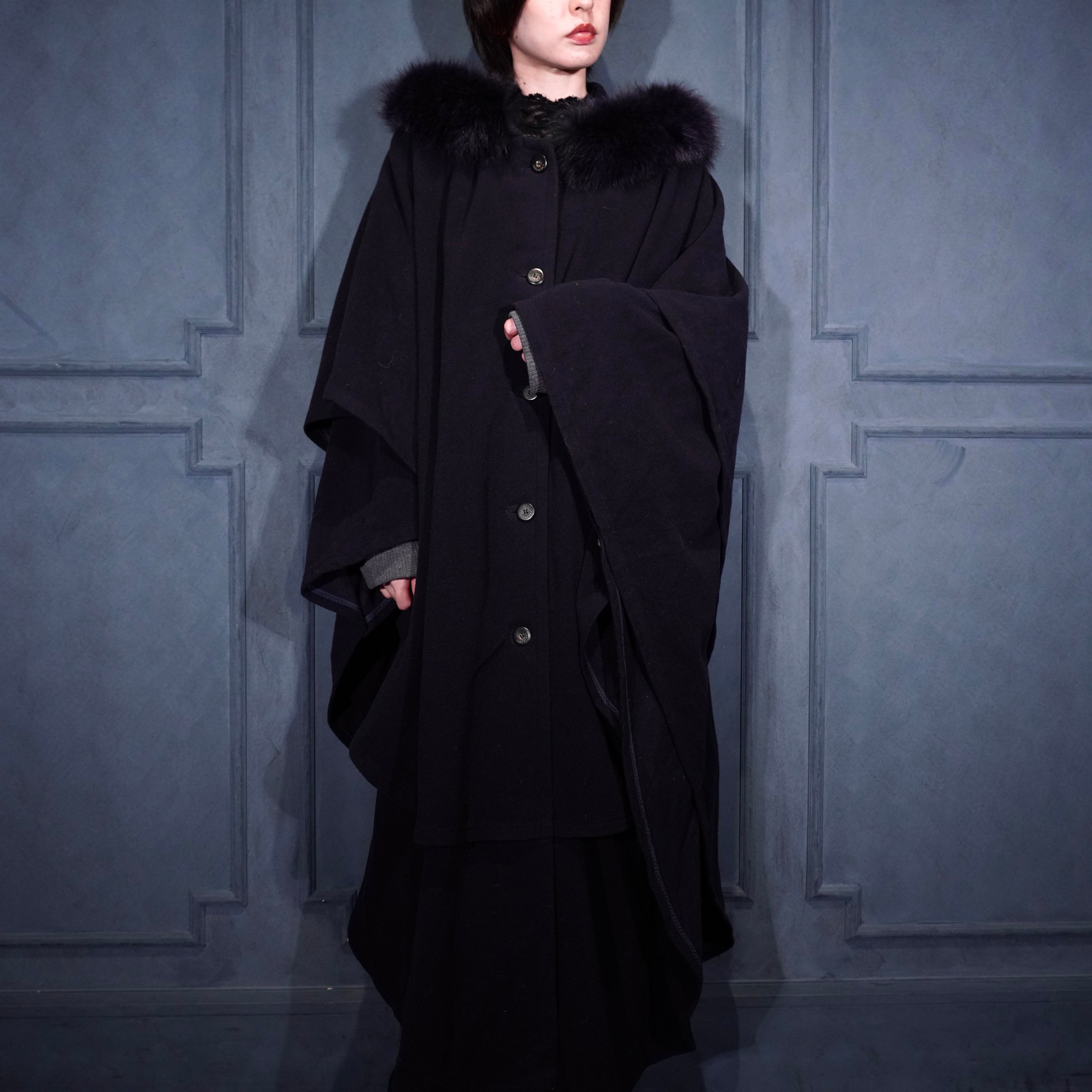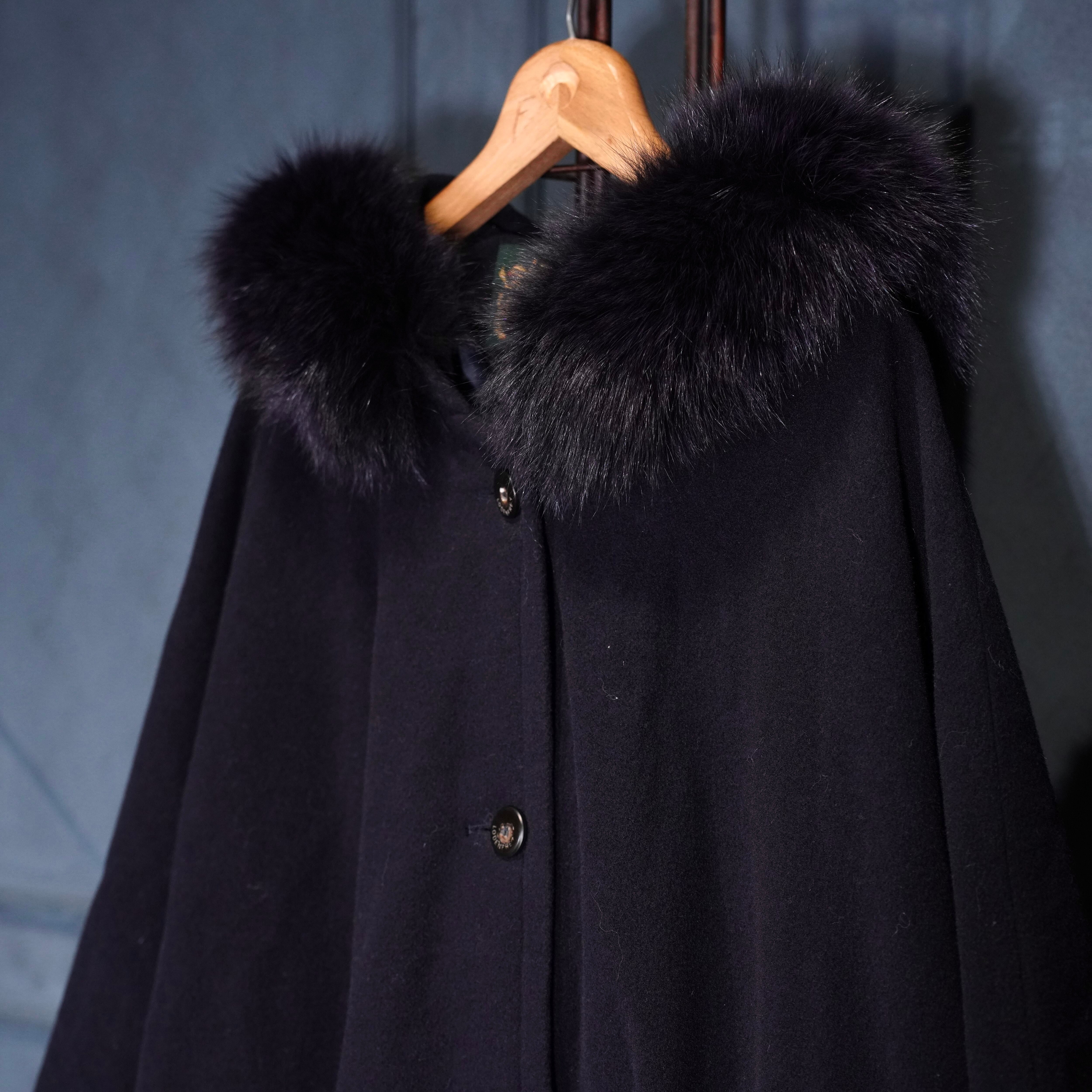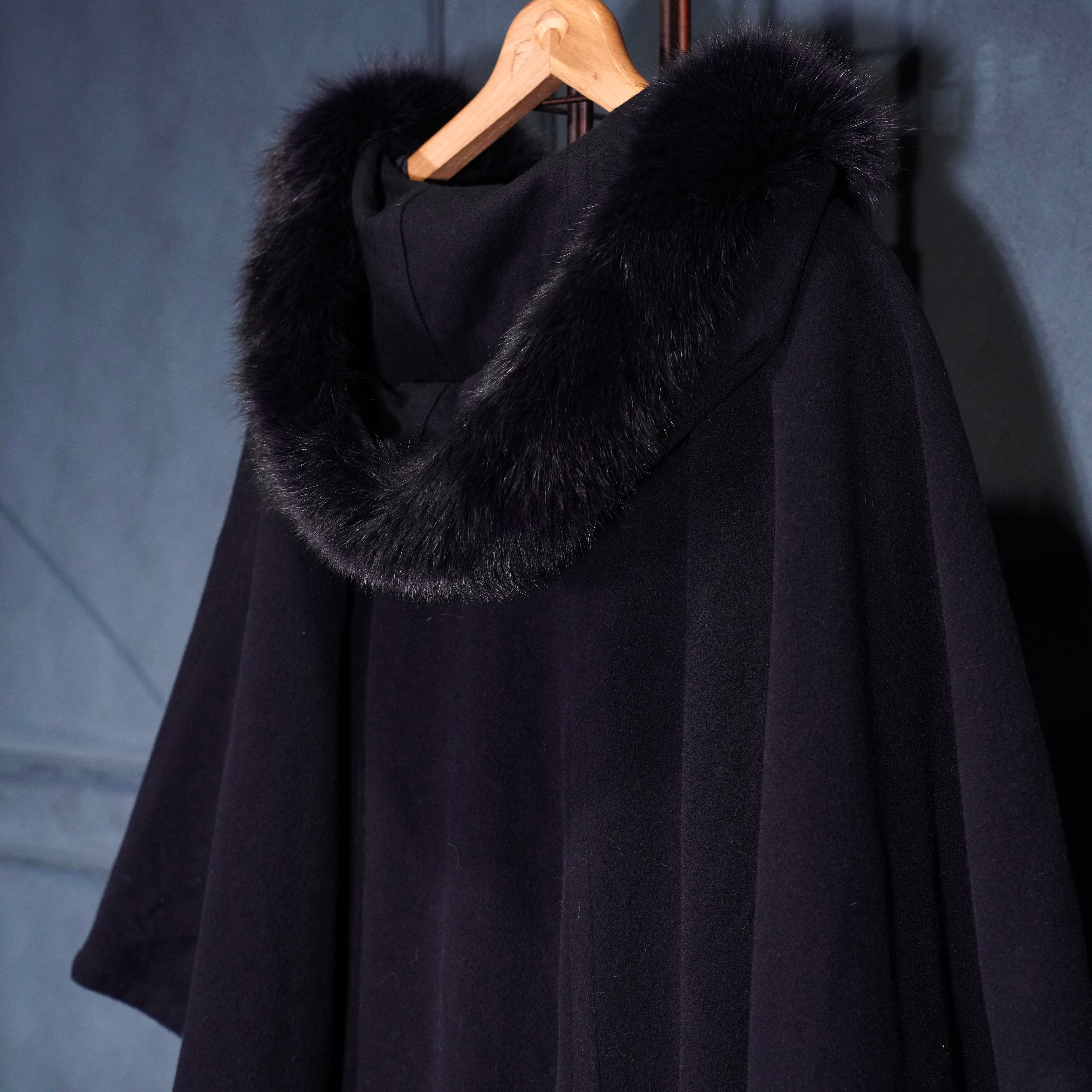 *SPECIAL ITEM* EU VINTAGE LODEN Frey FUR HOODIE LAYARD DESIGN CASHMERE BREND WOOL CAPE COAT/ヨーロッパ古着ファーフーディレイヤードデザインカシミヤ混ウールケープコート(ポンチョ)