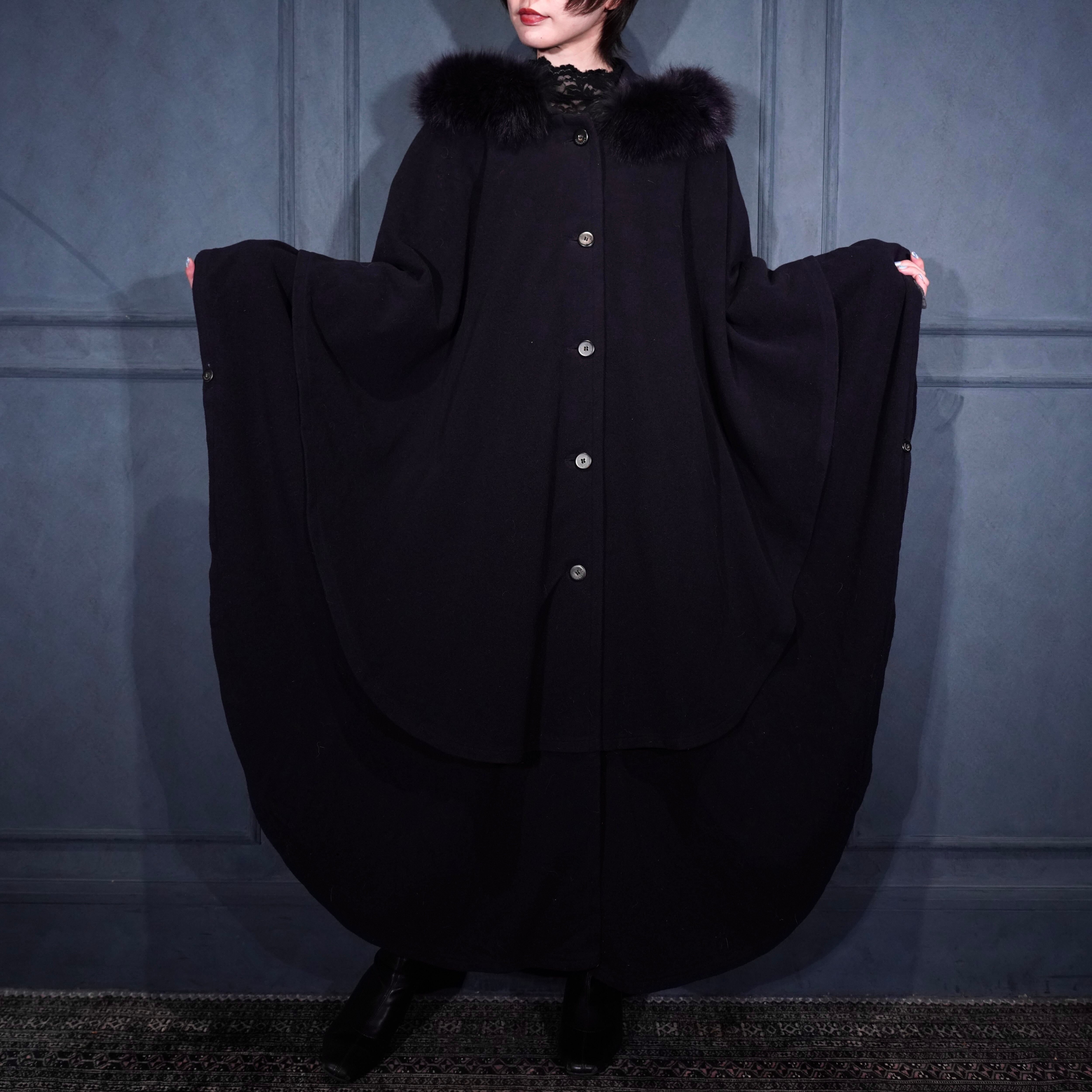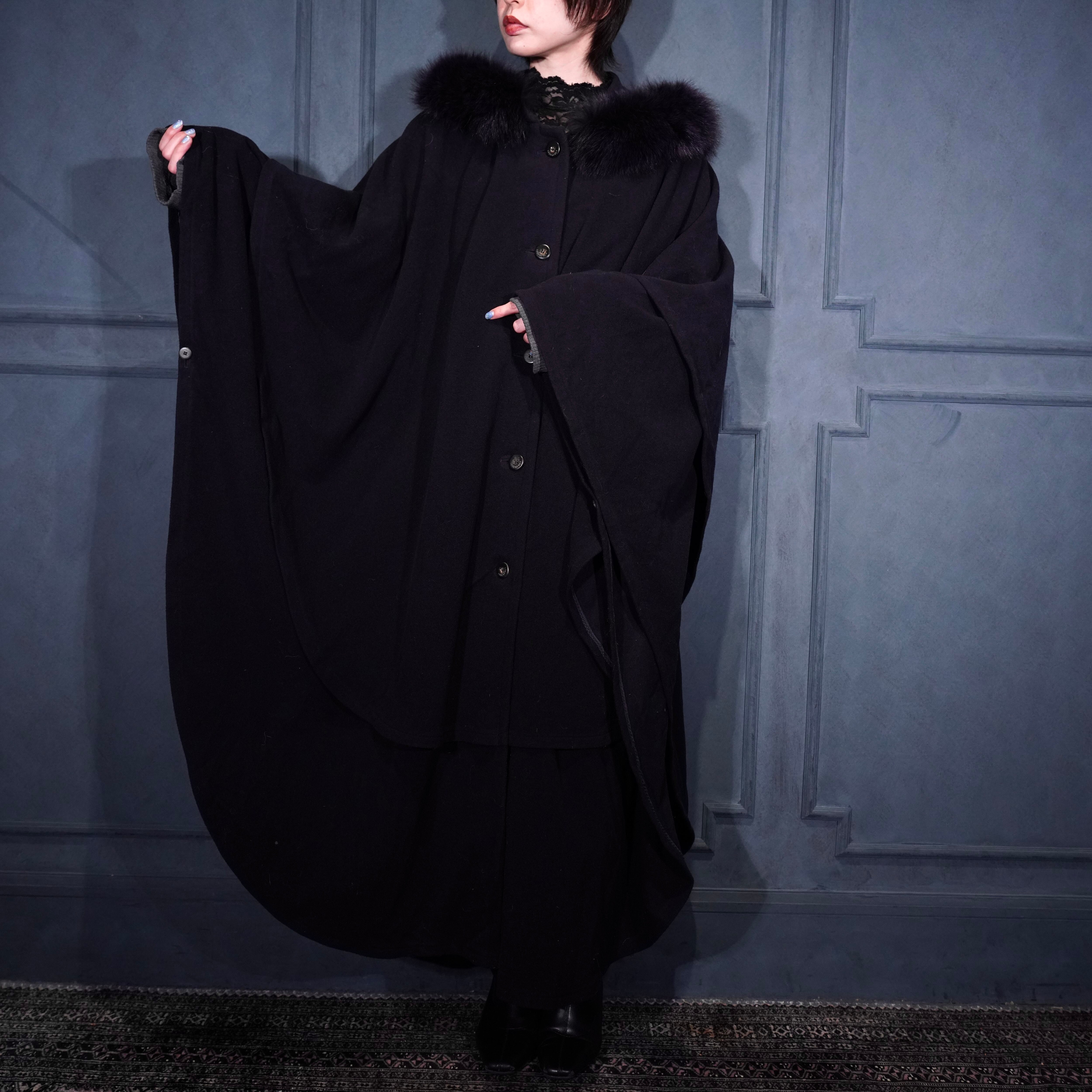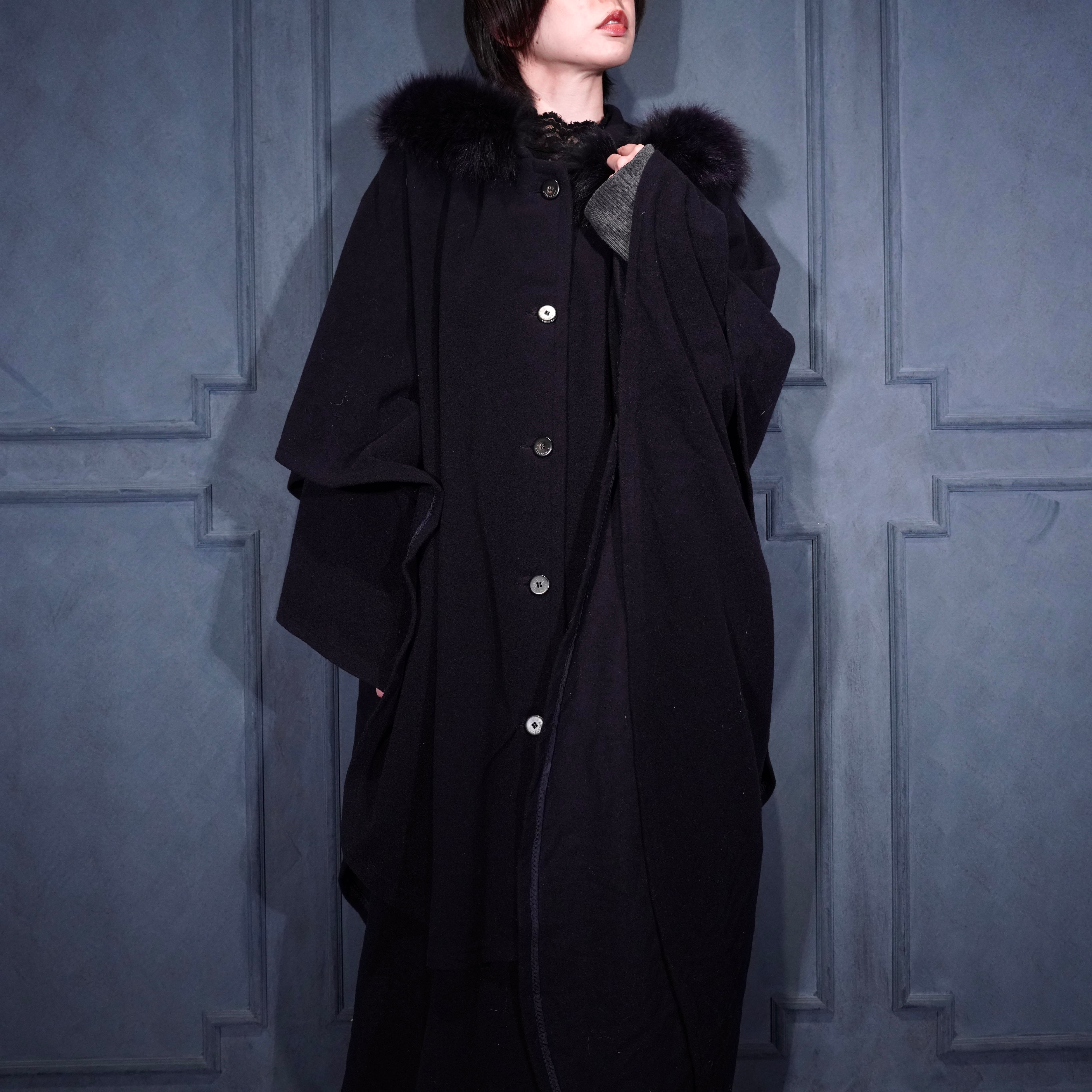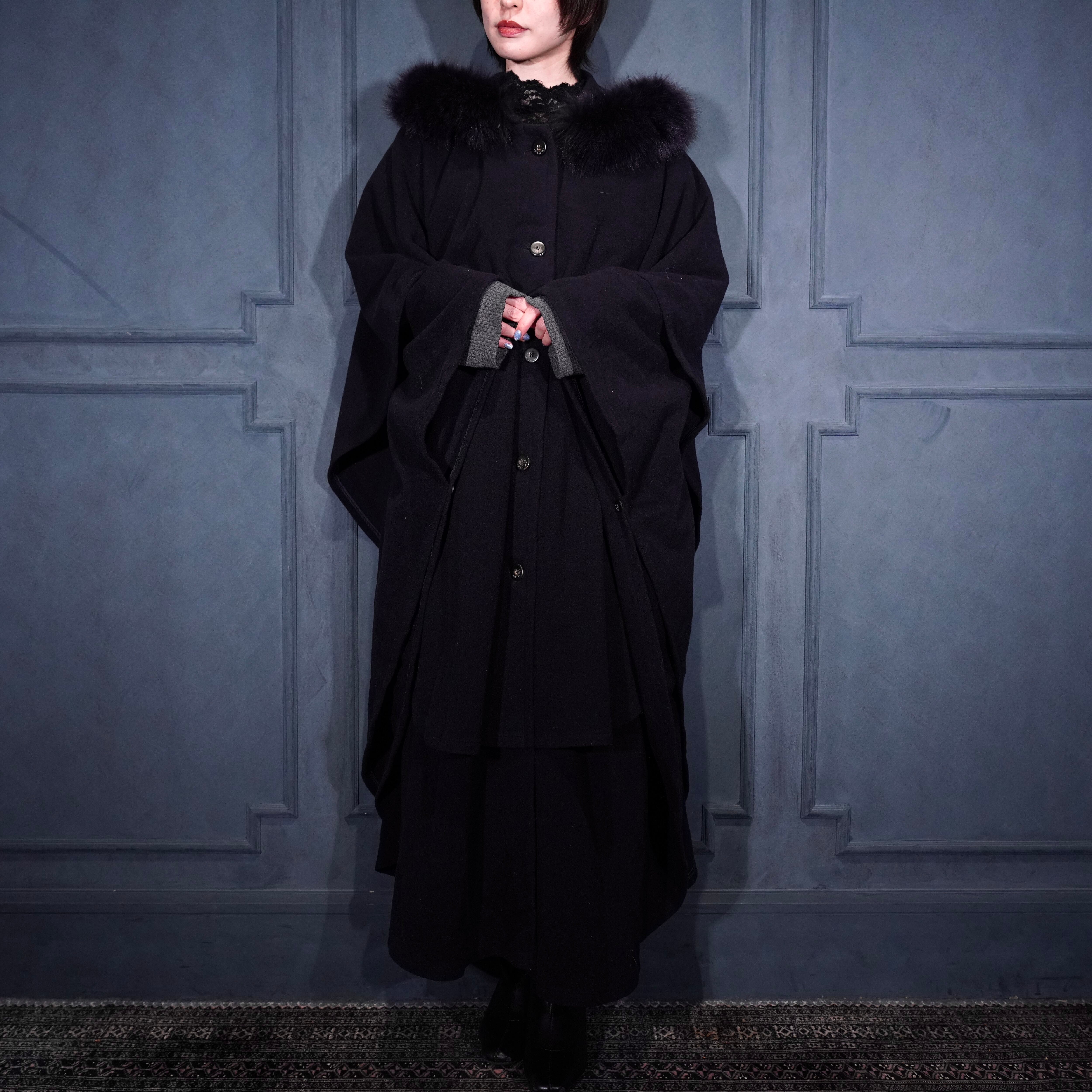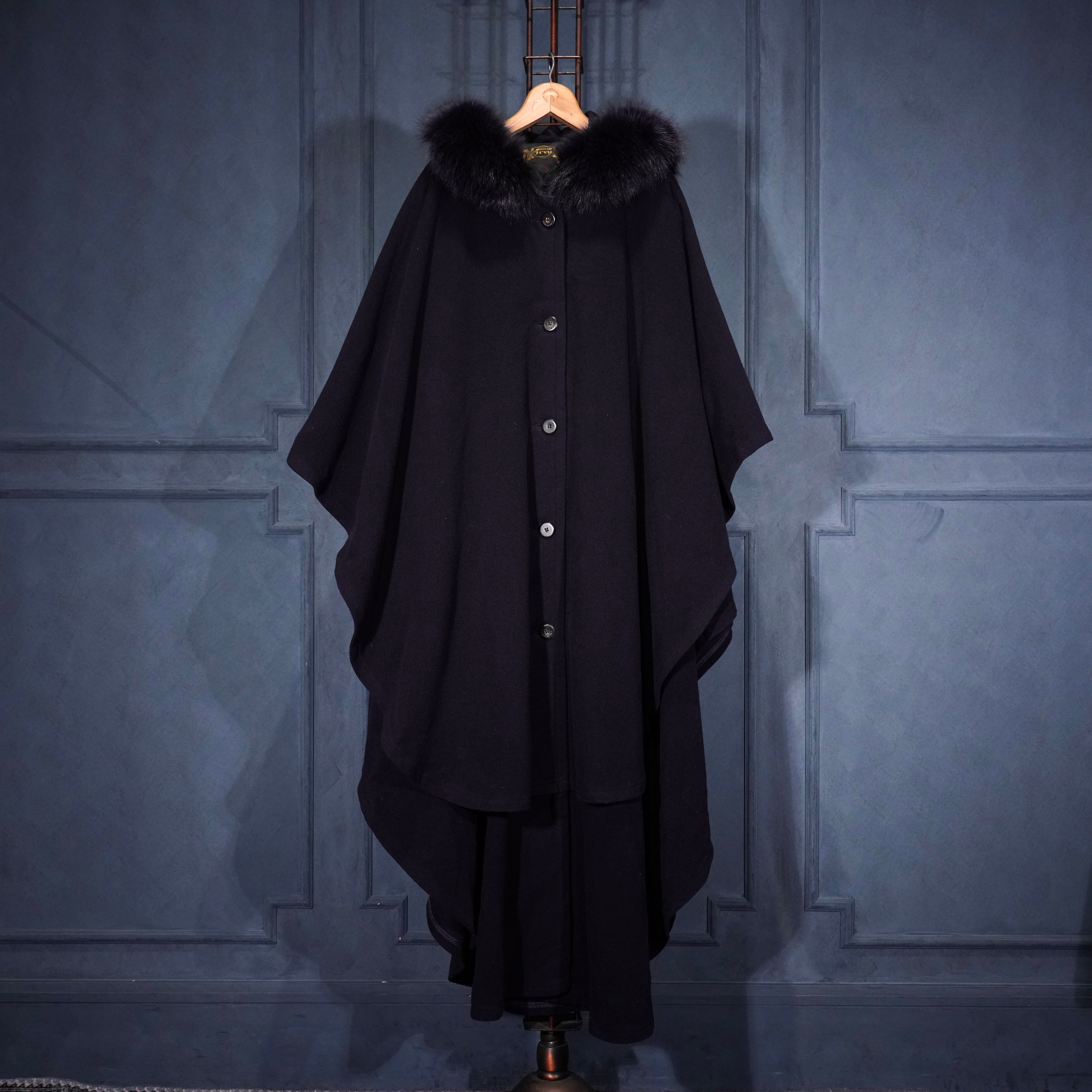 *SPECIAL ITEM* EU VINTAGE LODEN Frey FUR HOODIE LAYARD DESIGN CASHMERE BREND WOOL CAPE COAT/ヨーロッパ古着ファーフーディレイヤードデザインカシミヤ混ウールケープコート(ポンチョ)
