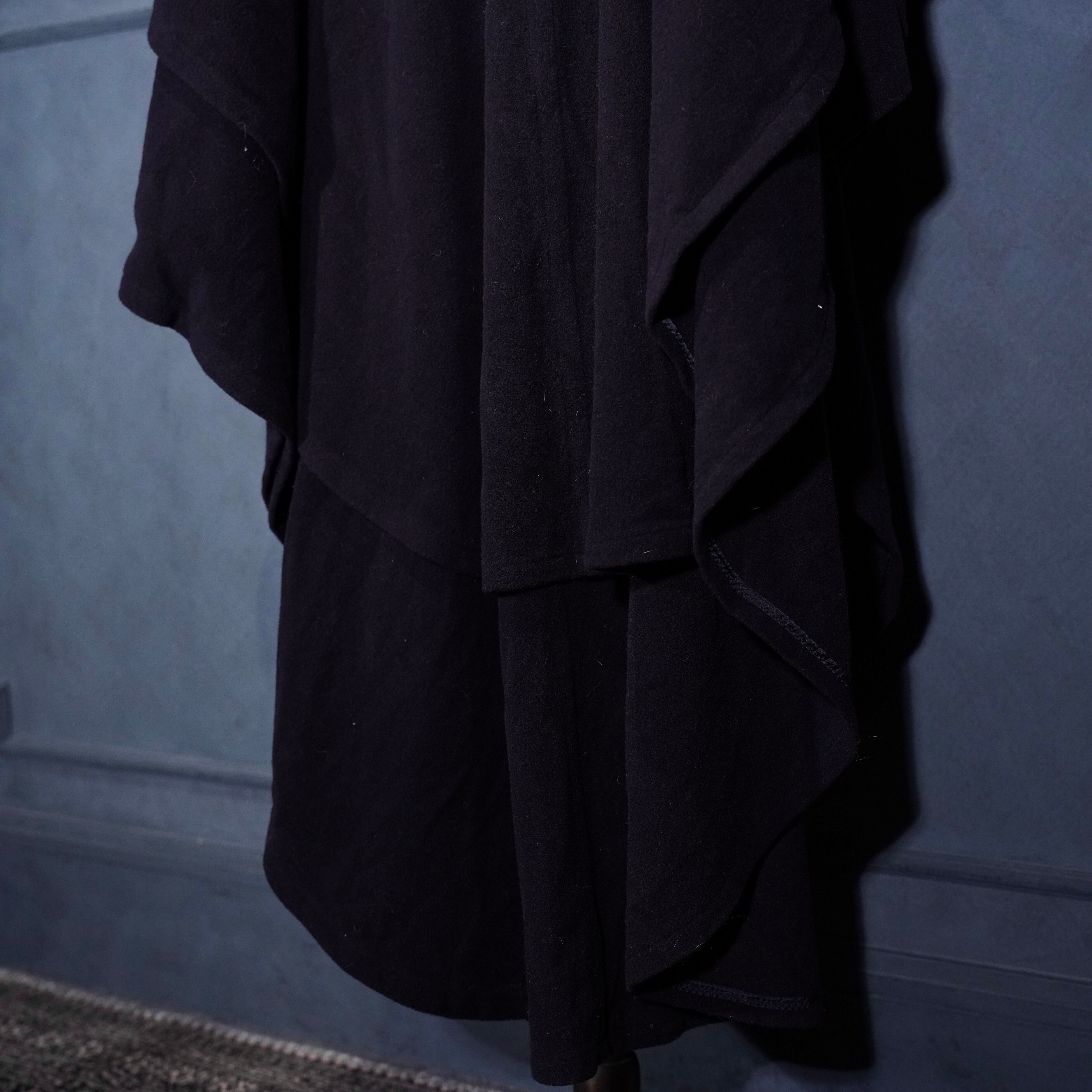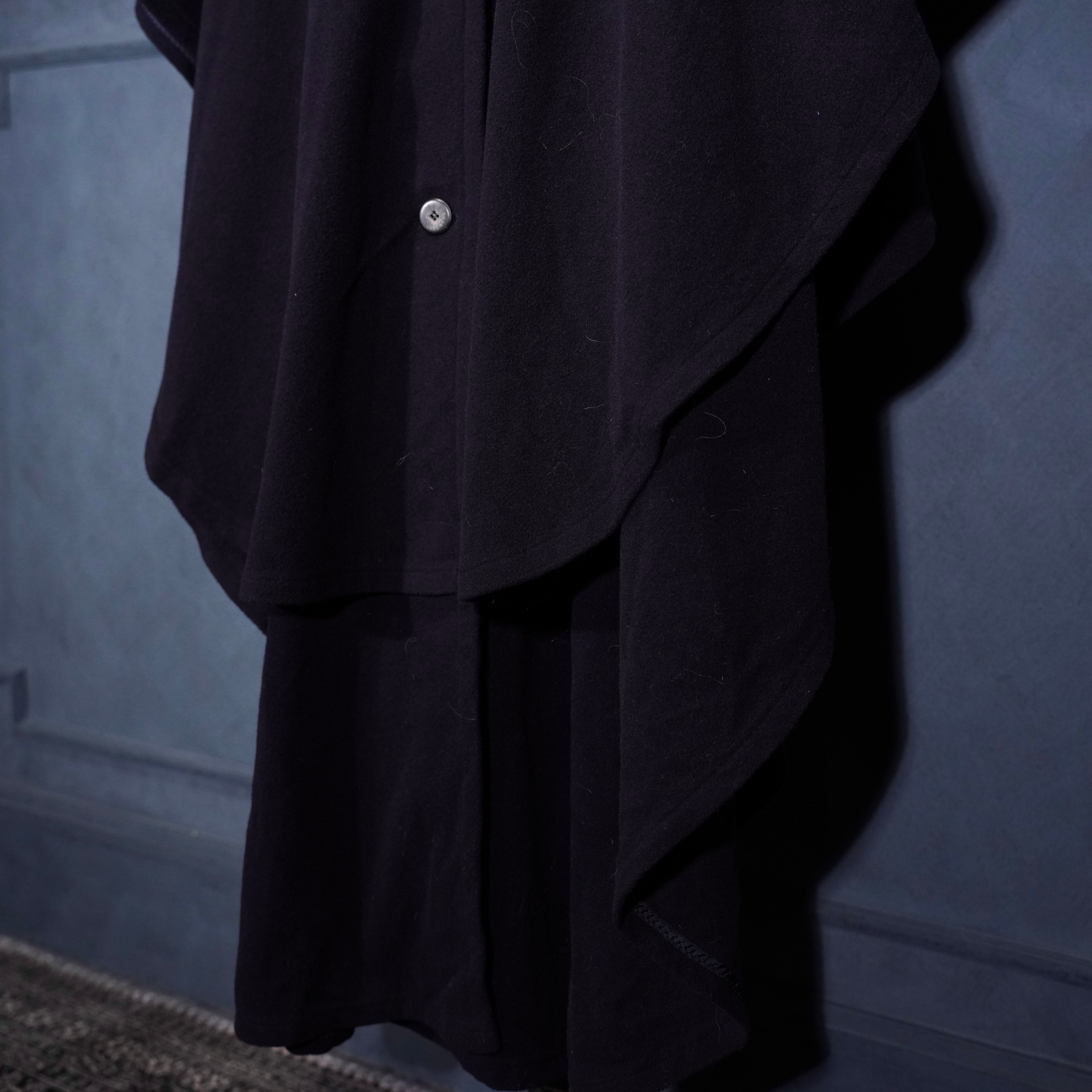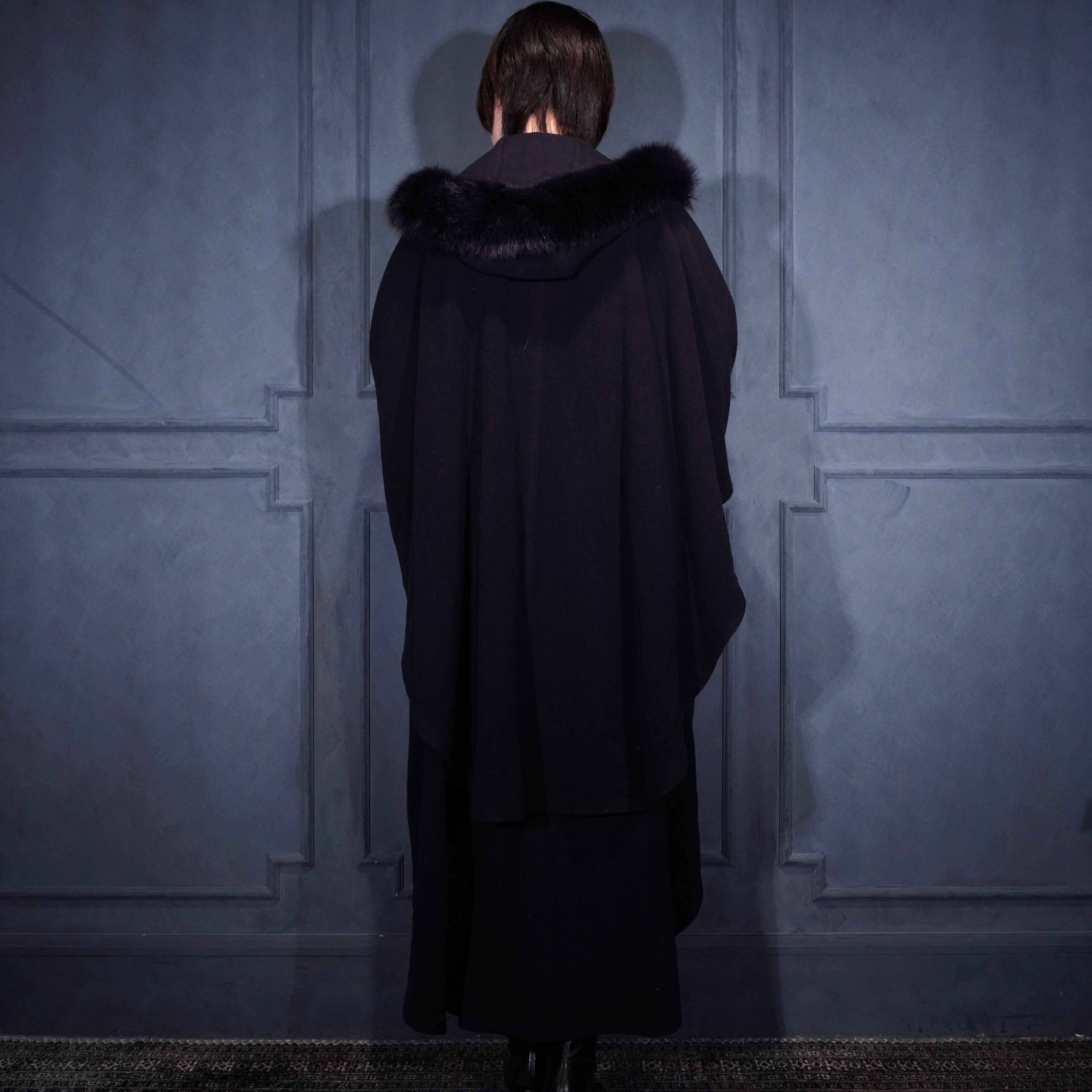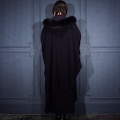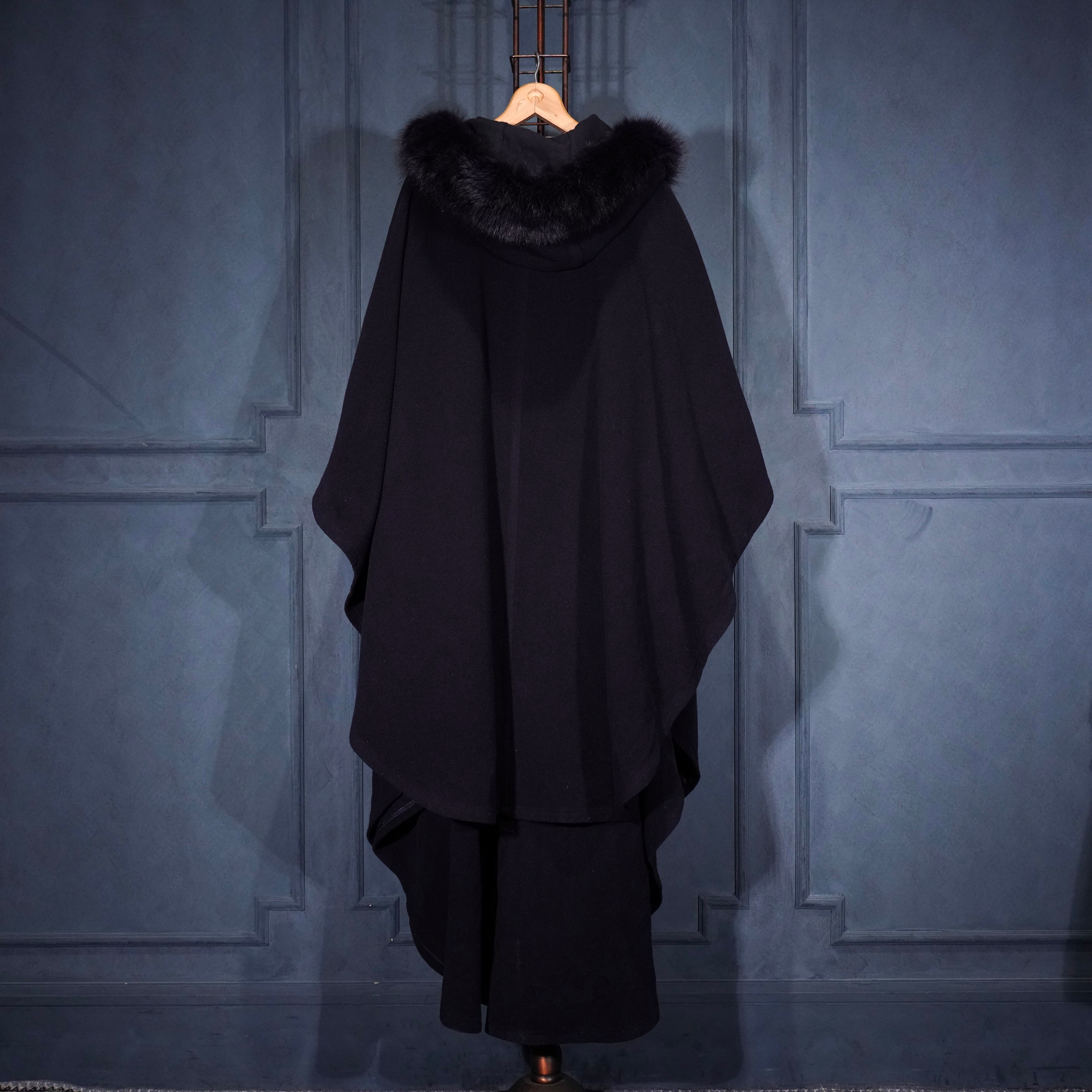 *SPECIAL ITEM* EU VINTAGE LODEN Frey FUR HOODIE LAYARD DESIGN CASHMERE BREND WOOL CAPE COAT/ヨーロッパ古着ファーフーディレイヤードデザインカシミヤ混ウールケープコート(ポンチョ)