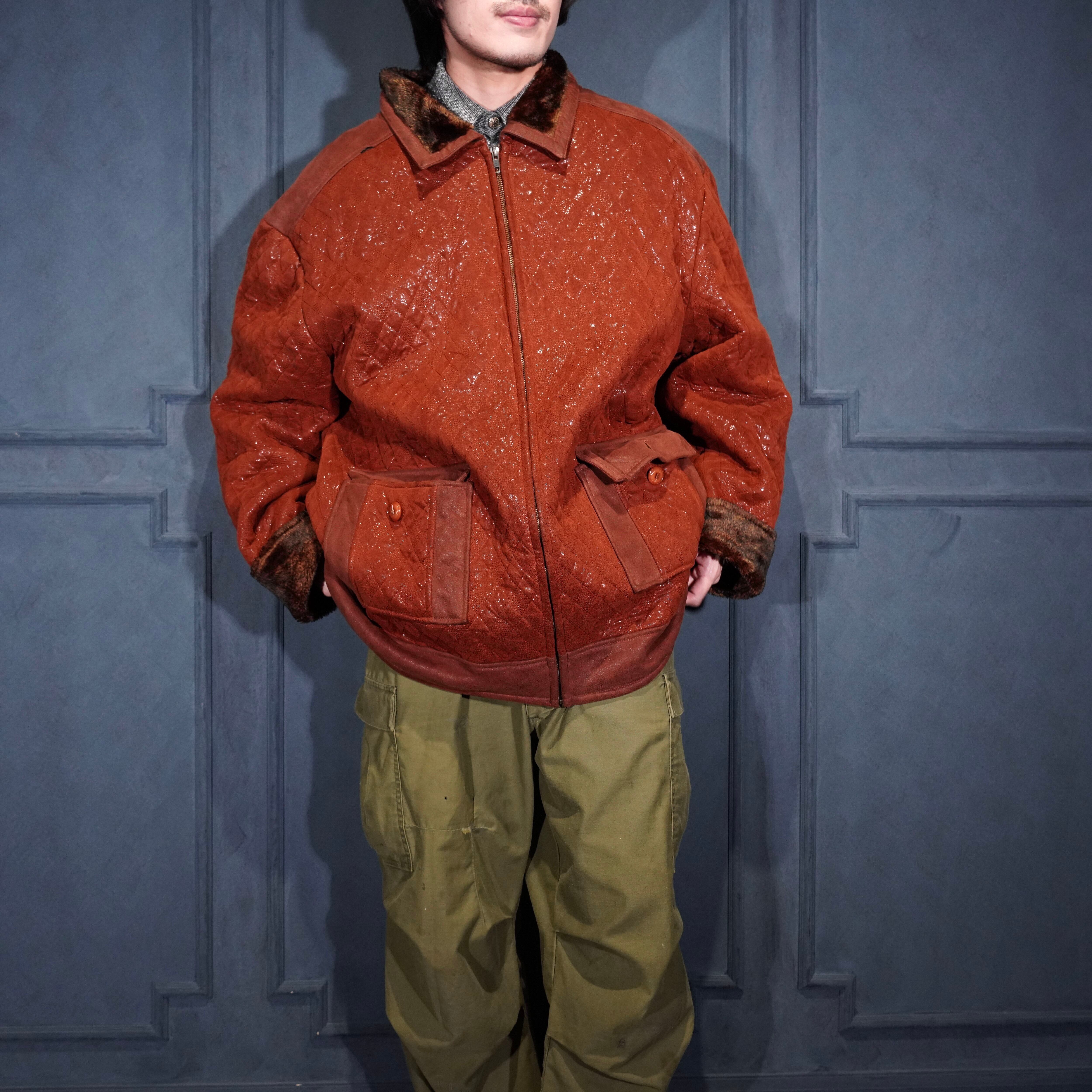 USA VINTAGE ROYAL Prestige QUILTING LEATHER ZIP UP BLOUSON/アメリカ古着キルティングレザージップアップブルゾン