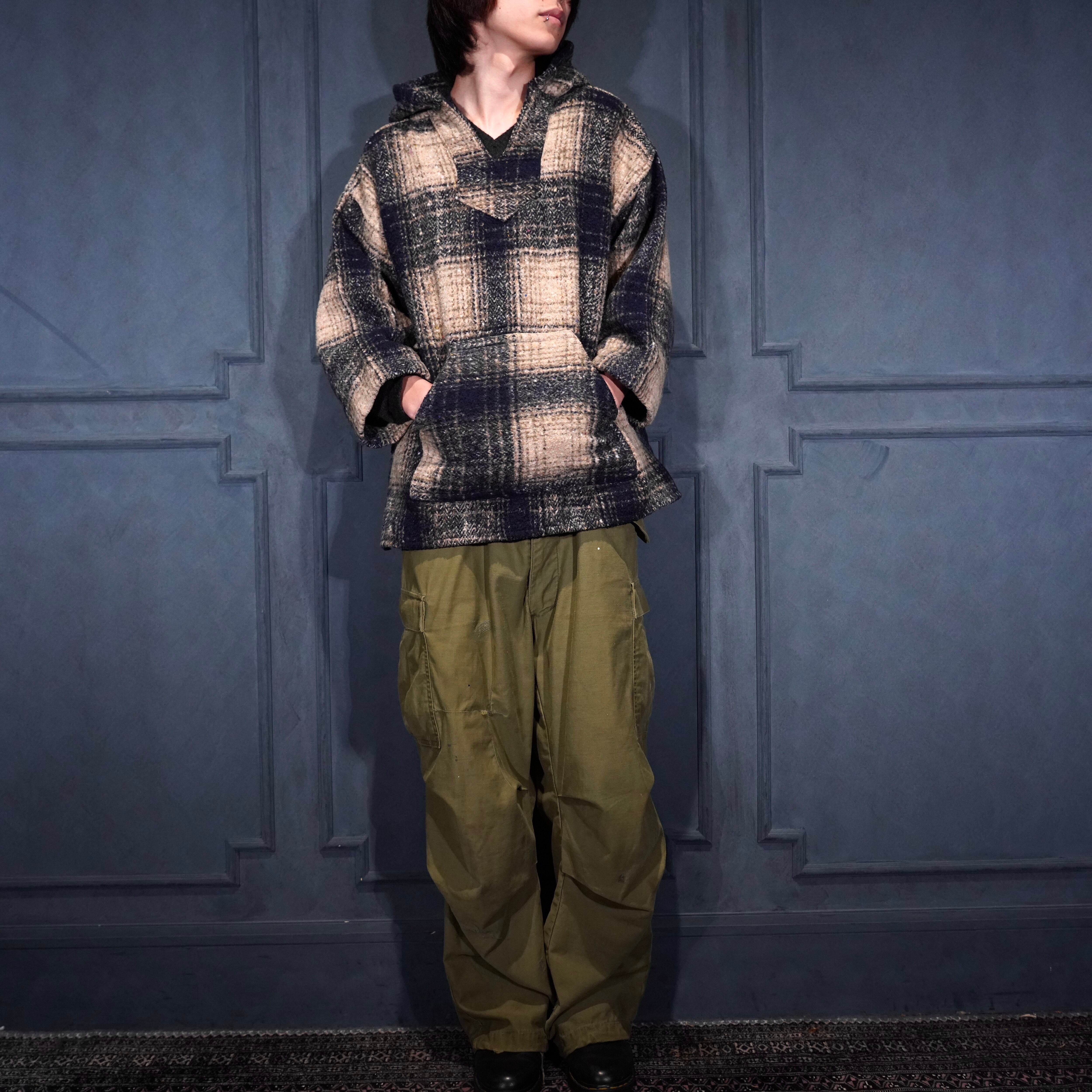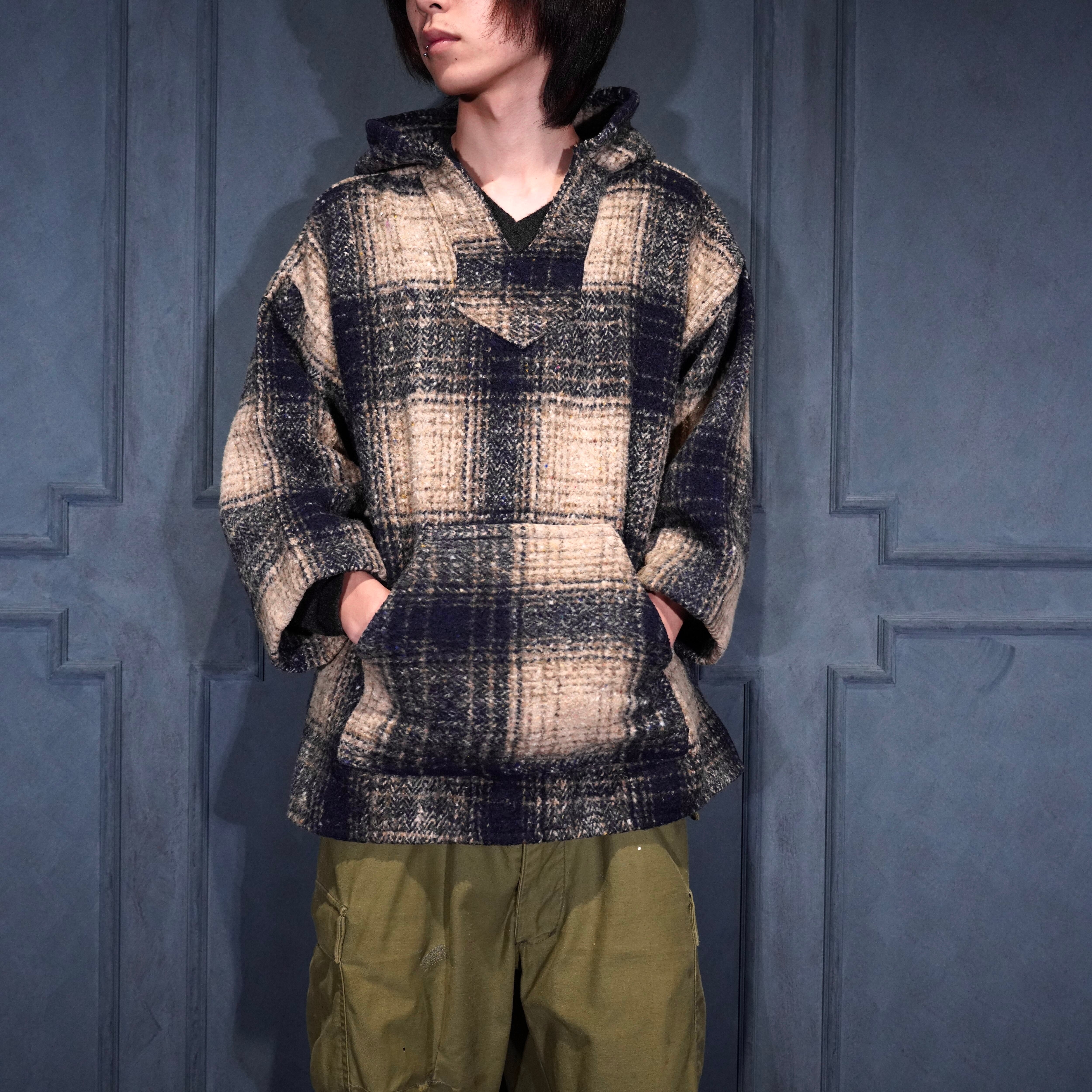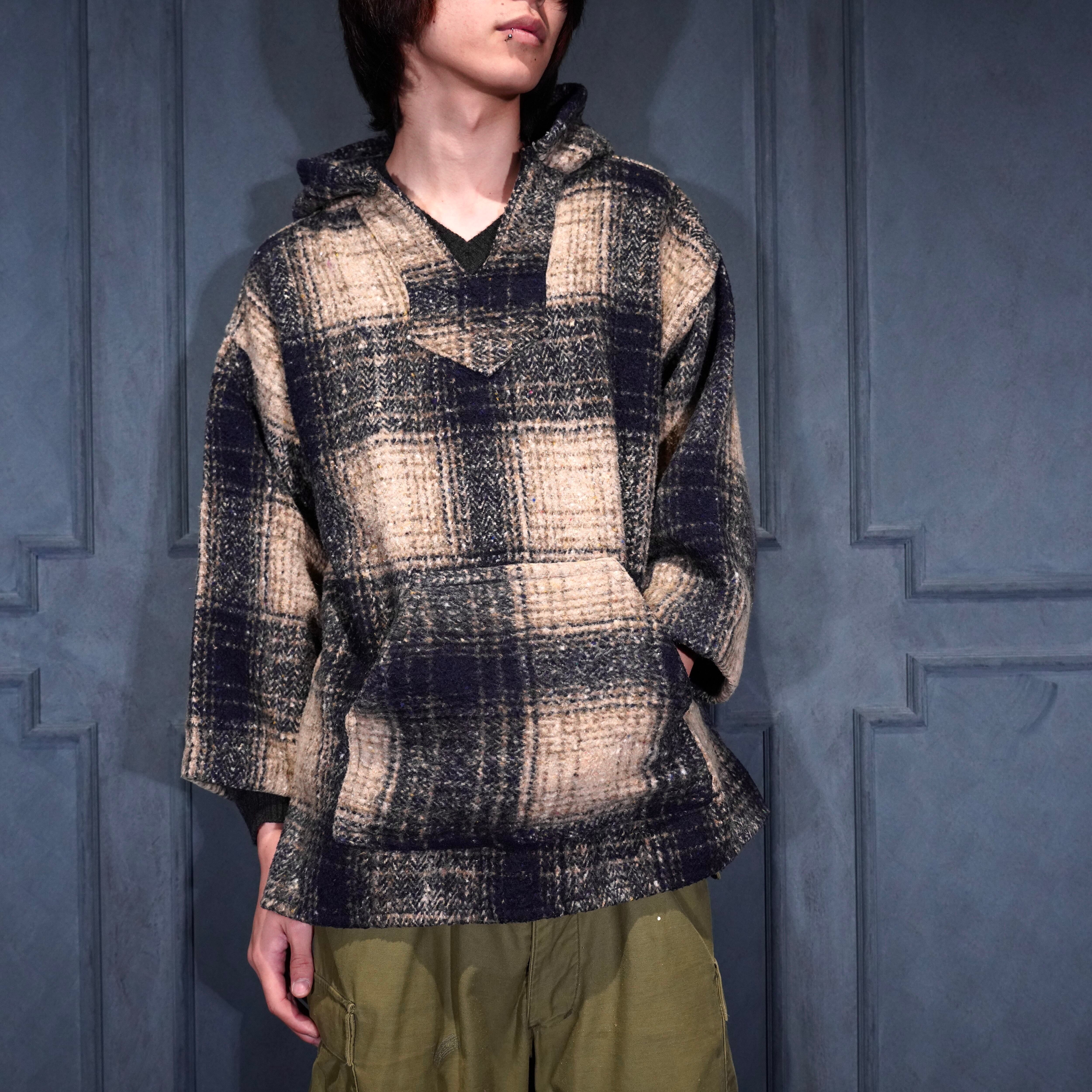 USA VINTAGE EARTH RAGZ OMBRE CHECK PATTERNED WOOL PULL OVER HOODIE/アメリカ古着オンブレチェック柄ウールプルオーバーフーディ(パーカー)