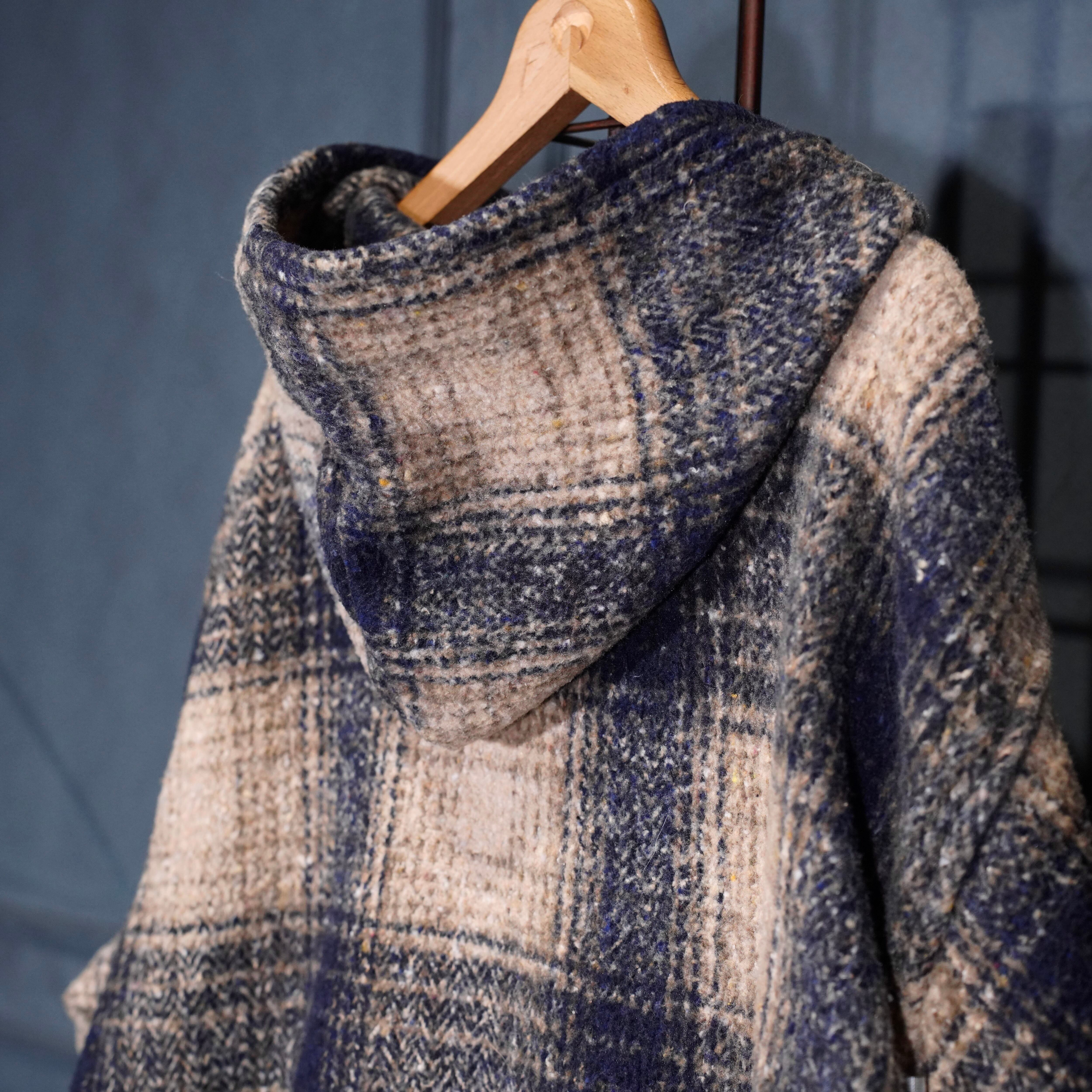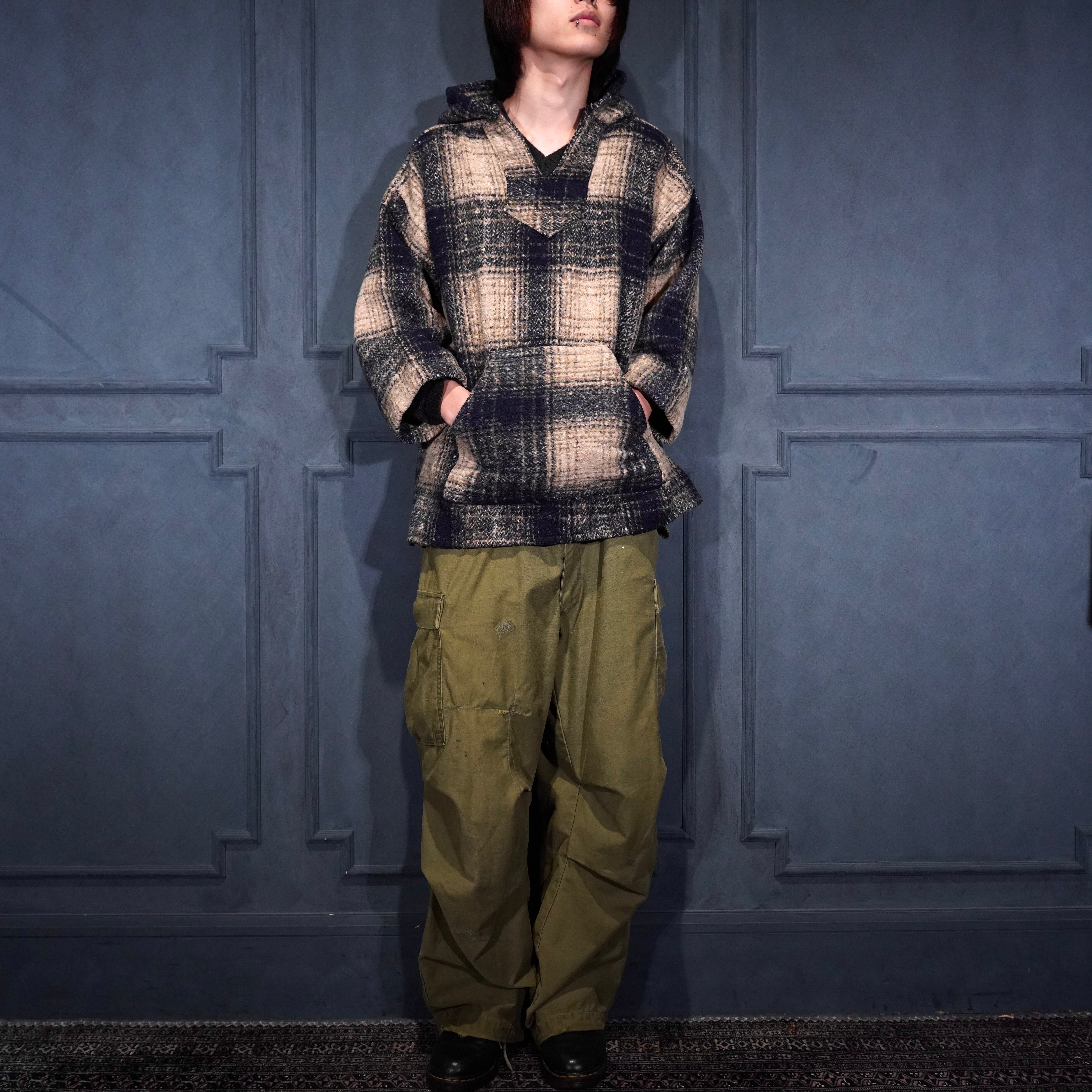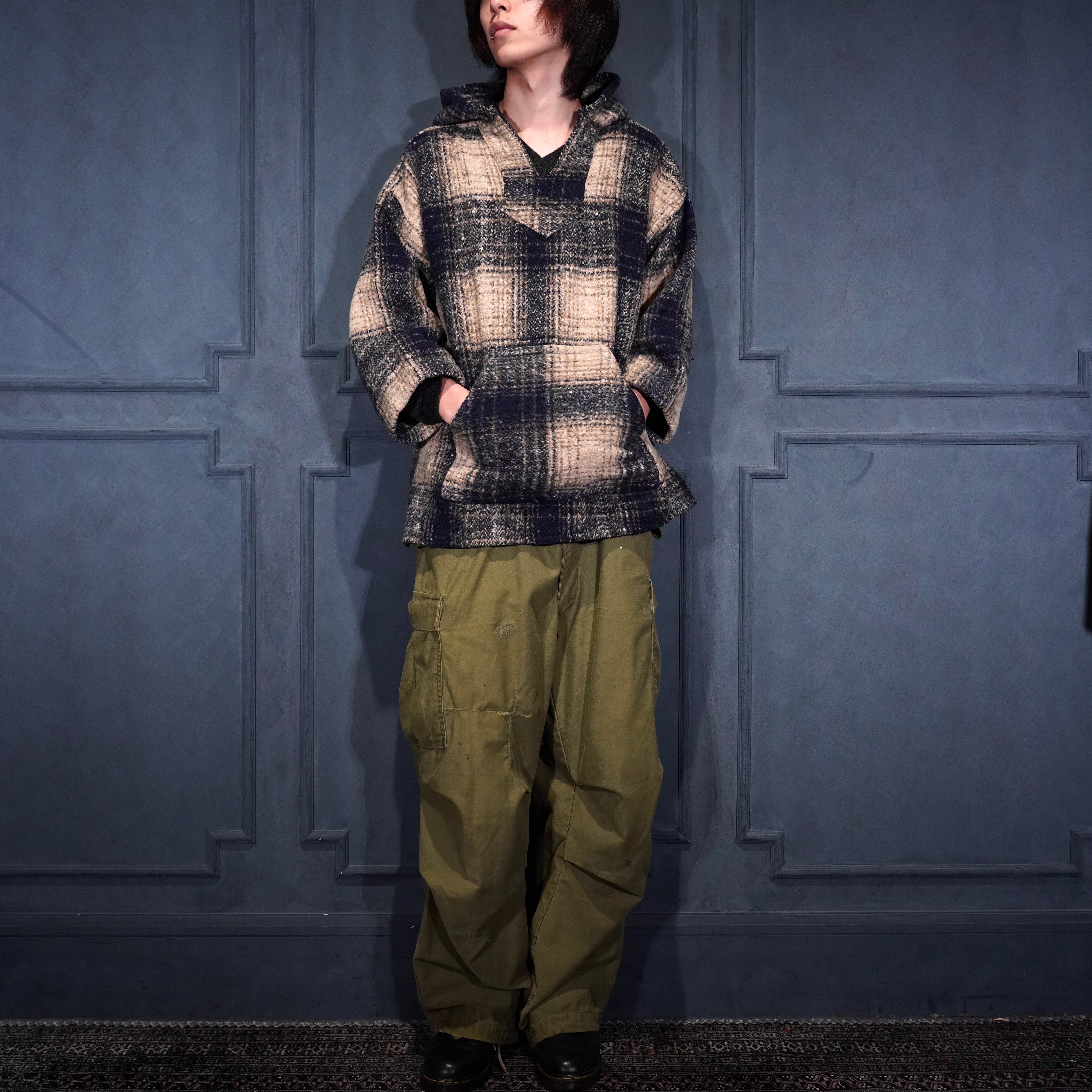 USA VINTAGE EARTH RAGZ OMBRE CHECK PATTERNED WOOL PULL OVER HOODIE/アメリカ古着オンブレチェック柄ウールプルオーバーフーディ(パーカー)