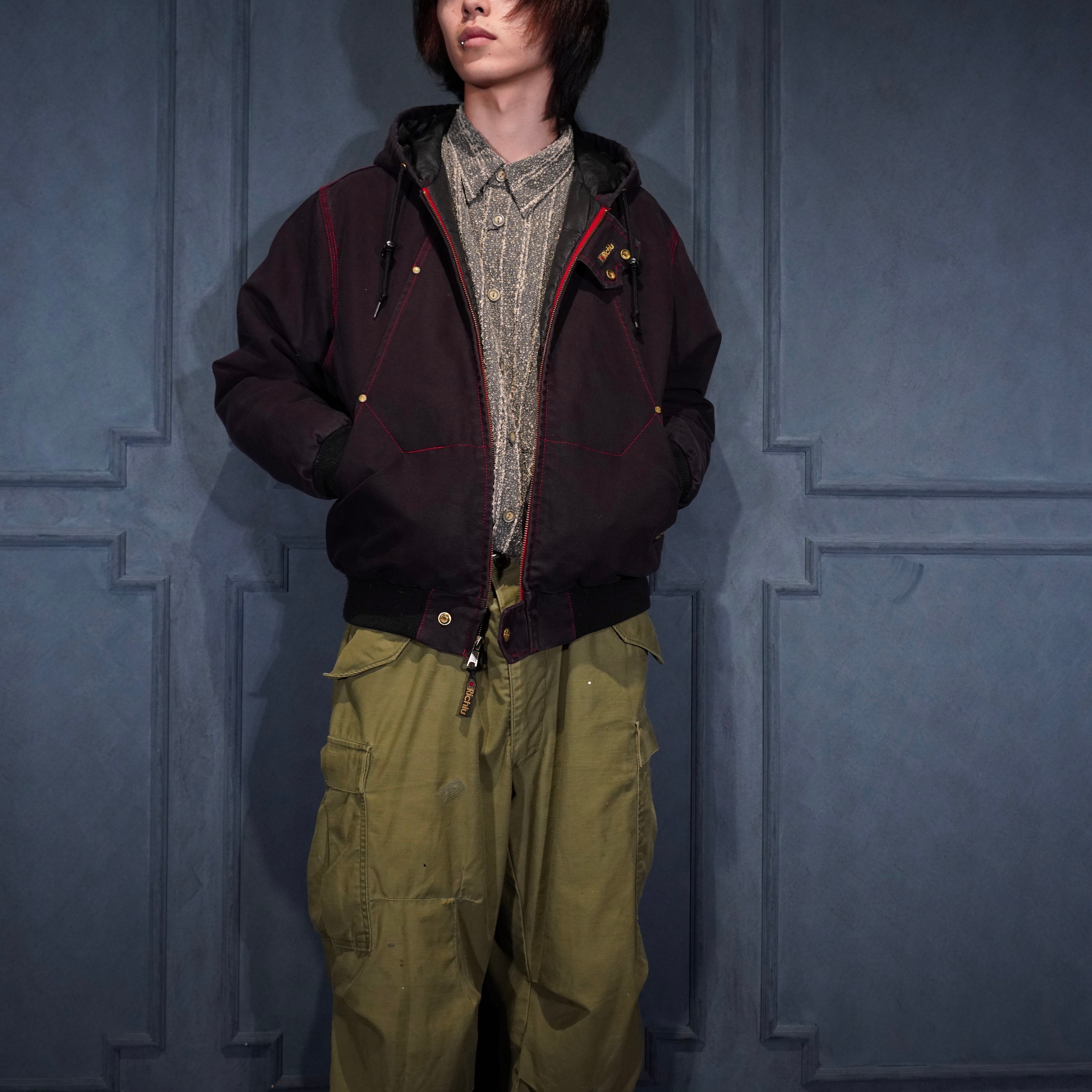 USA VINTAGE Richlu STITCH DESIGN ZIP UP HOODIE DOWN DUCK BLOUSON MADE IN CANADA/アメリカ古着ステッチデザインジップアップフーディダウンダックブルゾン