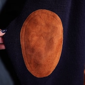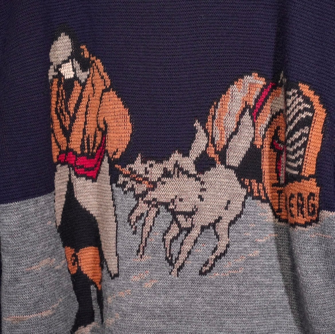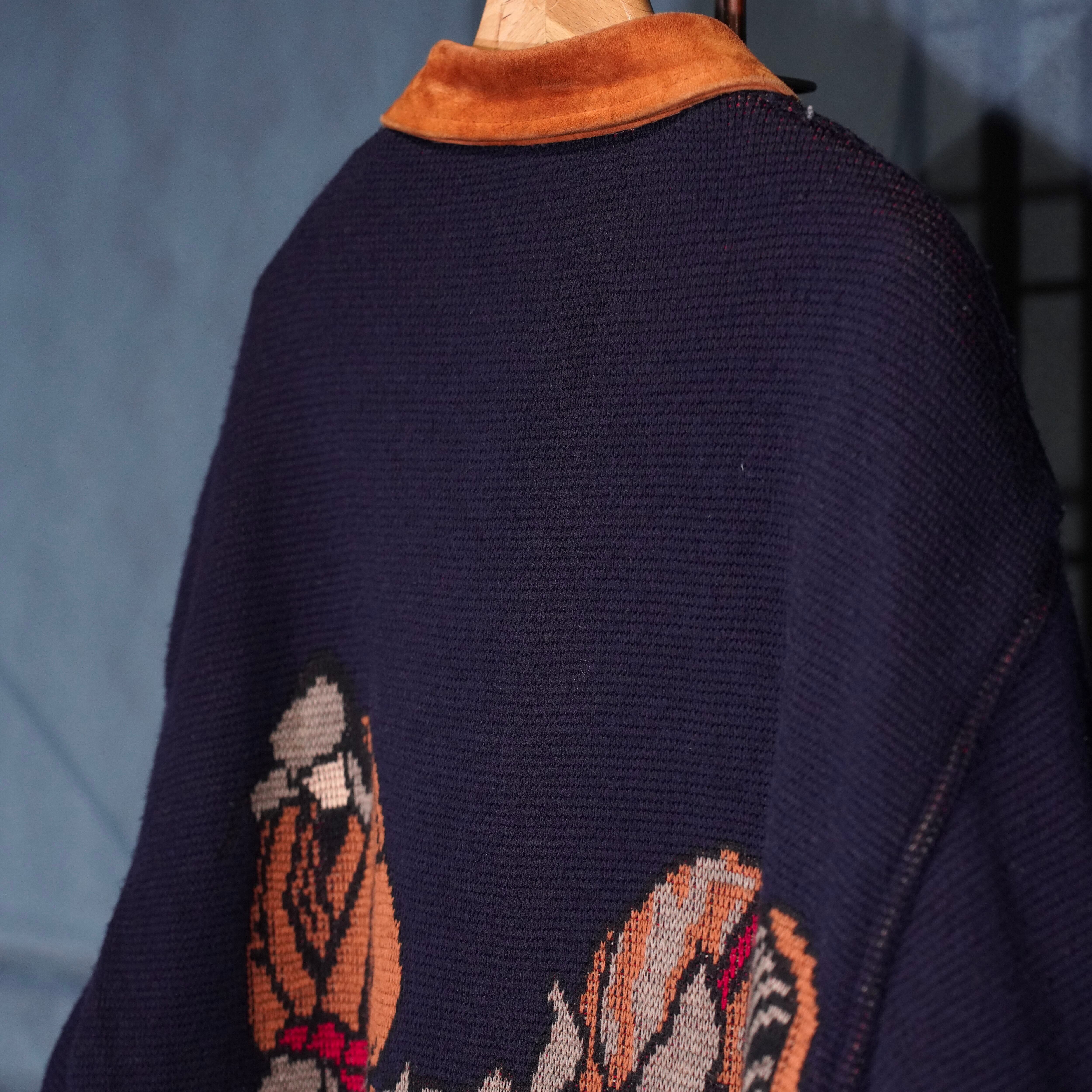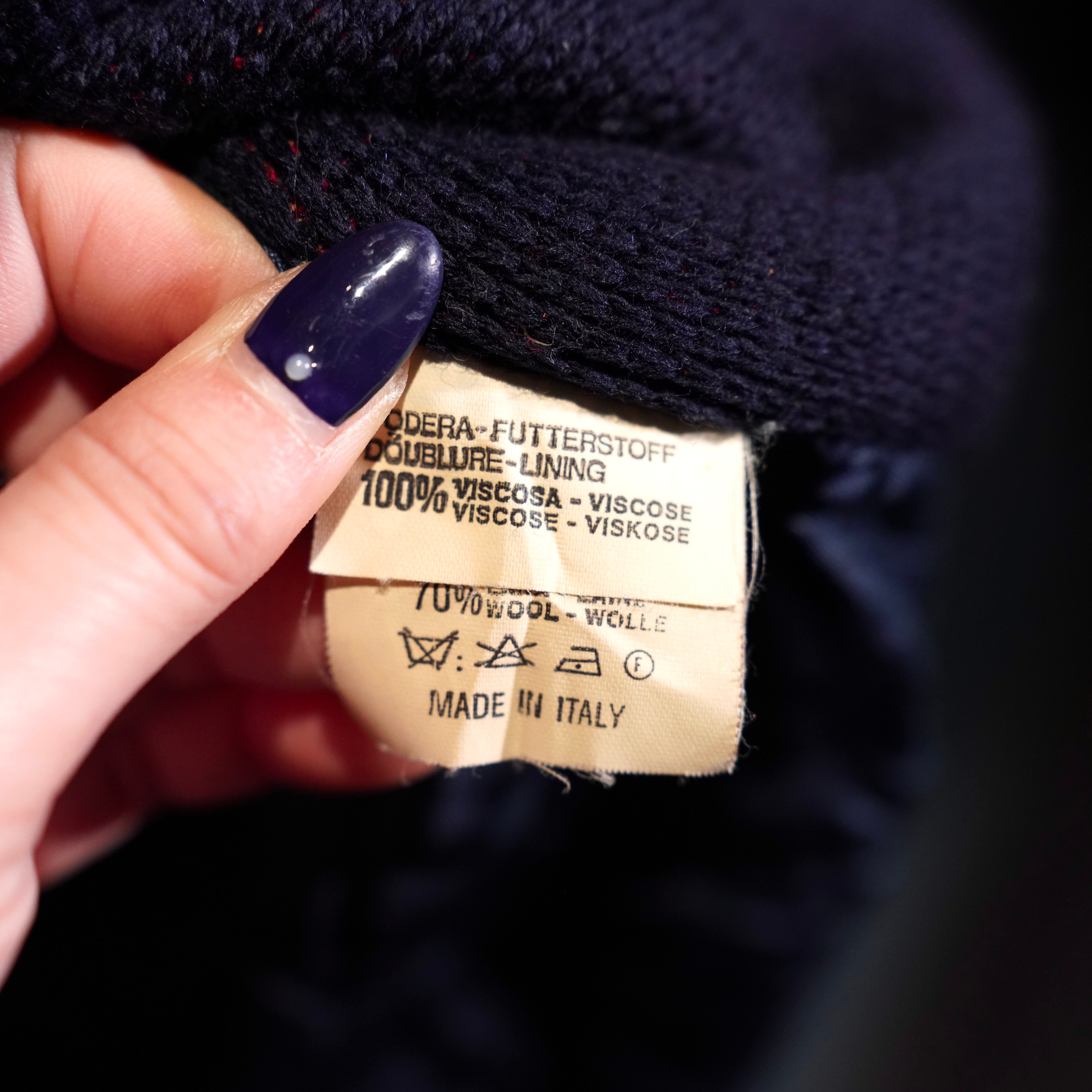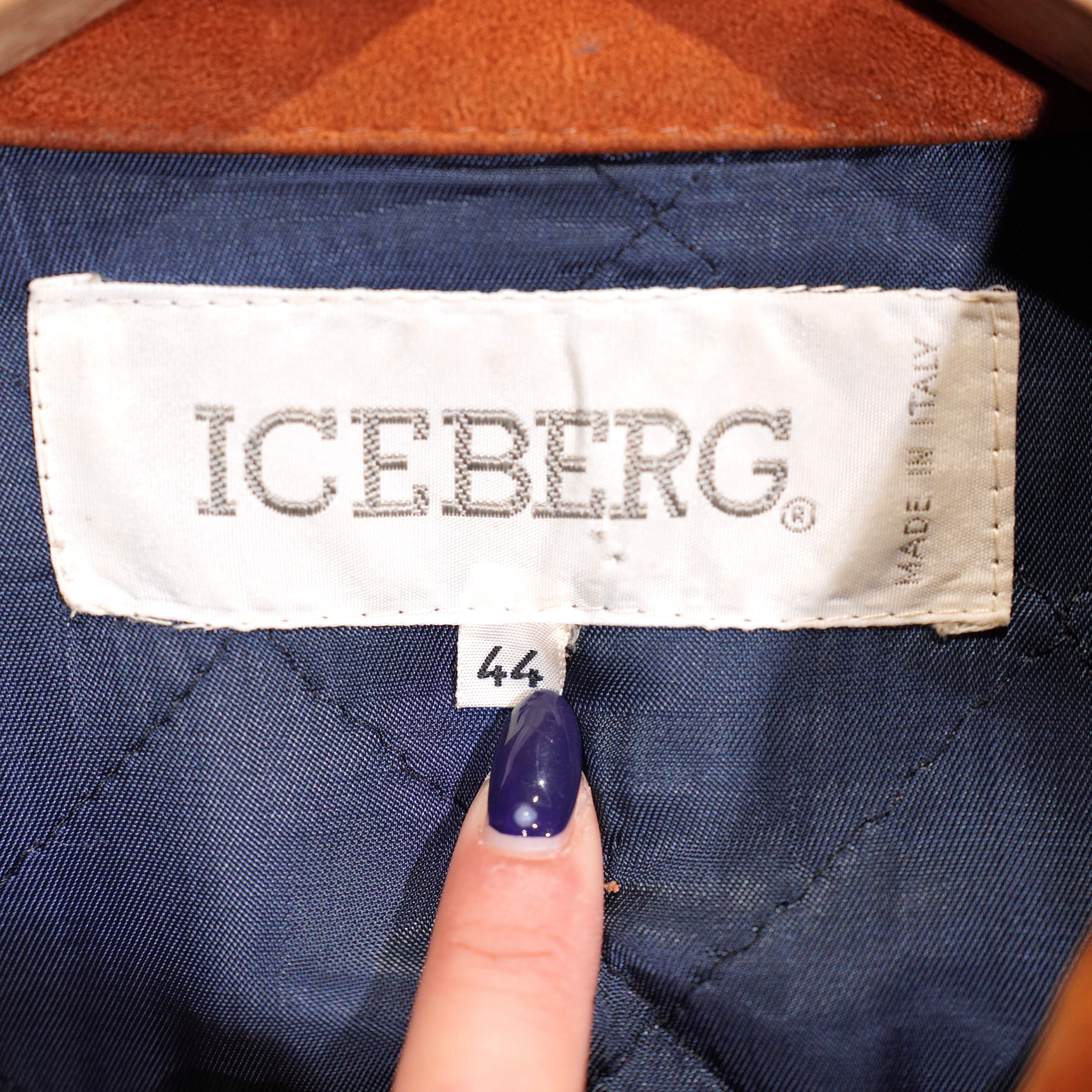 EU VINTAGE ICEBERG WOLF EMBROIDERY KNIT SWITCHED DESIGN LEATHER JACKET MADE IN ITALY/ヨーロッパ古着アイスバーグオオカミデザインニット切替レザージャケット