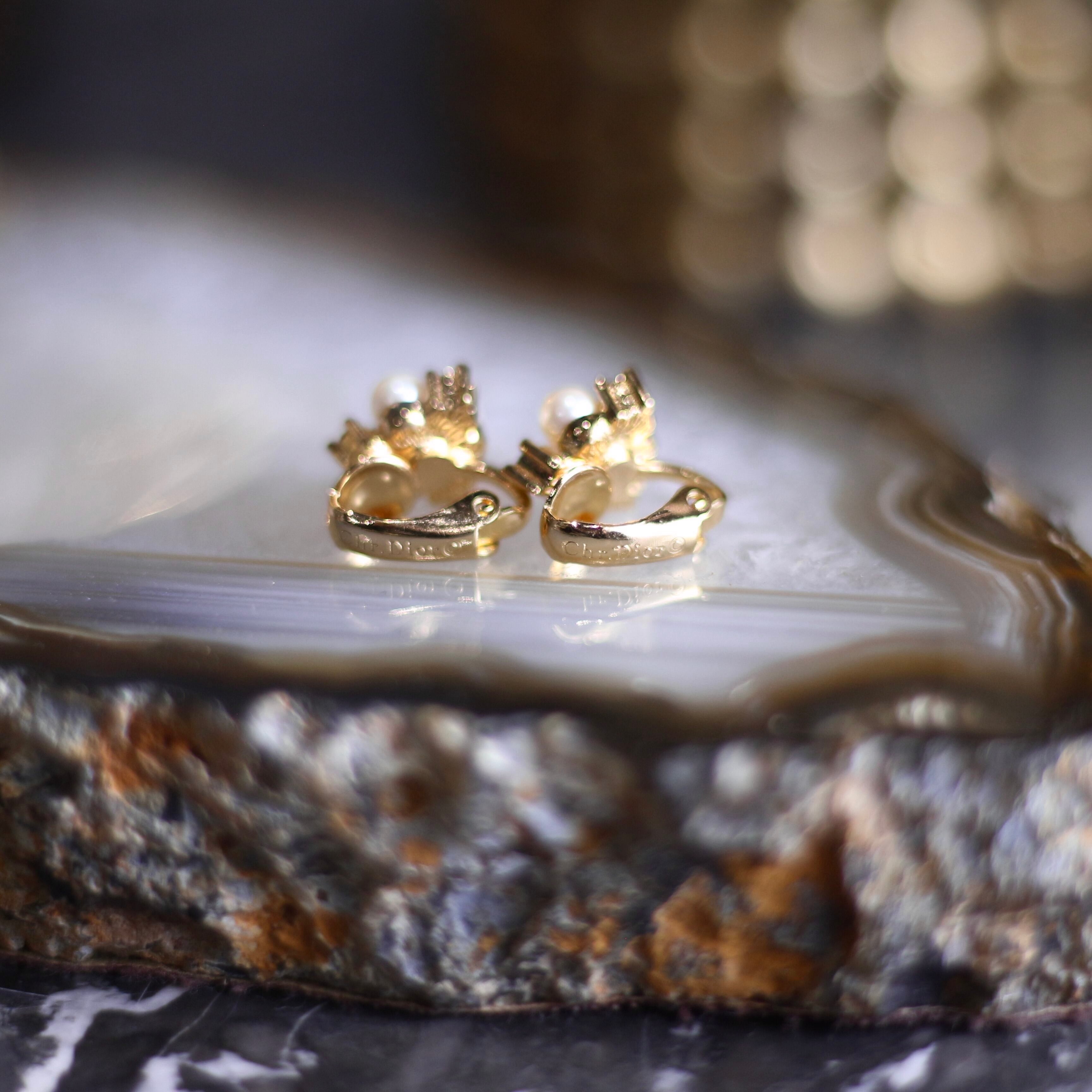 Christian Dior PEARL CLEAR STONE DESIGN EAR CLIPS/クリスチャンディオールパールクリアストーンデザインイヤリング