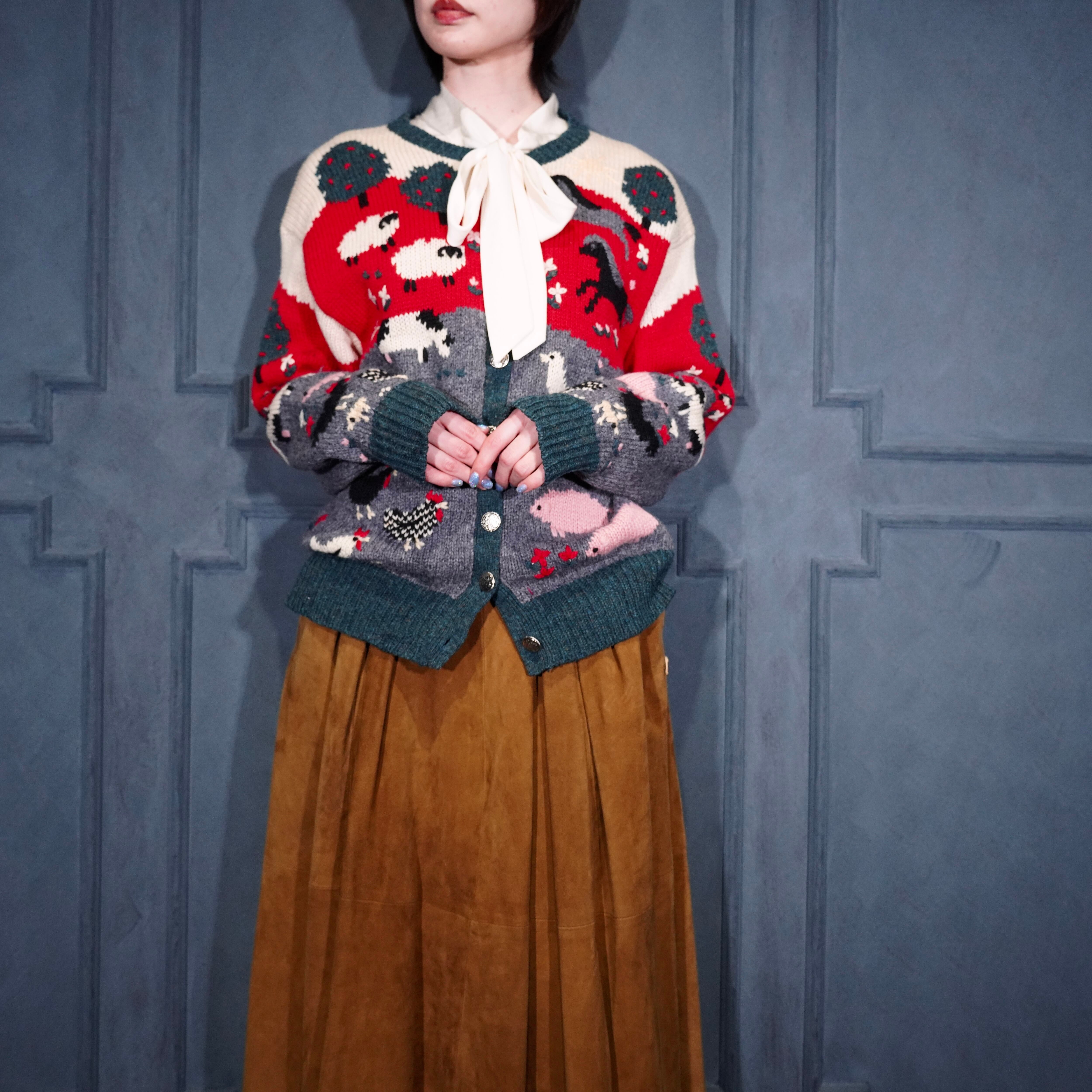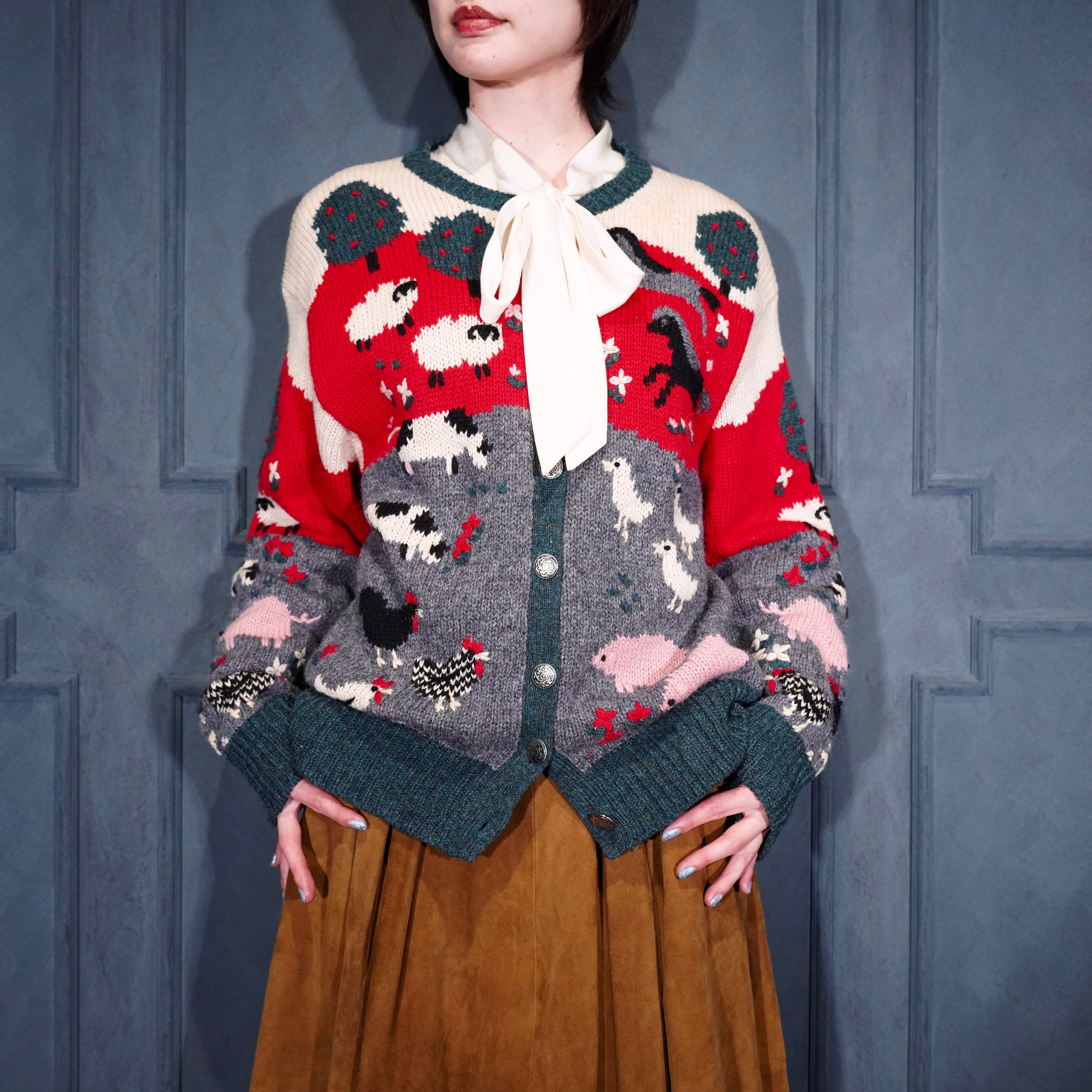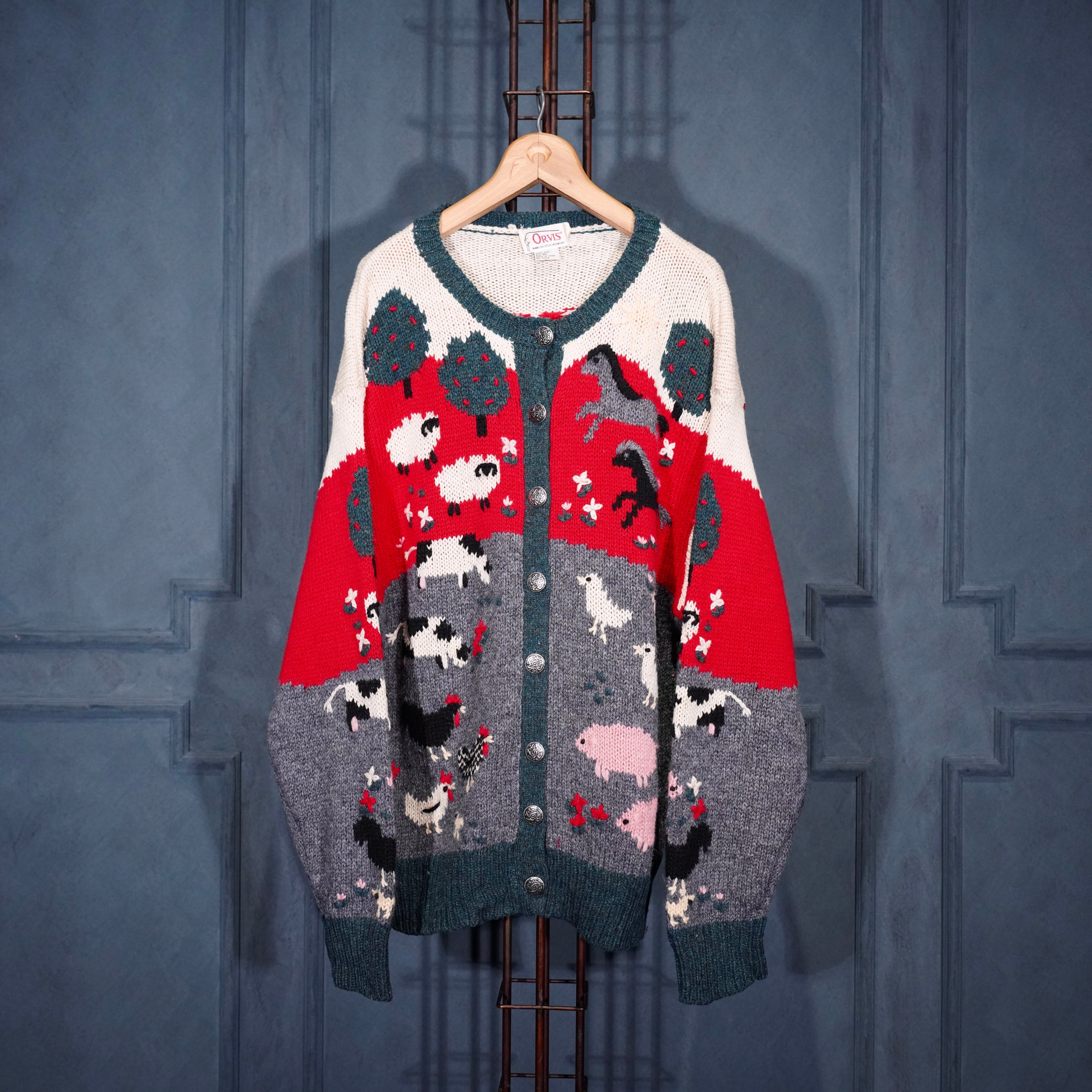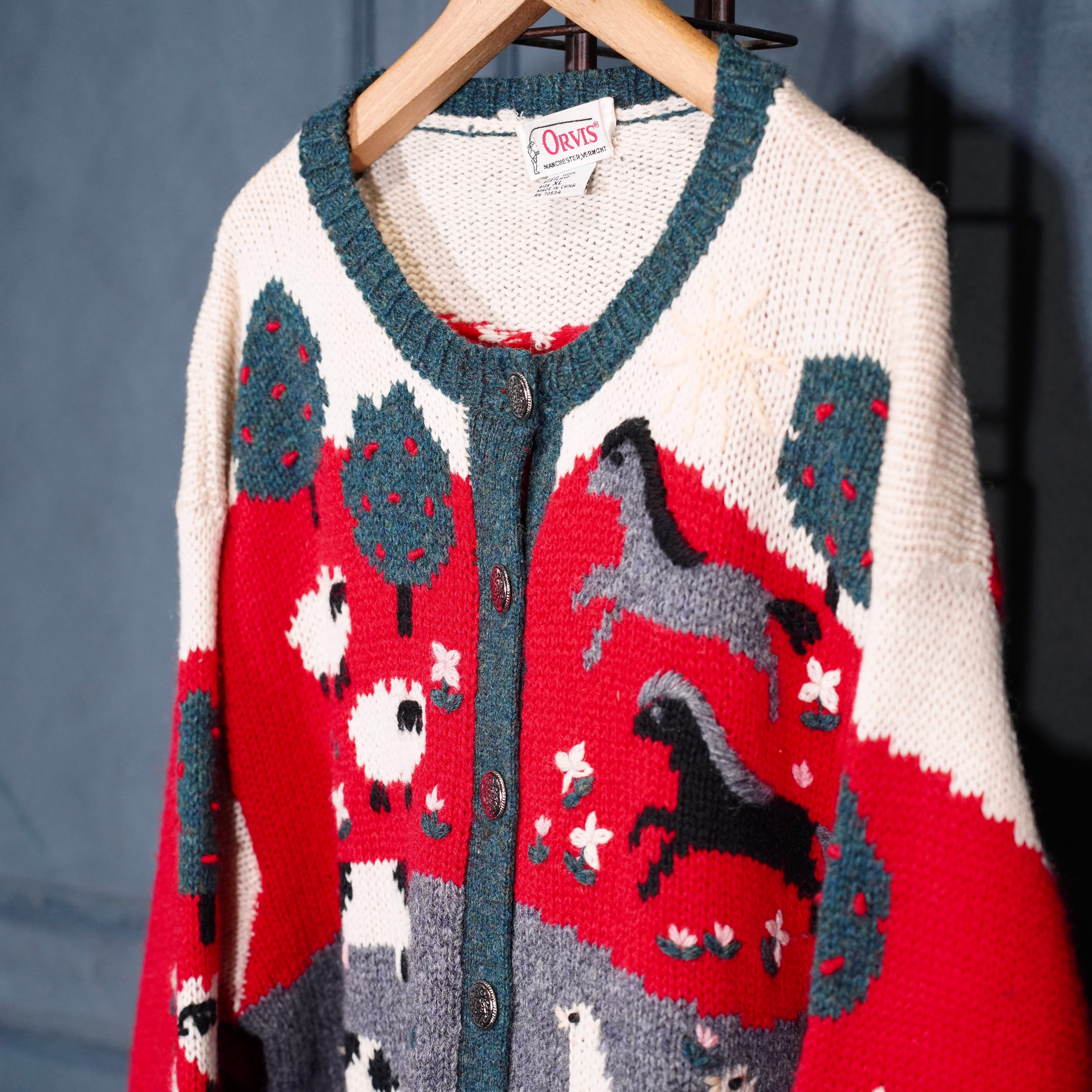 USA VINTAGE ORVIS COIN BUTTON ANIMAL DESIGN KNIT CARDIGAN/アメリカ古着コインボタンアニマルデザインニットカーディガン