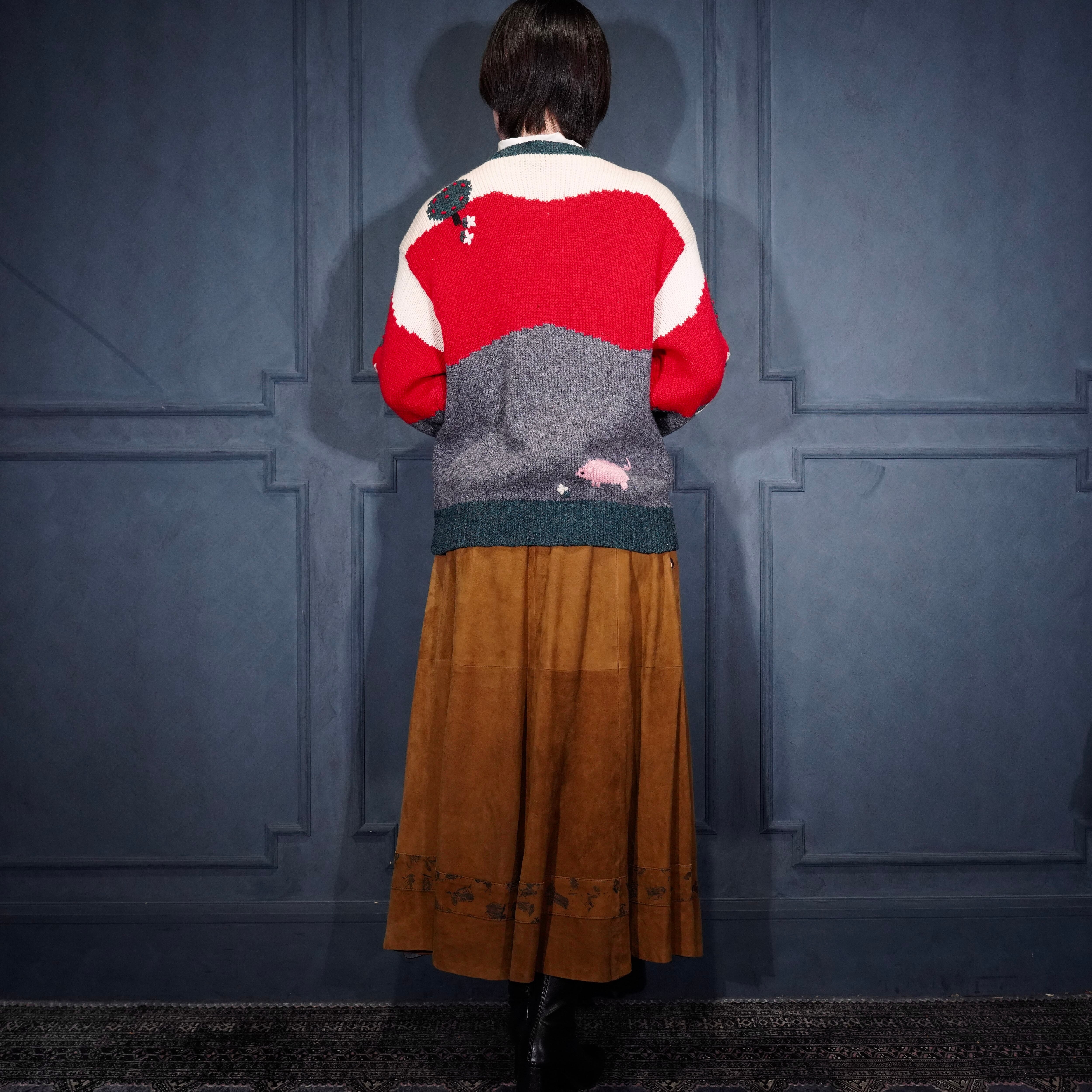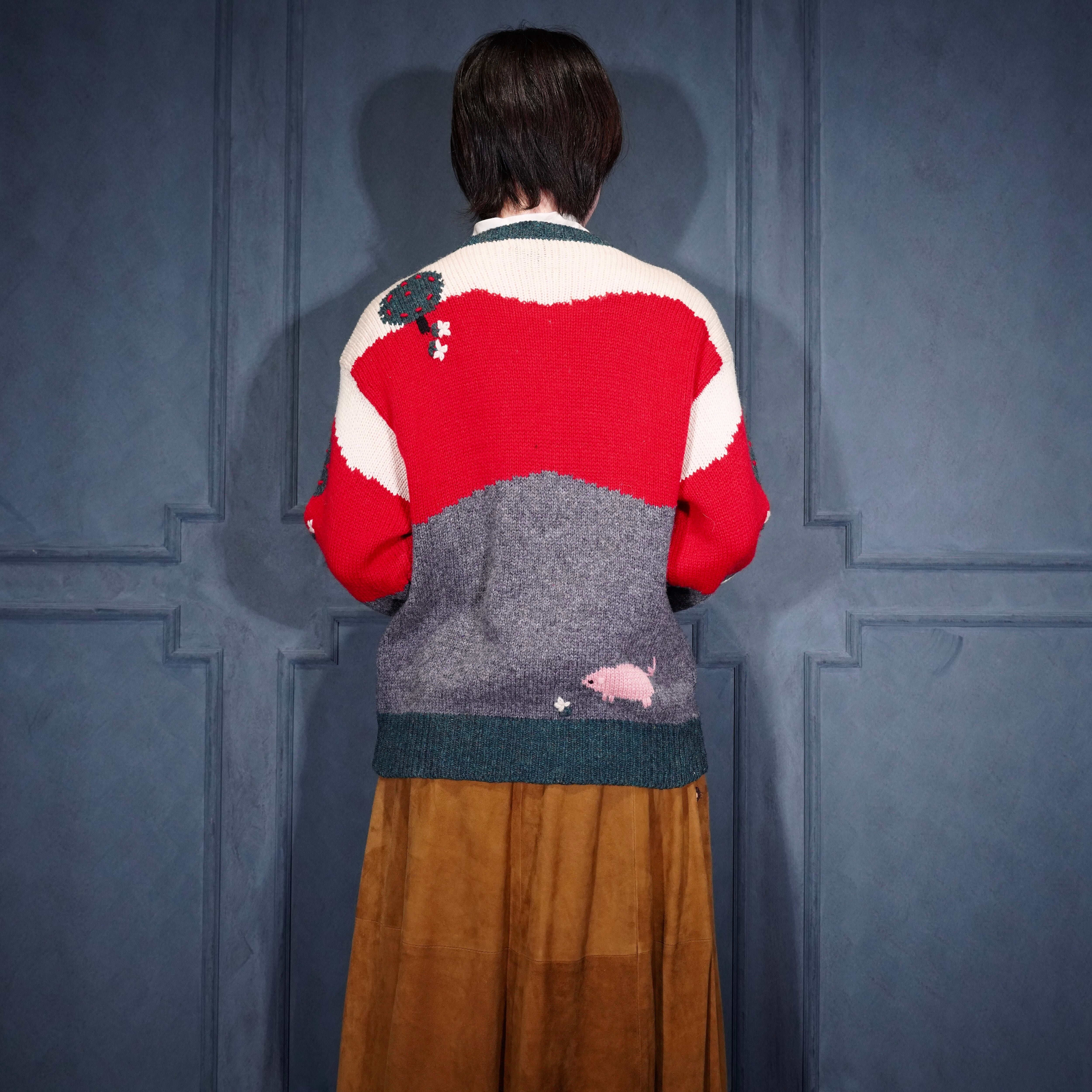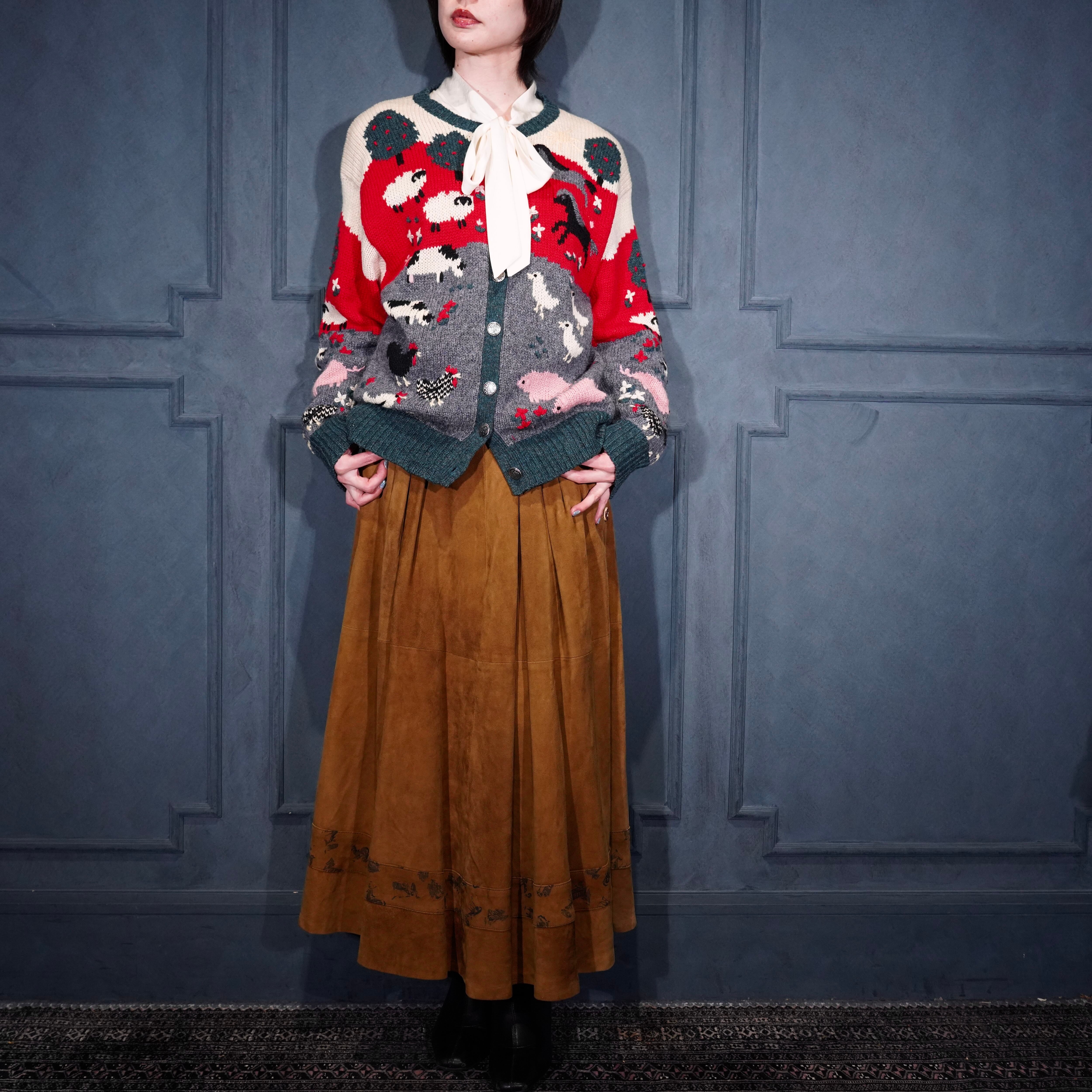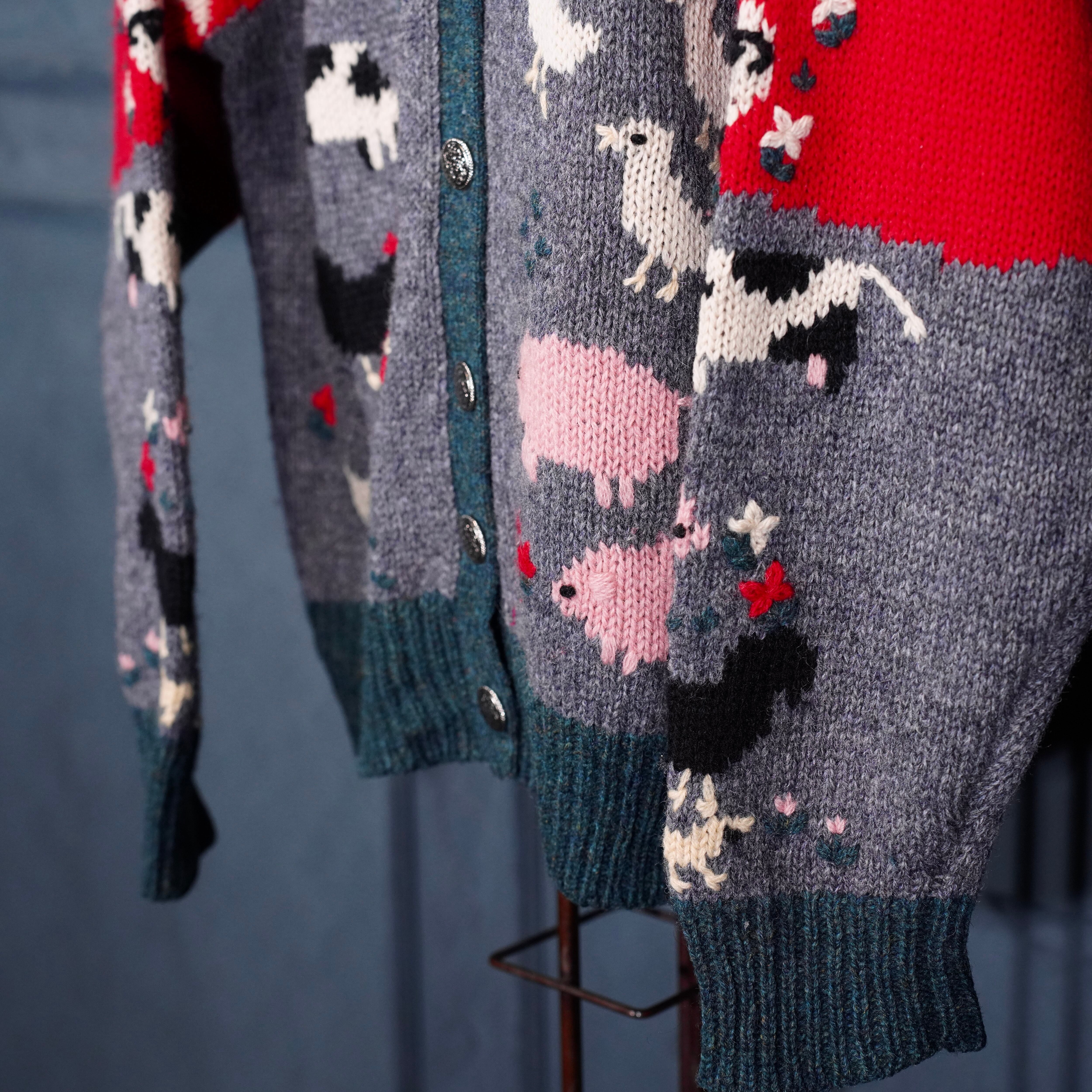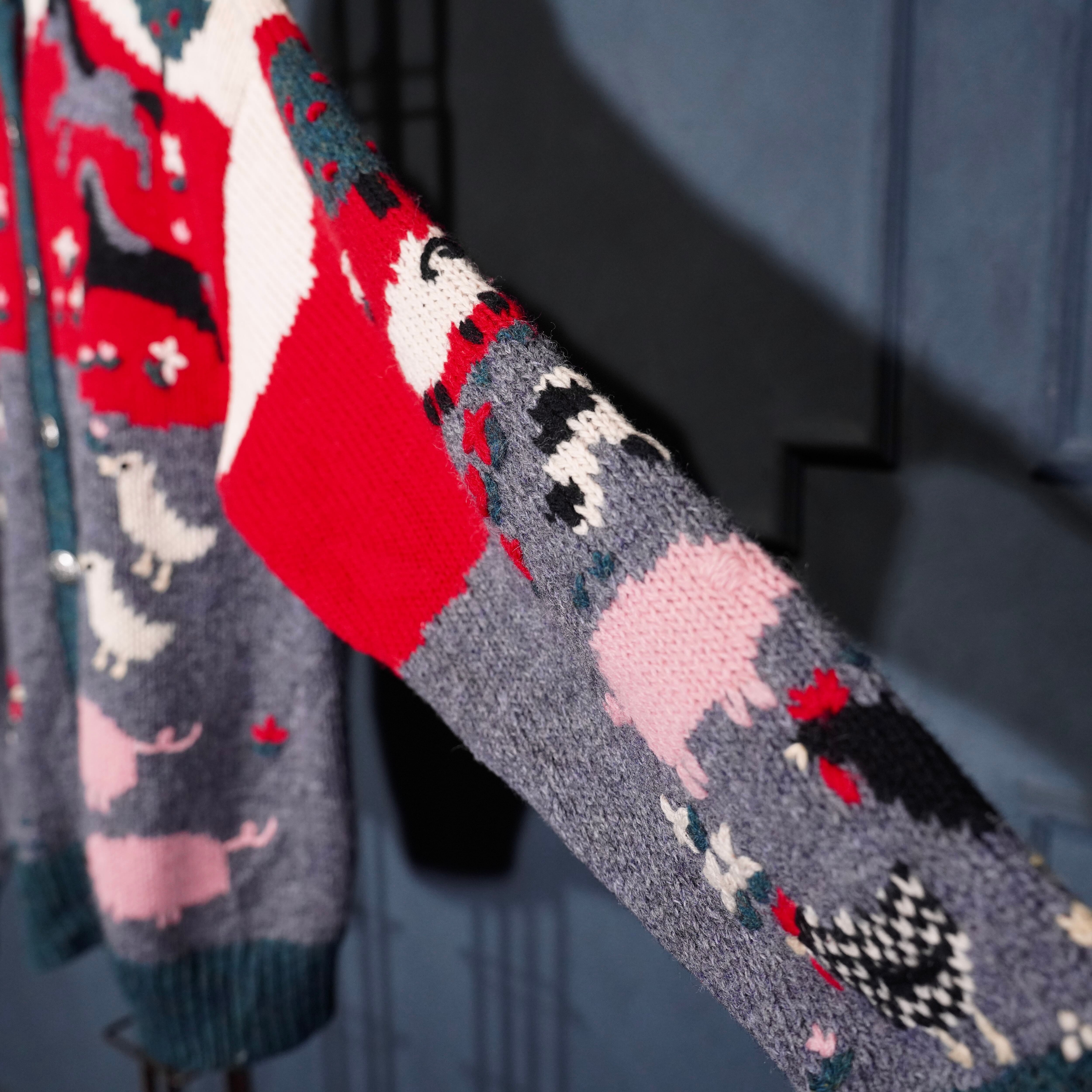 USA VINTAGE ORVIS COIN BUTTON ANIMAL DESIGN KNIT CARDIGAN/アメリカ古着コインボタンアニマルデザインニットカーディガン