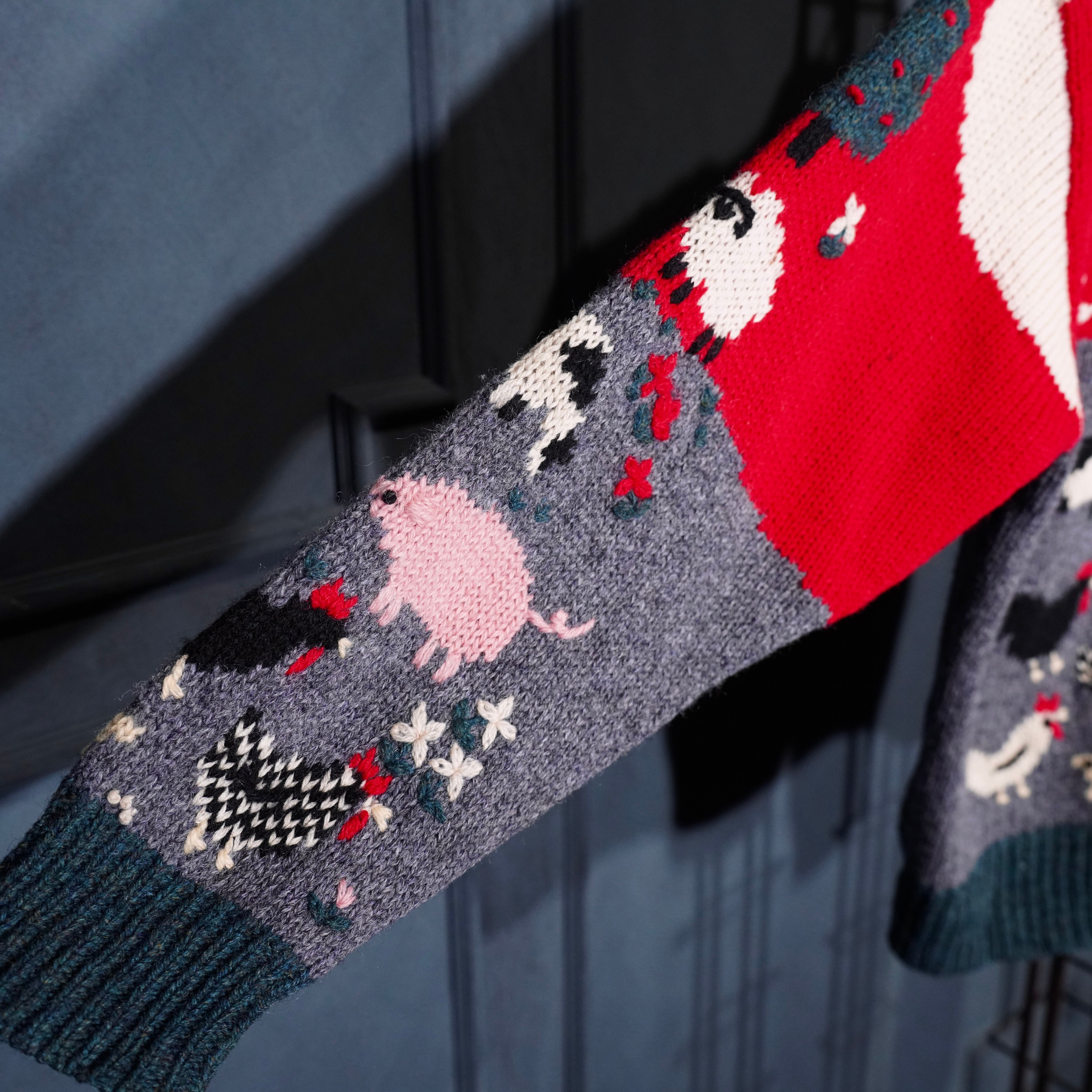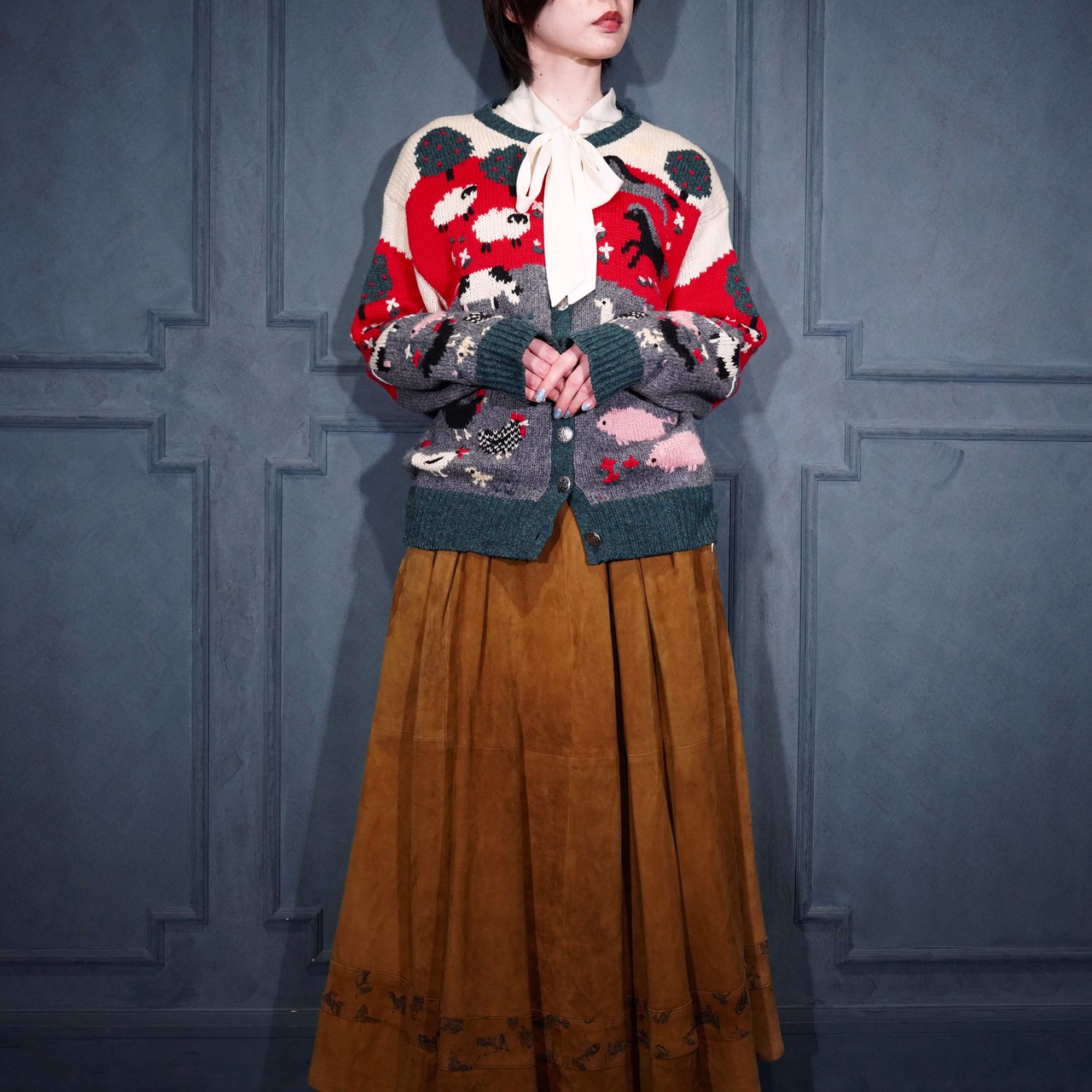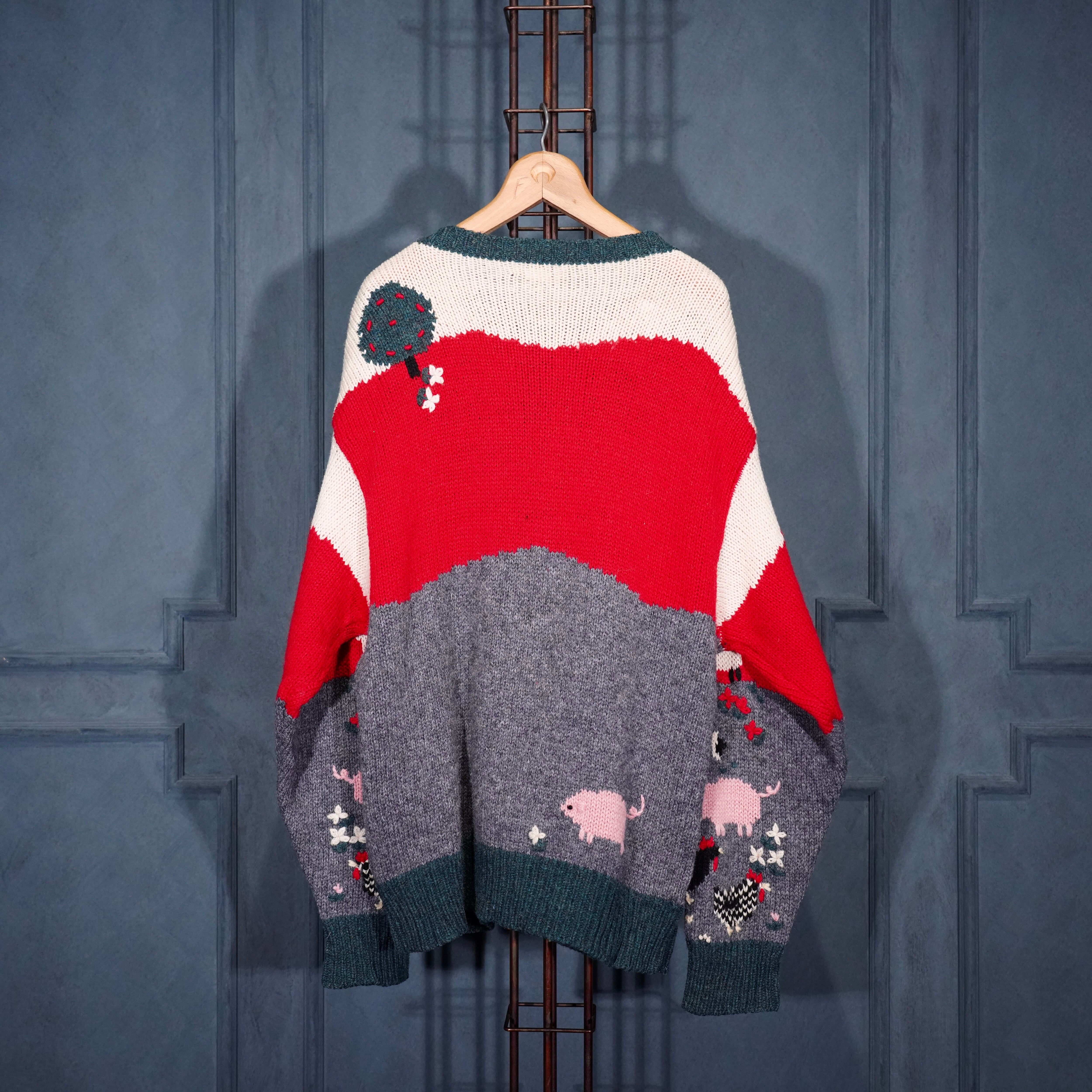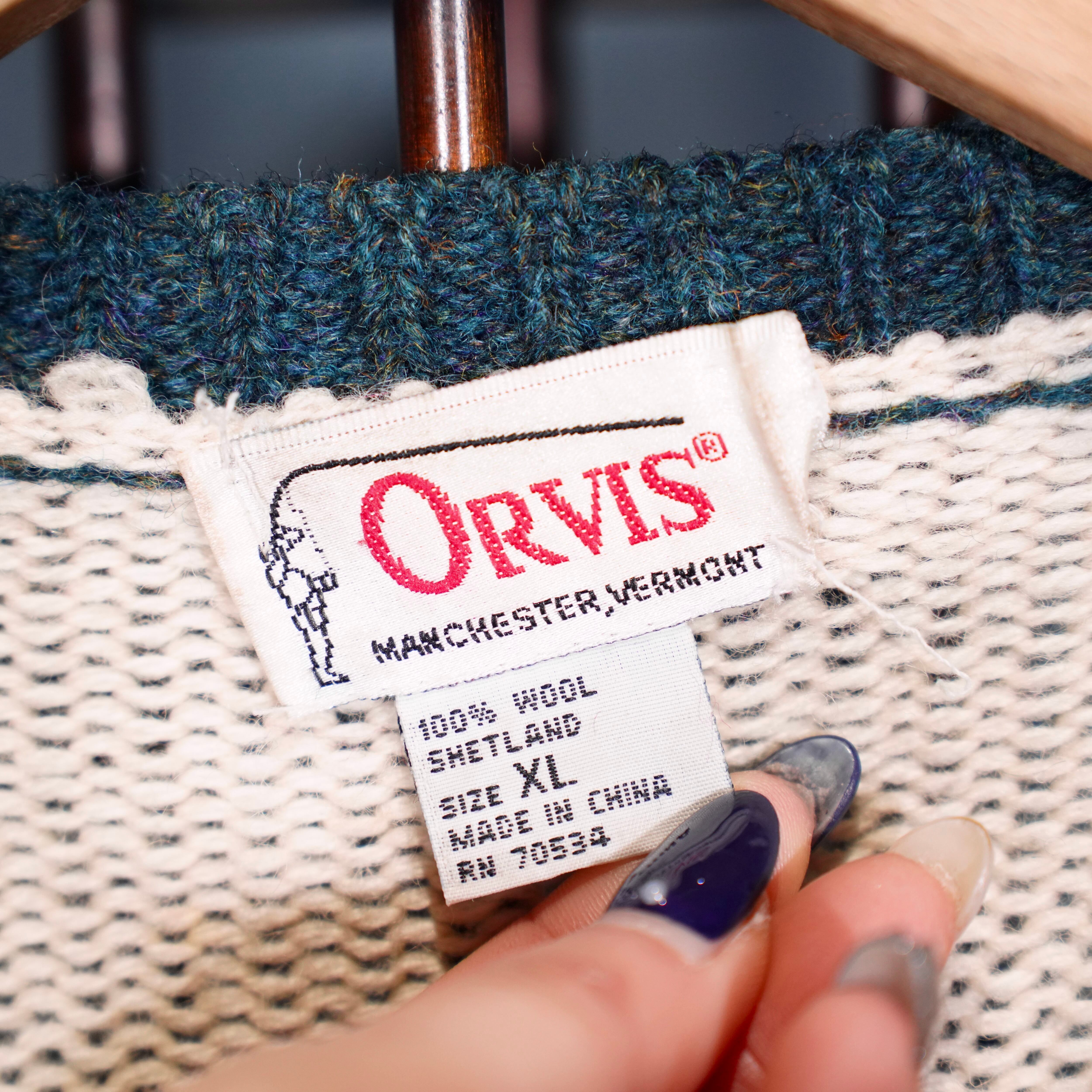USA VINTAGE ORVIS COIN BUTTON ANIMAL DESIGN KNIT CARDIGAN/アメリカ古着コインボタンアニマルデザインニットカーディガン